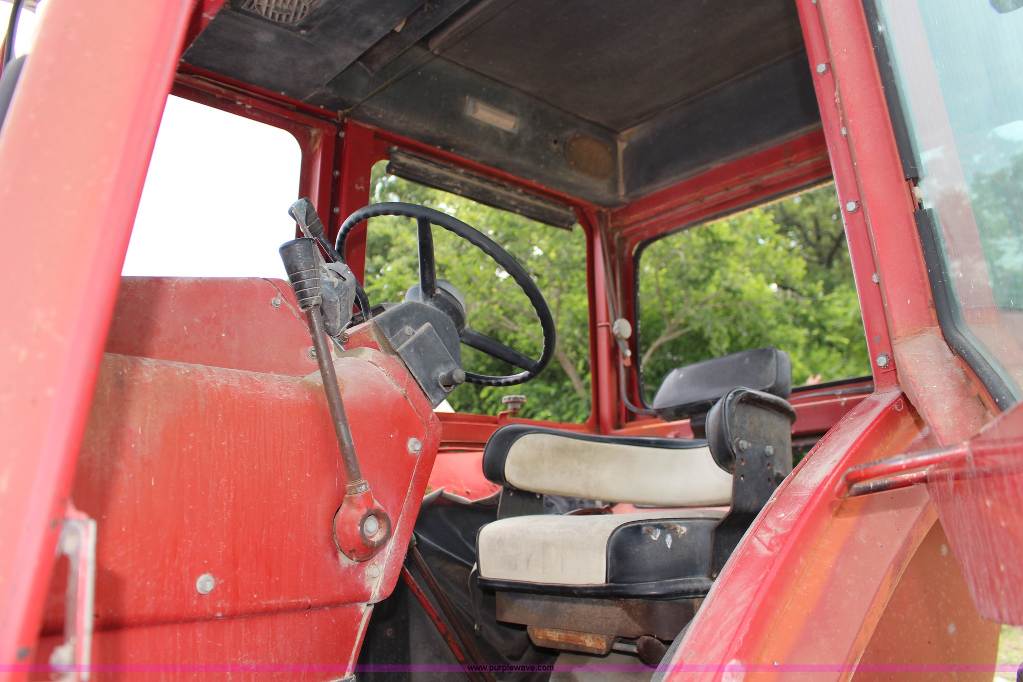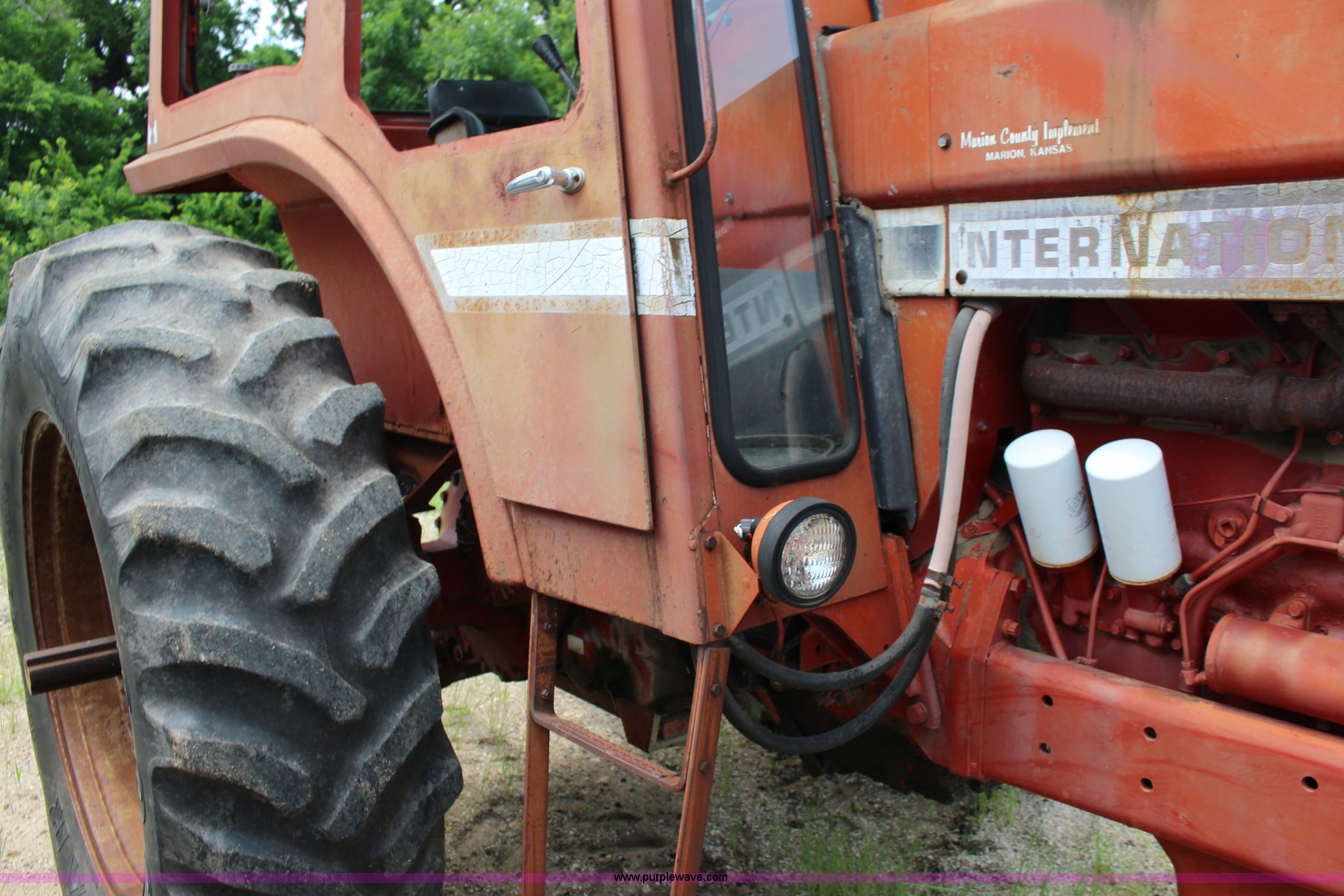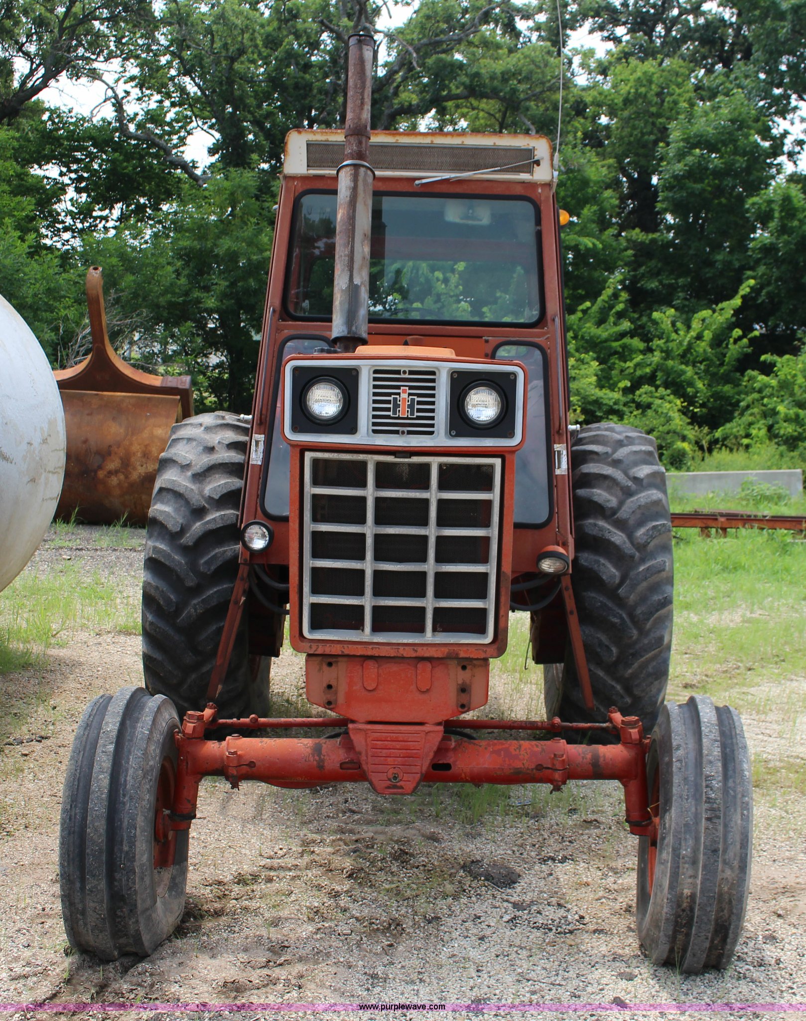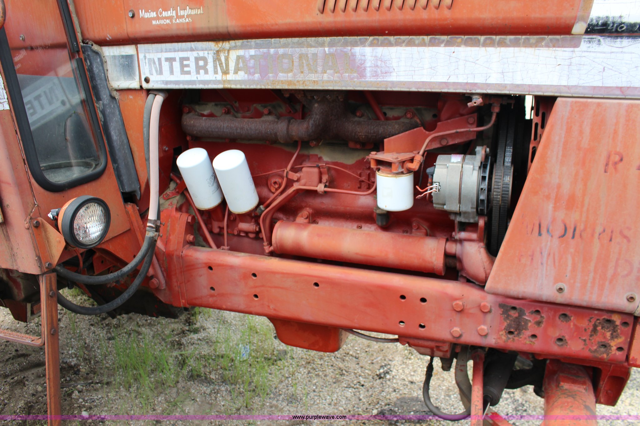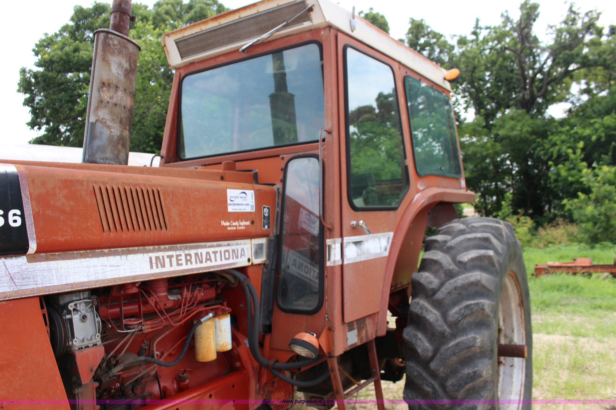 Purple Wave is selling a used Tractor in Kansas. This item is a 1975 International 1066 tractor with the following: 6,378 hours on meter, International six cylinder diesel engine, Partial powershift transmission, 16F-8R gears, Torque amplifier, Unknown operating condition, Heat, Three point, 540/1000 PTO, Draw bar, (2) rear hydraulic remotes, Rear wheel weights, 10.00-16 front tires, 18.4-38 rear tires, Fuel leak, Serial 2610178U055744