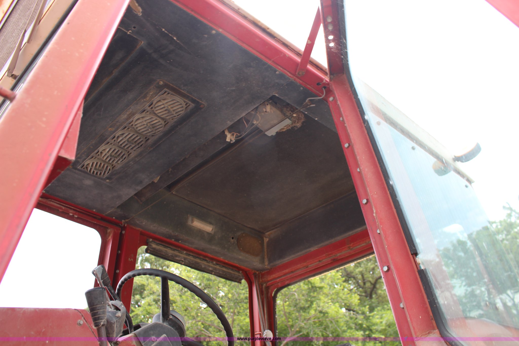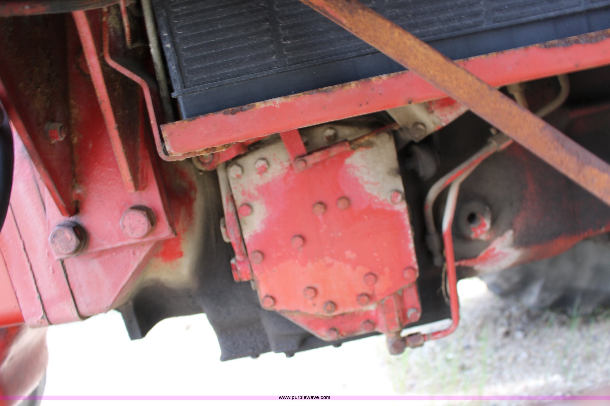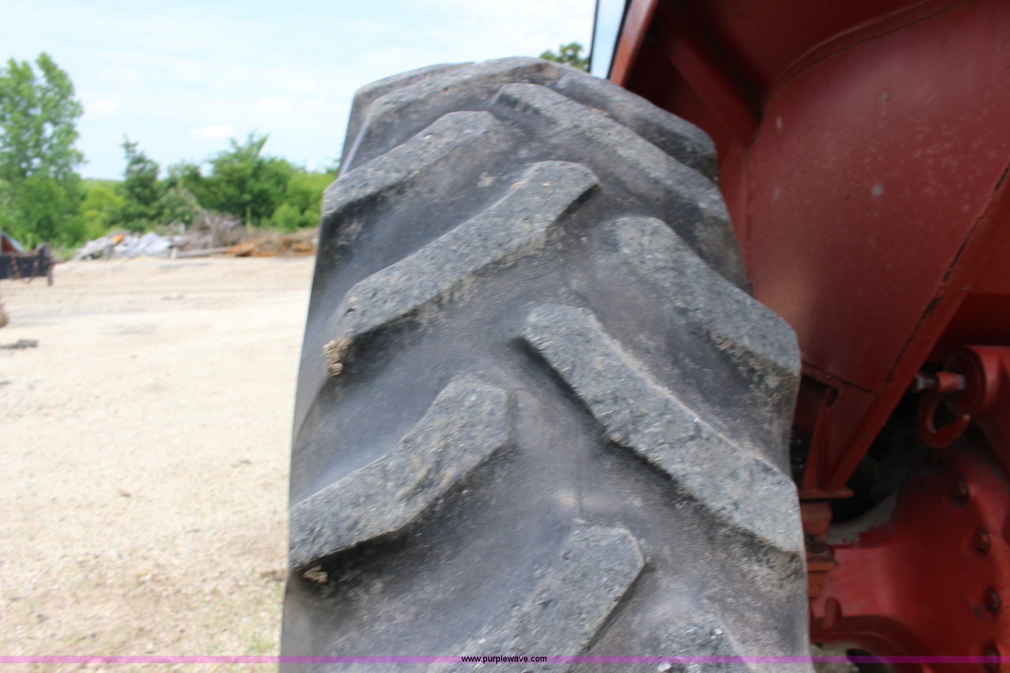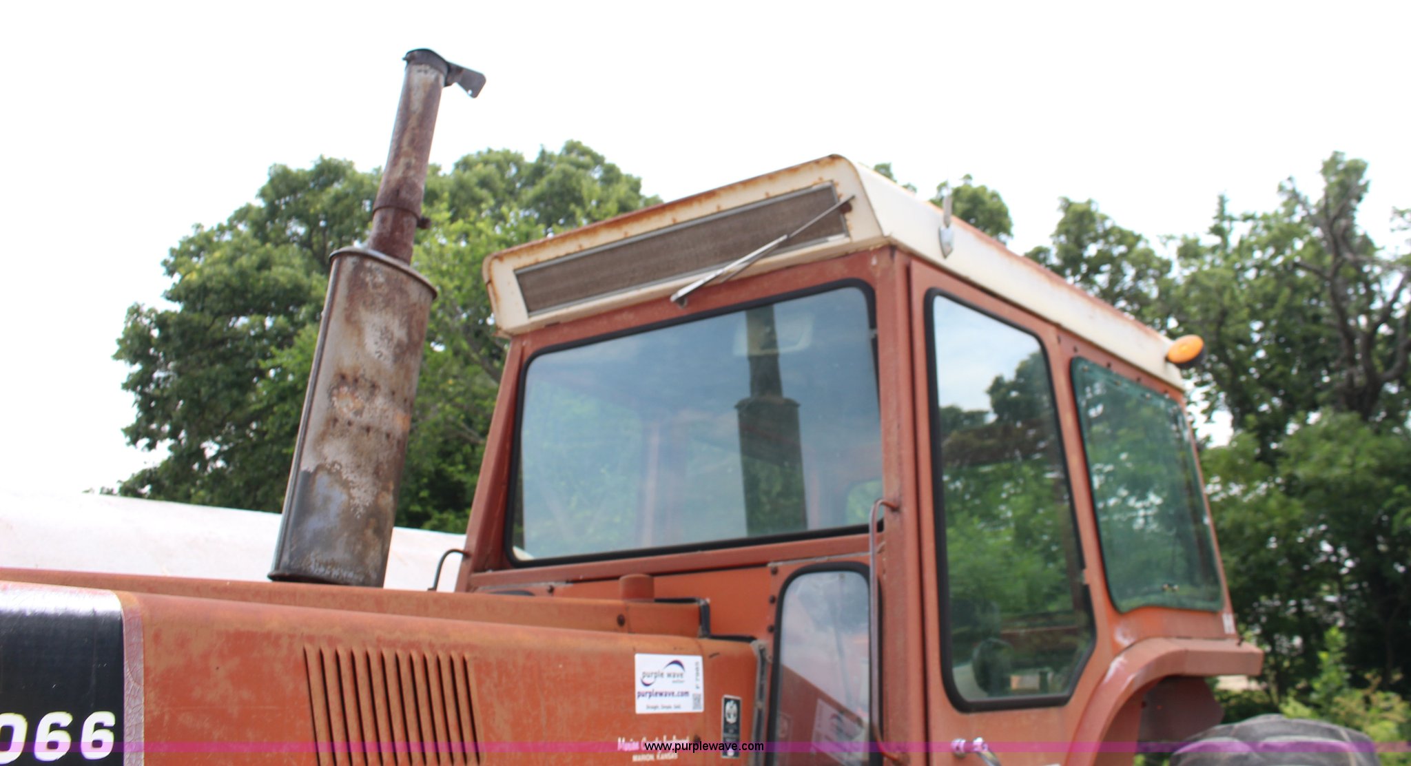 Purple Wave is selling a used Tractor in Kansas. This item is a 1975 International 1066 tractor with the following: 6,378 hours on meter, International six cylinder diesel engine, Partial powershift transmission, 16F-8R gears, Torque amplifier, Unknown operating condition, Heat, Three point, 540/1000 PTO, Draw bar, (2) rear hydraulic remotes, Rear wheel weights, 10.00-16 front tires, 18.4-38 rear tires, Fuel leak, Serial 2610178U055744