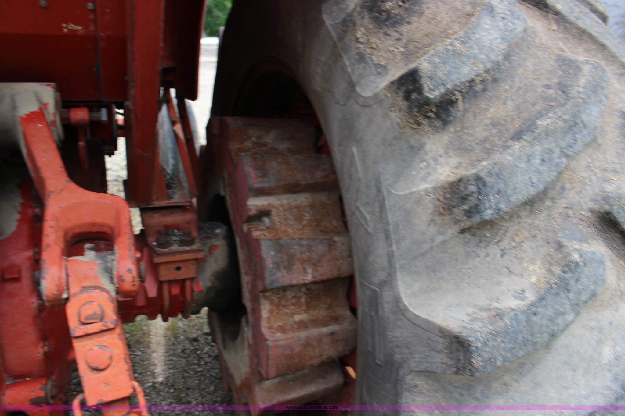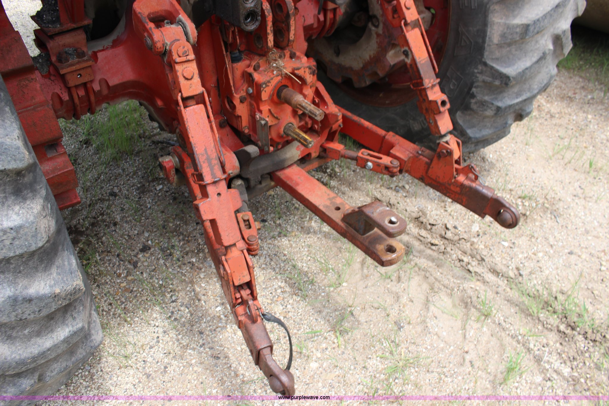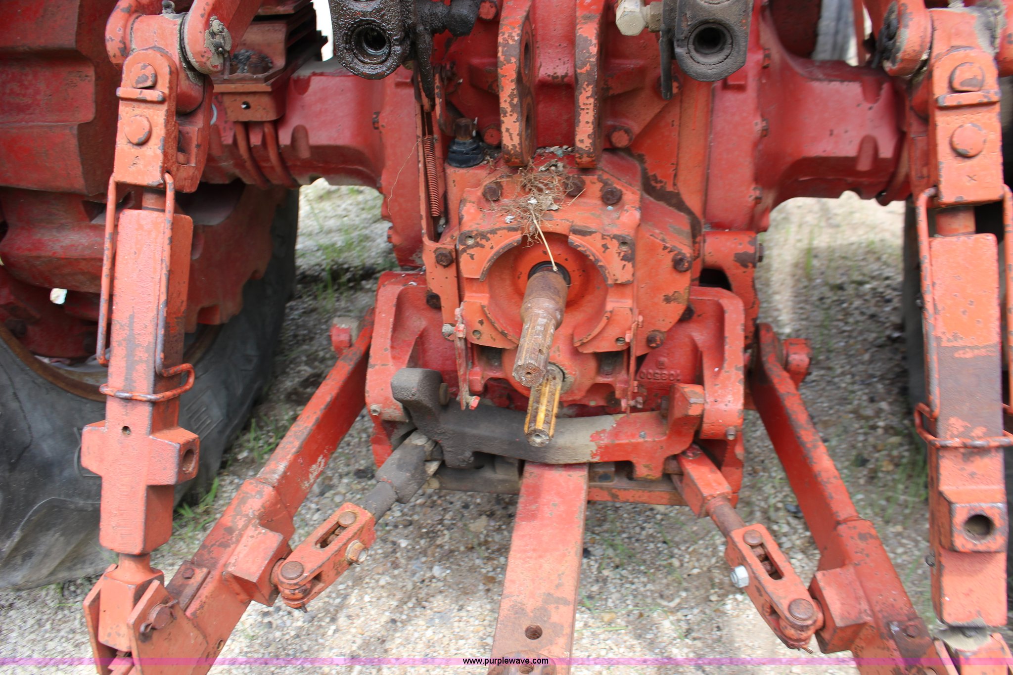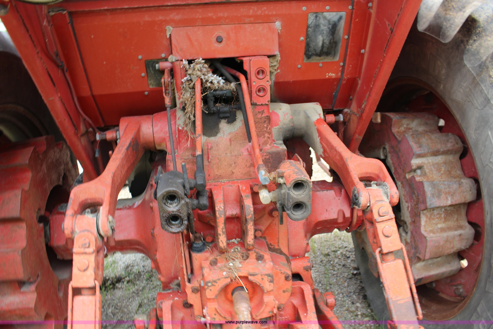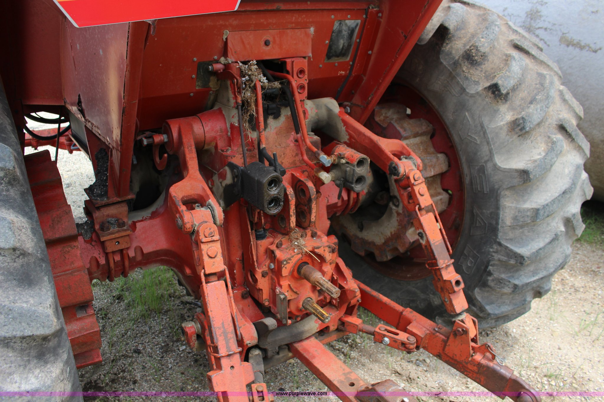 Purple Wave is selling a used Tractor in Kansas. This item is a 1975 International 1066 tractor with the following: 6,378 hours on meter, International six cylinder diesel engine, Partial powershift transmission, 16F-8R gears, Torque amplifier, Unknown operating condition, Heat, Three point, 540/1000 PTO, Draw bar, (2) rear hydraulic remotes, Rear wheel weights, 10.00-16 front tires, 18.4-38 rear tires, Fuel leak, Serial 2610178U055744