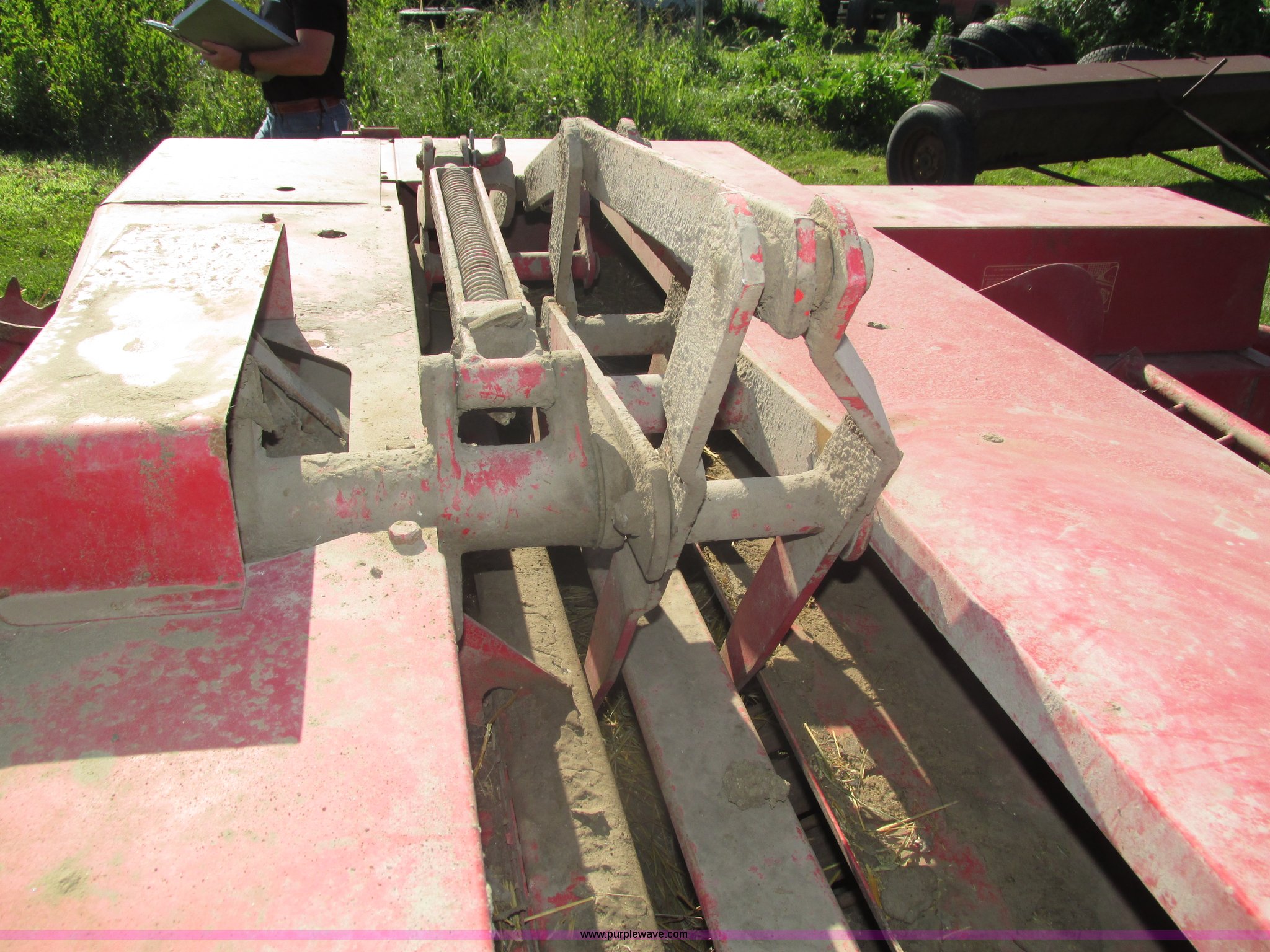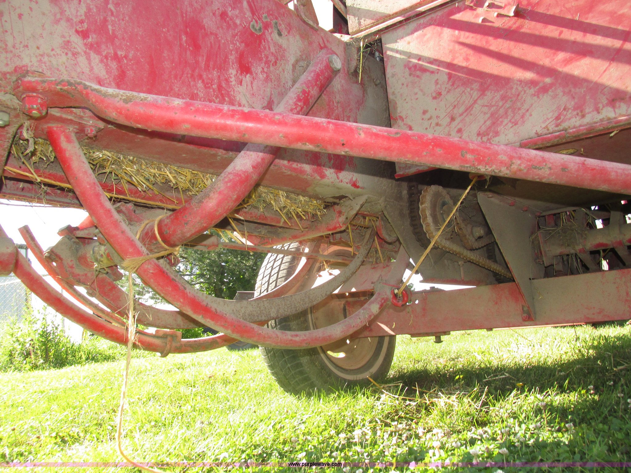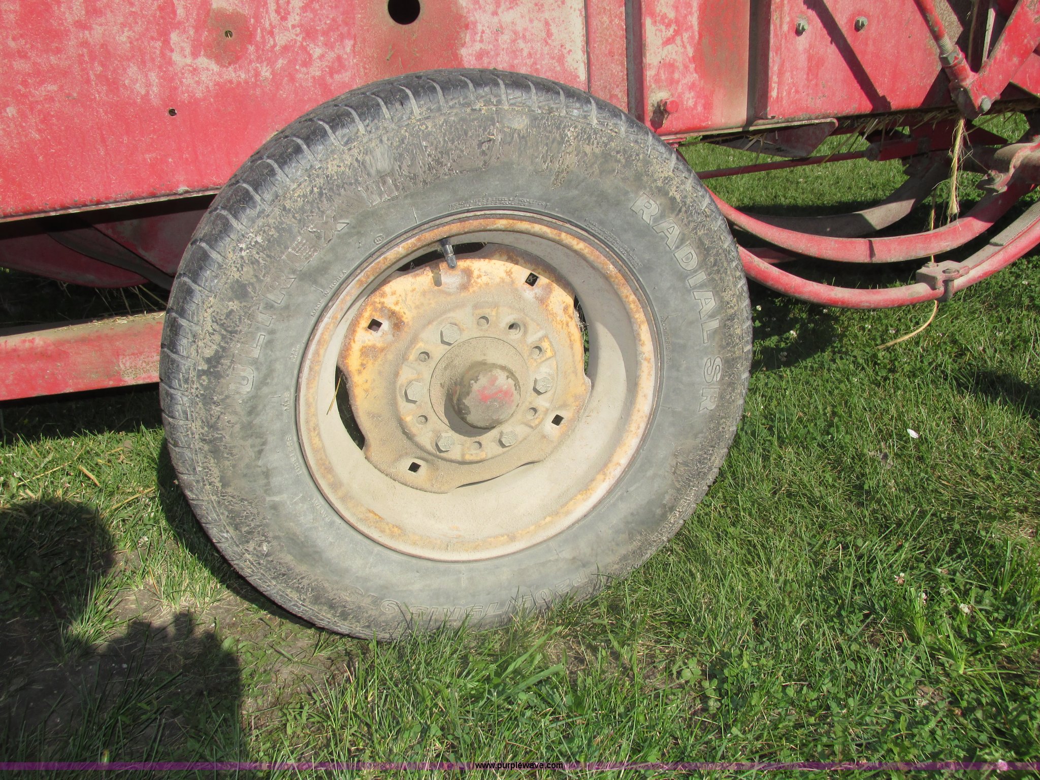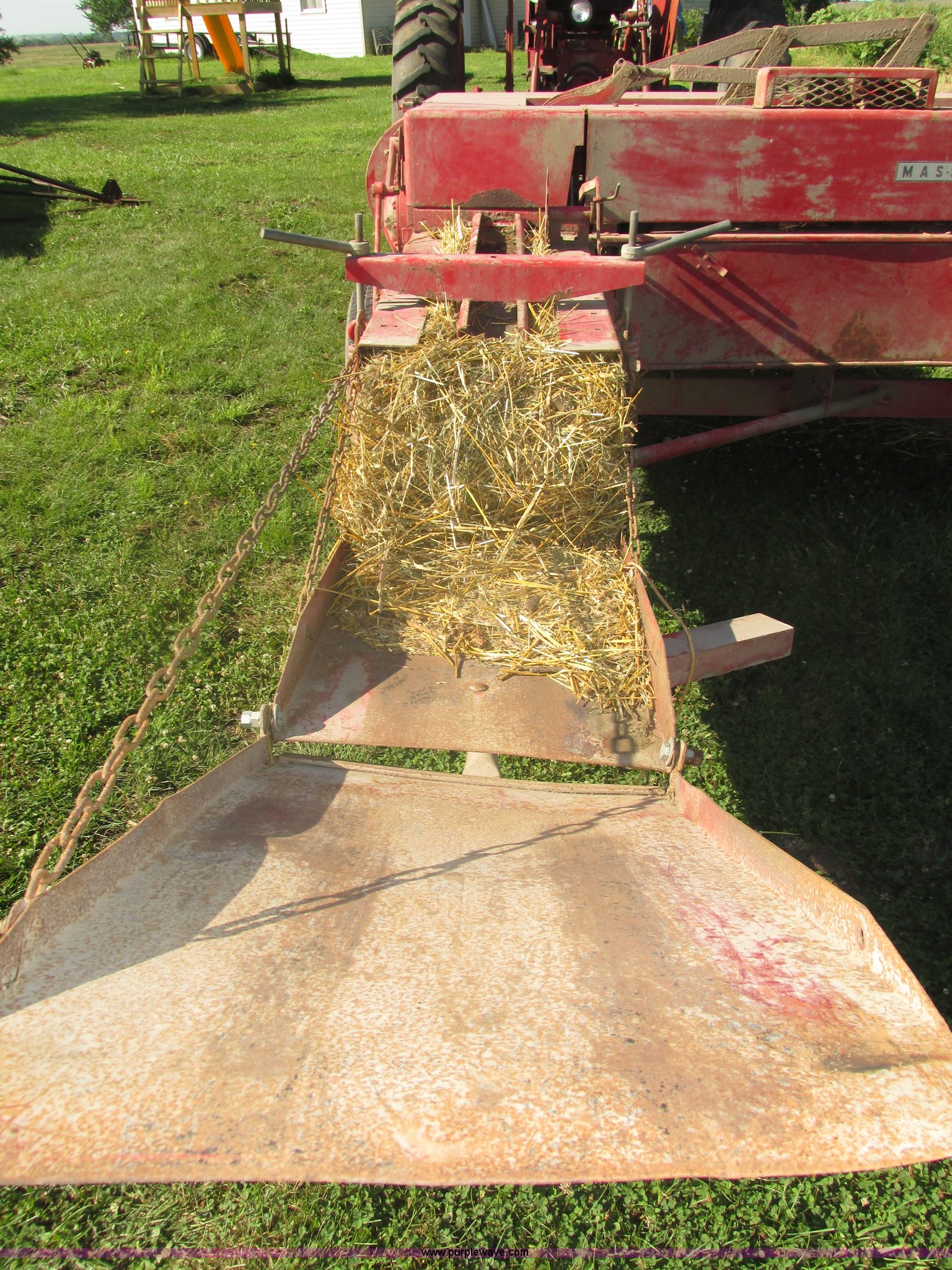 Purple Wave is selling a used Square Baler in Nebraska. This item is a 1965 Massey-Ferguson 12 small square baler with the following: 13" x 16" x 36" bale capacity, 57"W pickup, Manual pickup, (2) double knot knotters, Twine tie, Bale chute, 540 PTO, Pin hitch, P205/75R15 left tire, 5.00-15 right tire, Serial 996-504640