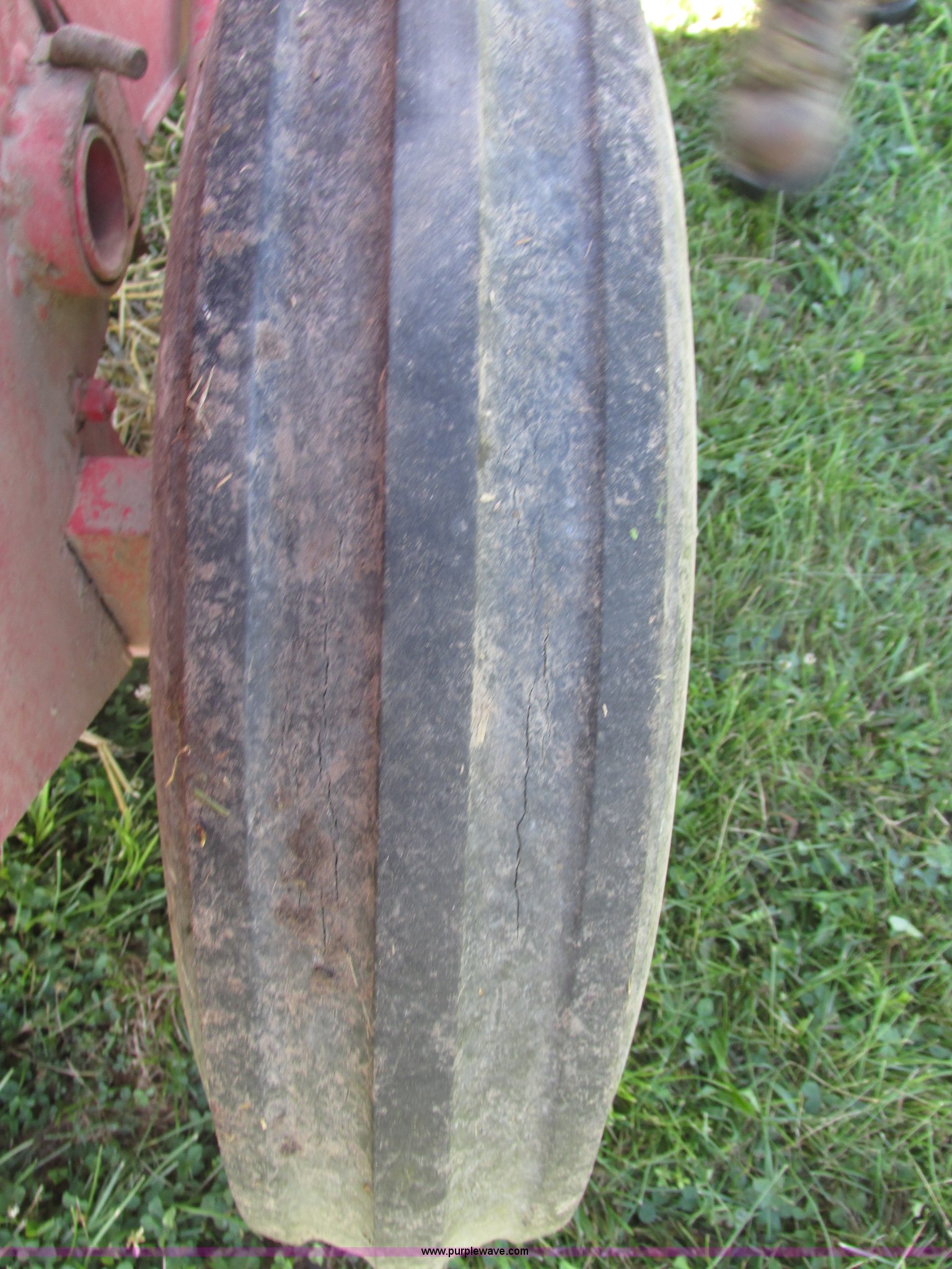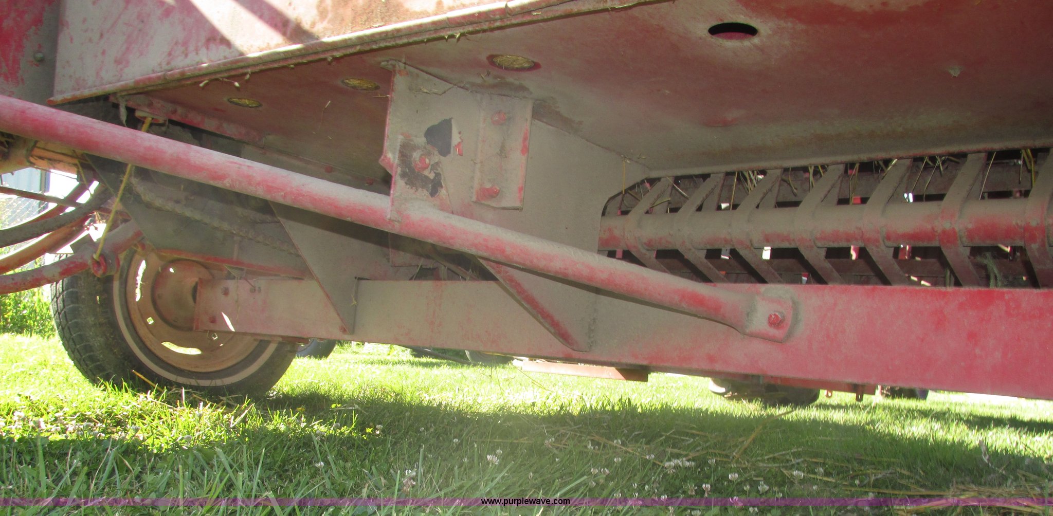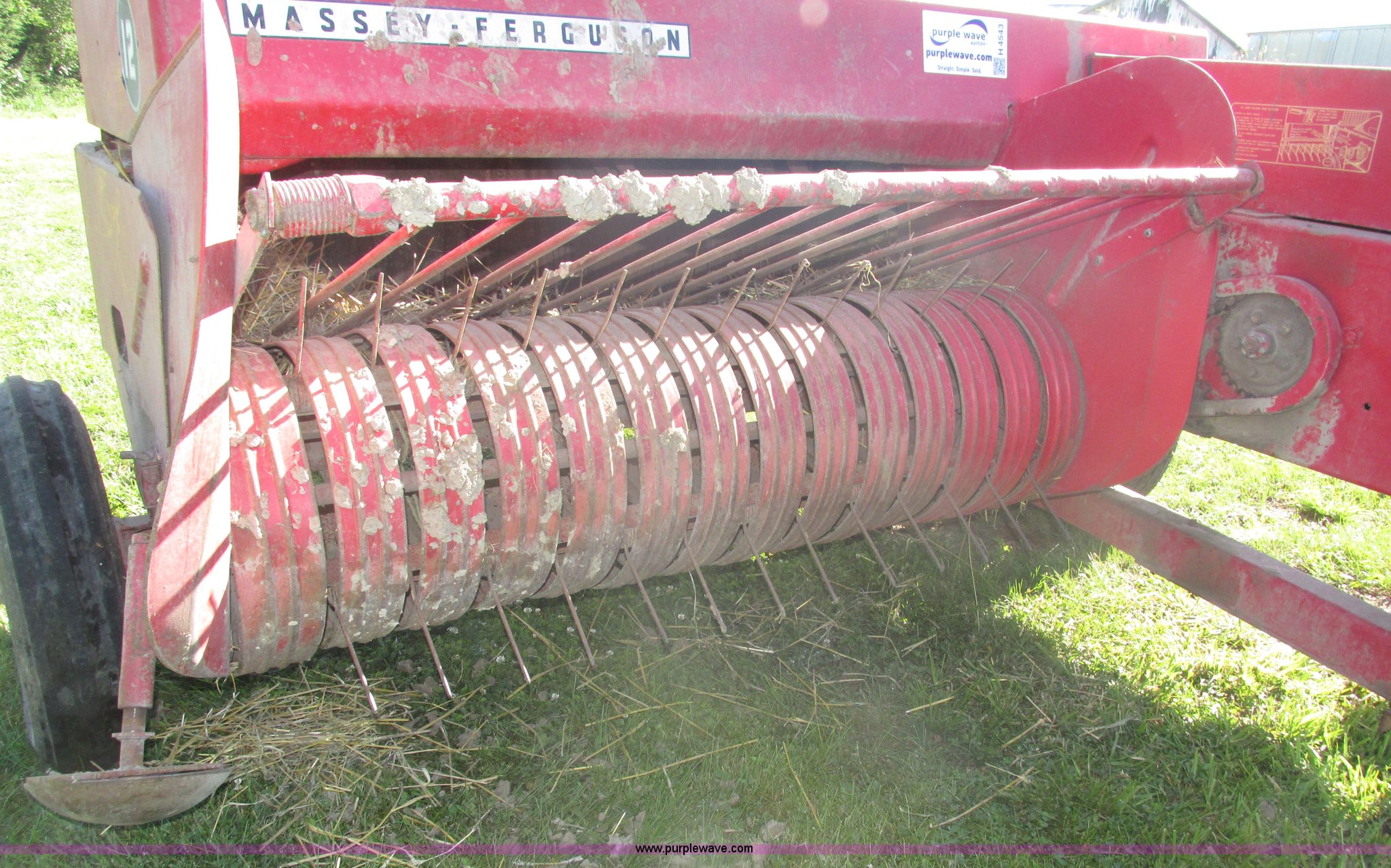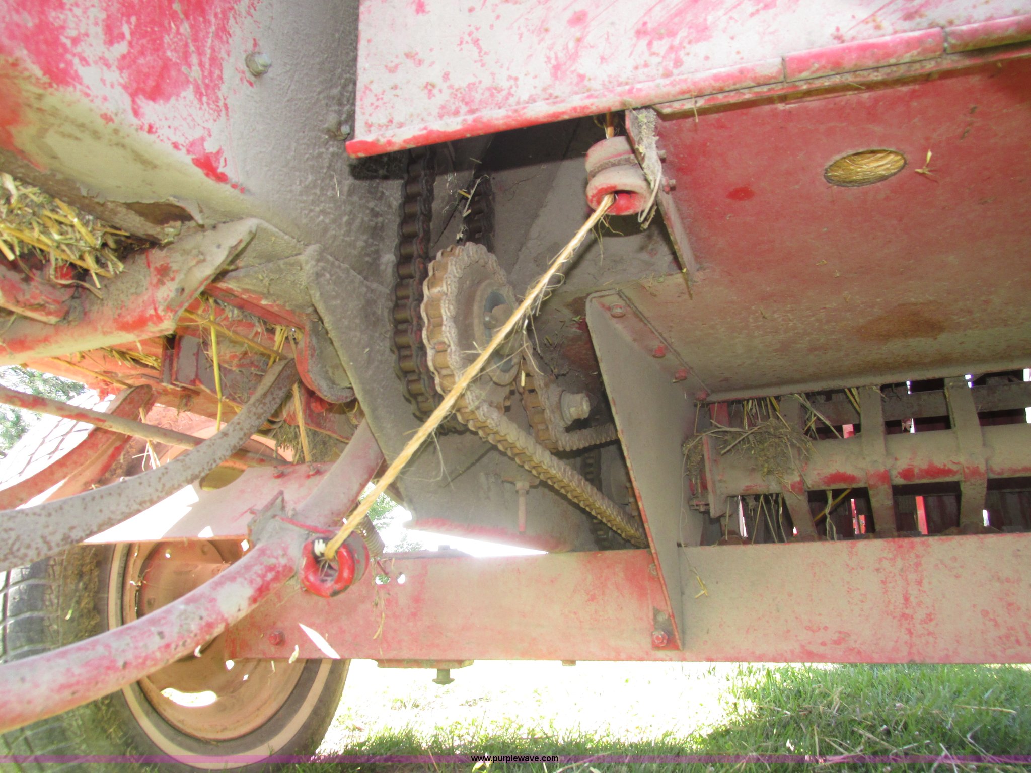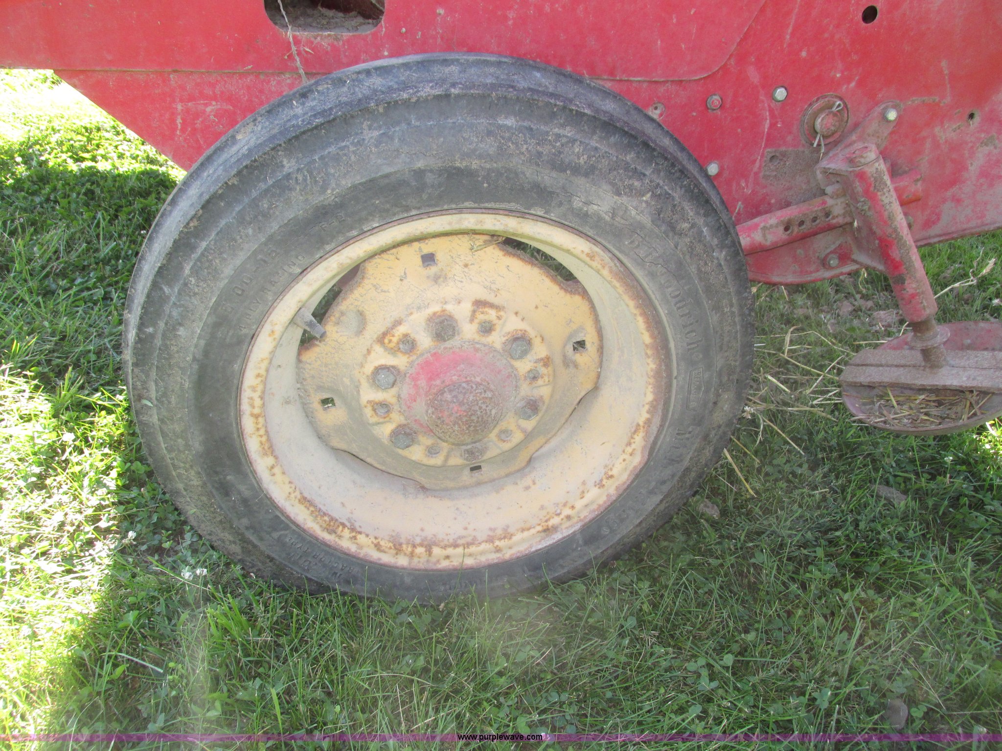 Purple Wave is selling a used Square Baler in Nebraska. This item is a 1965 Massey-Ferguson 12 small square baler with the following: 13" x 16" x 36" bale capacity, 57"W pickup, Manual pickup, (2) double knot knotters, Twine tie, Bale chute, 540 PTO, Pin hitch, P205/75R15 left tire, 5.00-15 right tire, Serial 996-504640