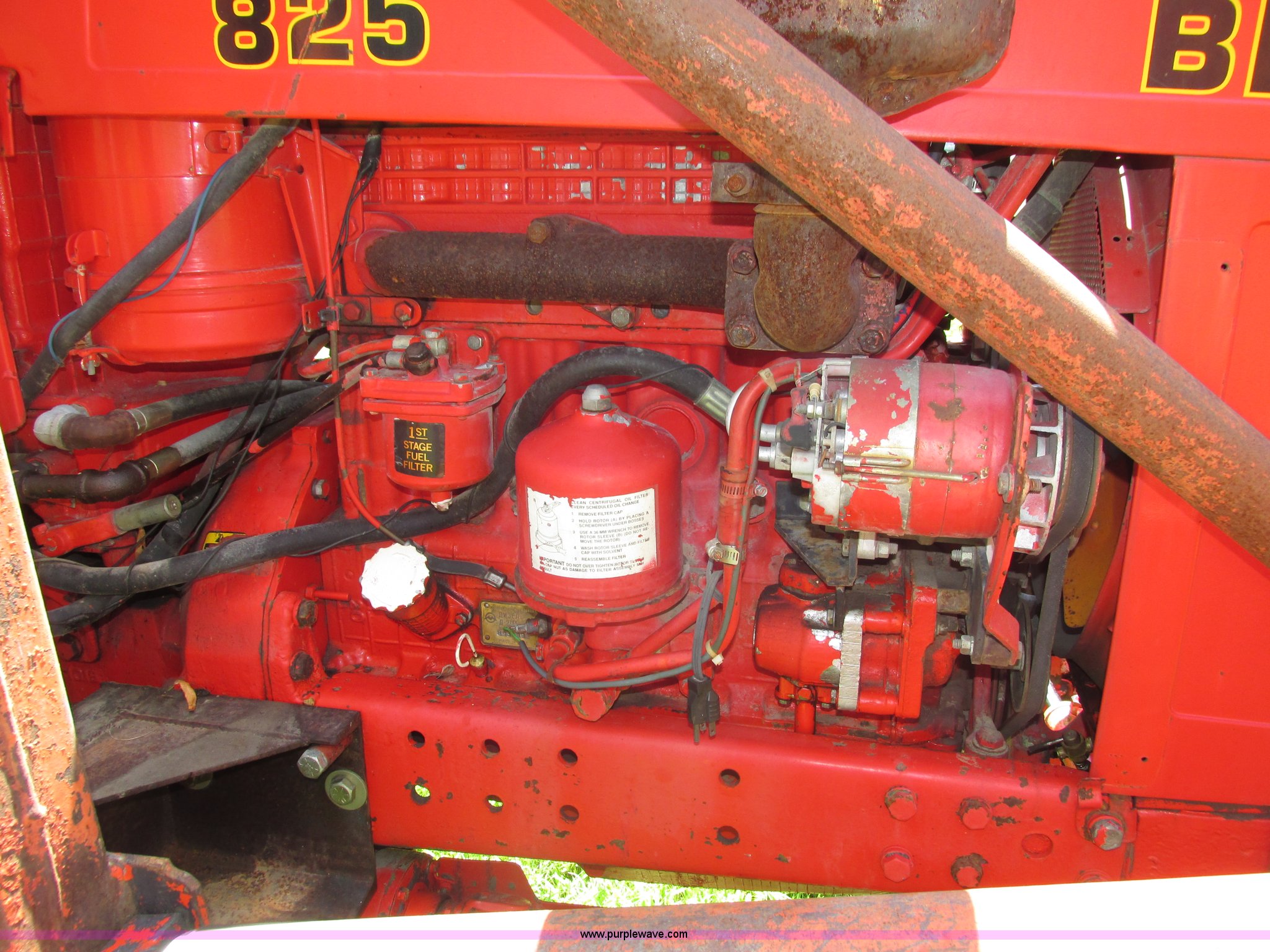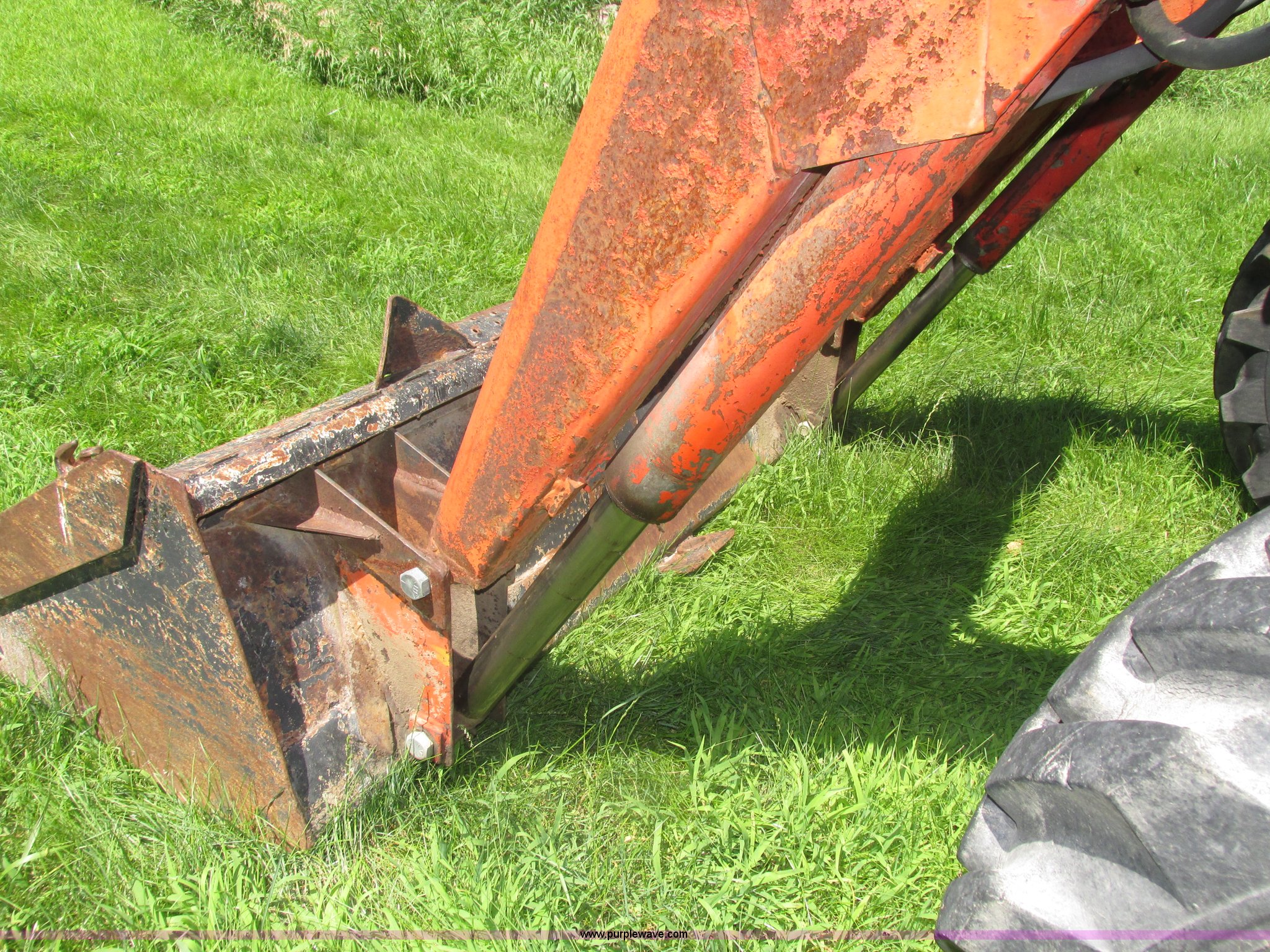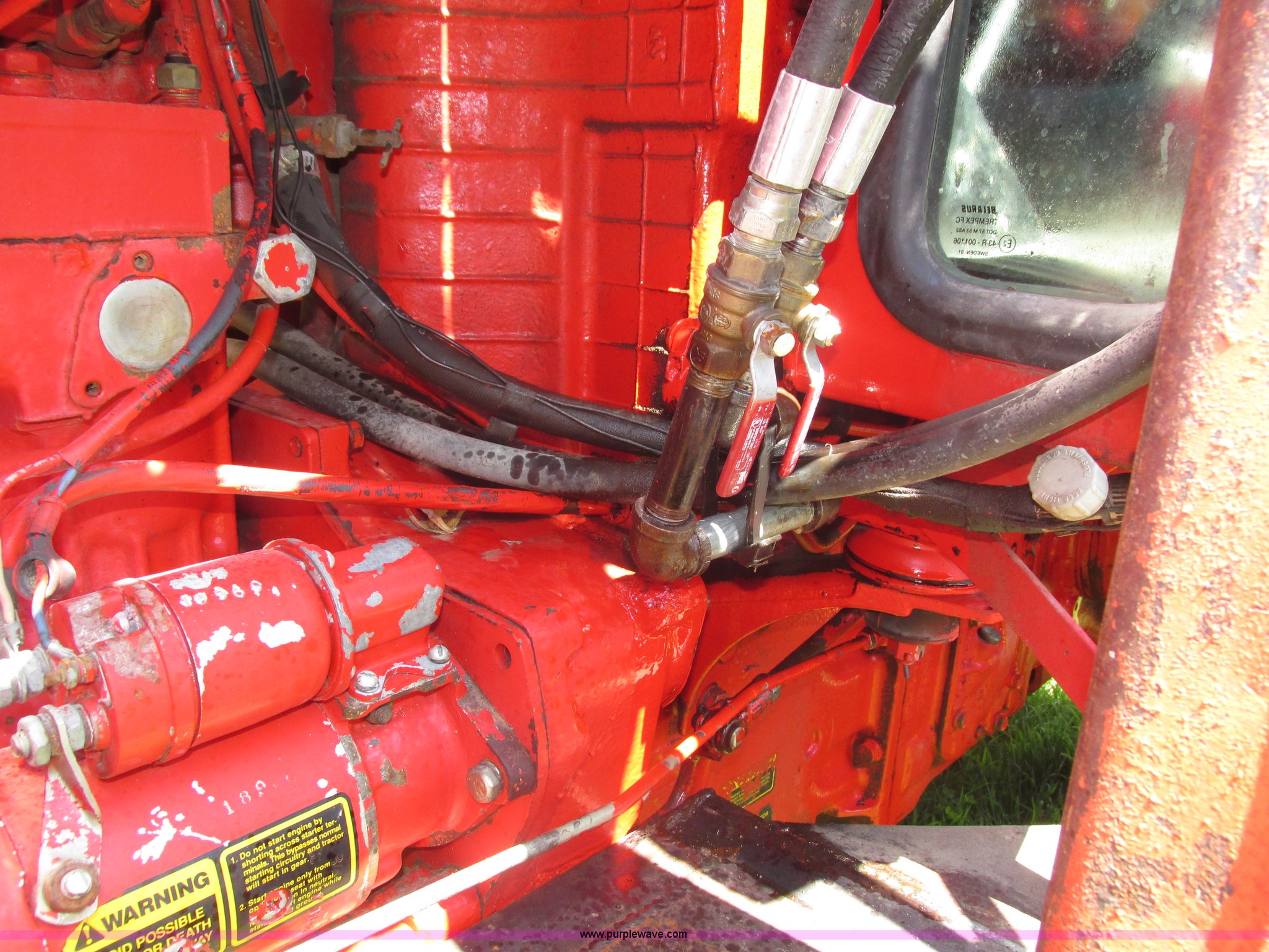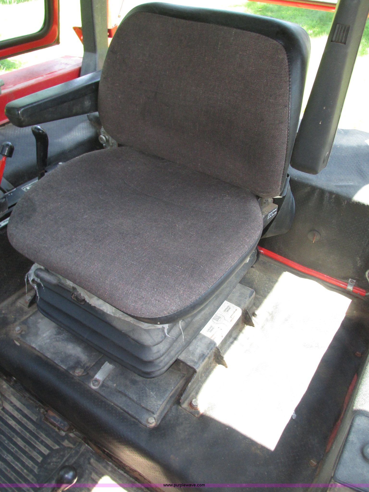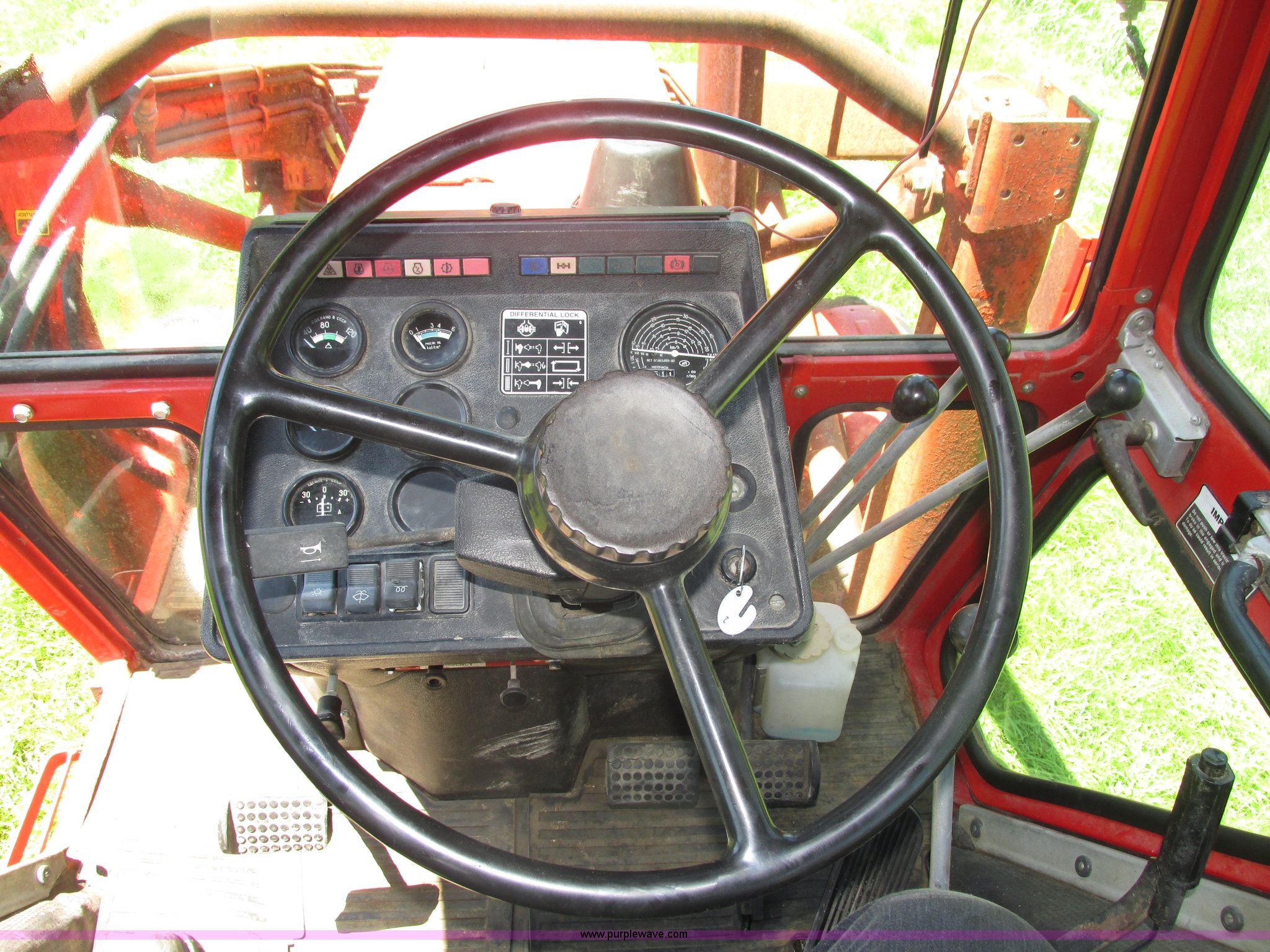 Purple Wave is selling a used Tractor in Iowa. This item is a Belarus 825 MFWD tractor with the following: 511 hours on meter, Four cylinder diesel engine, Serial 893692, Manual transmission, 9F-2R gears, Differential lock, AC and heat, Unknown operating condition of AC, Suspension seat, Hand and foot throttle, Dual three point controls, Roof top emergency hatch, Block heater, Du-Al loader, 69"W bucket, 2" ball hitch on bucket, Two-lever controls, Three point, Top link, 540/1000 PTO, Rear hydraulic remote set, Master battery disconnect, 11.2-20 front tires, 15.5-38 rear tires, Tires are cracking, Rear scraper not included, Serial 340345