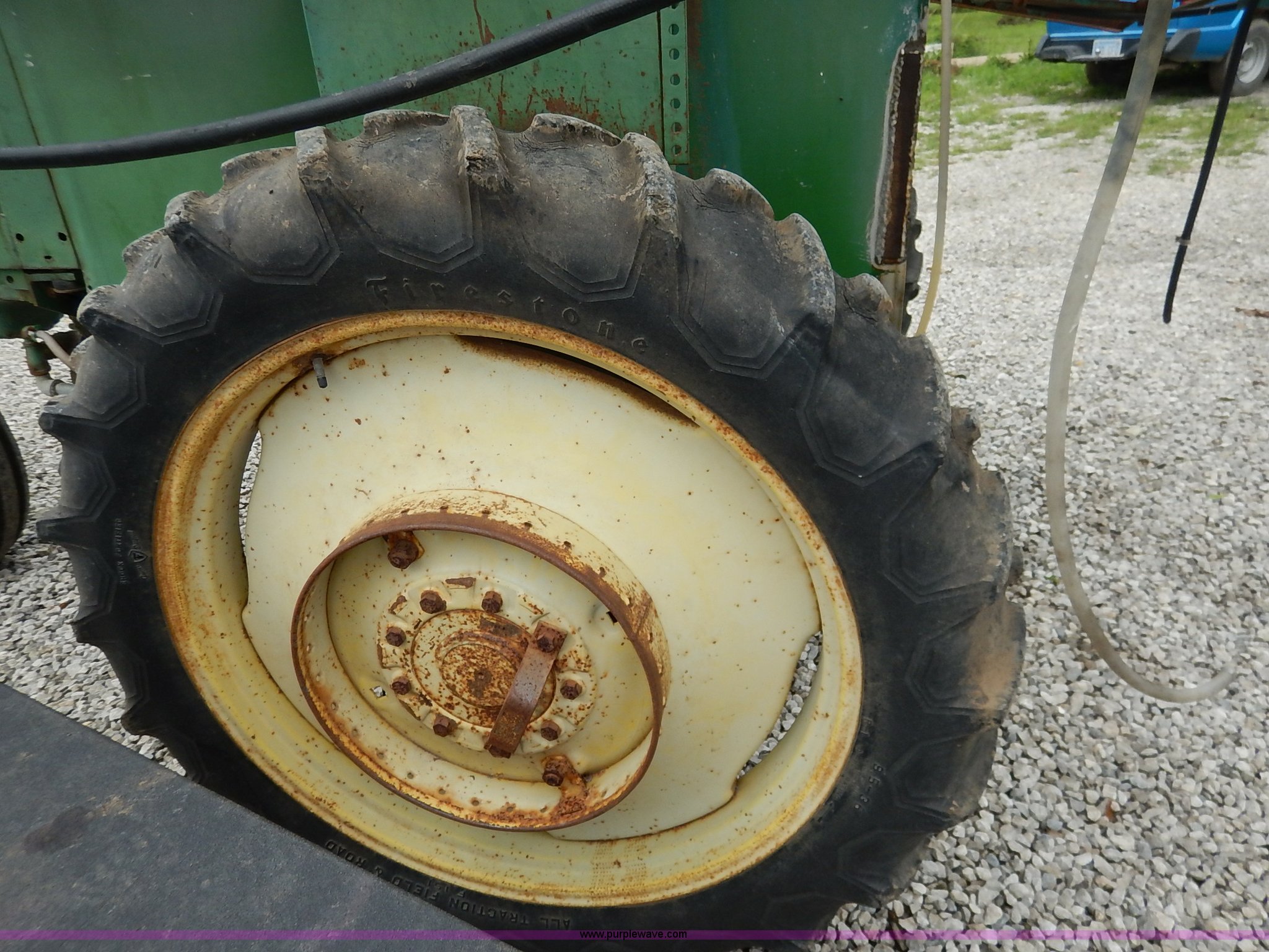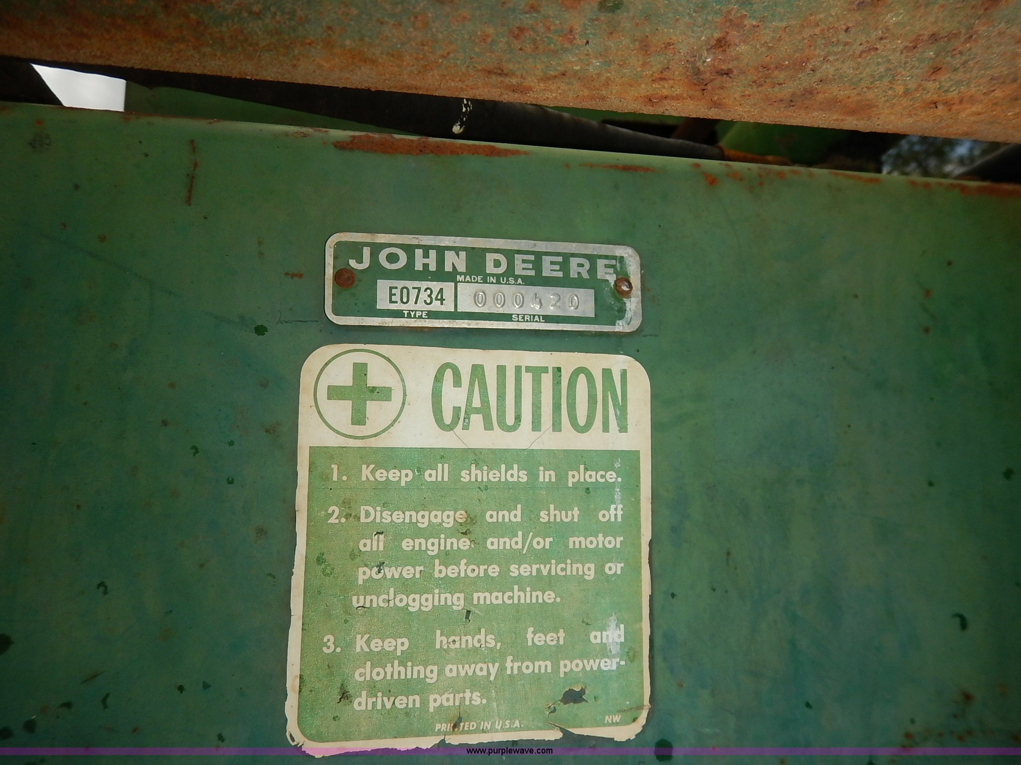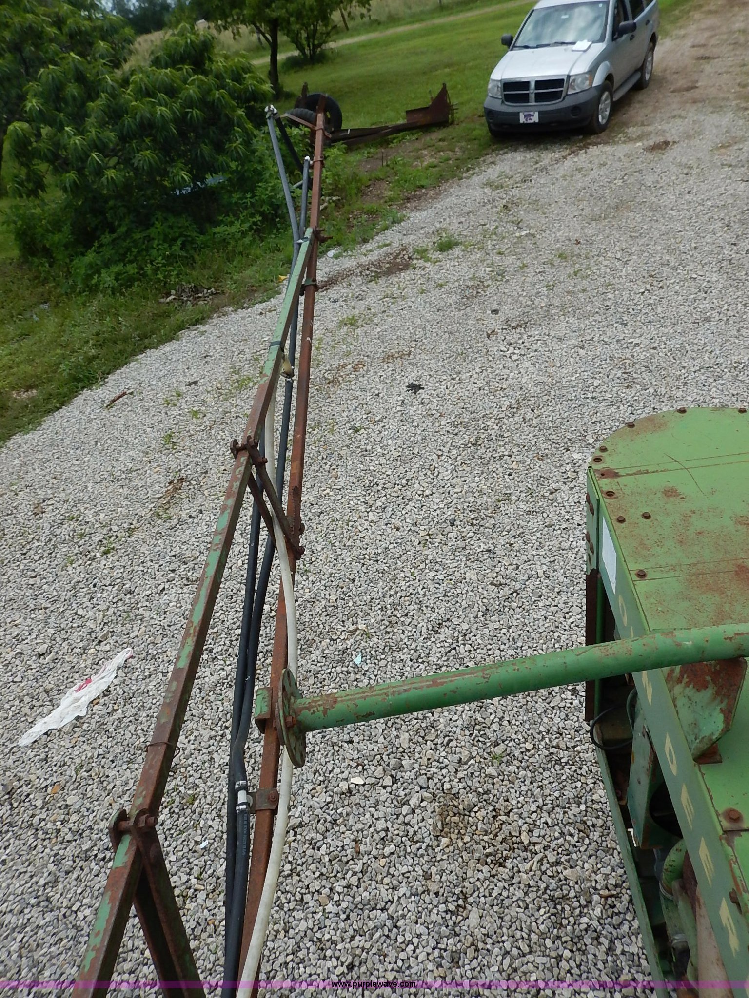 Purple Wave is selling a used Applicator Self Propelled in Kansas. This item is a John Deere 734 Hi-Cycle self-propelled applicator with the following: Type E0734, John Deere three cylinder gas engine, 4F-2R gears, 40'W boom, 30" nozzle spacing, No nozzles included, 12 gallon hand sprayer tank, 300 gallon belly tank, Work lights, Cambridge 7.50-20 front tires, Firestone 9.5-36 rear tires, Starter recently rebuilt, Trailer, Ramps, Safety chains, 19.00-20 tires, 11.00-20 tires, Serial 000420