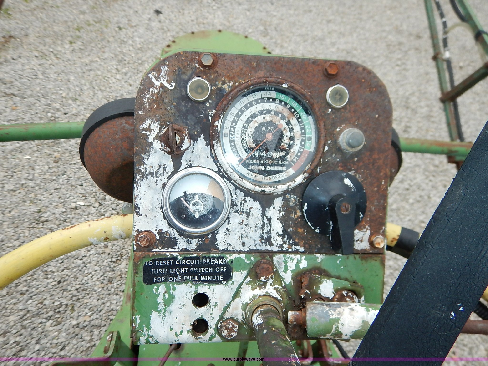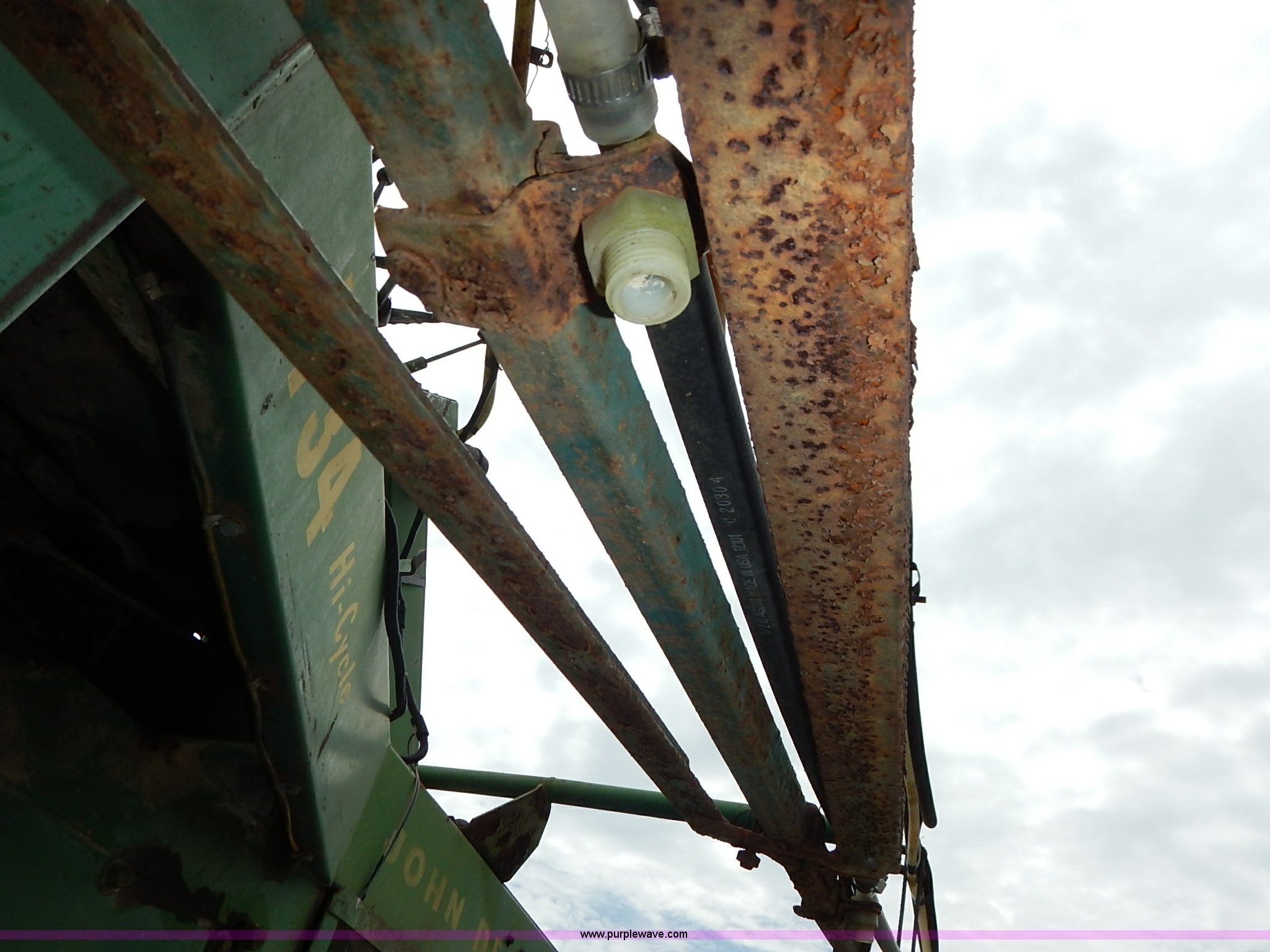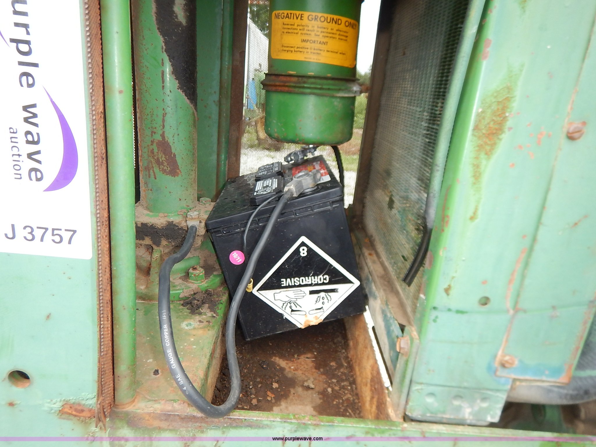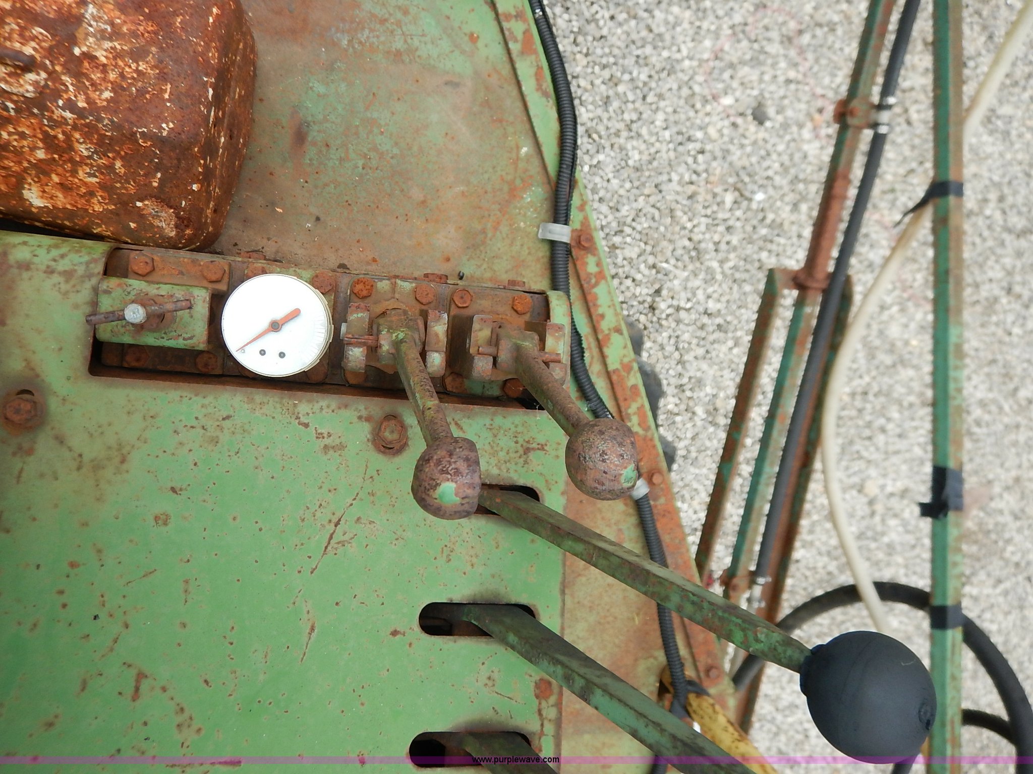Purple Wave is selling a used Applicator Self Propelled in Kansas. This item is a John Deere 734 Hi-Cycle self-propelled applicator with the following: Type E0734, John Deere three cylinder gas engine, 4F-2R gears, 40'W boom, 30" nozzle spacing, No nozzles included, 12 gallon hand sprayer tank, 300 gallon belly tank, Work lights, Cambridge 7.50-20 front tires, Firestone 9.5-36 rear tires, Starter recently rebuilt, Trailer, Ramps, Safety chains, 19.00-20 tires, 11.00-20 tires, Serial 000420
