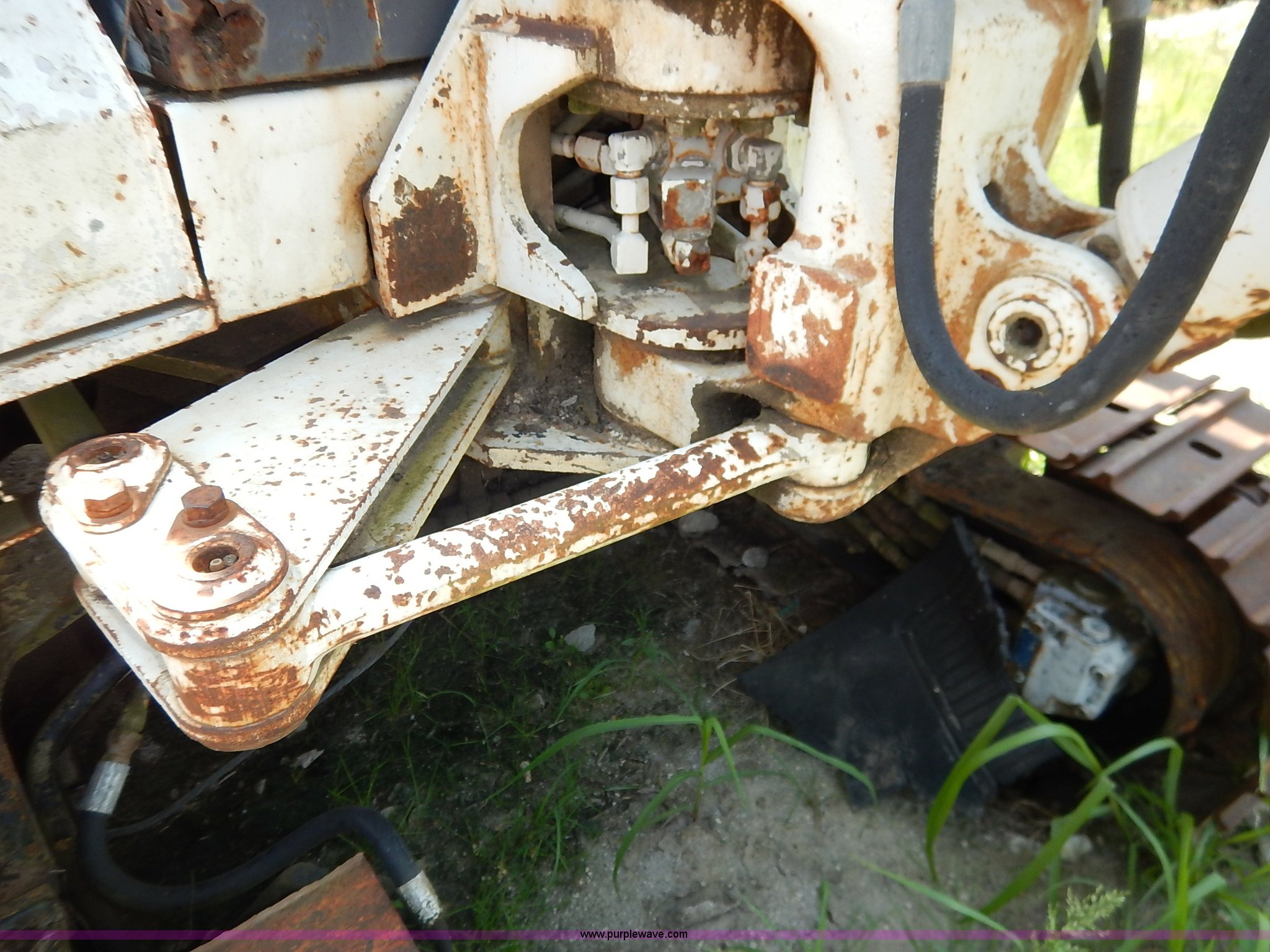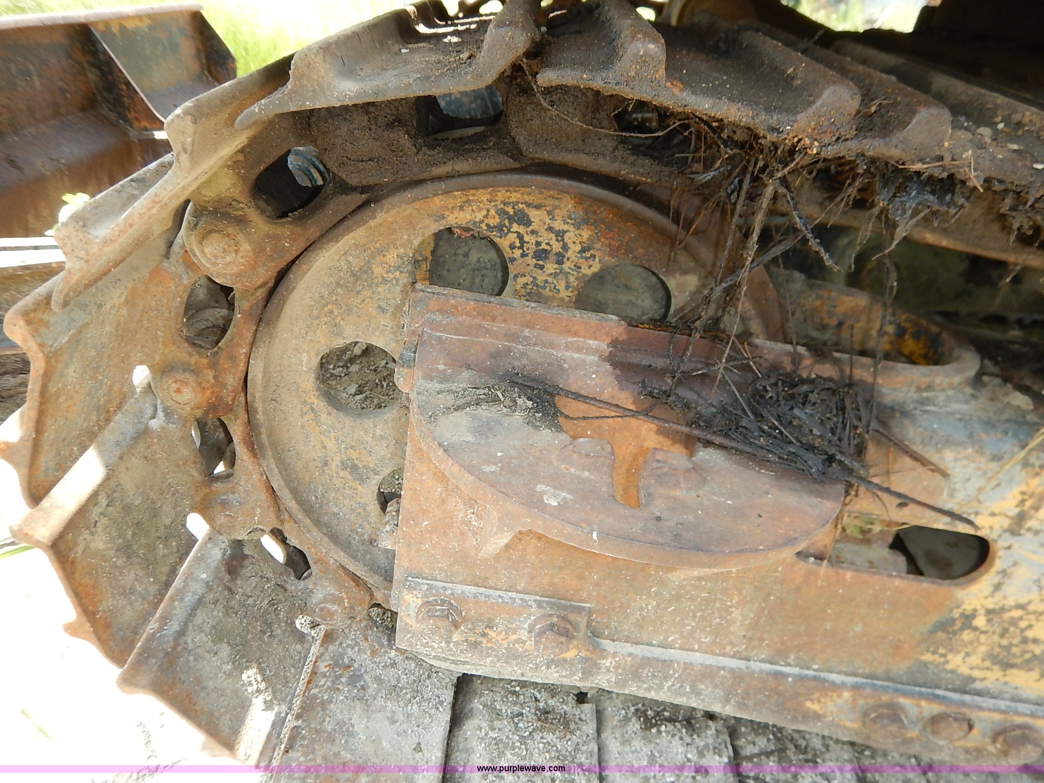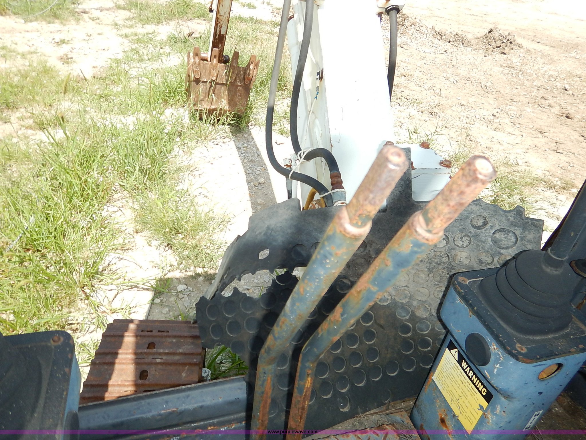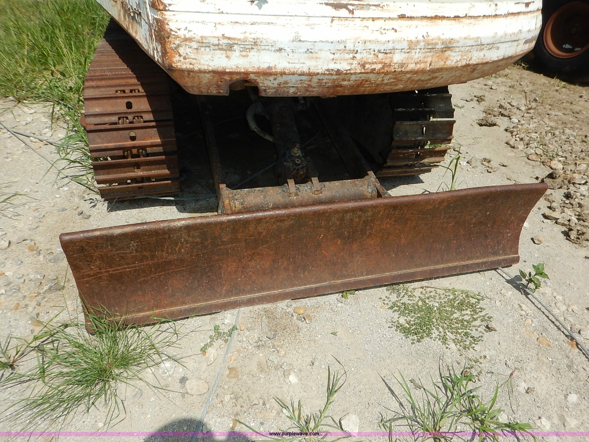 Purple Wave is selling a used Mini Excavator in Kansas. This item is a 1988 Bobcat 100 compact excavator with the following: Caterpillar three cylinder diesel engine, ROPS, Vinyl seat, Damaged, Joystick controls, Standard boom, 46" stick length, 19"W bucket, (4) bolt-on teeth, Hydraulic thumb, 5' rear blade, Three bottom rollers, 12"W steel single grouser track pads, 7,280 lbs. base operating weight, Operational when parked one year ago, Fuel issues, No battery, Serial 5049-MK-11068
