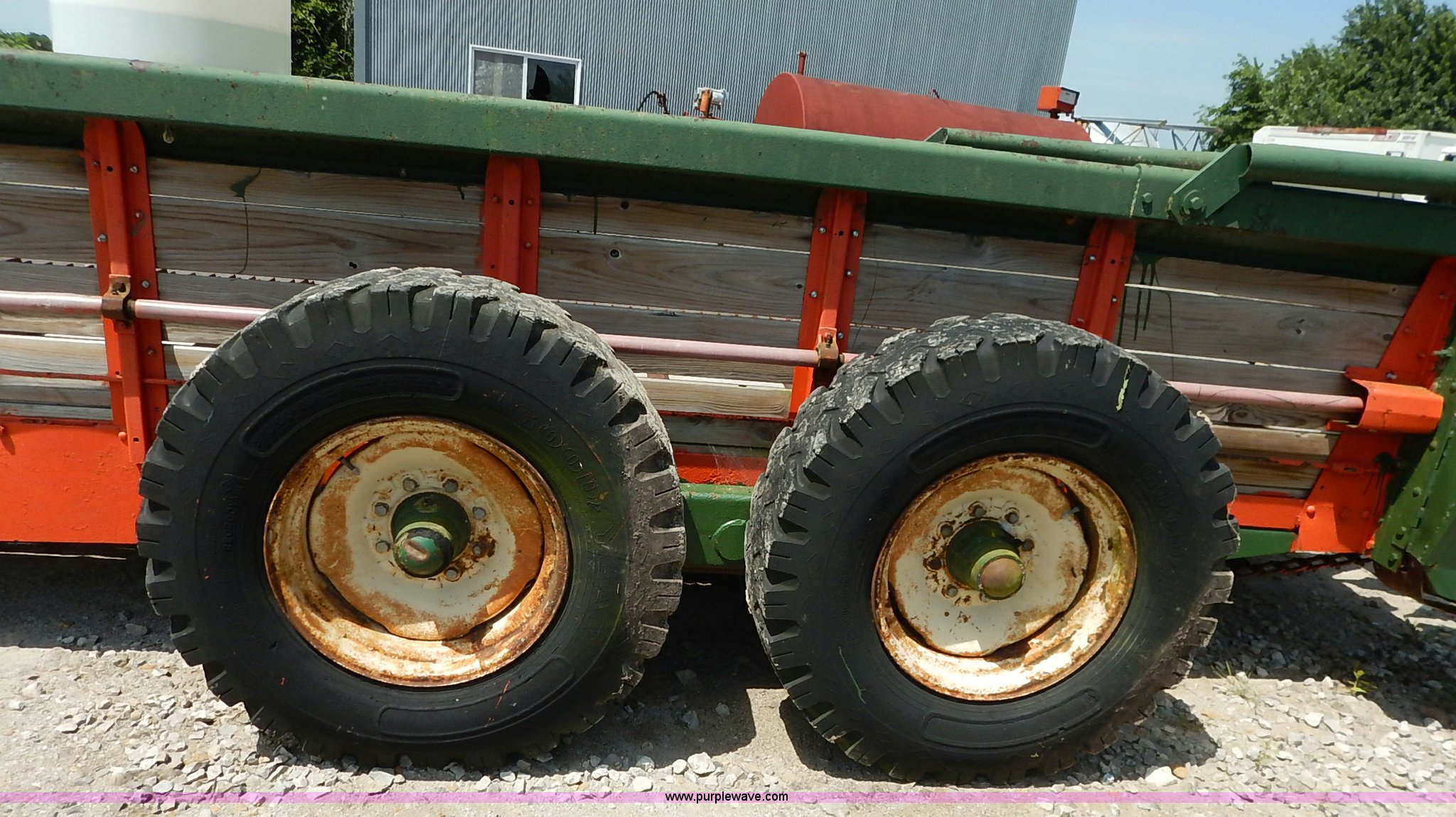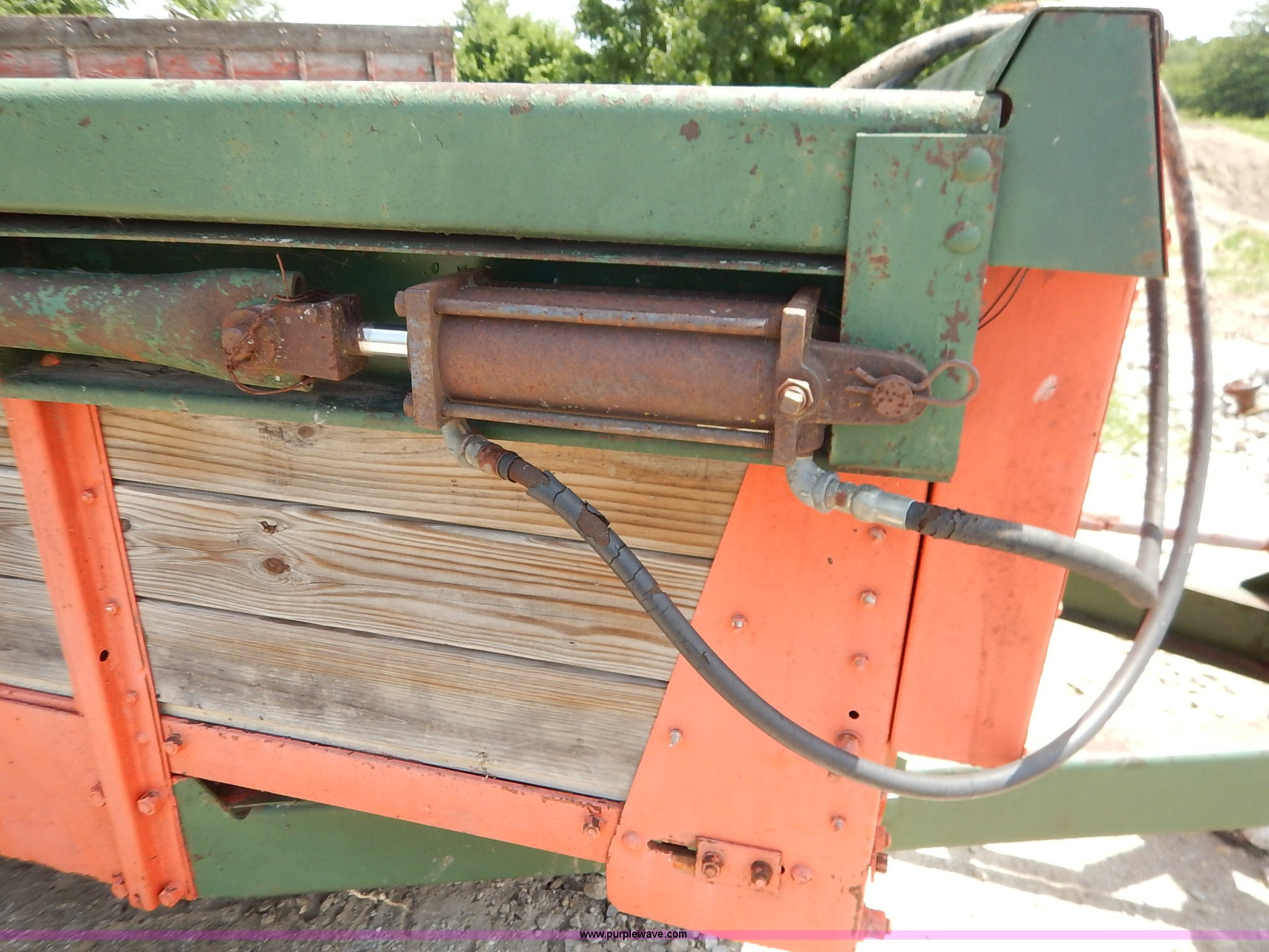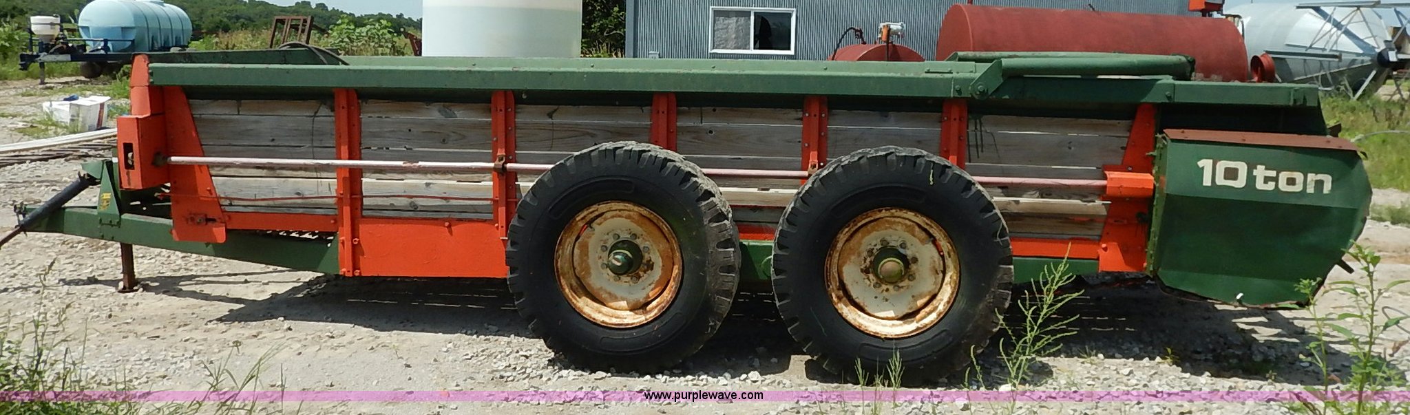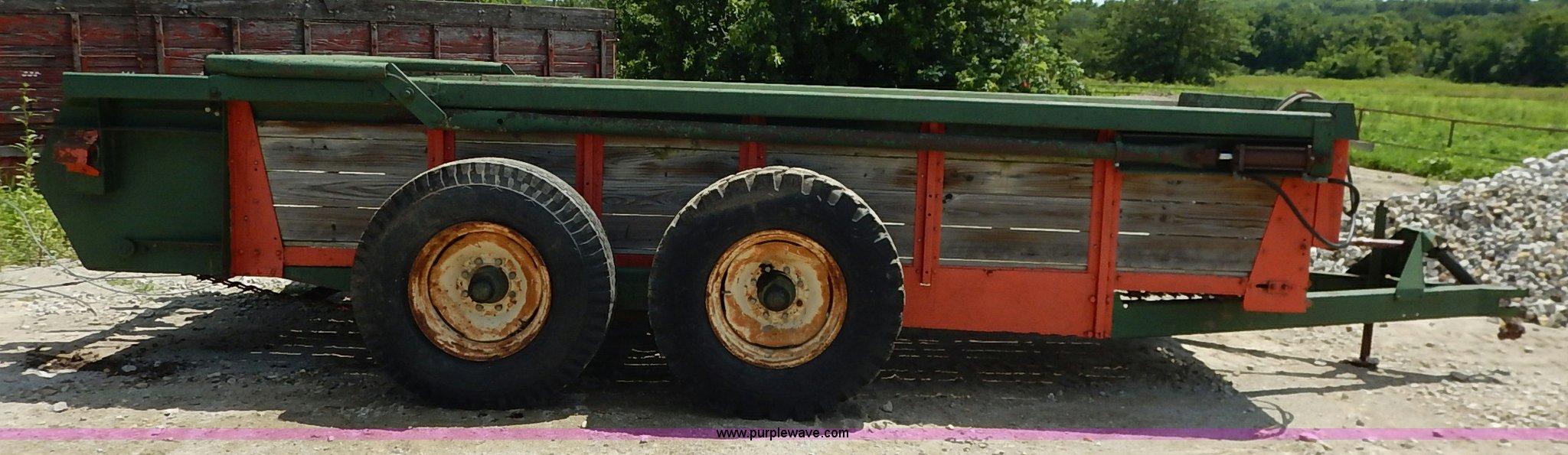 Purple Wave is selling a used Manure Spreader in Kansas. This item is a New Idea manure spreader with the following: 17' x 6', Wood floor, 10 ton capacity, Hydraulics, 540 PTO, Pin hitch, Goodyear 10.00-20 tires