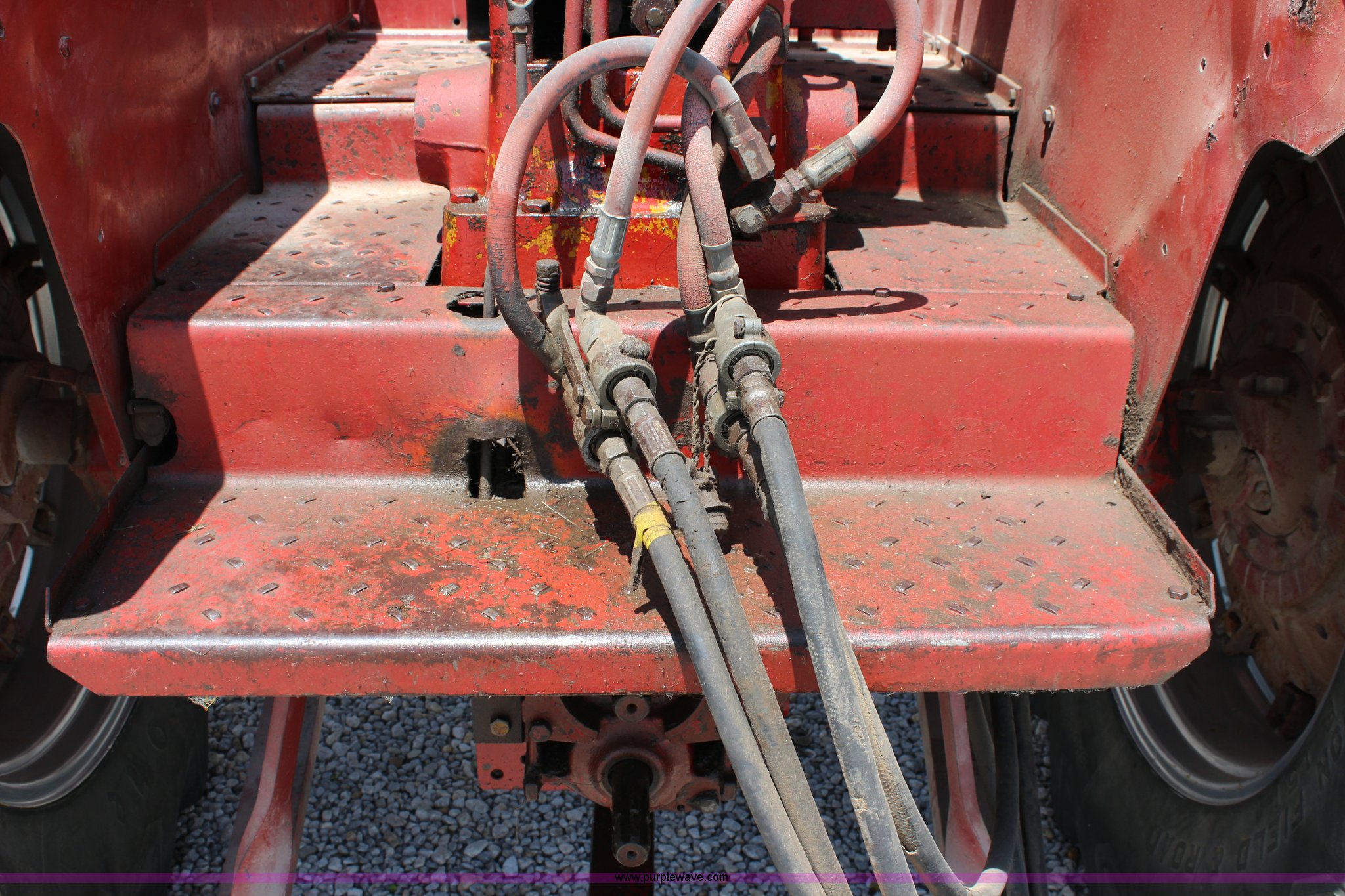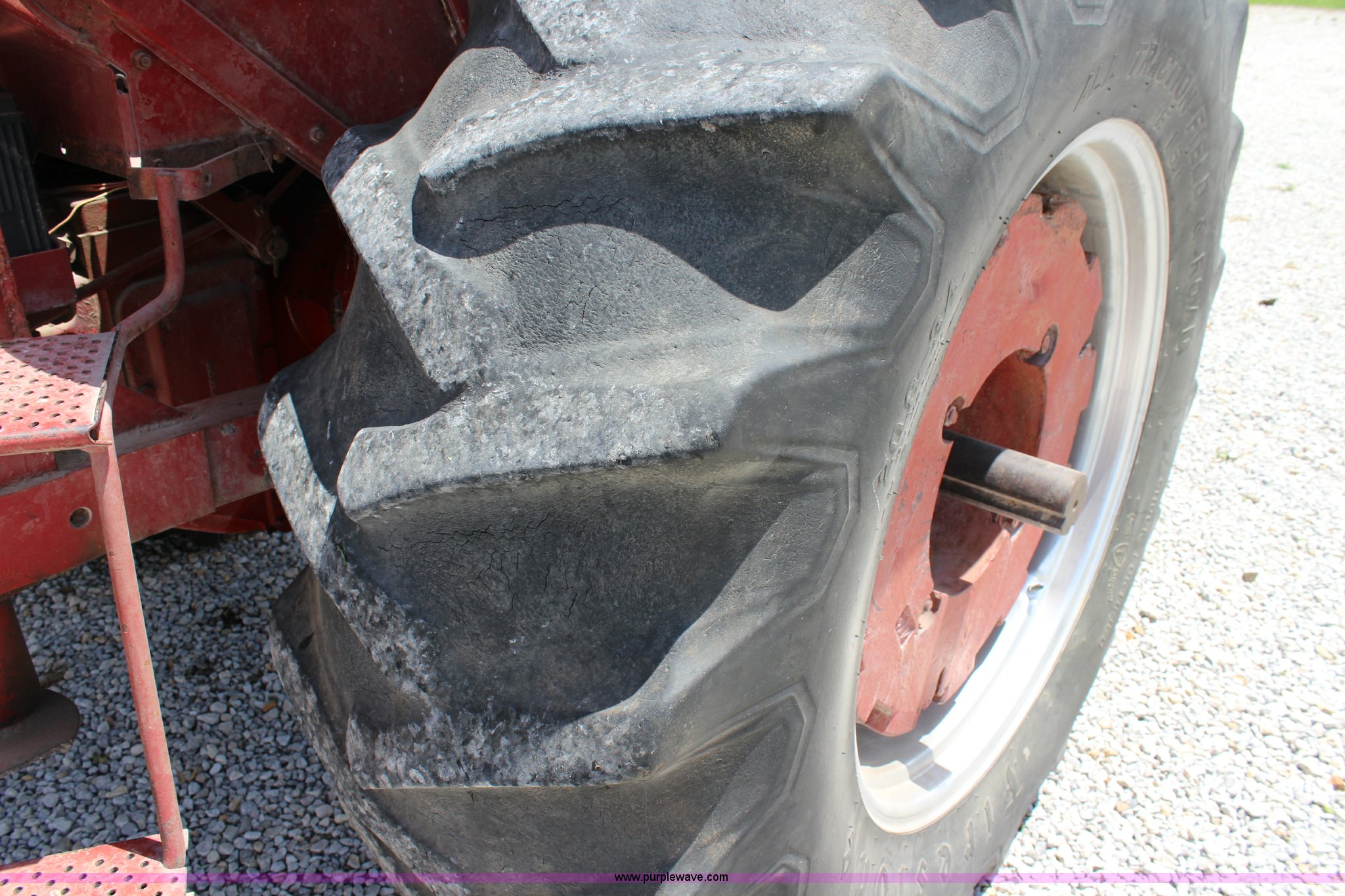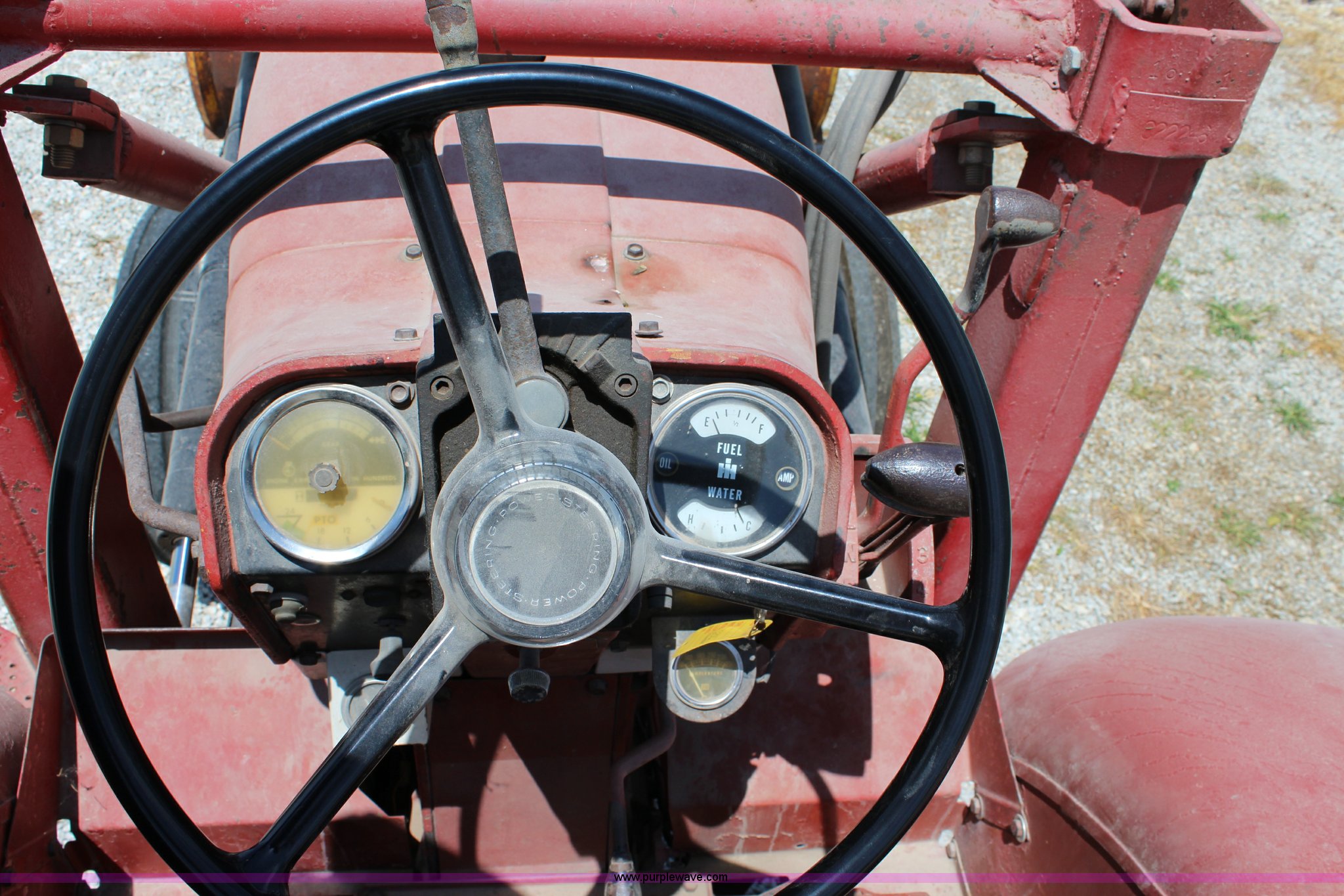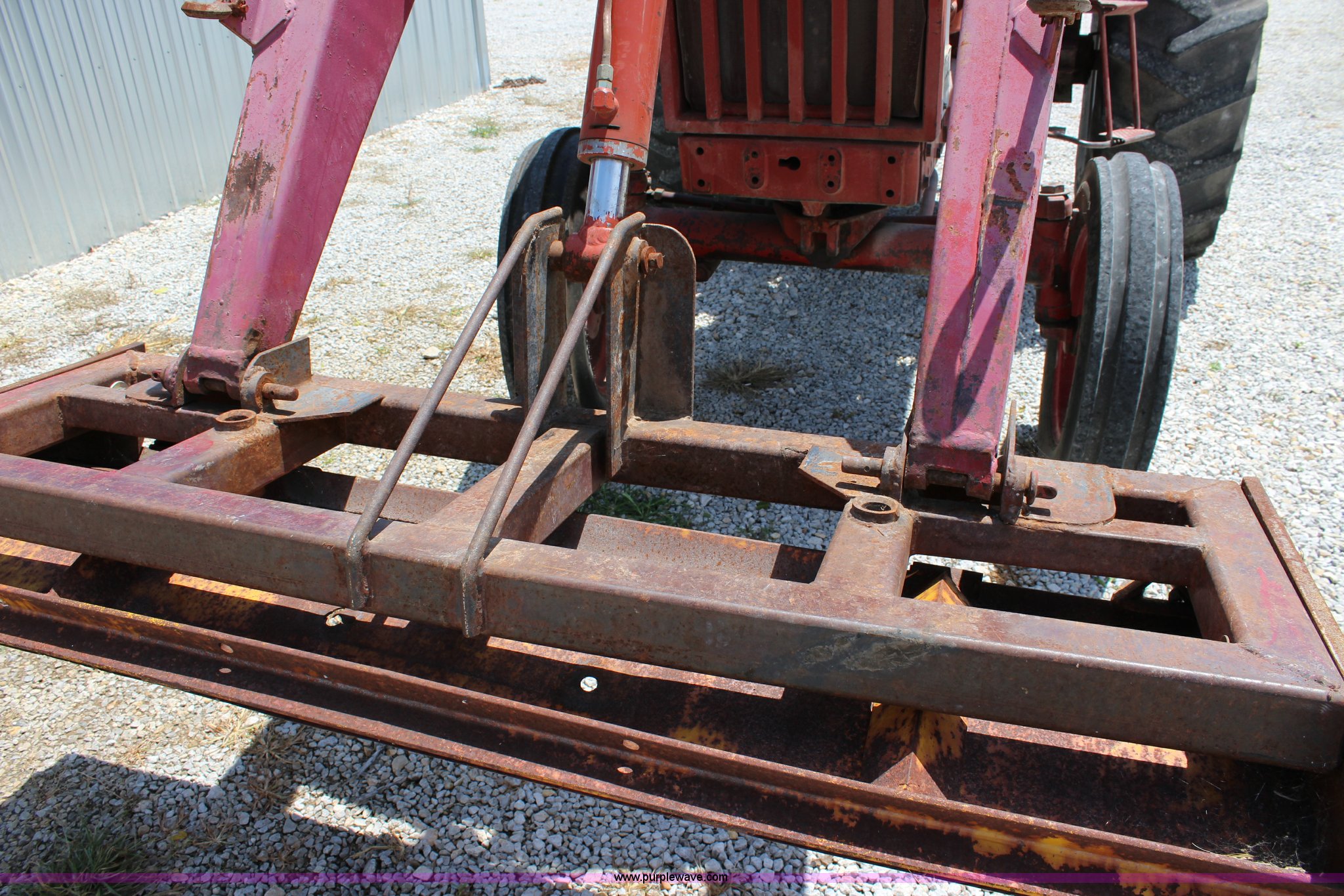 Purple Wave is selling a used Tractor in Kansas. This item is a 1965 International 806 Wheatland tractor with the following: Unknown hours on meter, International 5.9L six cylinder diesel engine, 95 HP, 8F-4R gears, Factory T/A delete, 540/1000 PTO, (2) rear hydraulic remote sets, Du-Al loader, 7'W front blade, Blade can be removed, Two bale spear, Rear wheel weights, 7.50-20 front tires, 20.8-34 rear tires, Serial 5821Y