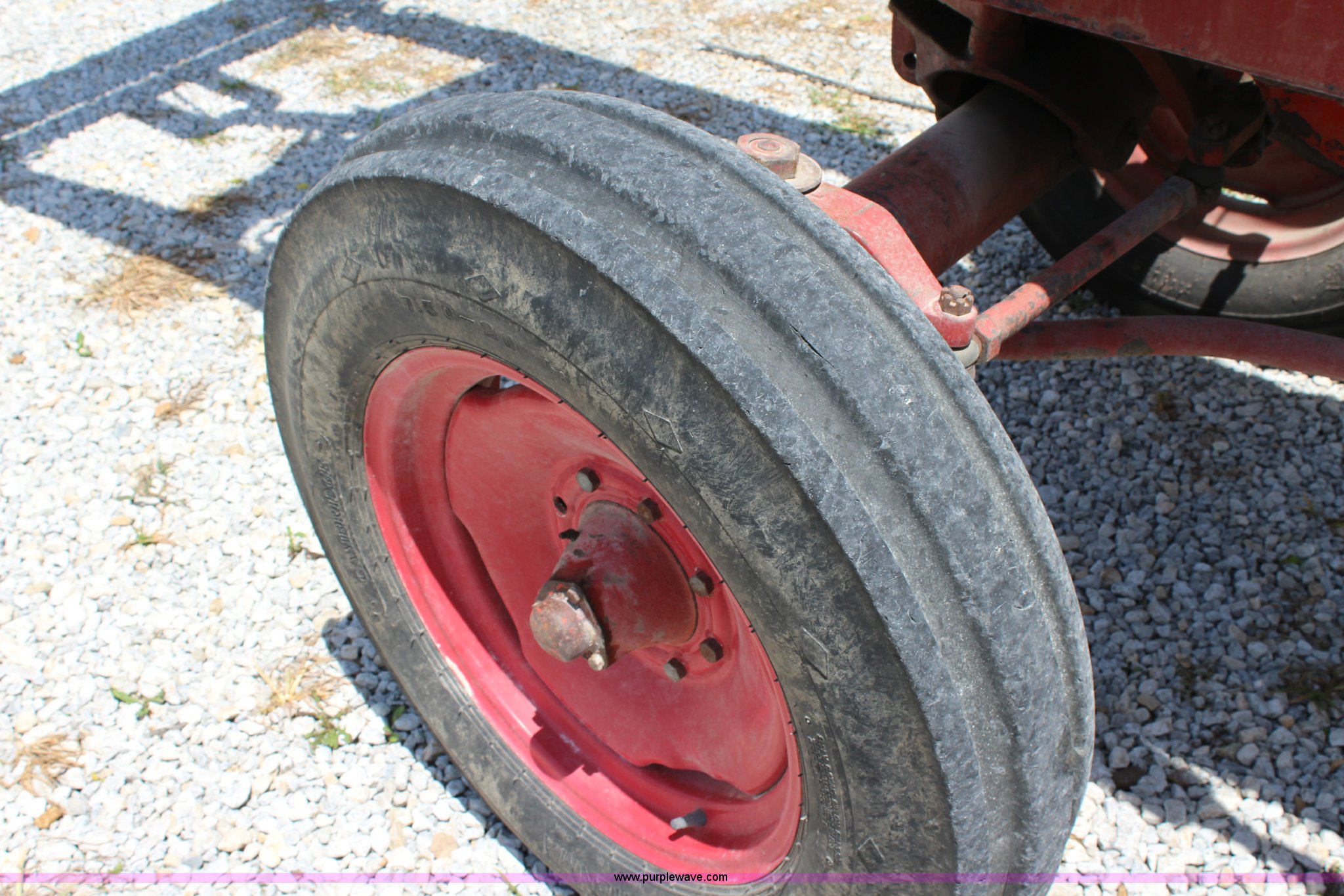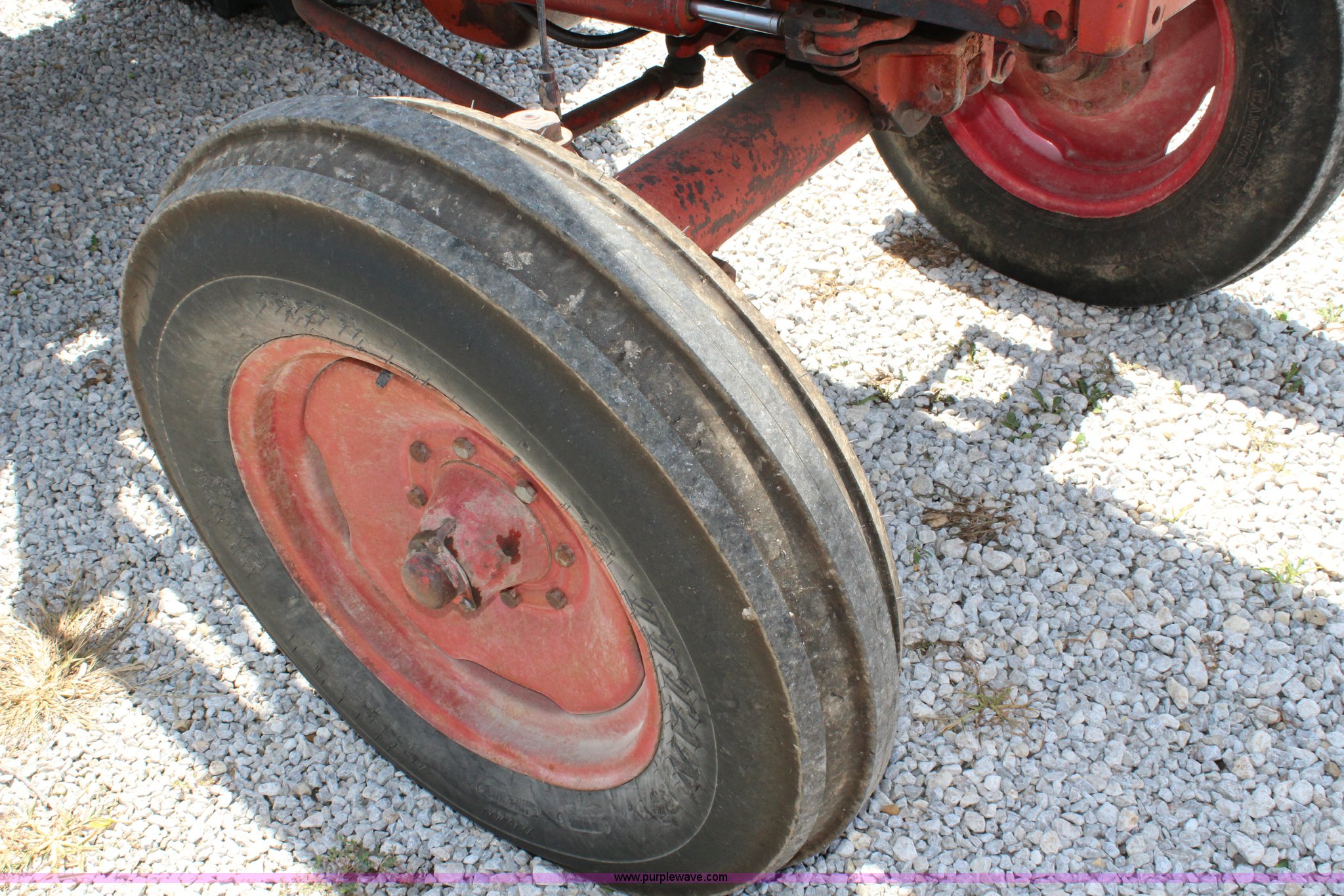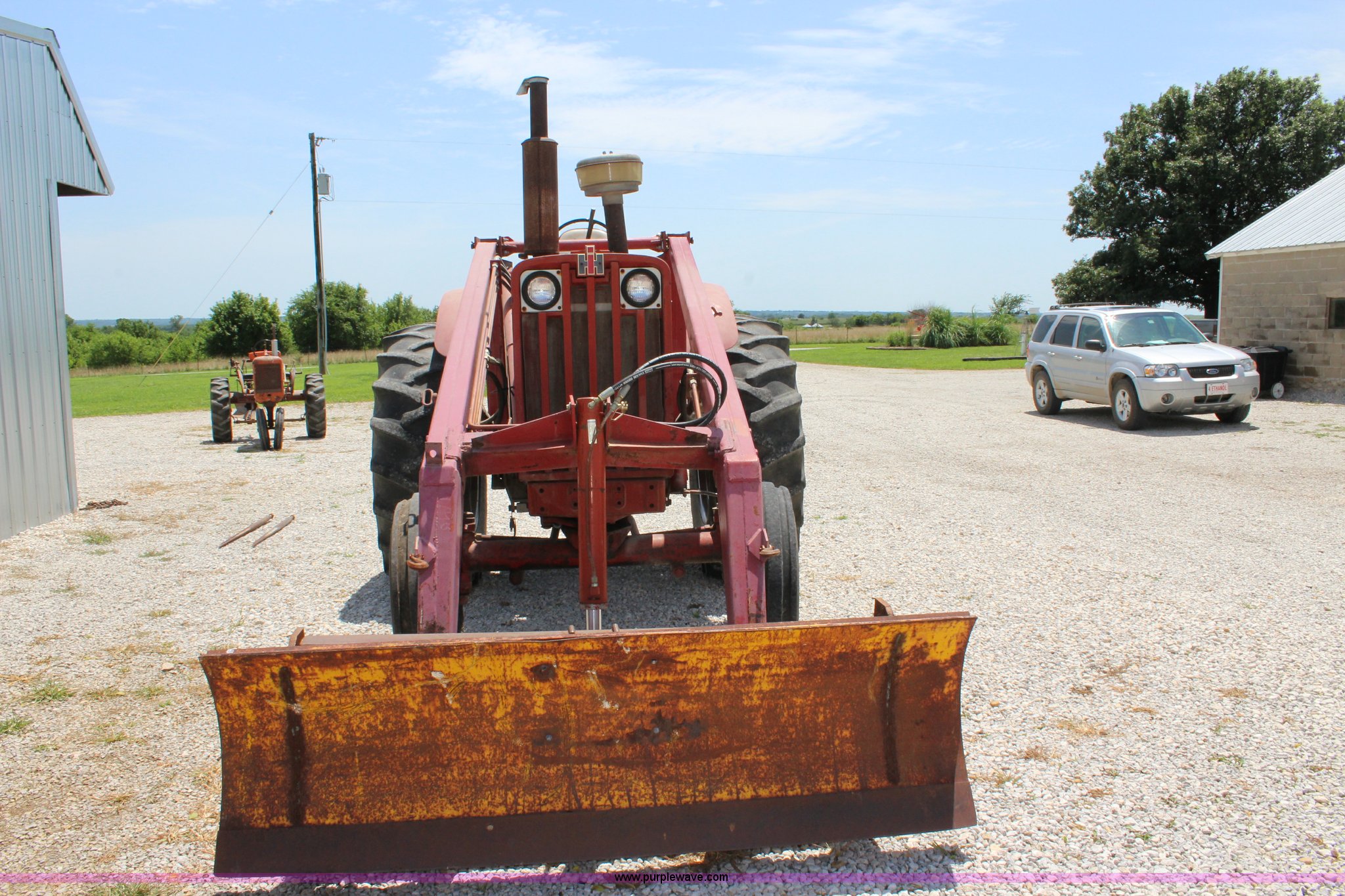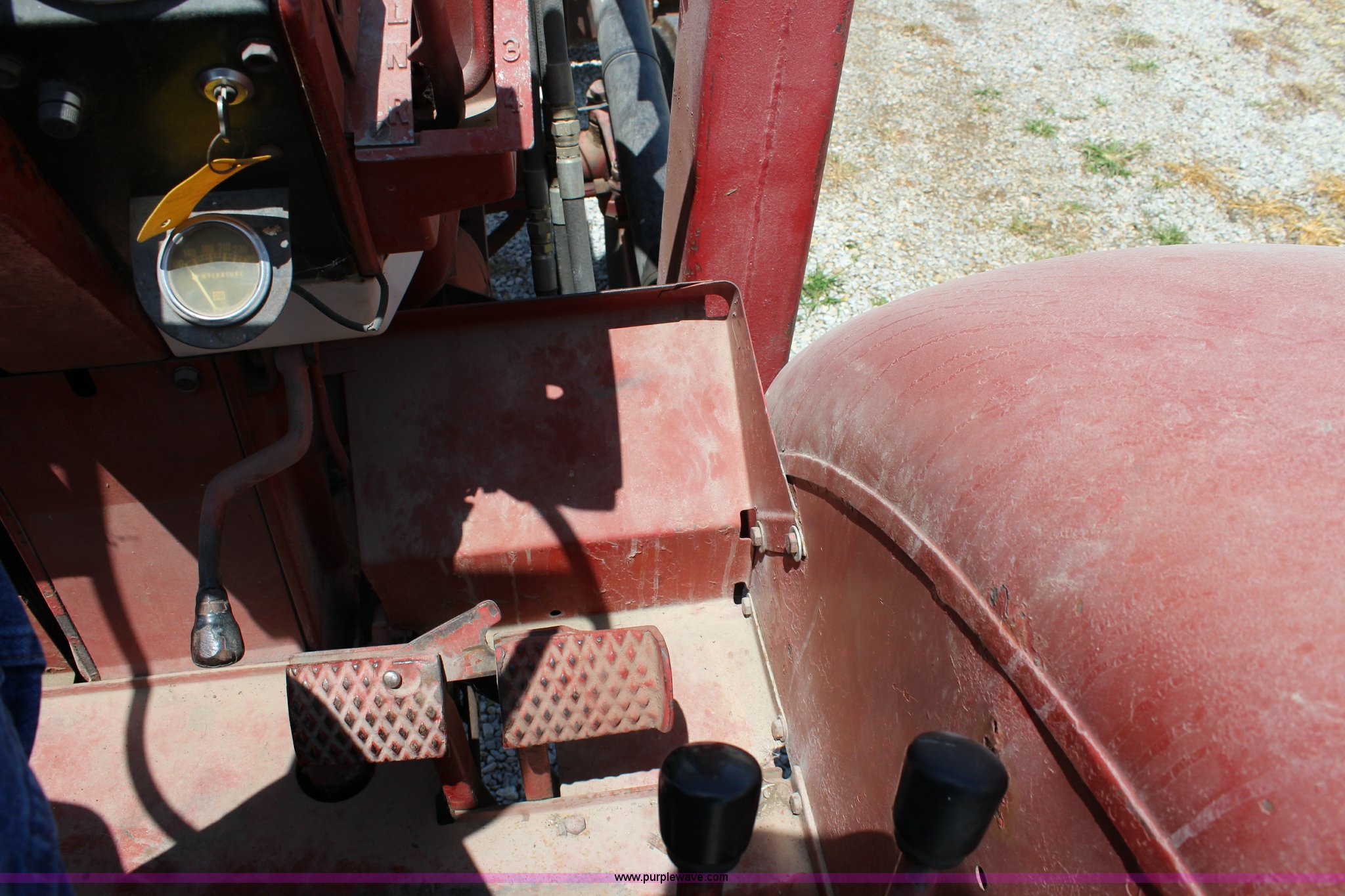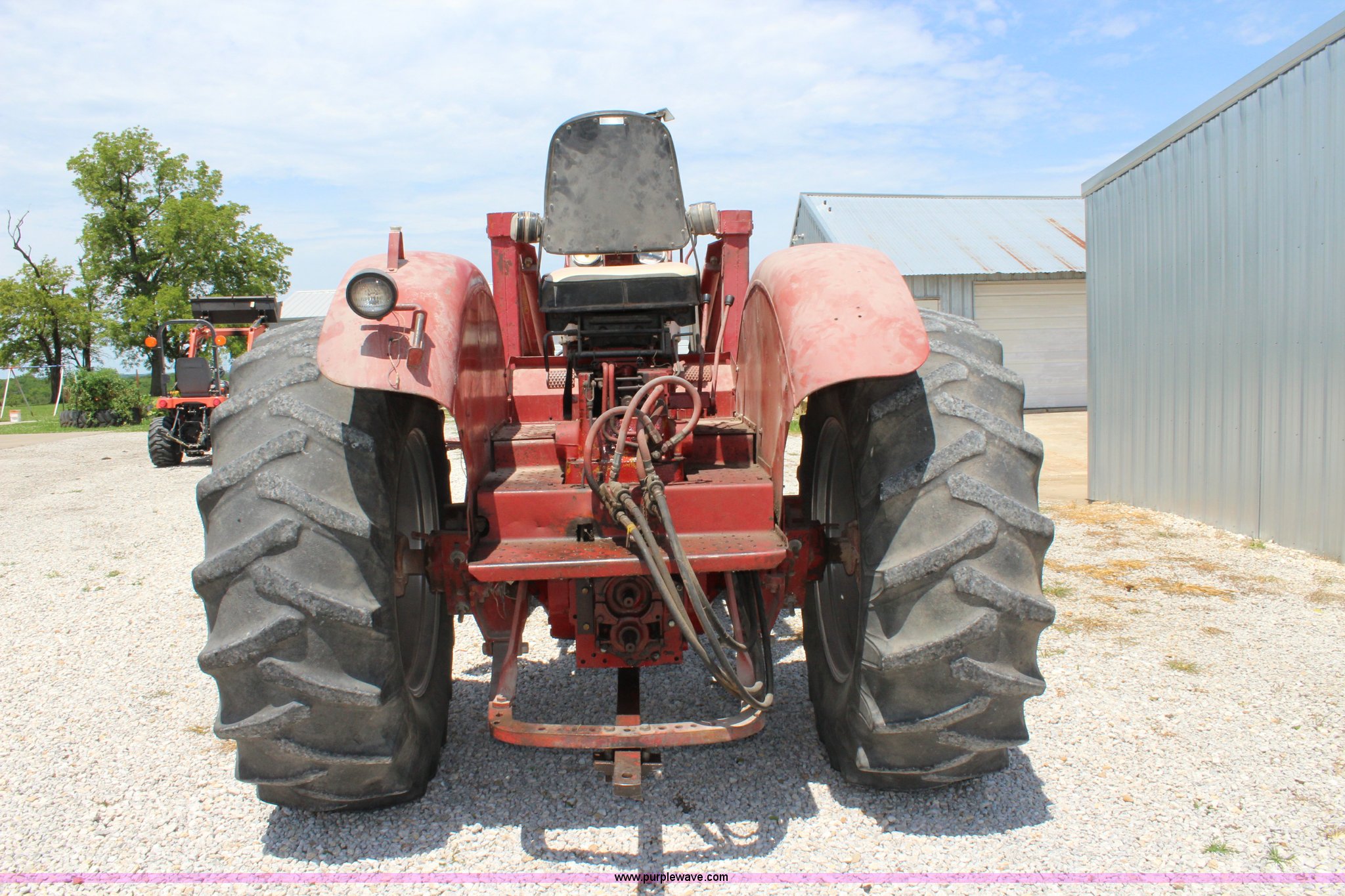Purple Wave is selling a used Tractor in Kansas. This item is a 1965 International 806 Wheatland tractor with the following: Unknown hours on meter, International 5.9L six cylinder diesel engine, 95 HP, 8F-4R gears, Factory T/A delete, 540/1000 PTO, (2) rear hydraulic remote sets, Du-Al loader, 7'W front blade, Blade can be removed, Two bale spear, Rear wheel weights, 7.50-20 front tires, 20.8-34 rear tires, Serial 5821Y
