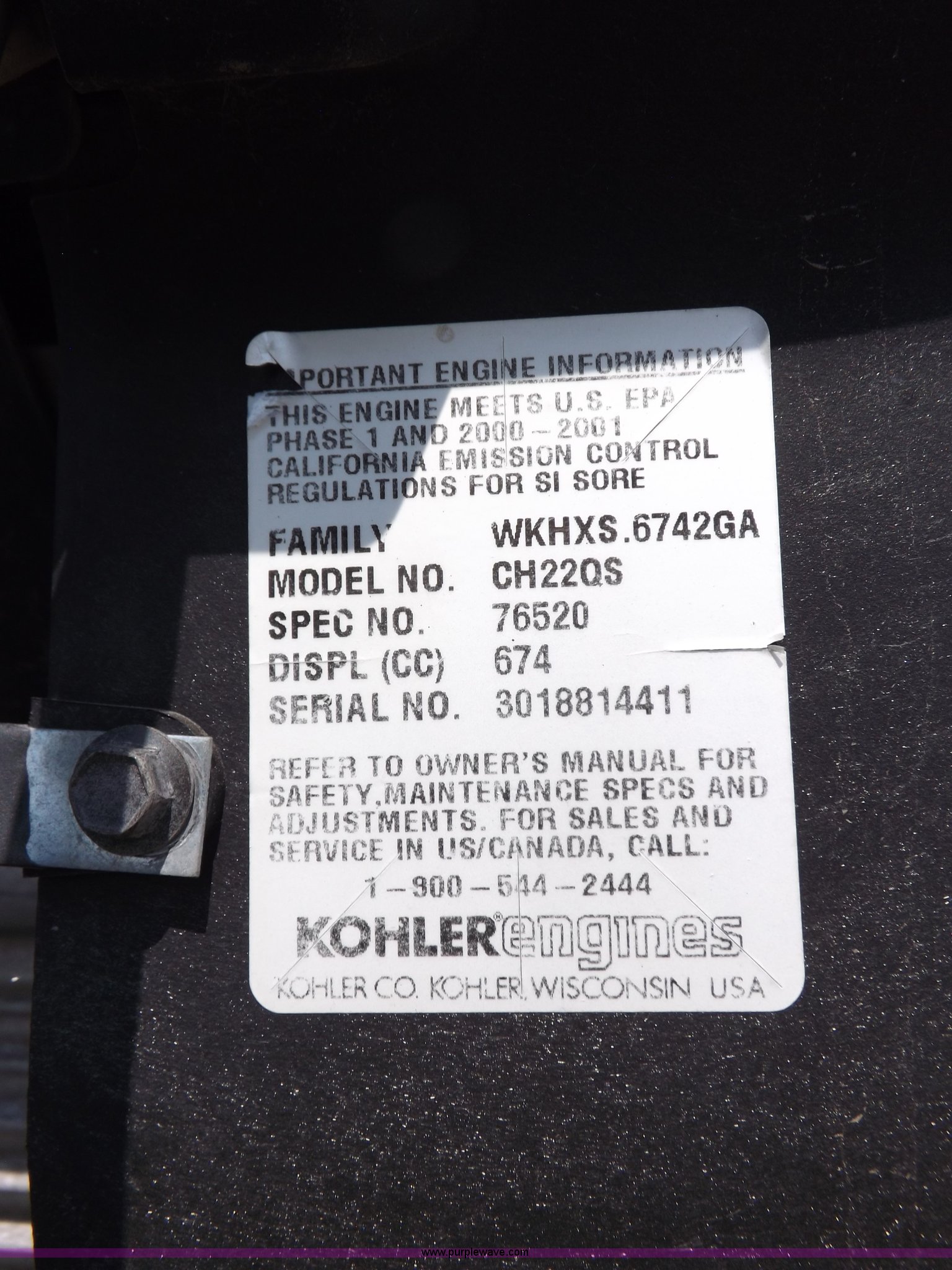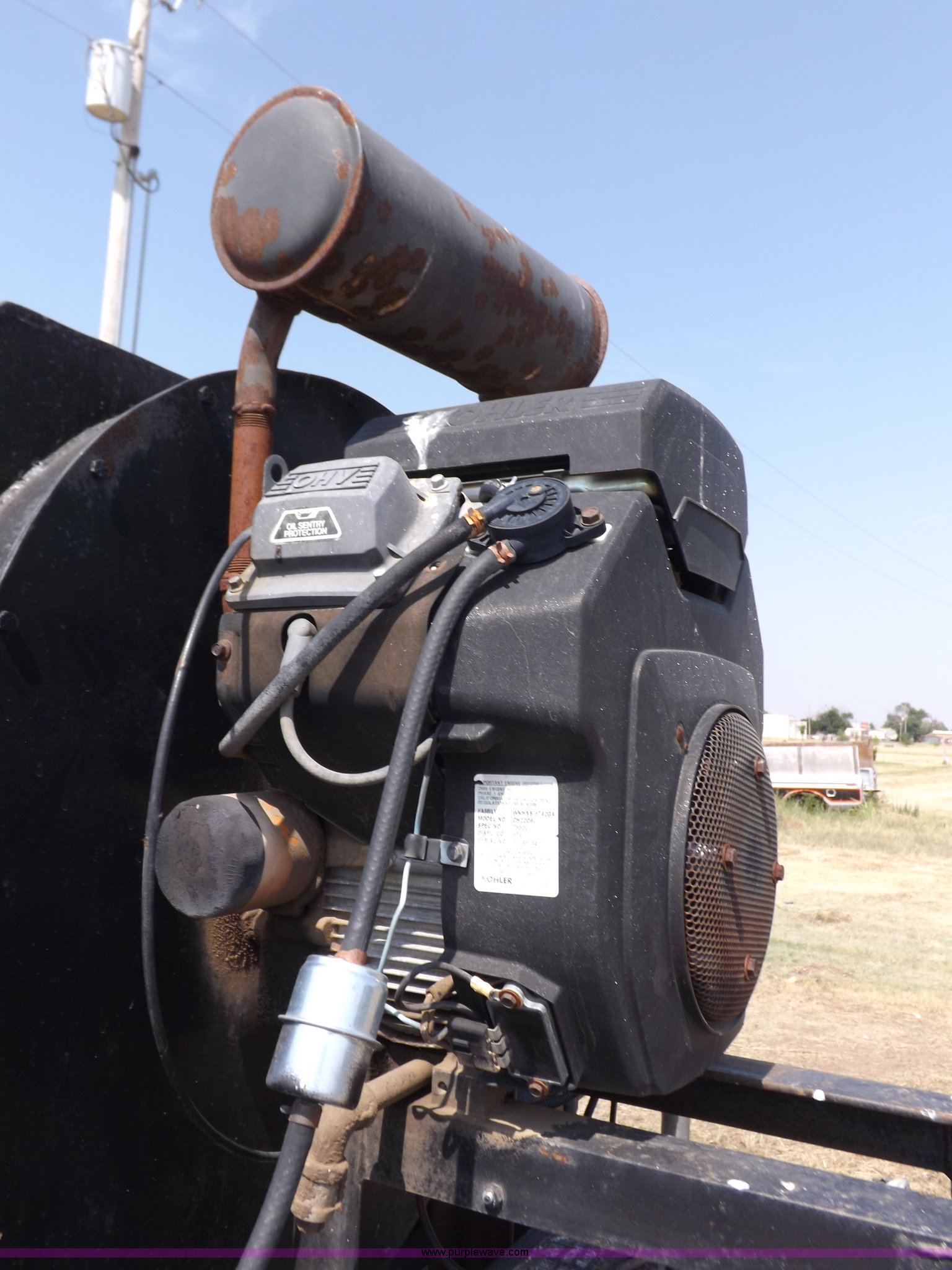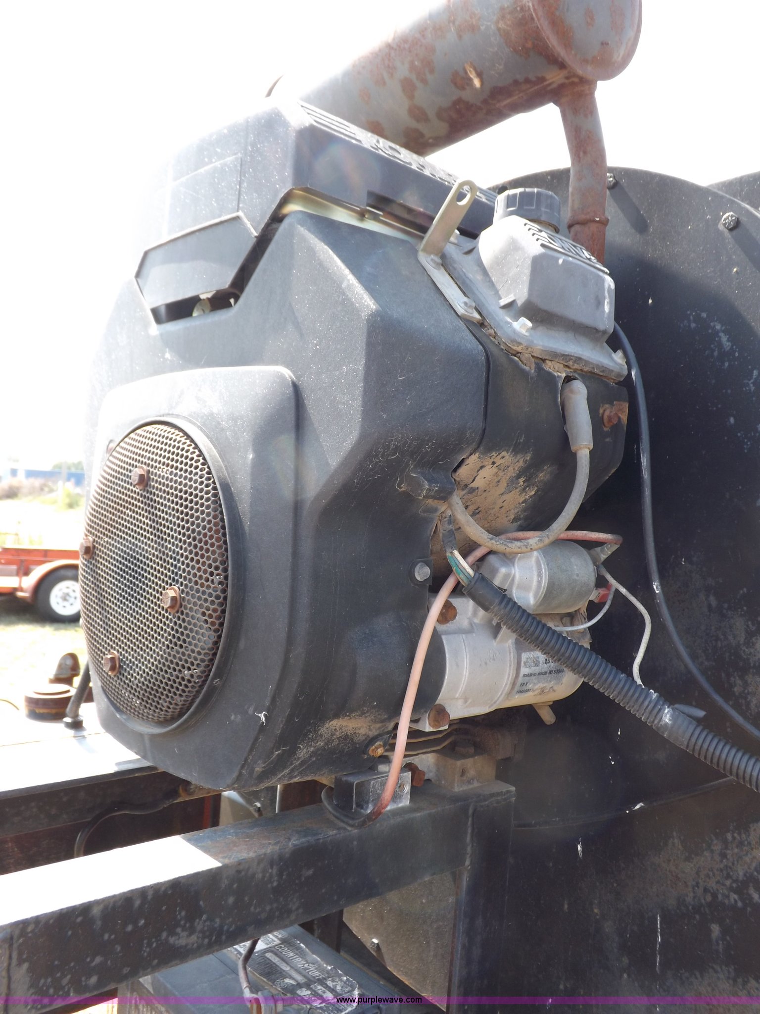 Purple Wave is selling a used Sweeper in Kansas. This item is a Parking lot vacuum with the following: Kohler Command two cylinder gas engine, 22 HP, Electric start, 12V VAC head lift, 6'L x 12"W vacuum head, Casters, Dust control system with pump, 24 gallon tank, 7'L x 45"W x 5'H base, Slides in pickup truck bed