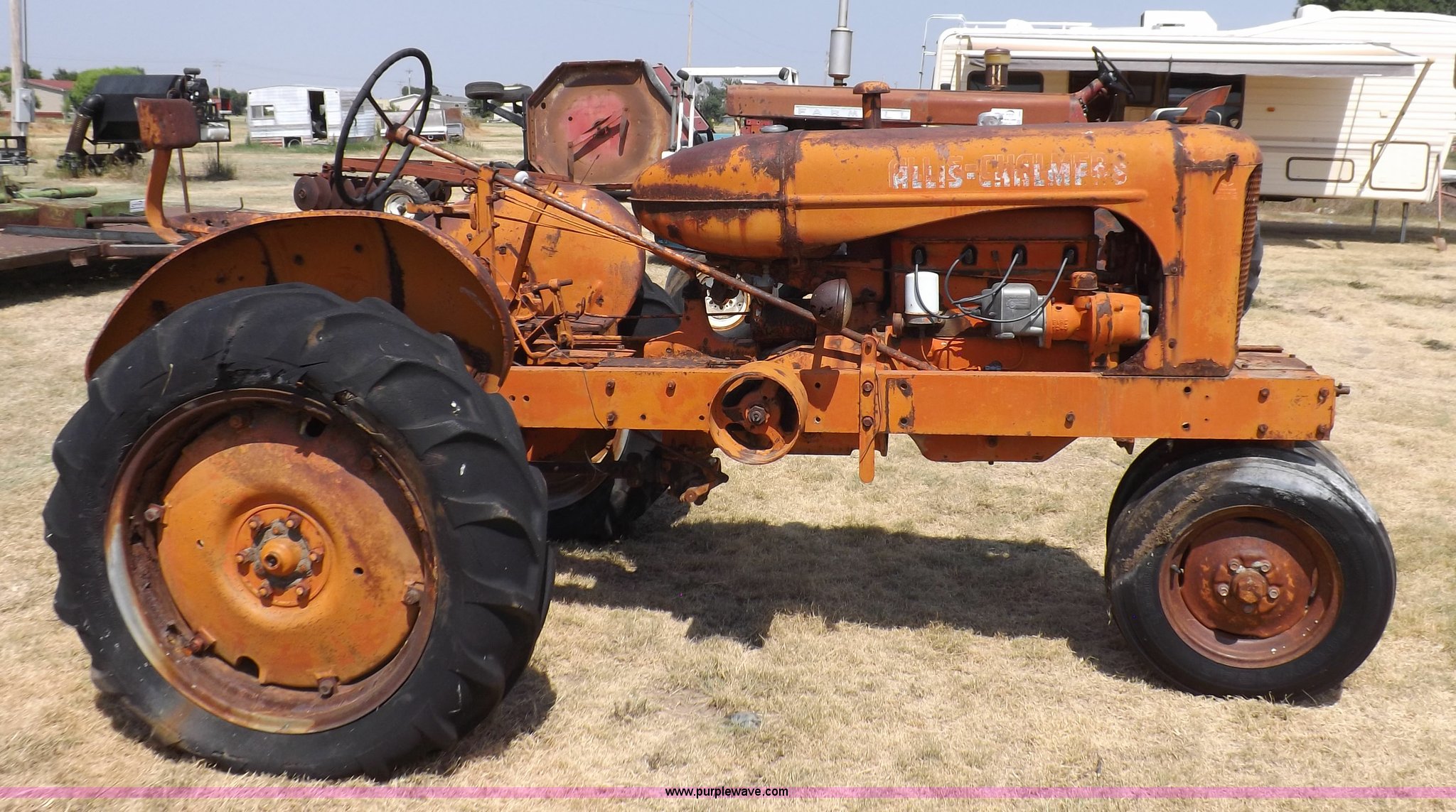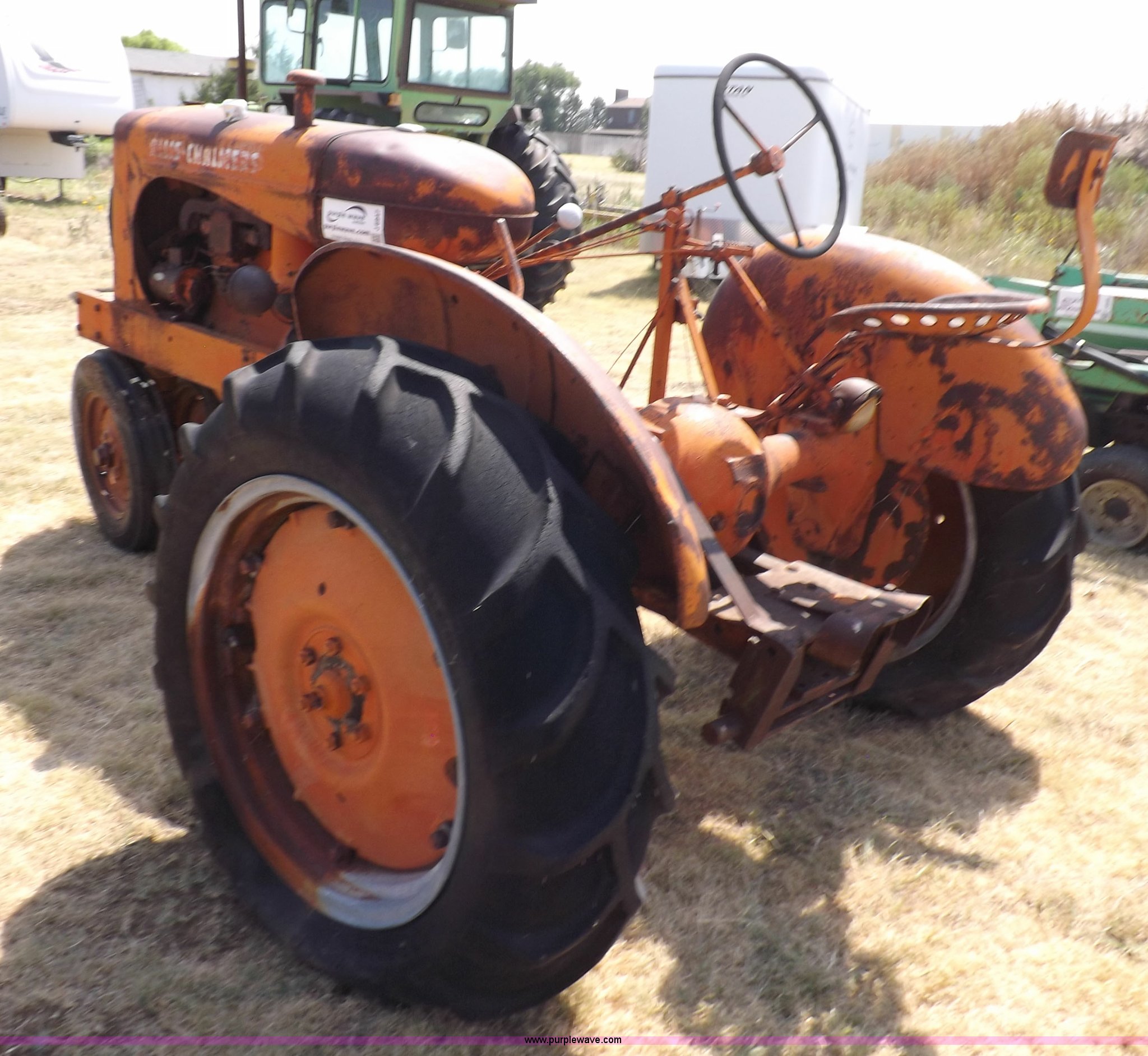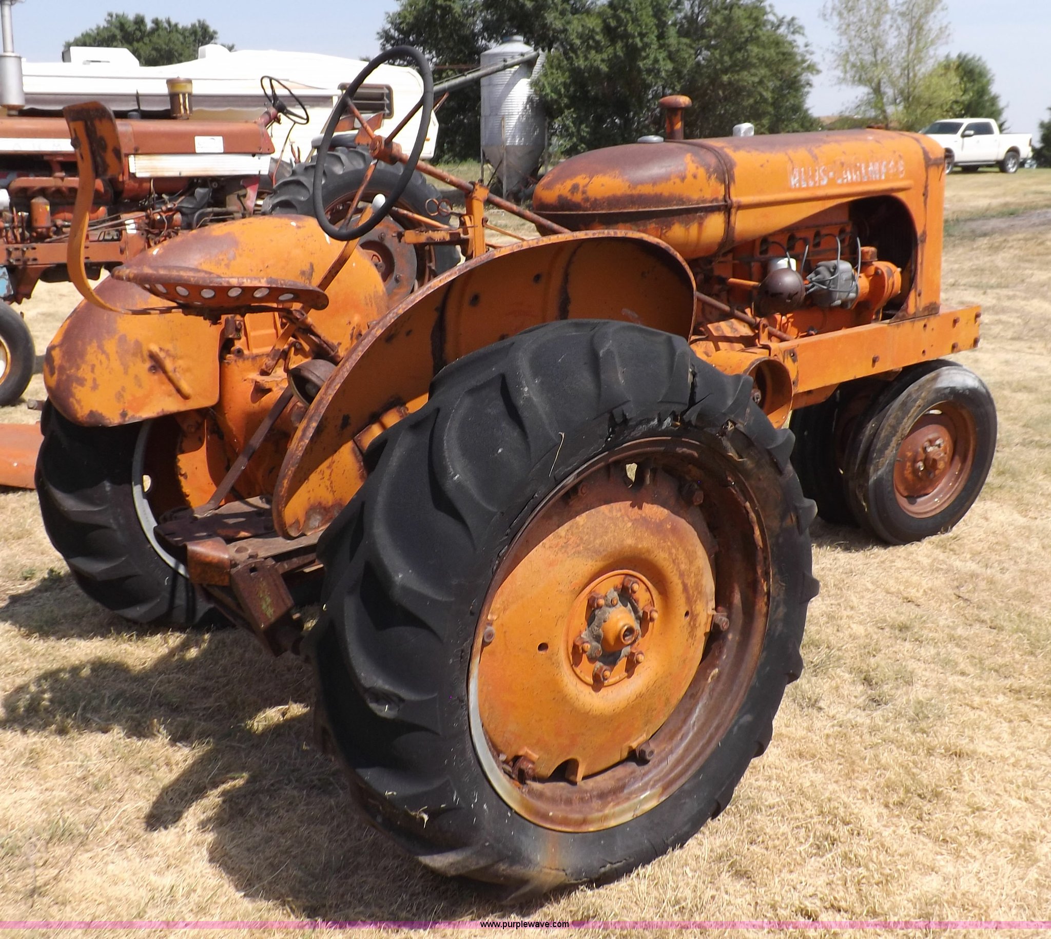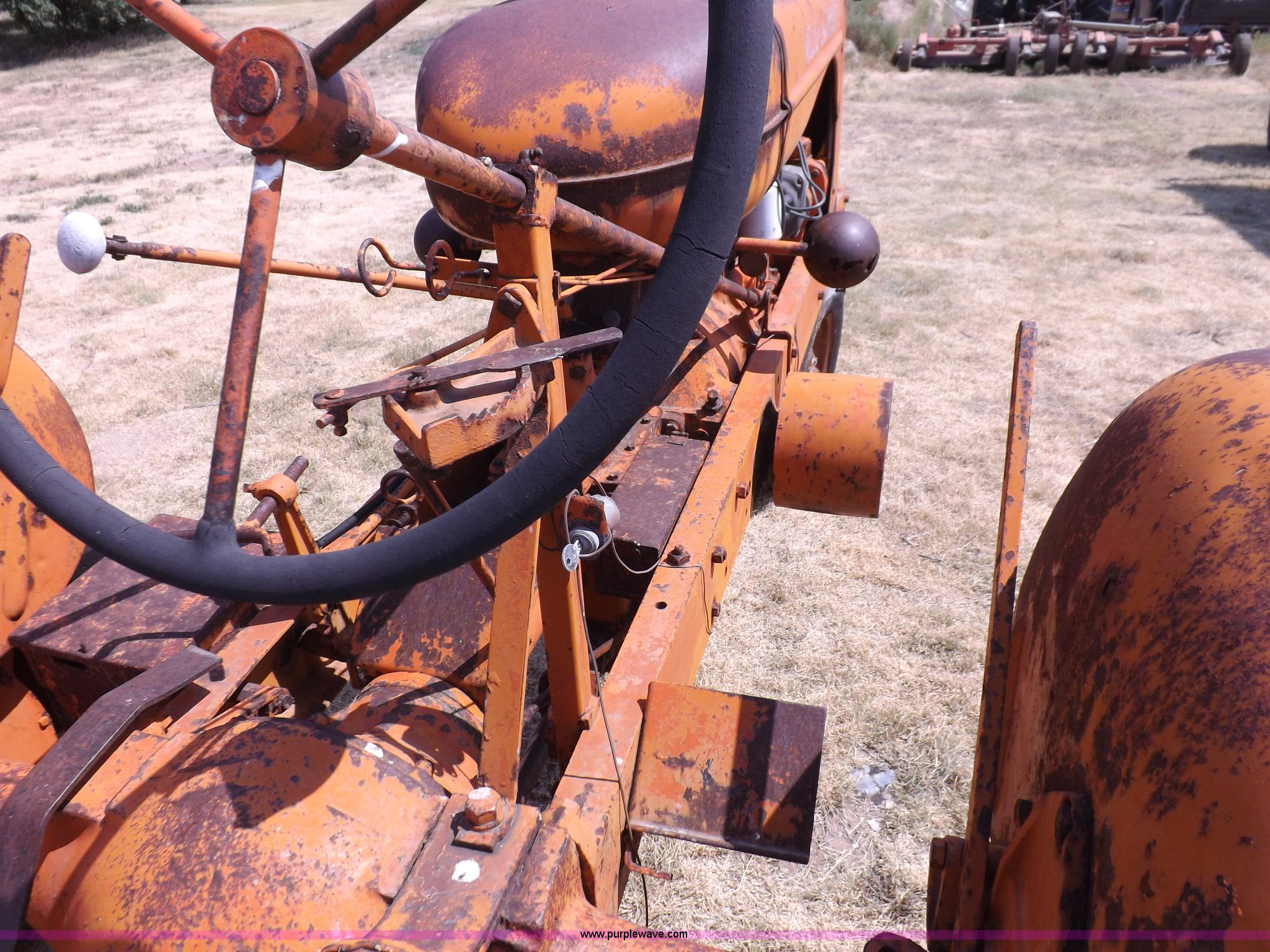 Purple Wave is selling a used Tractor in Kansas. This item is a Allis Chalmers WC tractor with the following: Allis Chalmers four cylinder gas engine, Manual transmission, 4F-1R gears, 540 PTO, 5.50-16 front tires, 11-26 rear tires, Engine is stuck, Serial WC159081