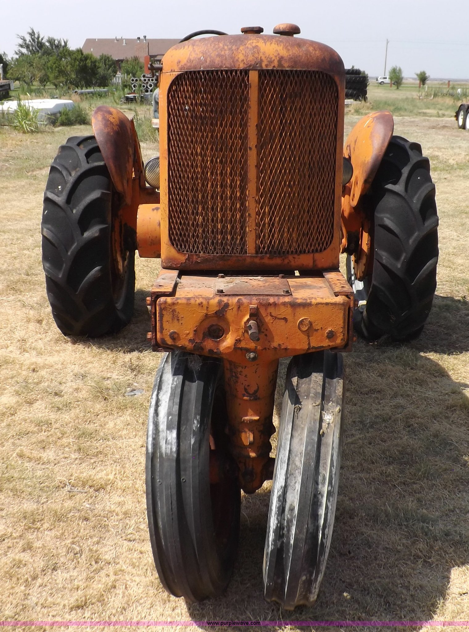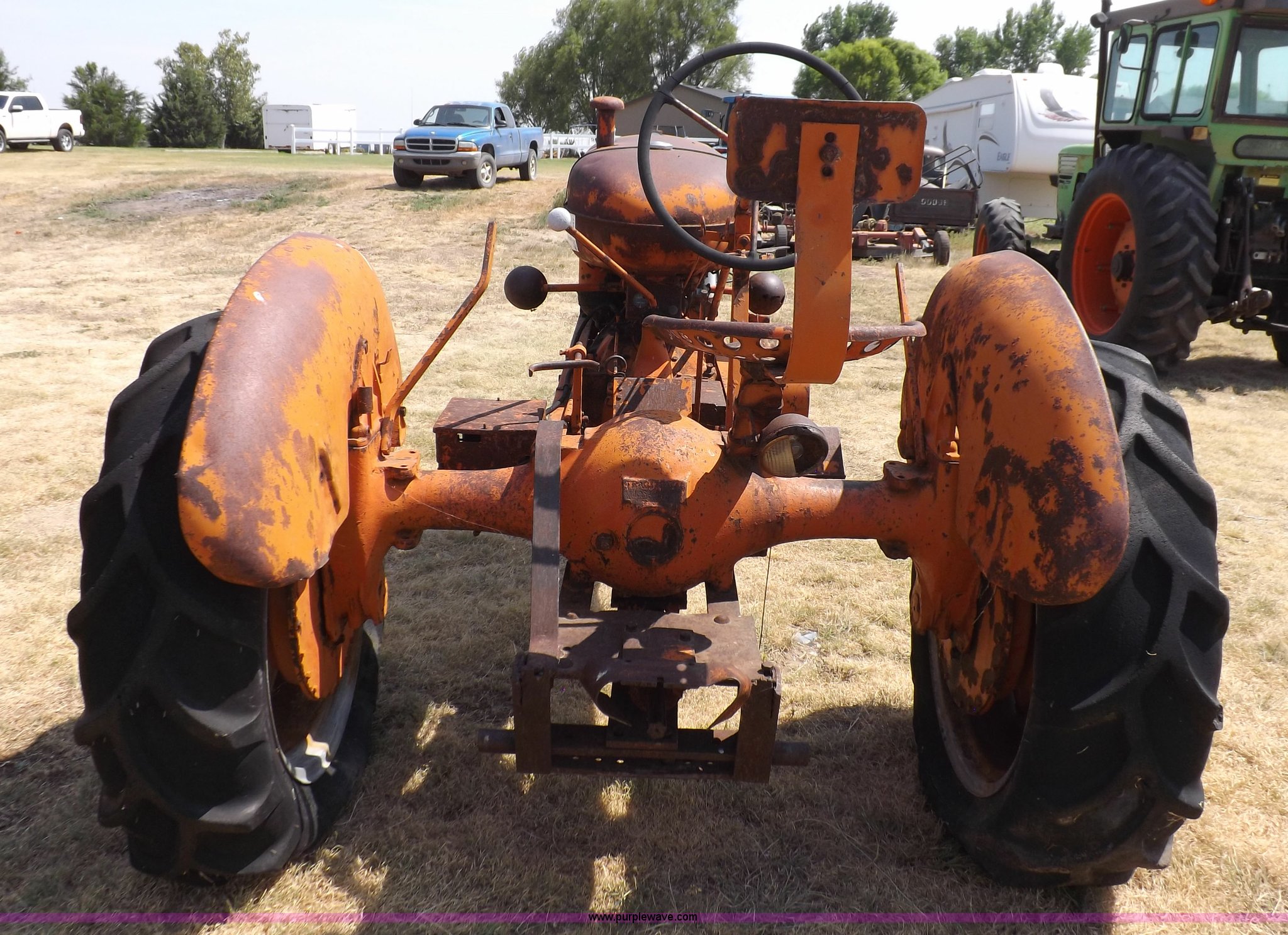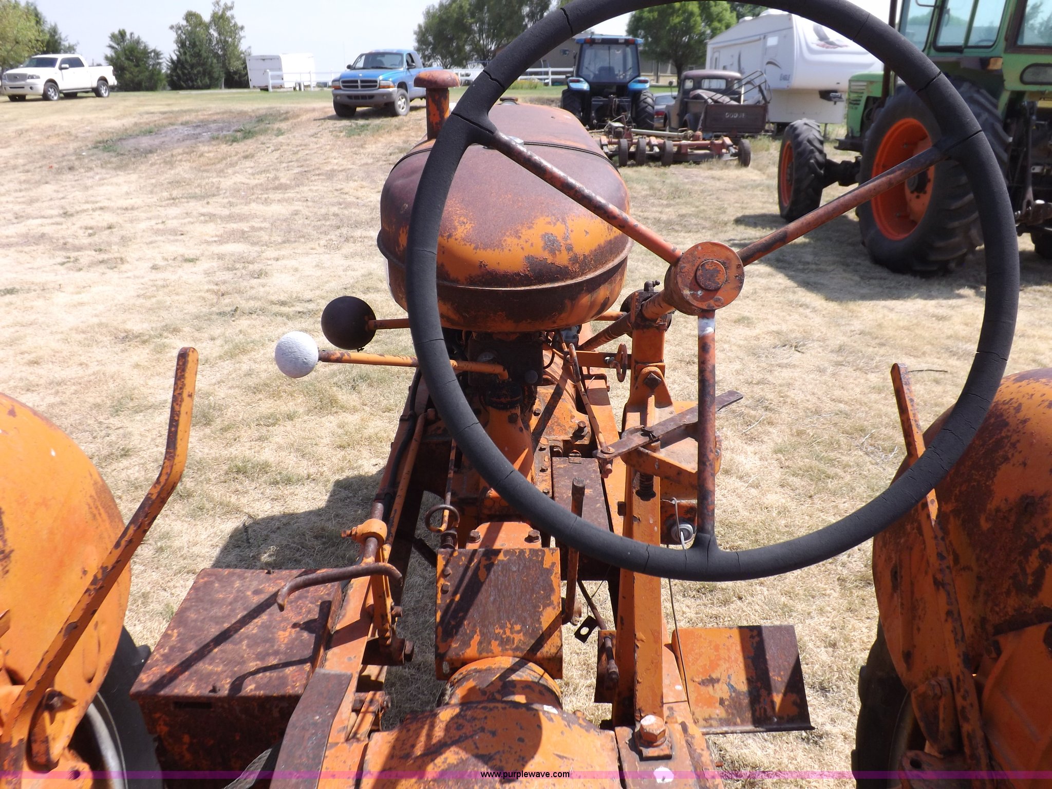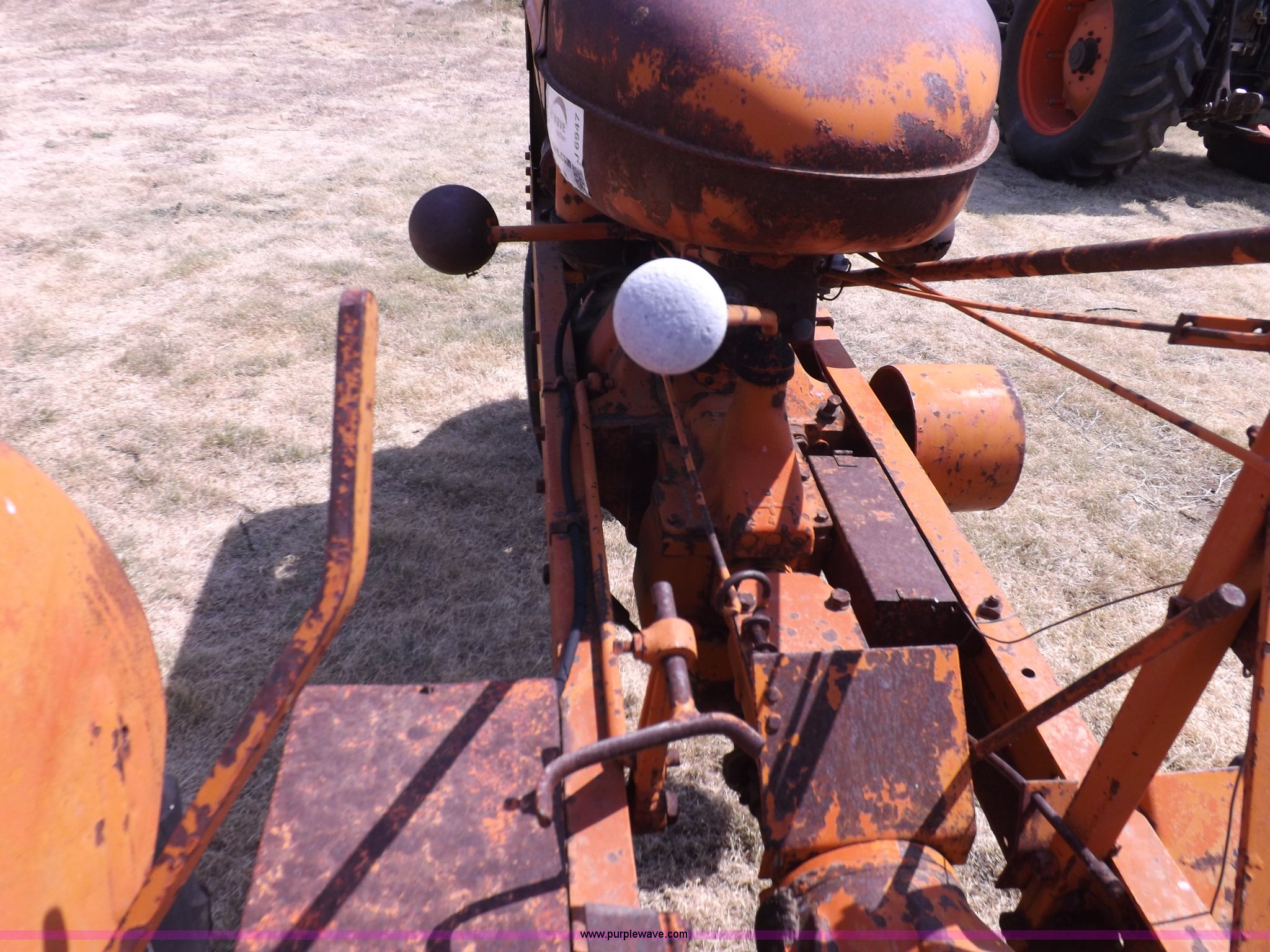 Purple Wave is selling a used Tractor in Kansas. This item is a Allis Chalmers WC tractor with the following: Allis Chalmers four cylinder gas engine, Manual transmission, 4F-1R gears, 540 PTO, 5.50-16 front tires, 11-26 rear tires, Engine is stuck, Serial WC159081