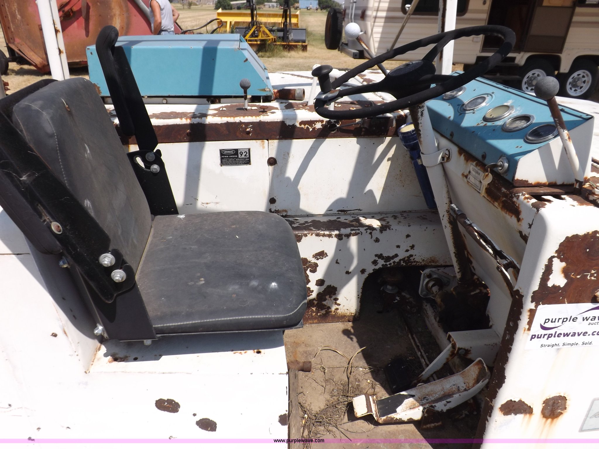Tennant 92 sweeper. 1,534 hours on meter, Kaiser Jeep four cylinder gas engine Model 4F-IPU, Hydrostatic transmission, 6.9-9 rear tire, Operator's manual, Non-operational unit, Serial 920179. 4105 Bell Ct.. Garden City, KS 67846