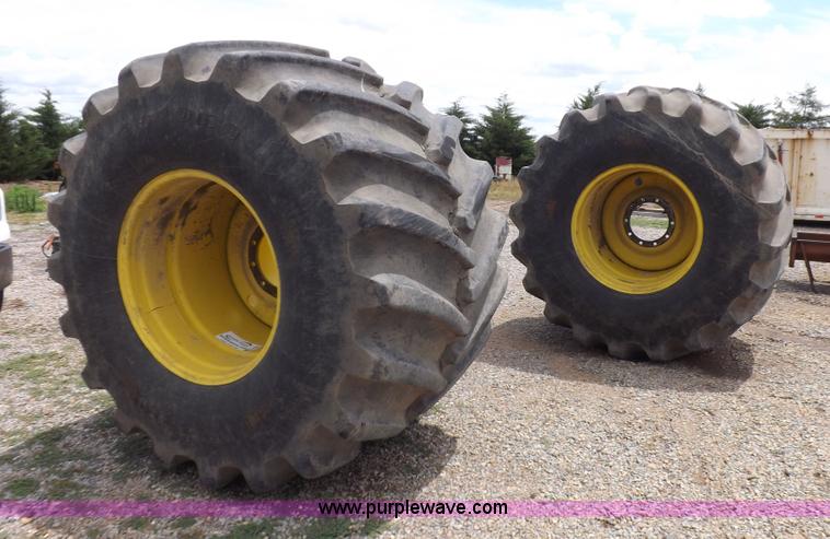 (2) flotation tires. 76x50.00-32, 1250/45-32, John Deere wheels, Firestone flotation 23 degree DT, 16 PR. 3003 FF Rd. Copeland, KS 67837