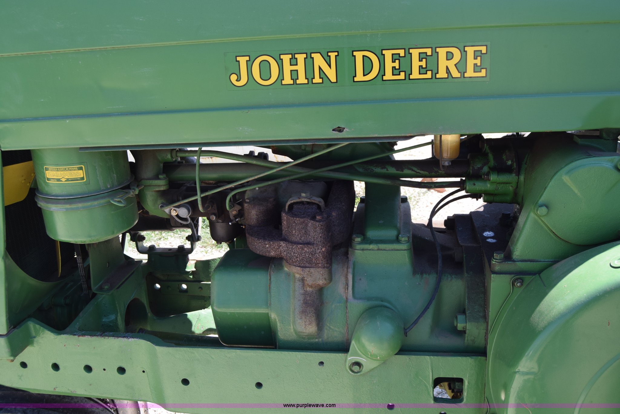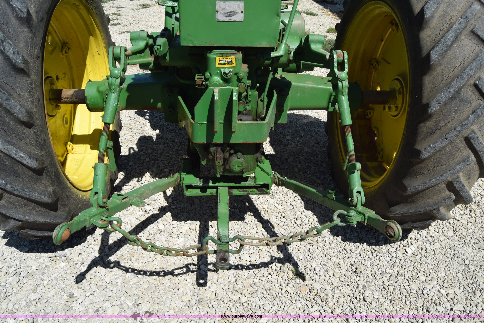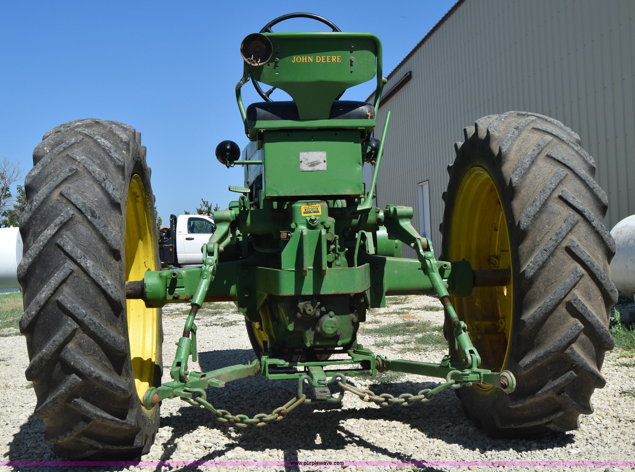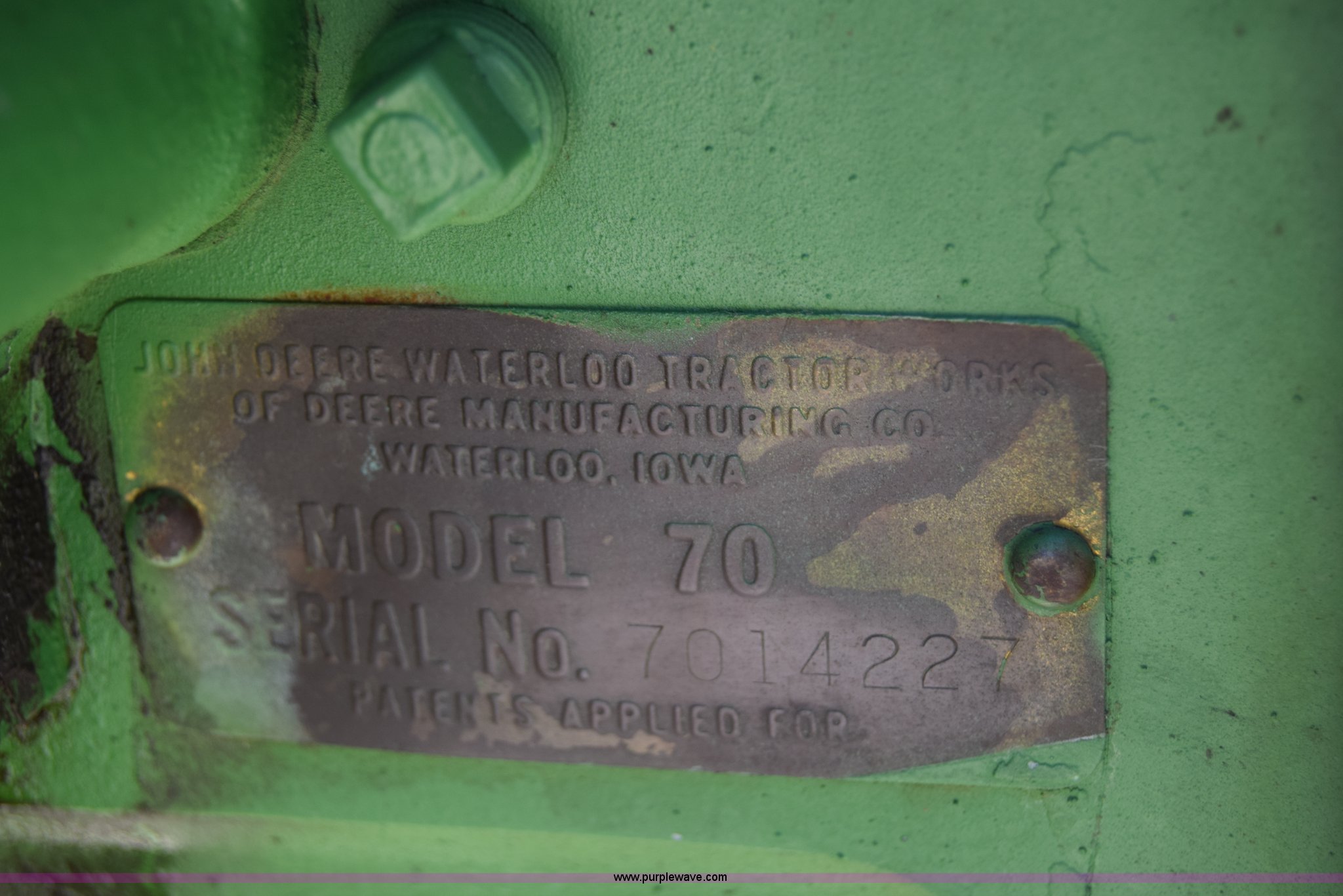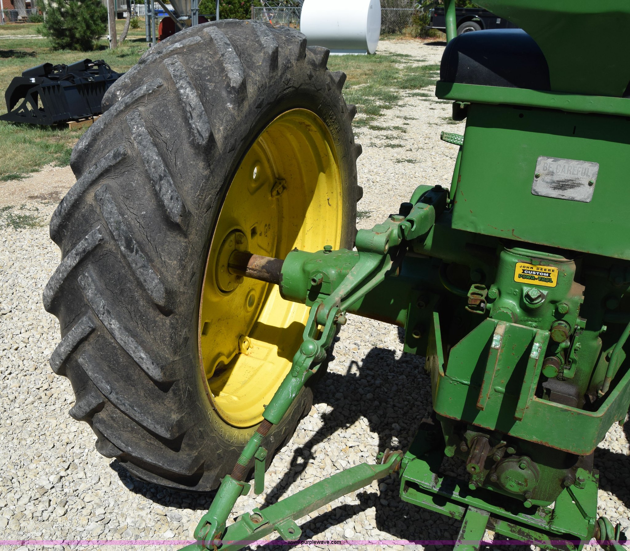 Purple Wave is selling a used Tractor in Kansas. This item is a 1954 John Deere 70 tractor with the following: John Deere 6.2L two cylinder gas engine, 45 HP, Manual transmission, 6F-1R gears, Front work lights, Powr-Trol unit, Three point, 540 PTO, 6.00-16 front tires, Recently replaced, 15.5-38 rear tires, Serial 7014227