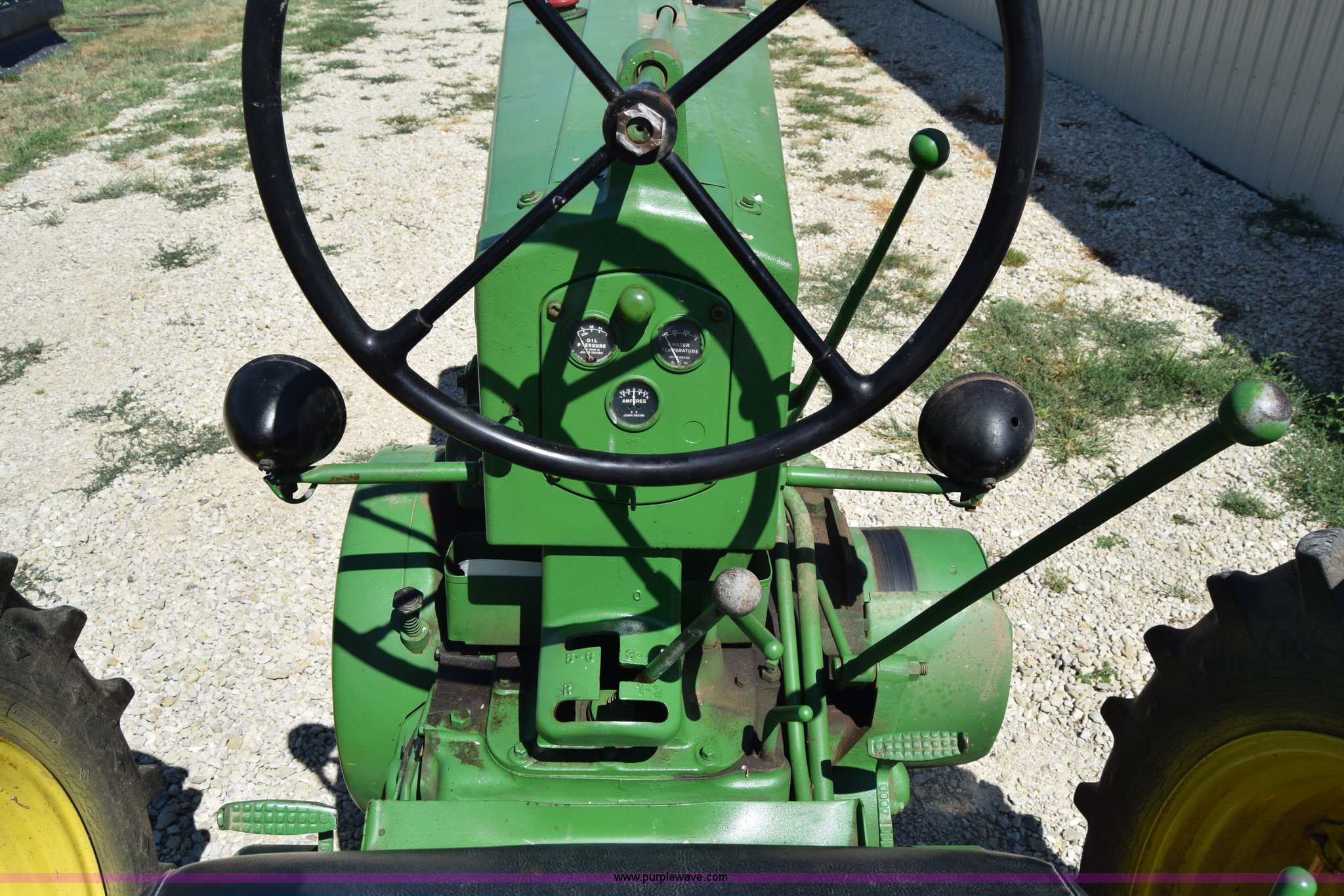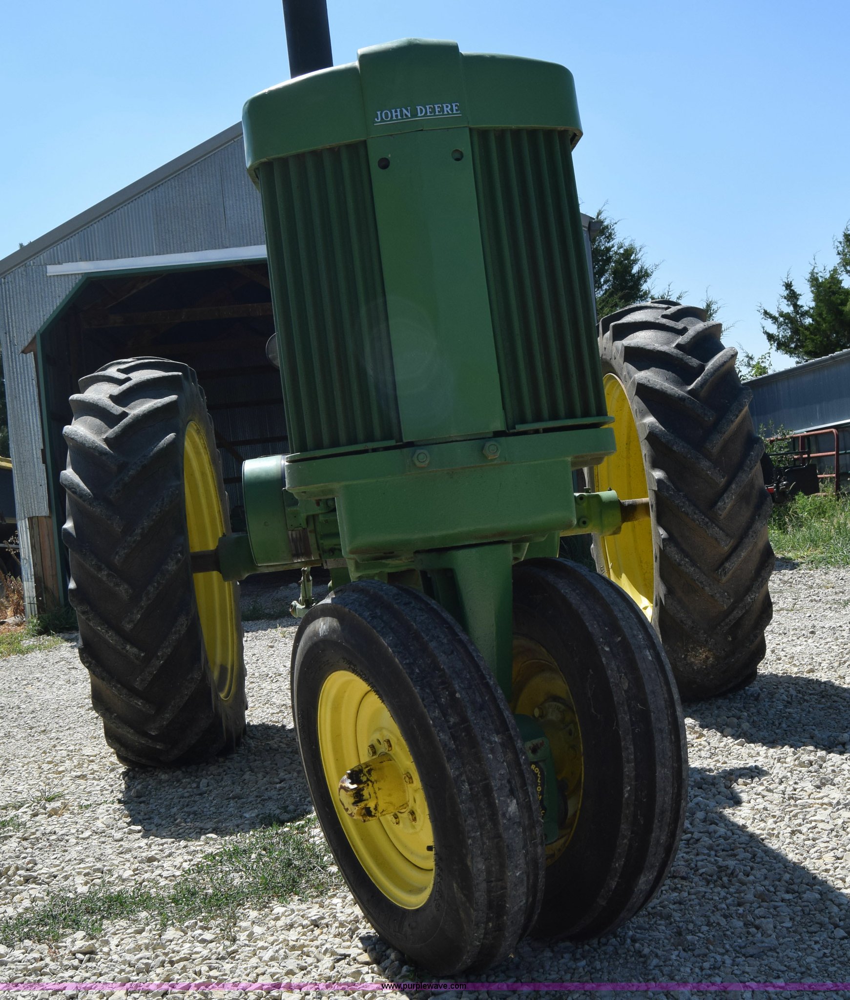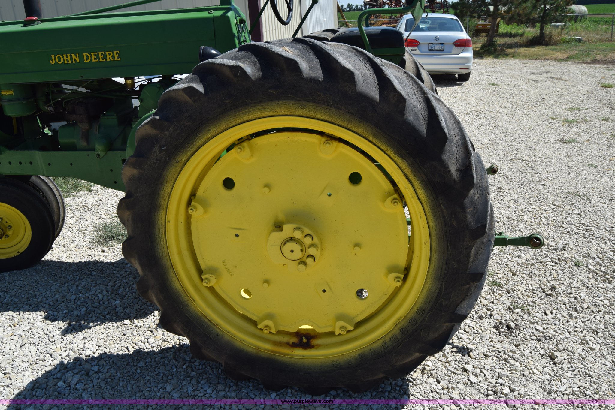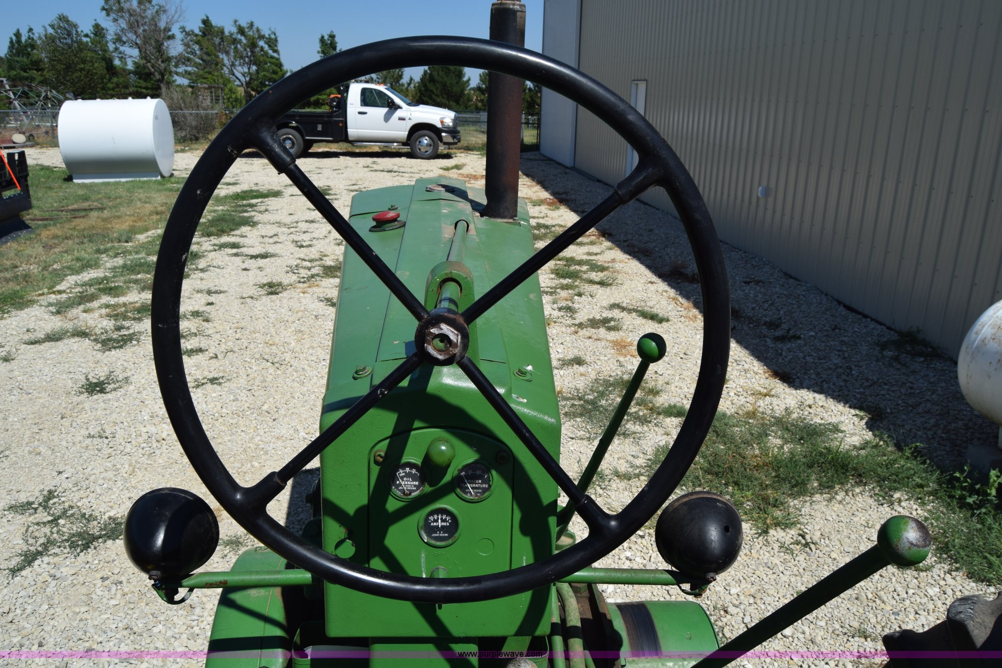 Purple Wave is selling a used Tractor in Kansas. This item is a 1954 John Deere 70 tractor with the following: John Deere 6.2L two cylinder gas engine, 45 HP, Manual transmission, 6F-1R gears, Front work lights, Powr-Trol unit, Three point, 540 PTO, 6.00-16 front tires, Recently replaced, 15.5-38 rear tires, Serial 7014227