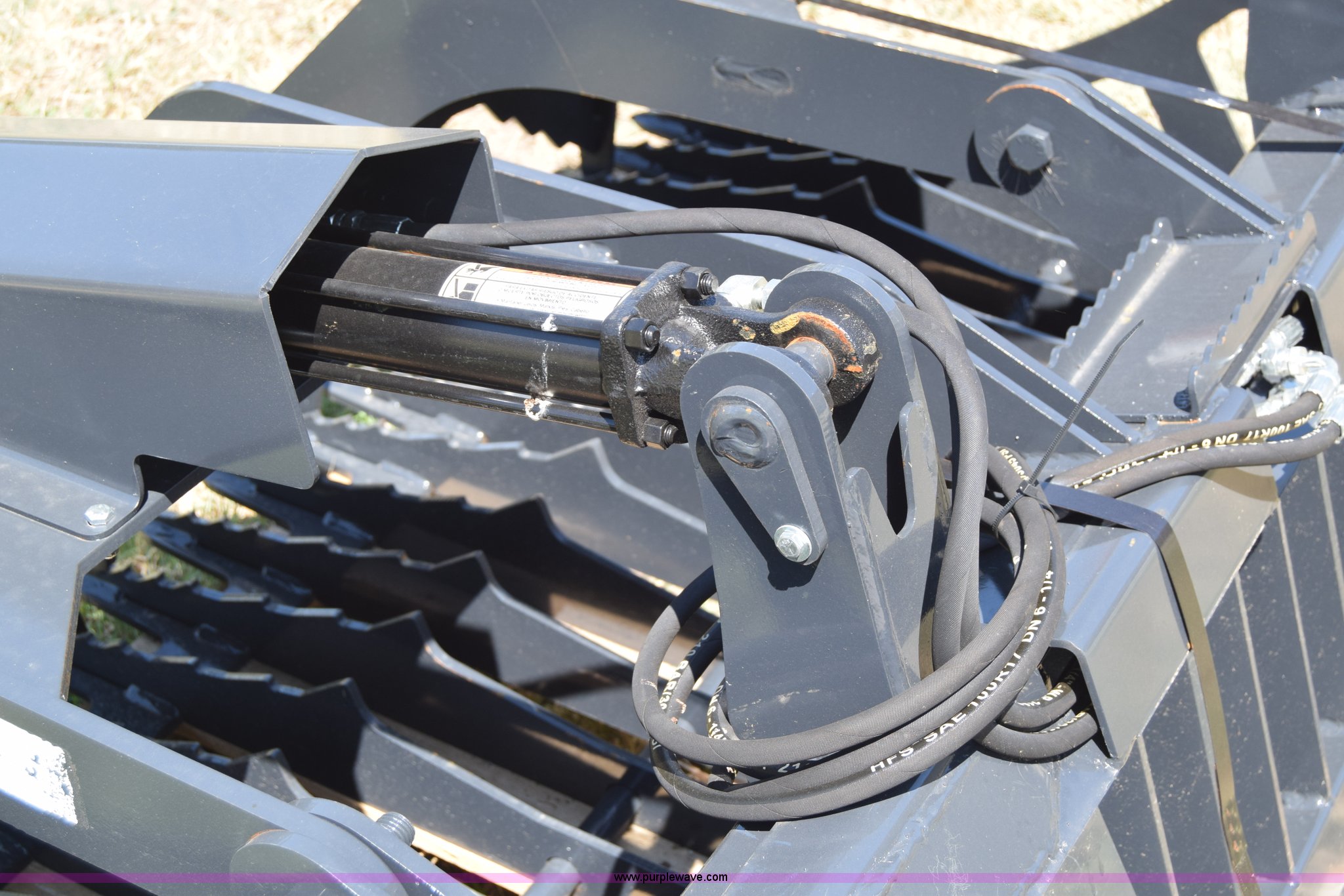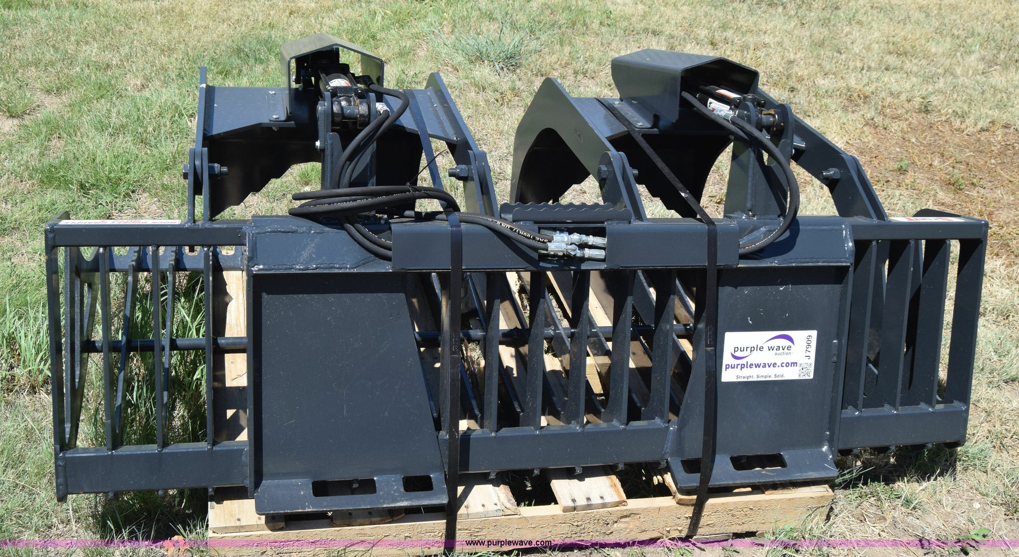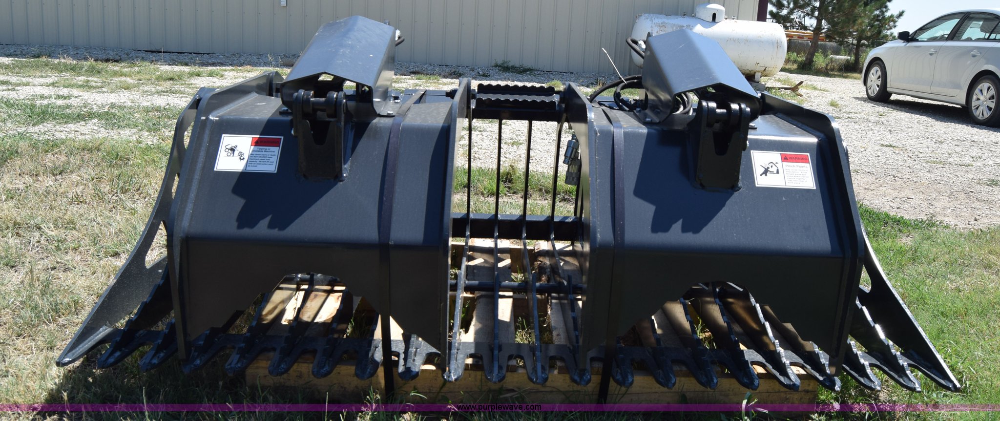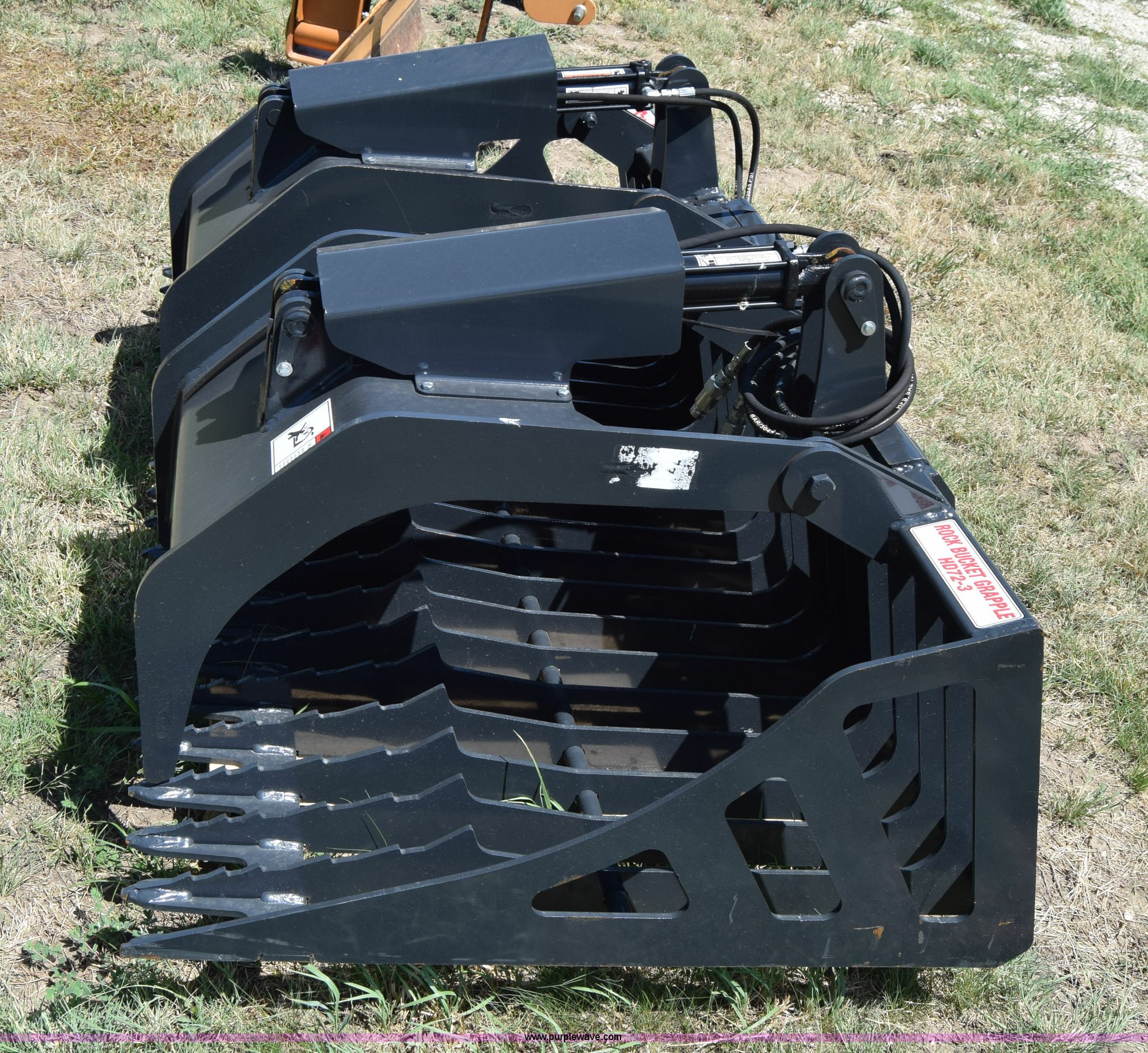 Purple Wave is selling a used Skid Steer Attach. in Kansas. This item is a Stout HD72-3 skid steer grapple bucket with the following: 72"W, Hydraulic hose and connectors, Rock bucket type, Unused