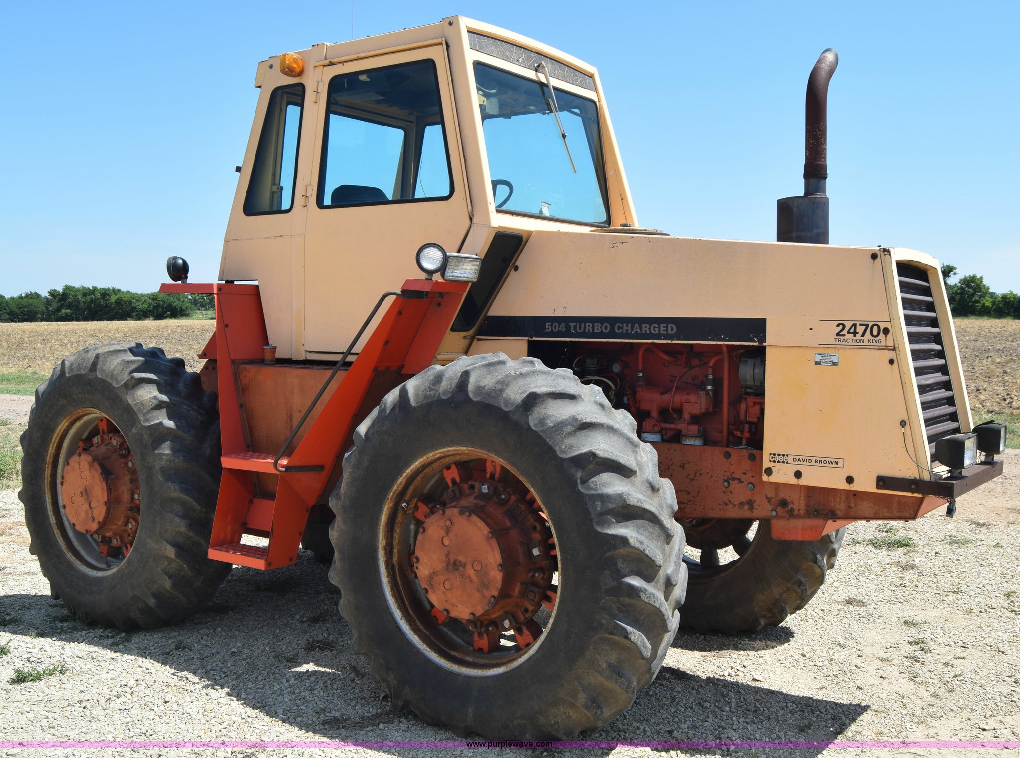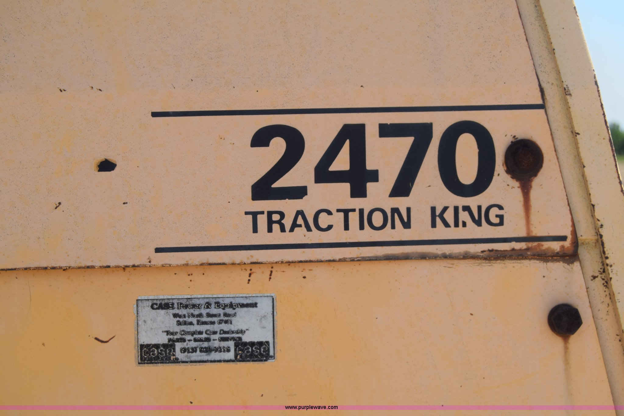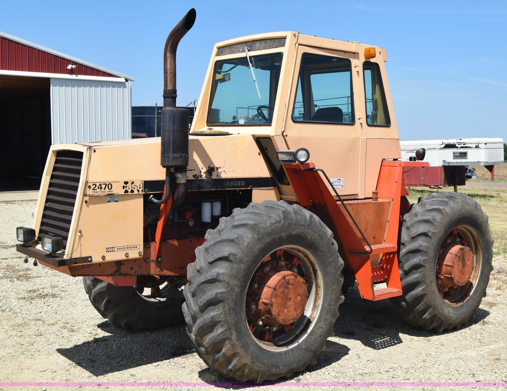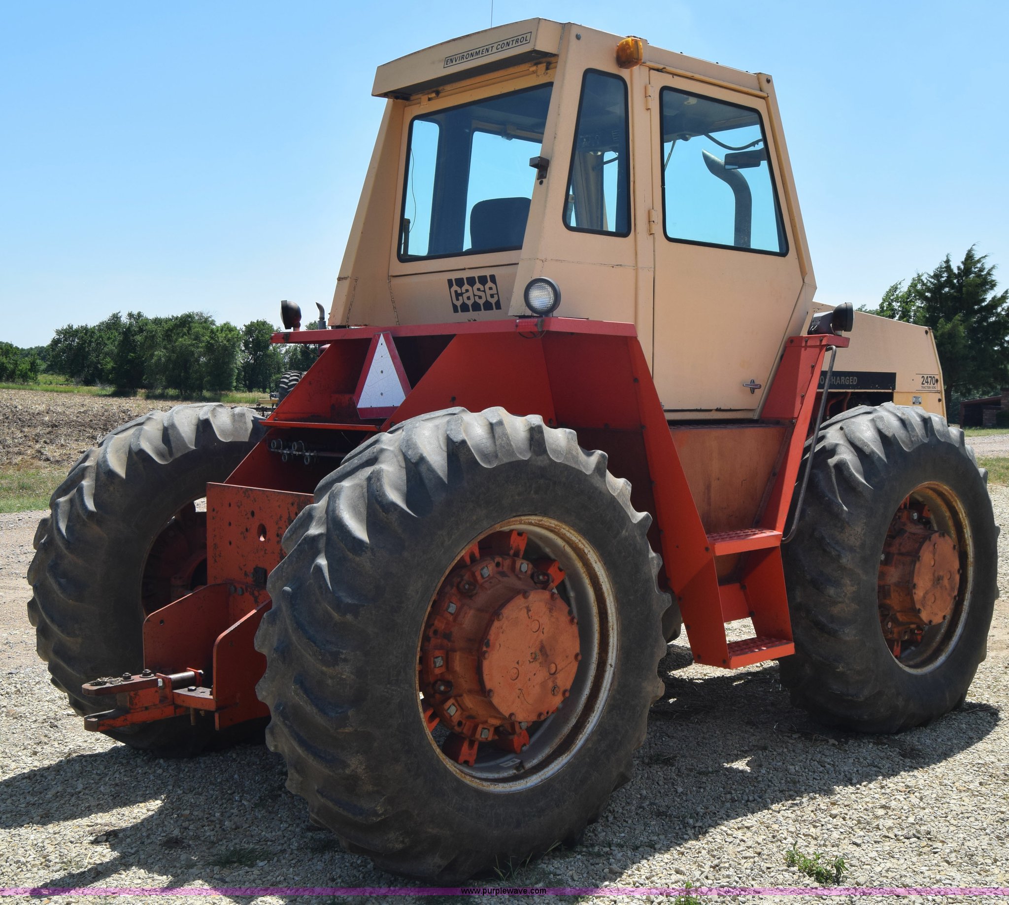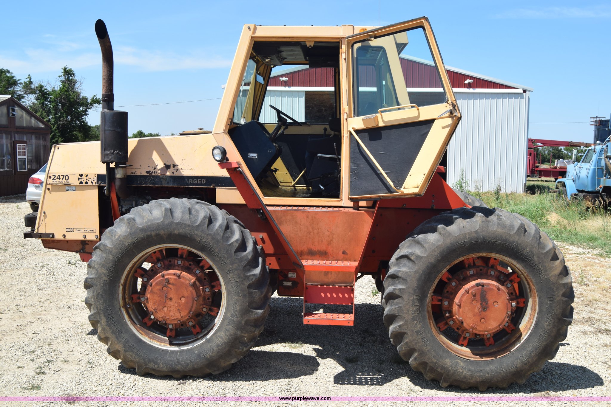 Purple Wave is selling a used Articulated 4-Wheel Drive Tractor in Kansas. This item is a 1973 Case 2470 4WD tractor with the following: 8,649 hours on meter, Case 504 8.3L six cylinder turbo diesel engine, 174 HP, Powershift transmission, 12F-2R gears, AC and heat, AM/FM/cassette, Suspension seat, Ether start, Draw bar, (2) rear hydraulic remotes, 102" wheelbase, PowerMark 18.4-34 tires, (4) additional wheels included, Serial 8712708