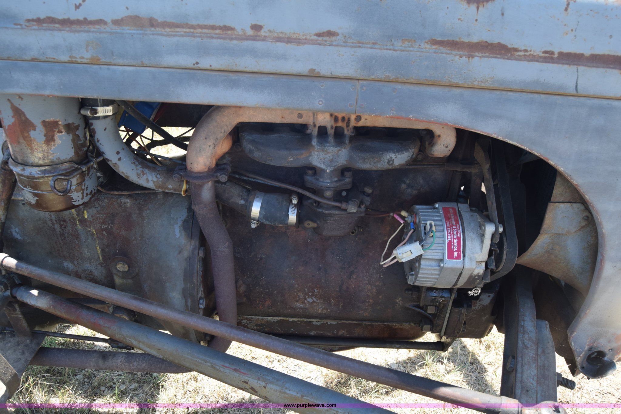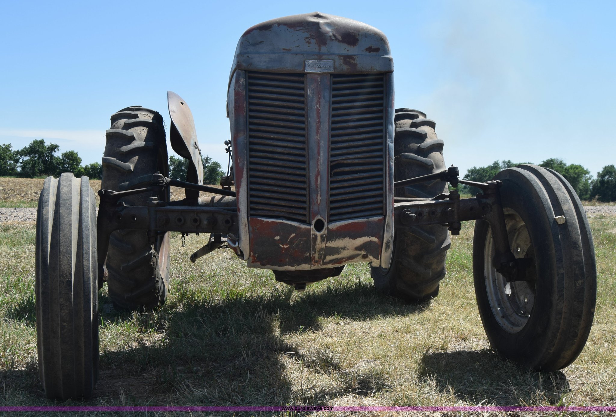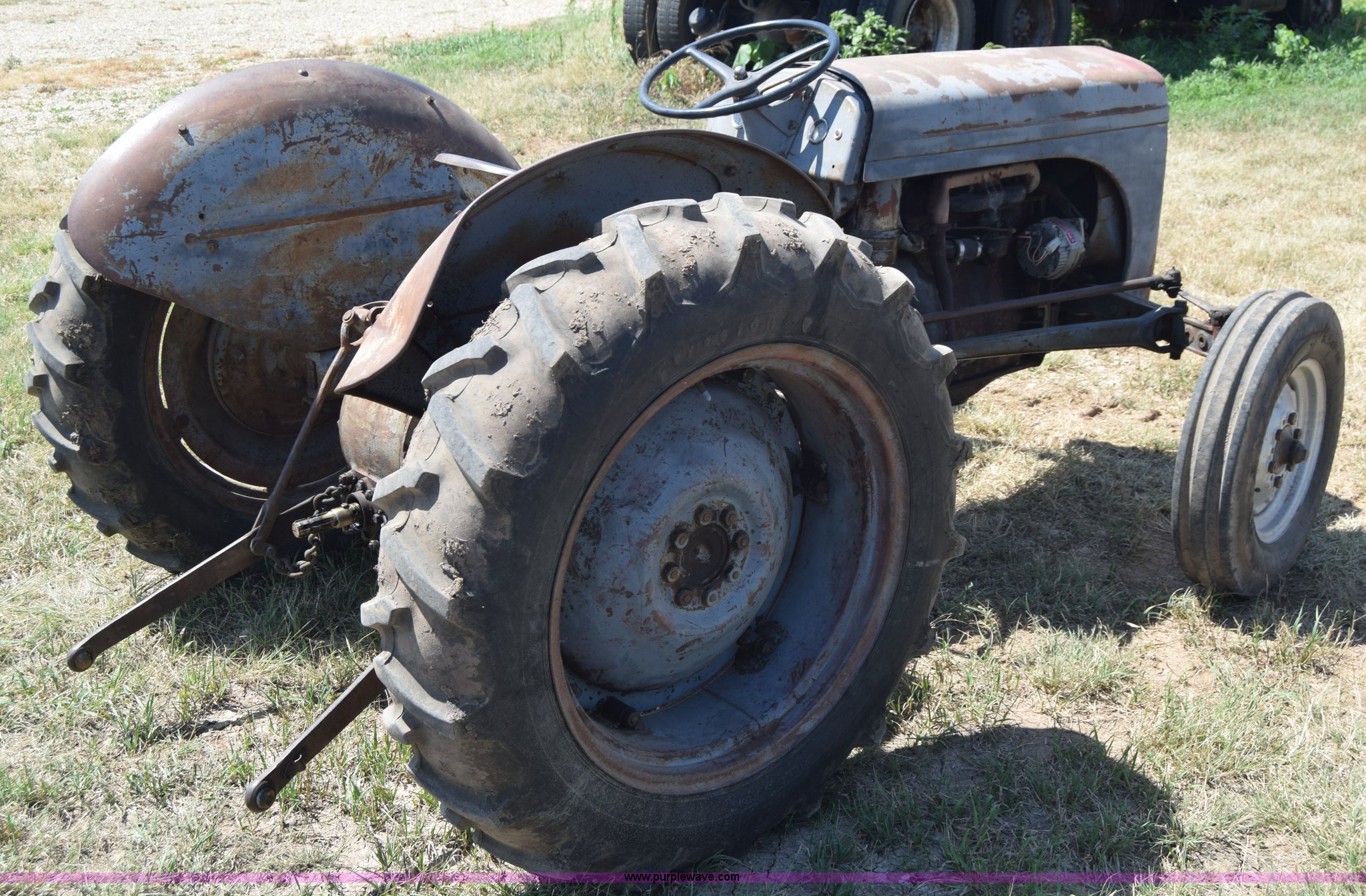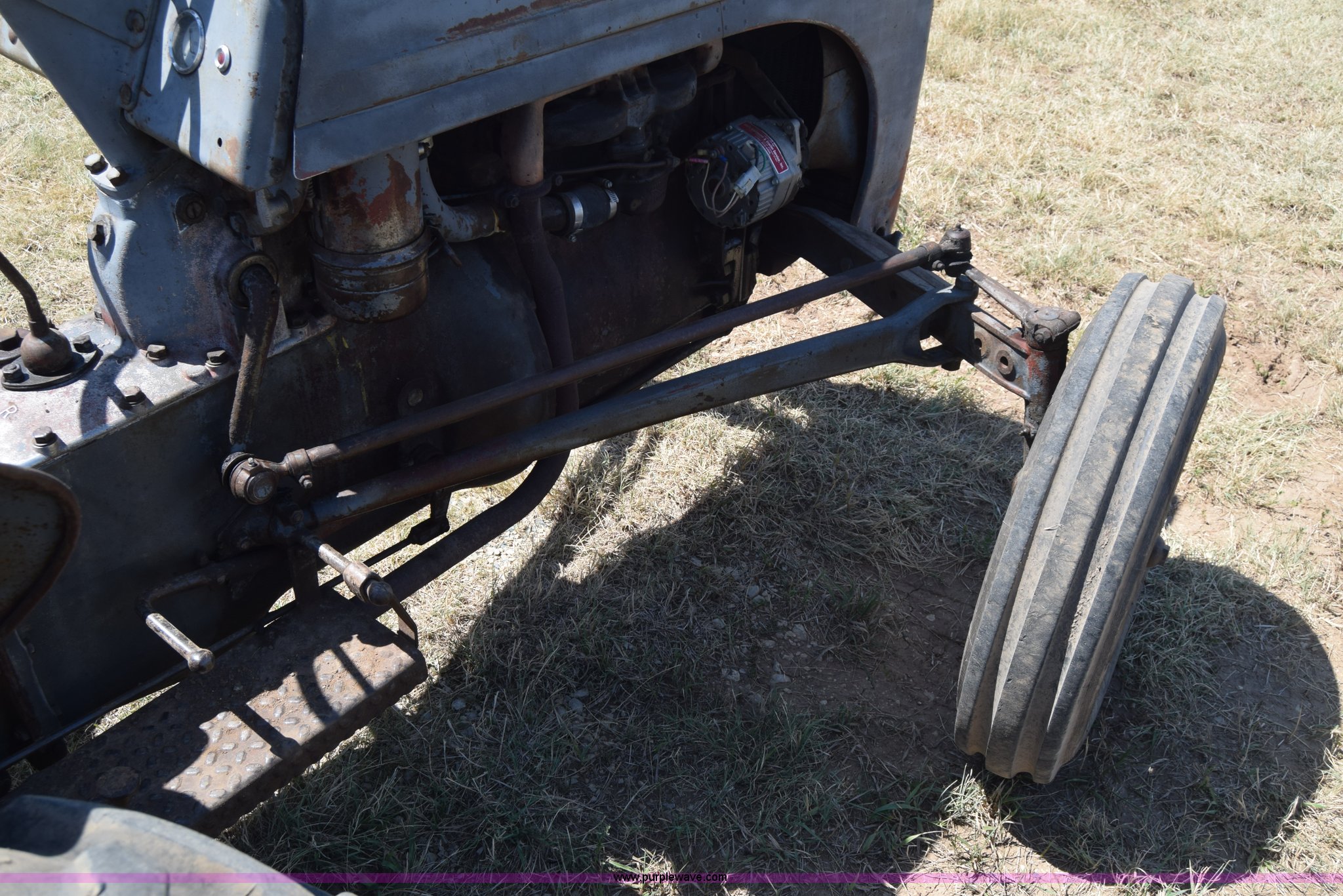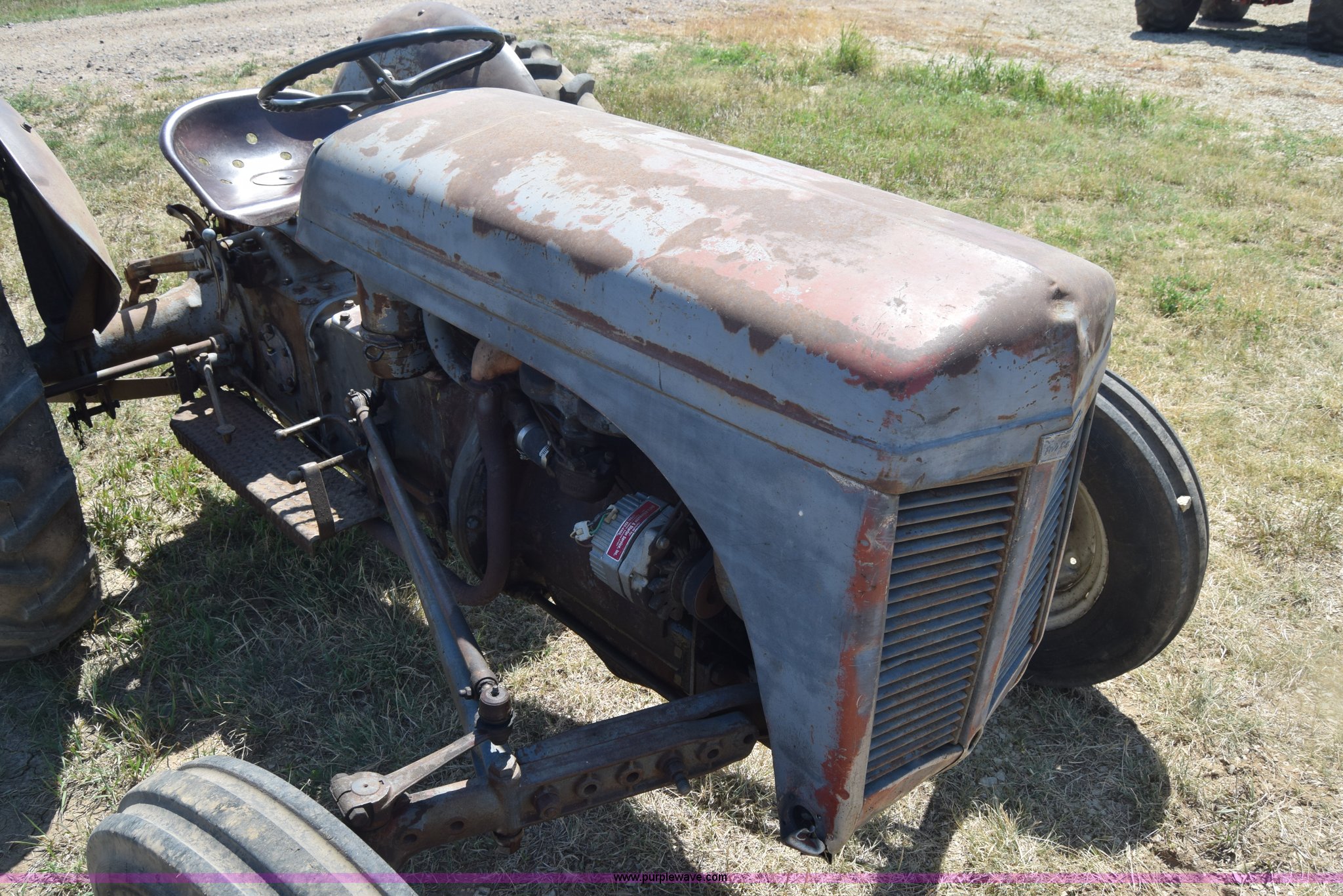 Purple Wave is selling a used Tractor in Kansas. This item is a Massey-Ferguson TE20 tractor with the following: Continental 2.0L four cylinder gas engine, 25 HP, Manual transmission, 4F-1R gears, Suspension seat, Three point, 540 PTO, Converted to 12V, 6.50-16 front tires, 11.2-28 rear tires, (2) additional front wheels included, Leaks oil, Serial 50601