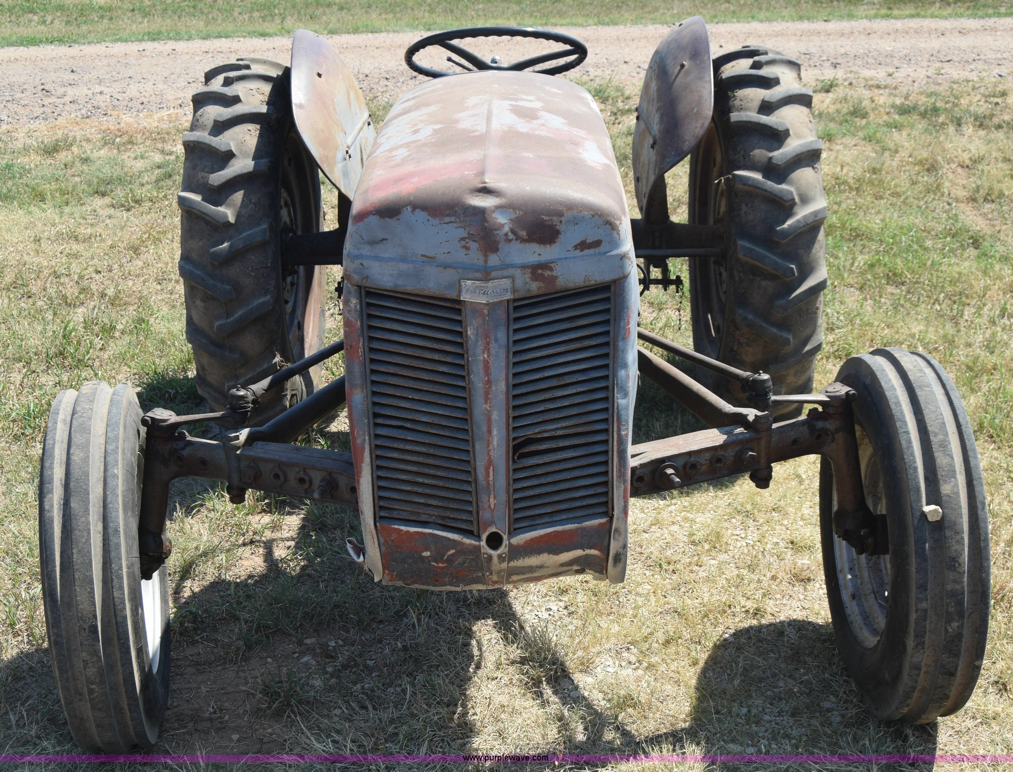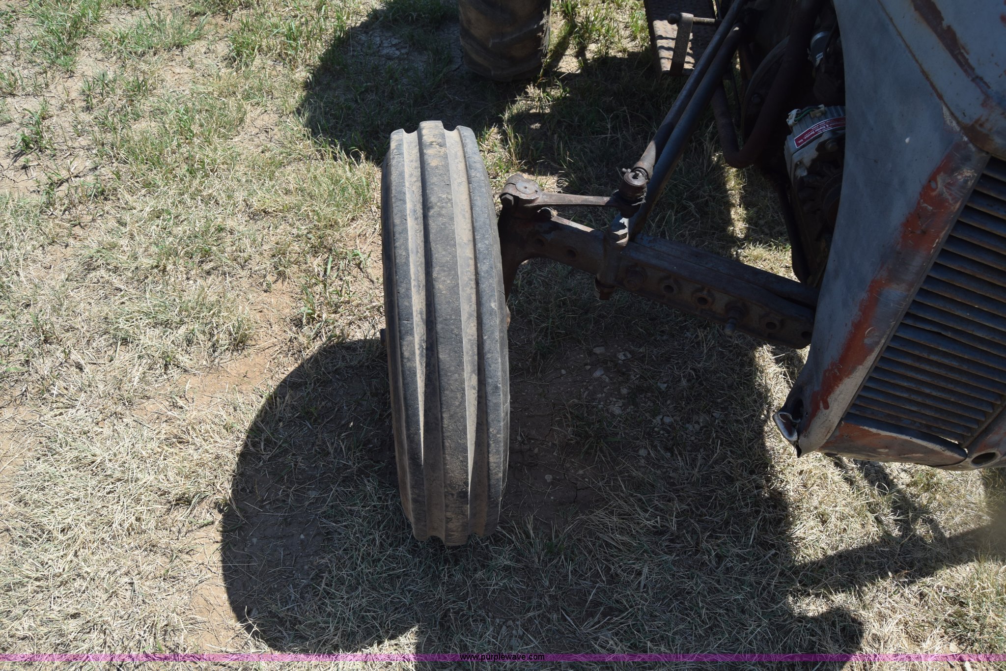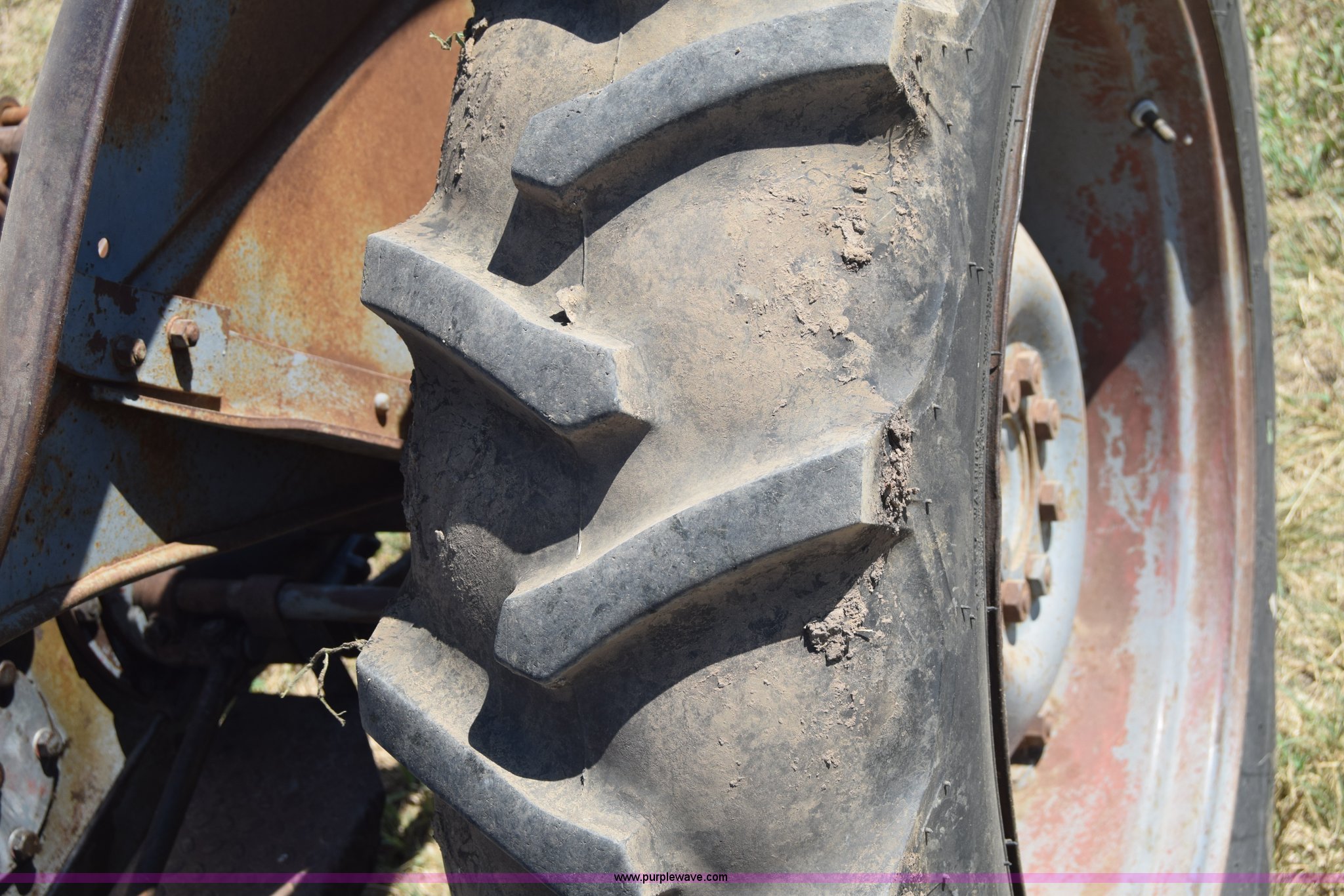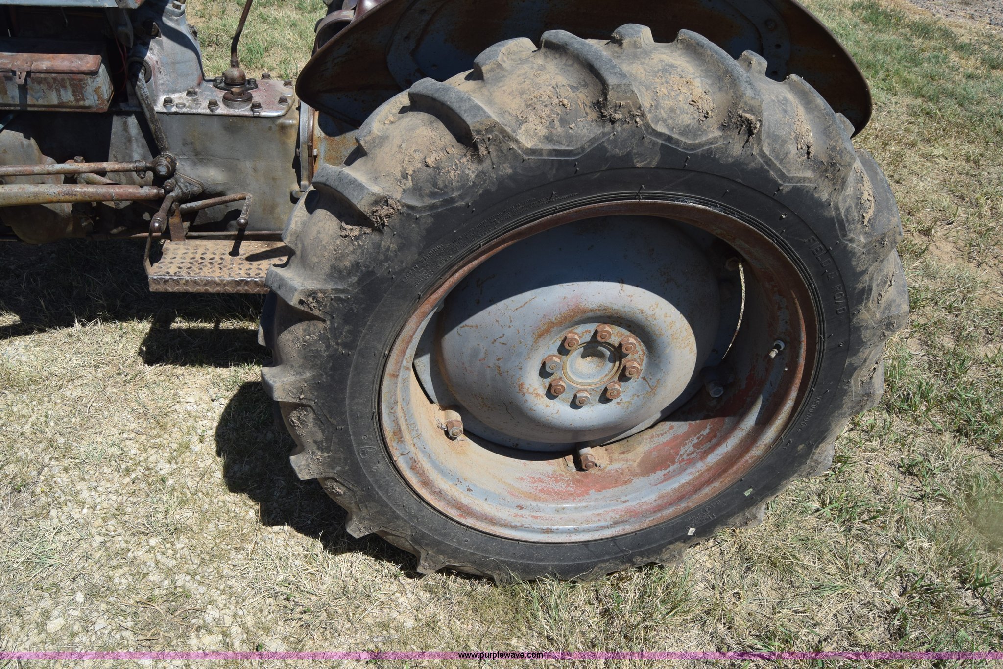 Purple Wave is selling a used Tractor in Kansas. This item is a Massey-Ferguson TE20 tractor with the following: Continental 2.0L four cylinder gas engine, 25 HP, Manual transmission, 4F-1R gears, Suspension seat, Three point, 540 PTO, Converted to 12V, 6.50-16 front tires, 11.2-28 rear tires, (2) additional front wheels included, Leaks oil, Serial 50601