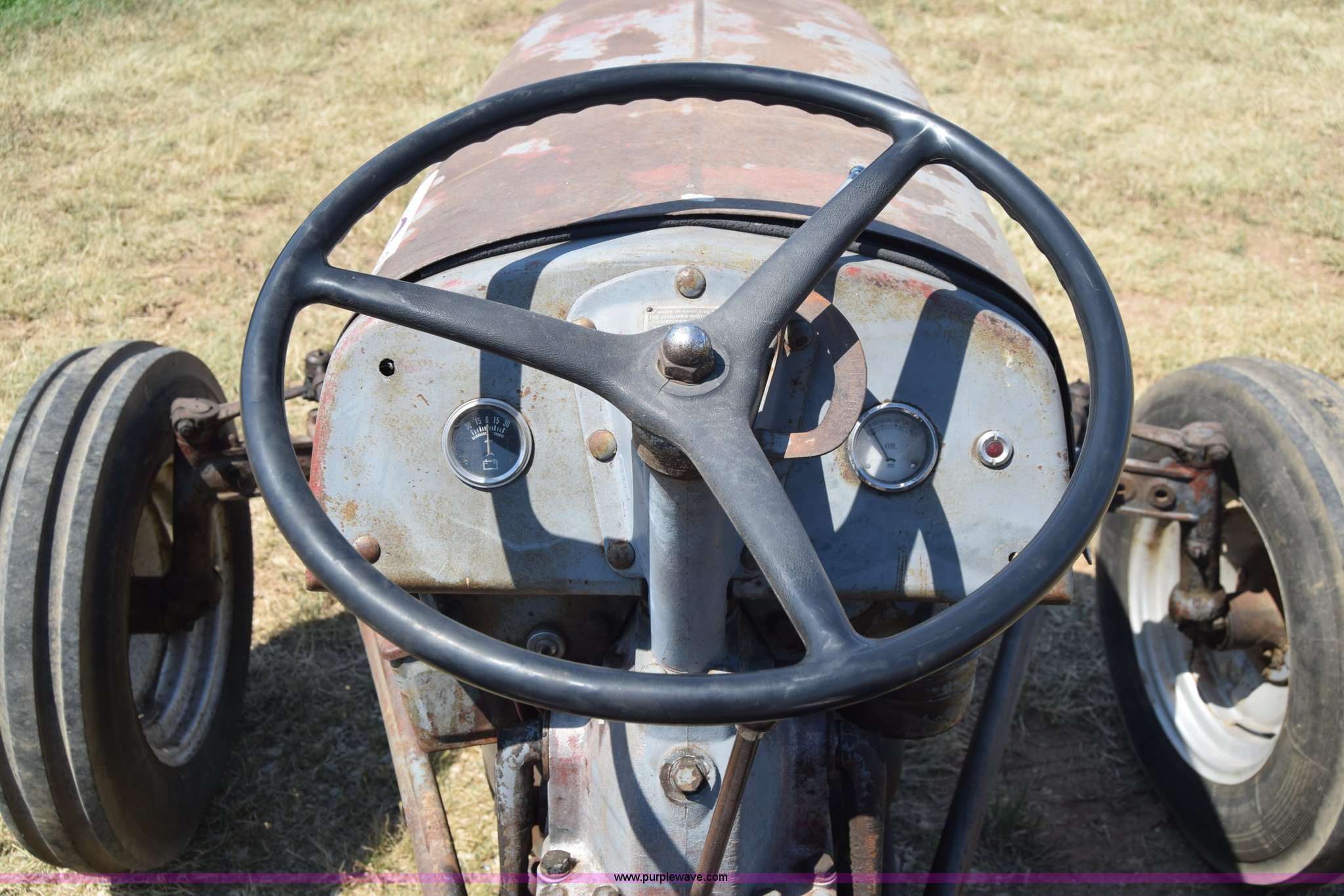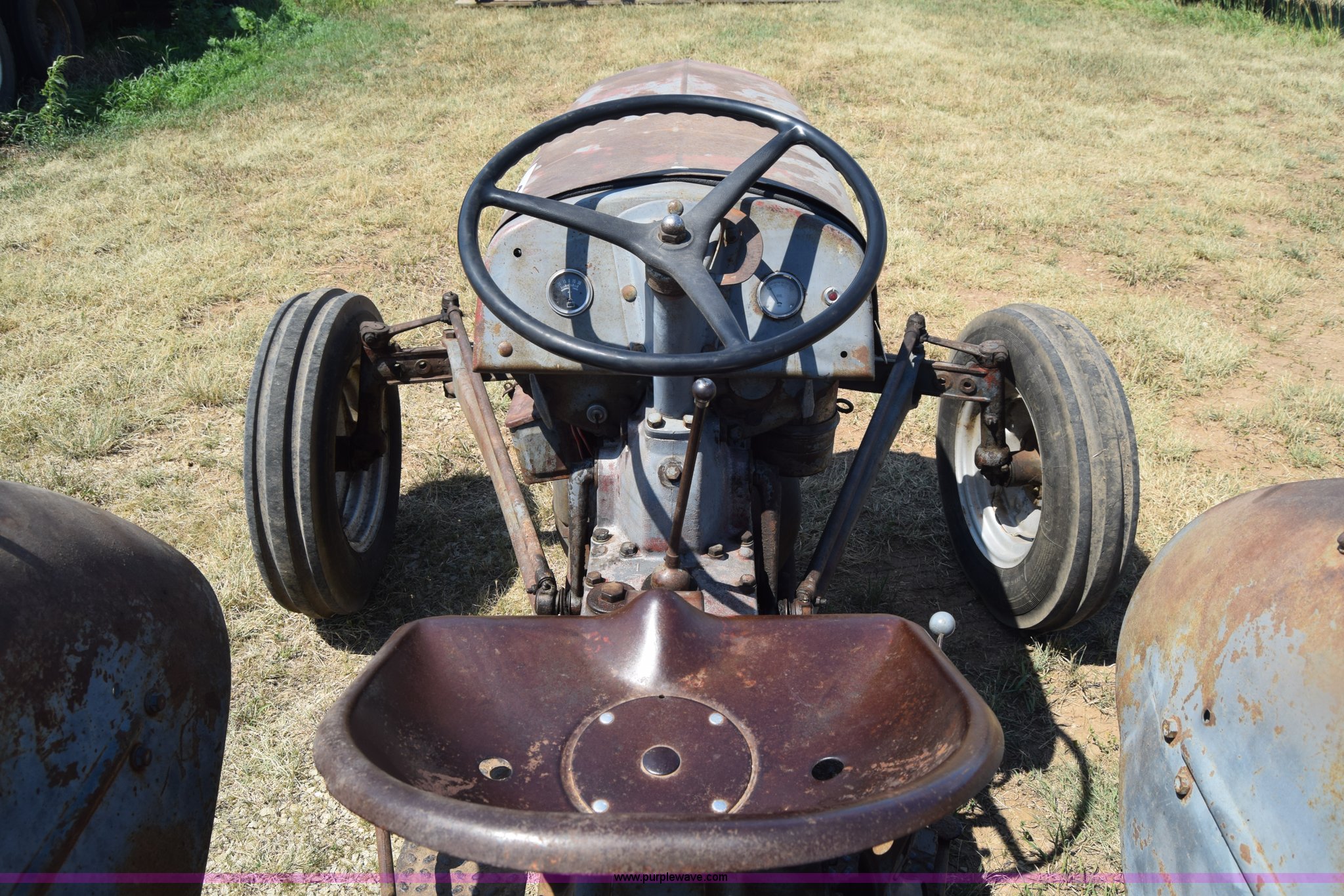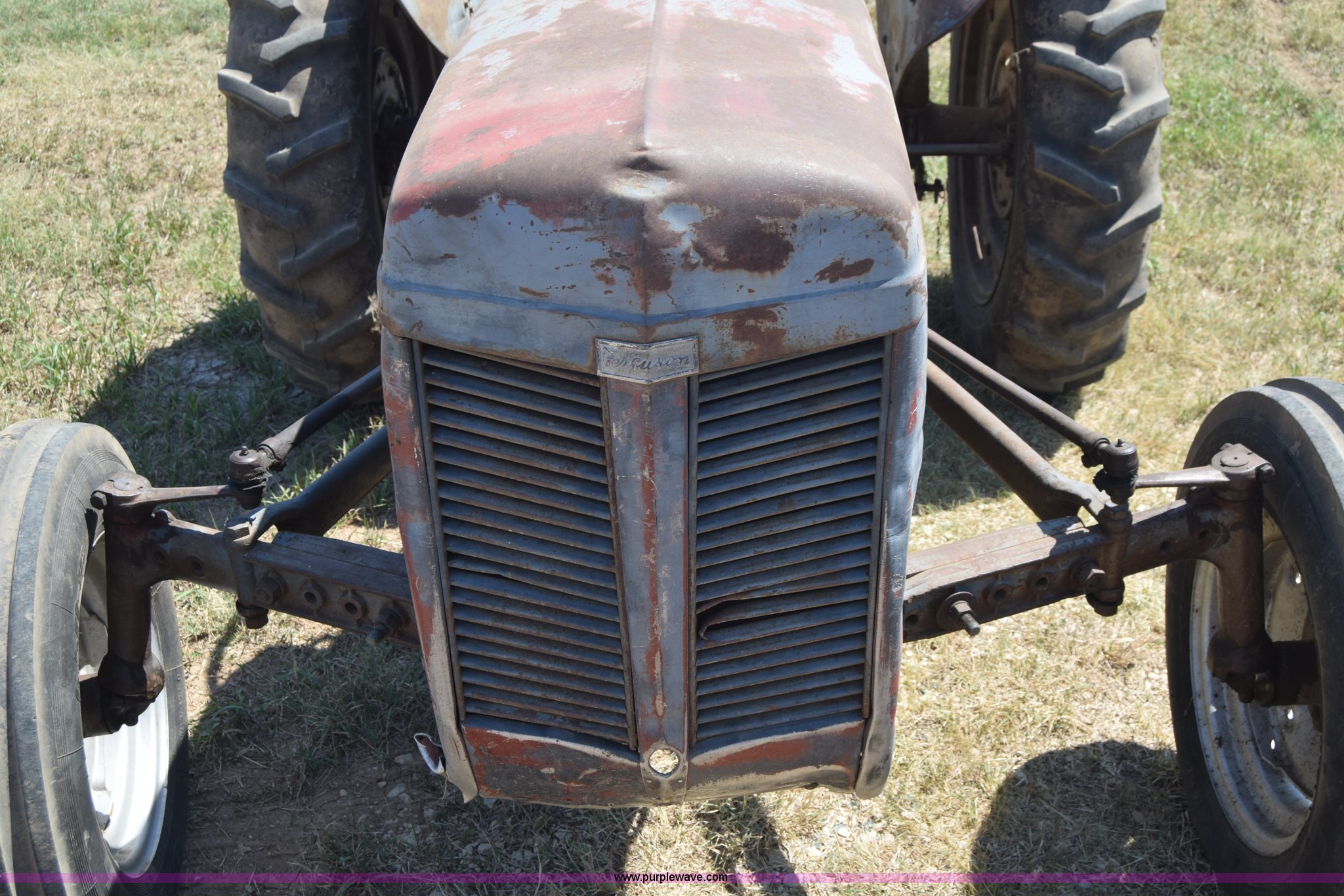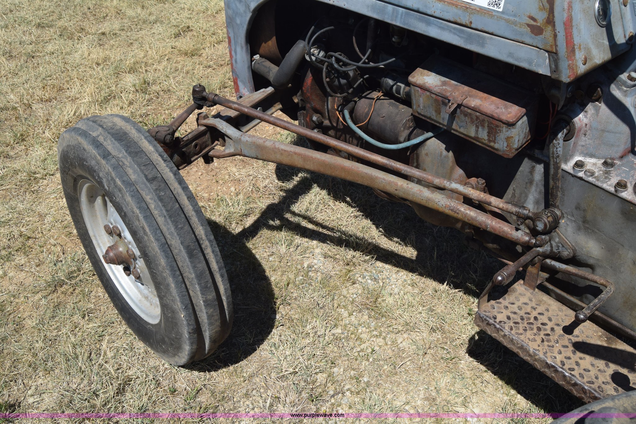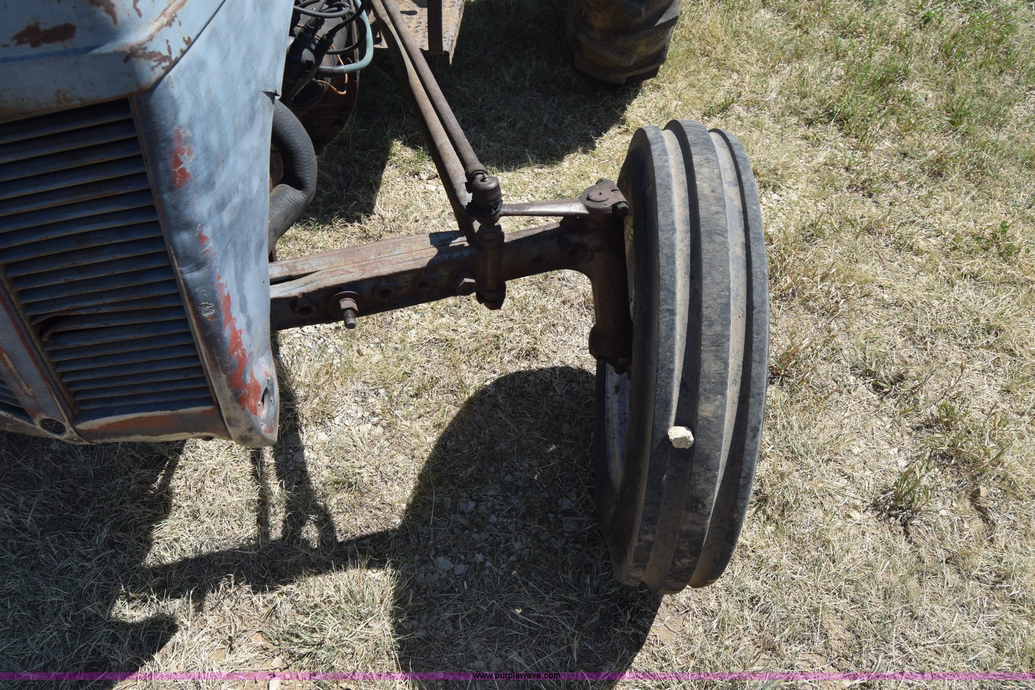 Purple Wave is selling a used Tractor in Kansas. This item is a Massey-Ferguson TE20 tractor with the following: Continental 2.0L four cylinder gas engine, 25 HP, Manual transmission, 4F-1R gears, Suspension seat, Three point, 540 PTO, Converted to 12V, 6.50-16 front tires, 11.2-28 rear tires, (2) additional front wheels included, Leaks oil, Serial 50601