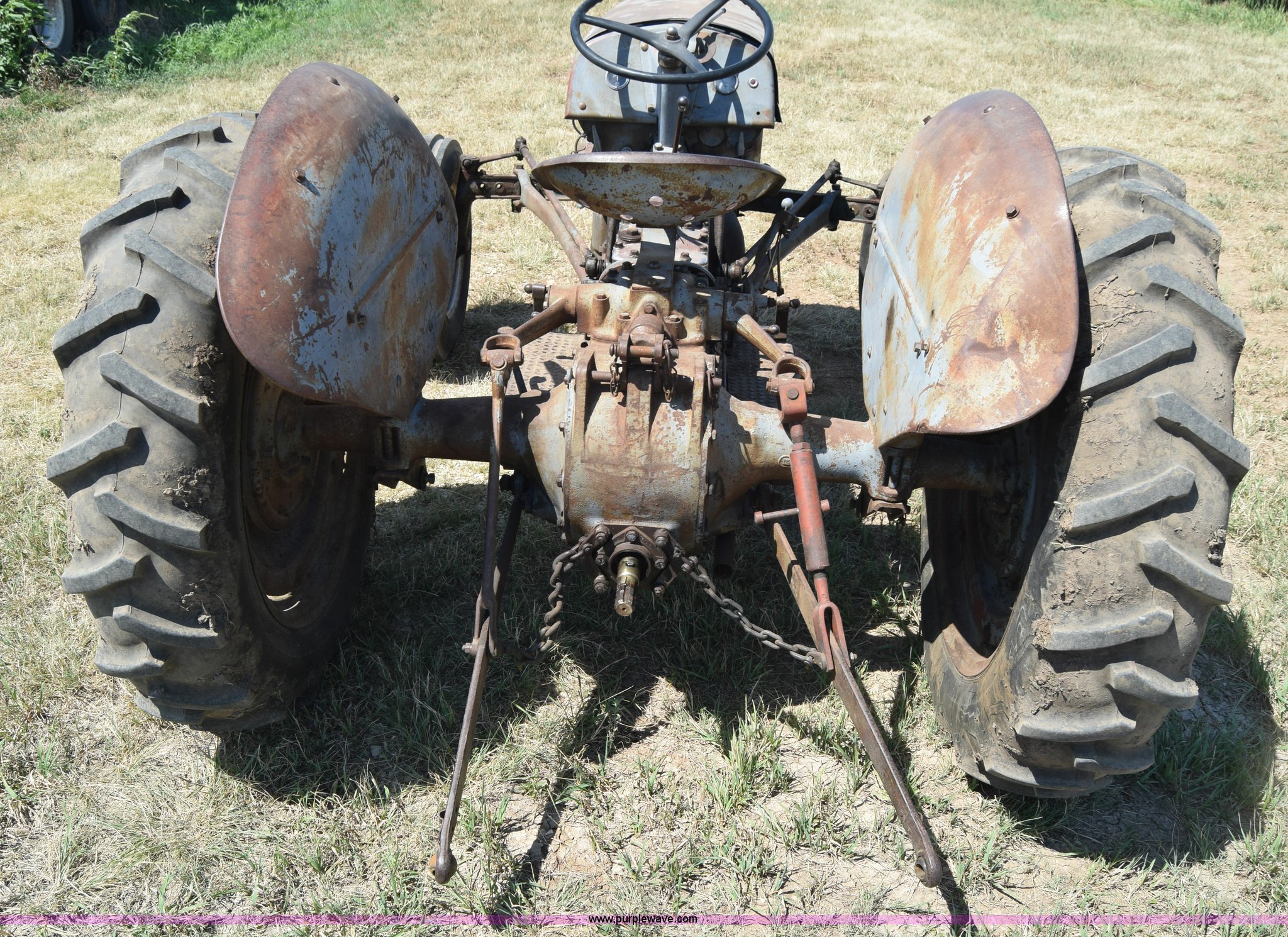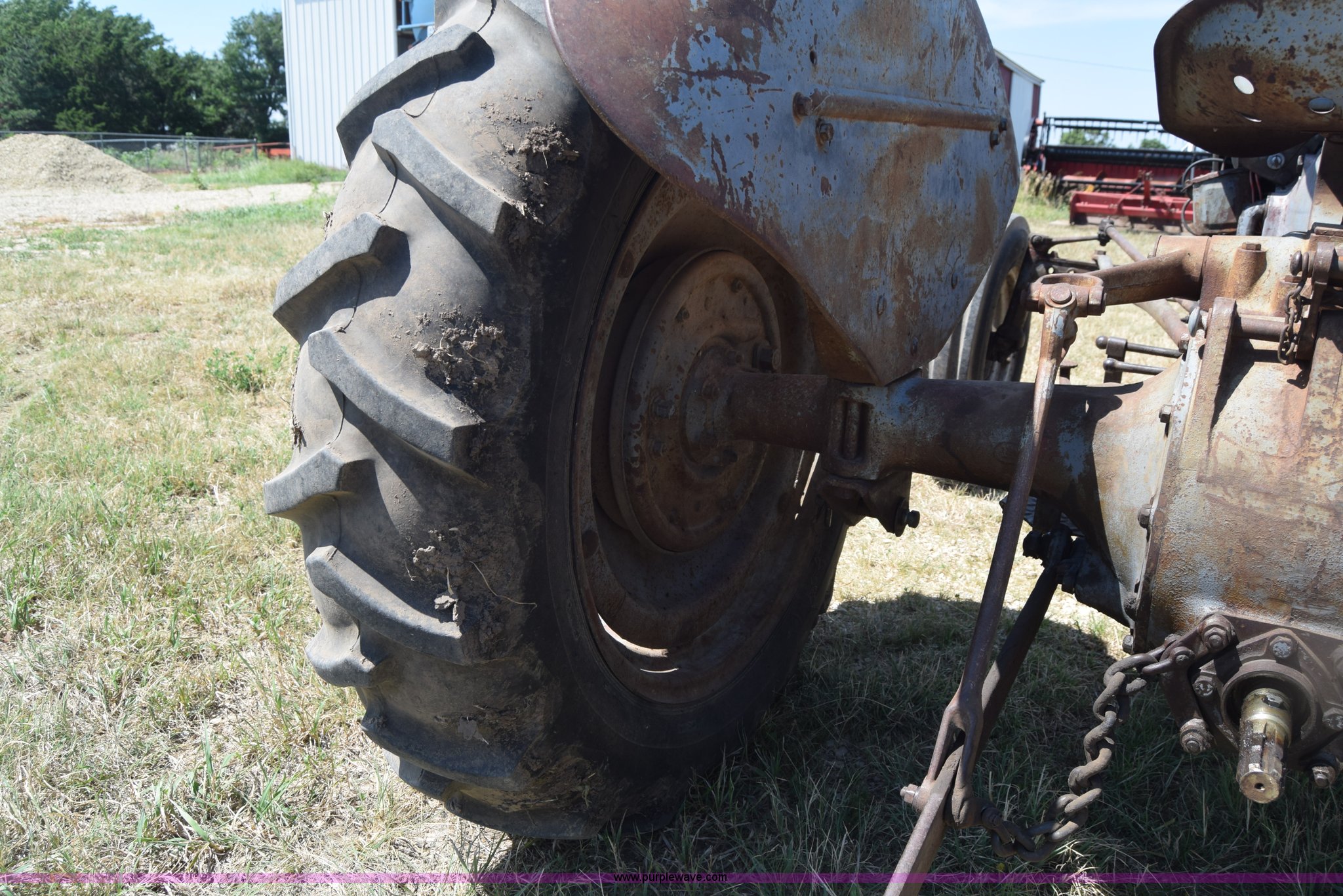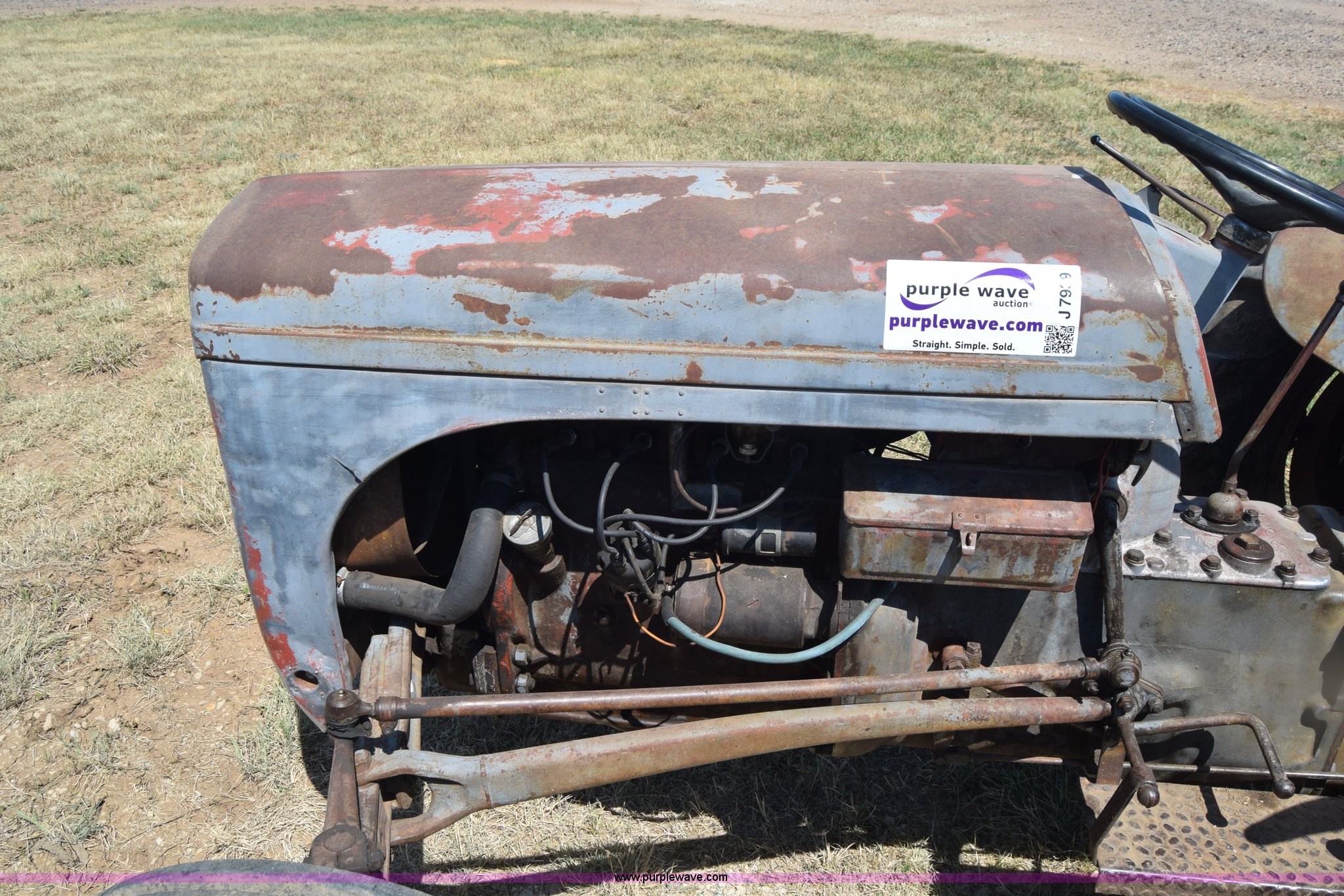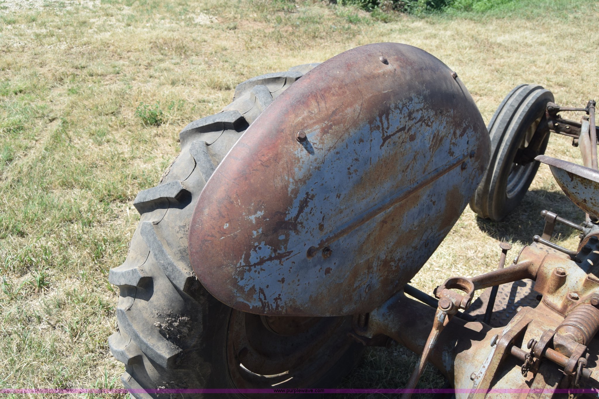 Purple Wave is selling a used Tractor in Kansas. This item is a Massey-Ferguson TE20 tractor with the following: Continental 2.0L four cylinder gas engine, 25 HP, Manual transmission, 4F-1R gears, Suspension seat, Three point, 540 PTO, Converted to 12V, 6.50-16 front tires, 11.2-28 rear tires, (2) additional front wheels included, Leaks oil, Serial 50601