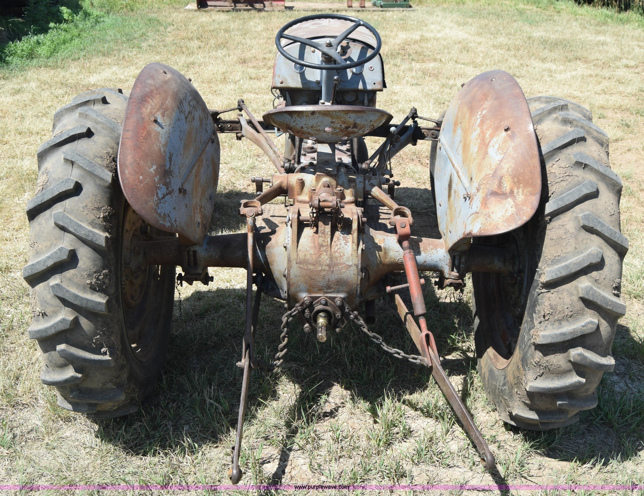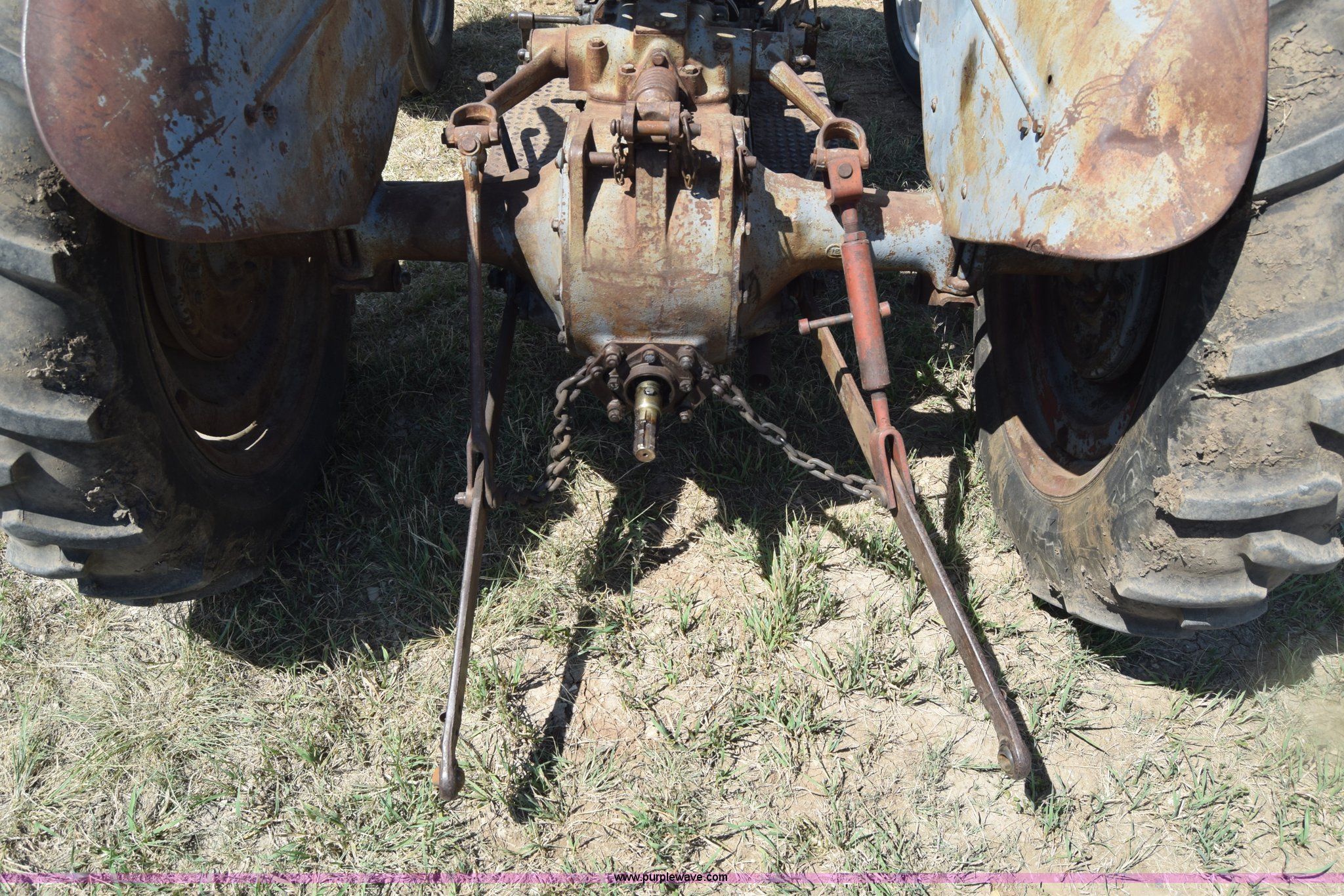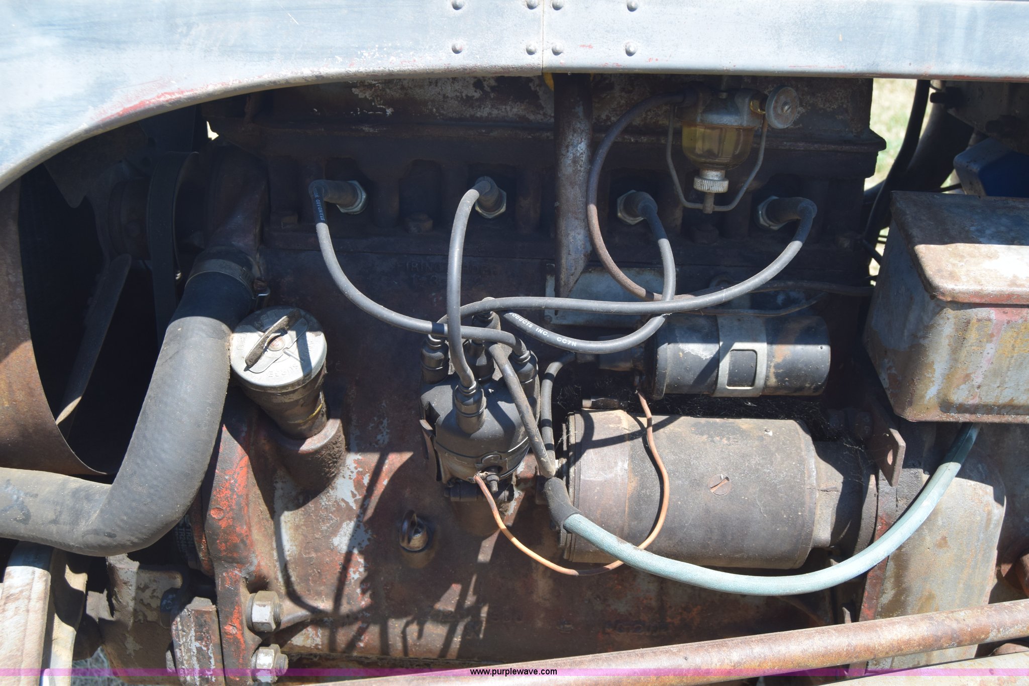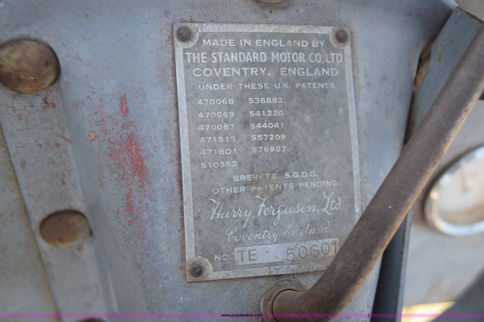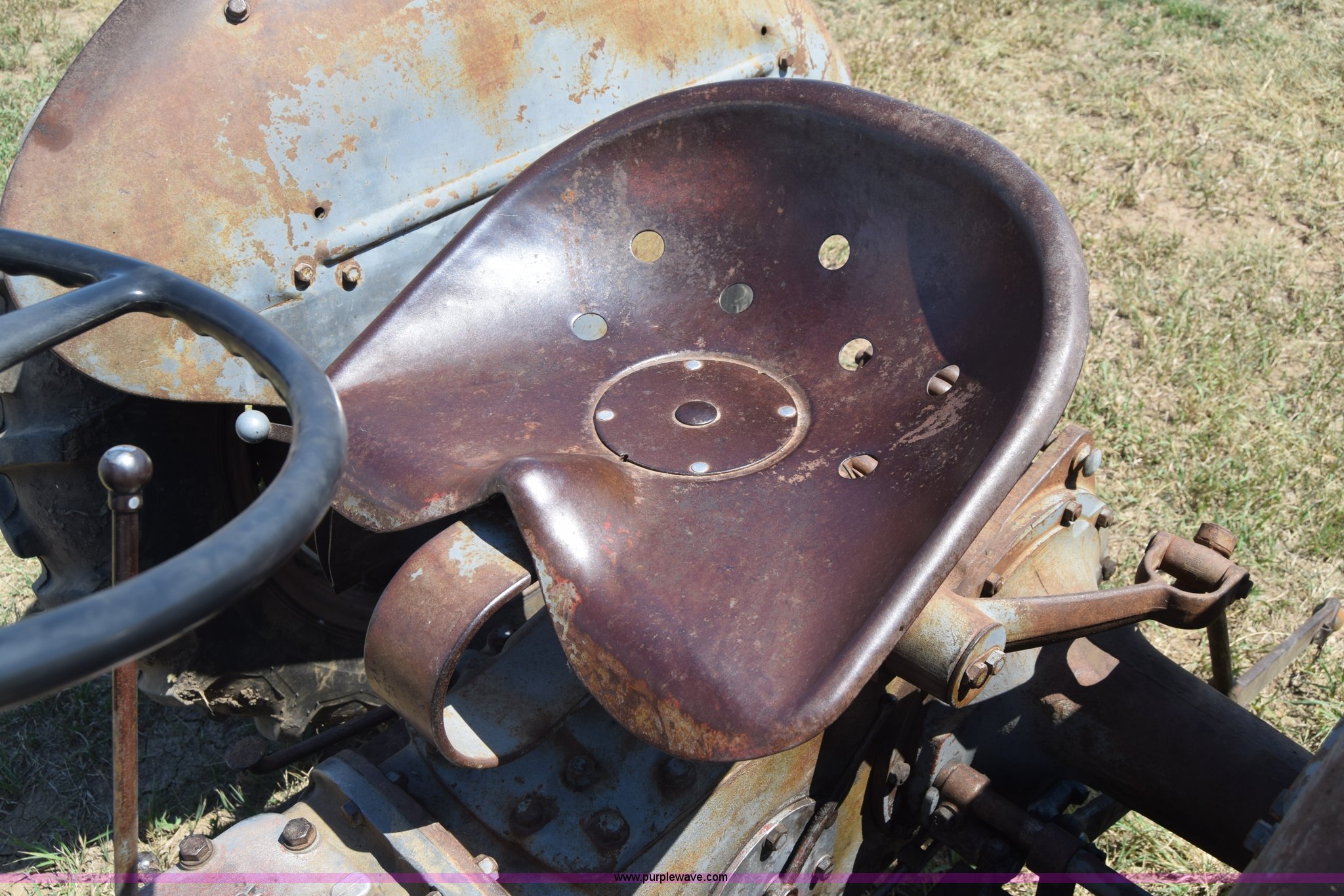 Purple Wave is selling a used Tractor in Kansas. This item is a Massey-Ferguson TE20 tractor with the following: Continental 2.0L four cylinder gas engine, 25 HP, Manual transmission, 4F-1R gears, Suspension seat, Three point, 540 PTO, Converted to 12V, 6.50-16 front tires, 11.2-28 rear tires, (2) additional front wheels included, Leaks oil, Serial 50601