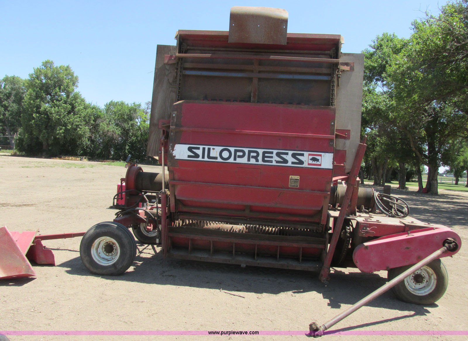Purple Wave is selling a used Forage Head or Silage Handling in Kansas. This item is a Silopress XP3 silage bagger with the following: 15'L x 8'W, Hydraulic hose and fittings, 1000 PTO, Pin hitch, 9.5L-14 tires, Serial 83556