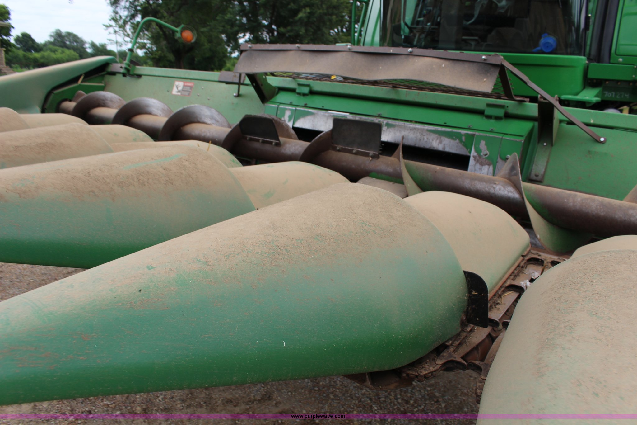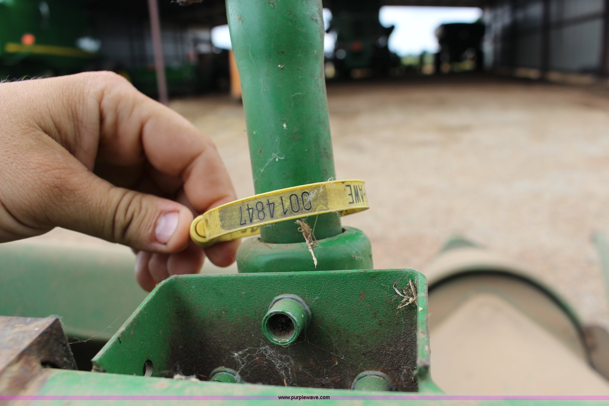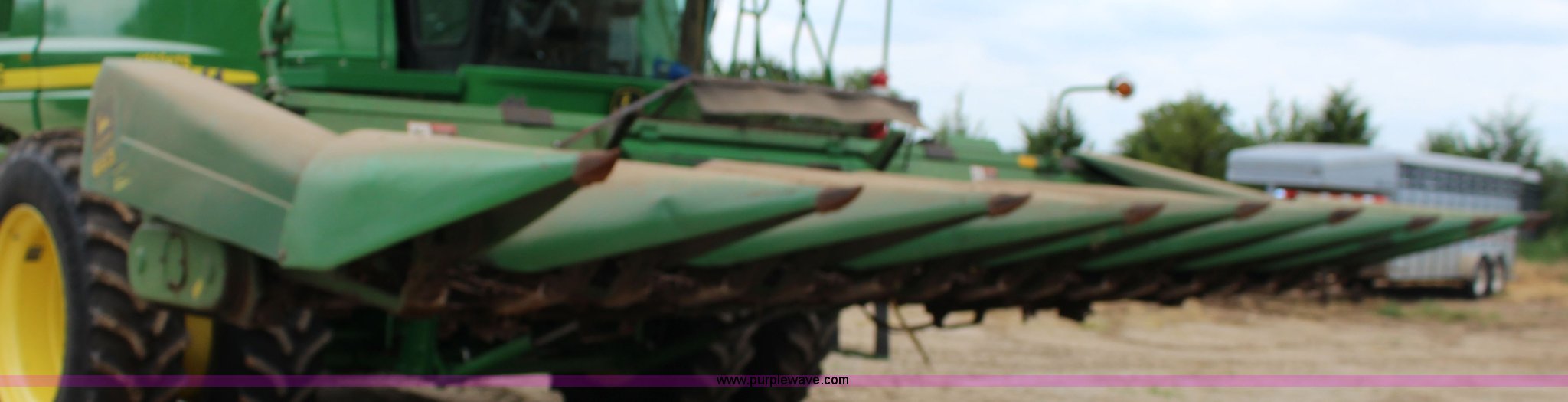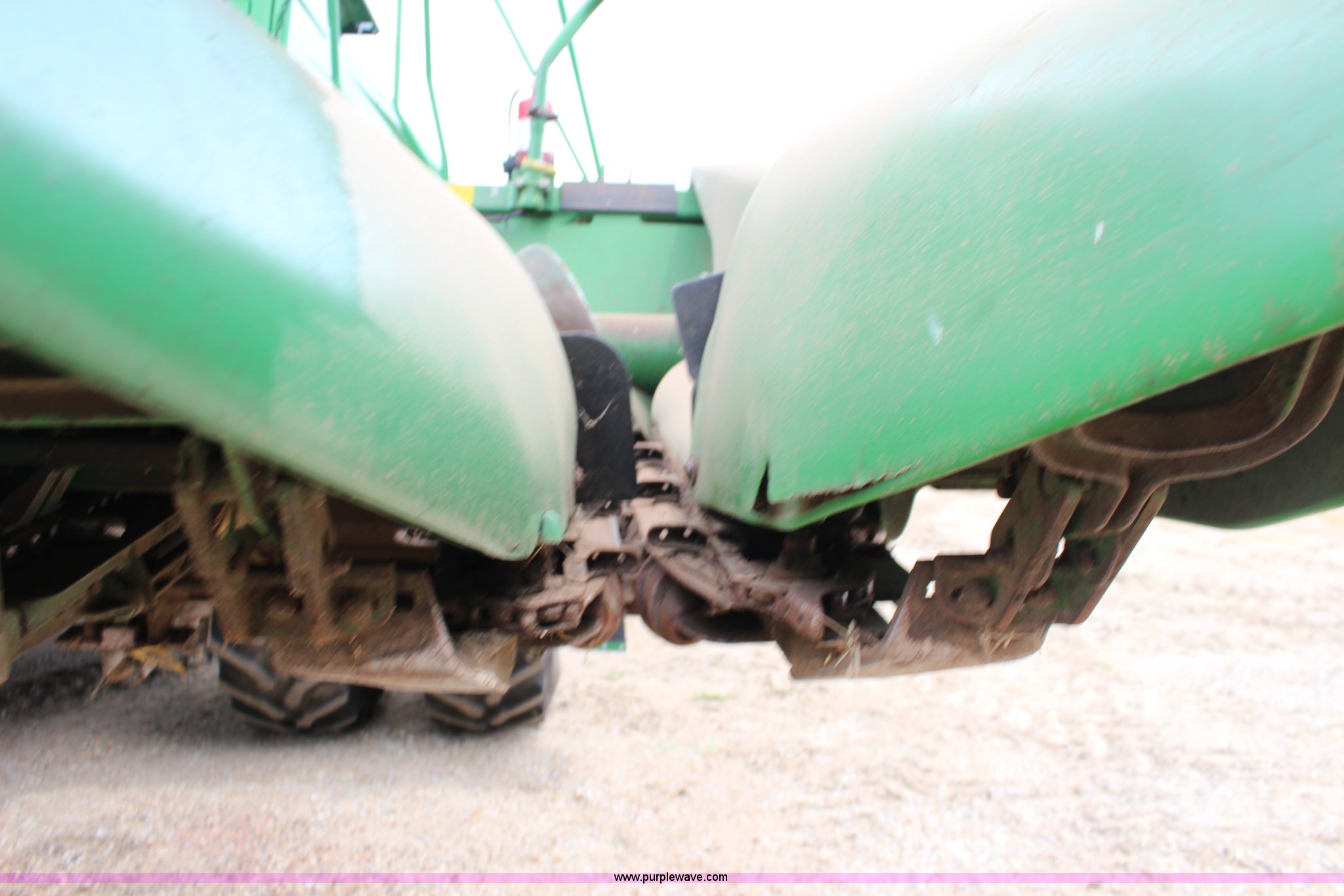 Purple Wave is selling a used Corn or Row Head in Kansas. This item is a John Deere 893 corn head with the following: Eight row, (2) straw stompers, Poly snouts, Serial 0014847