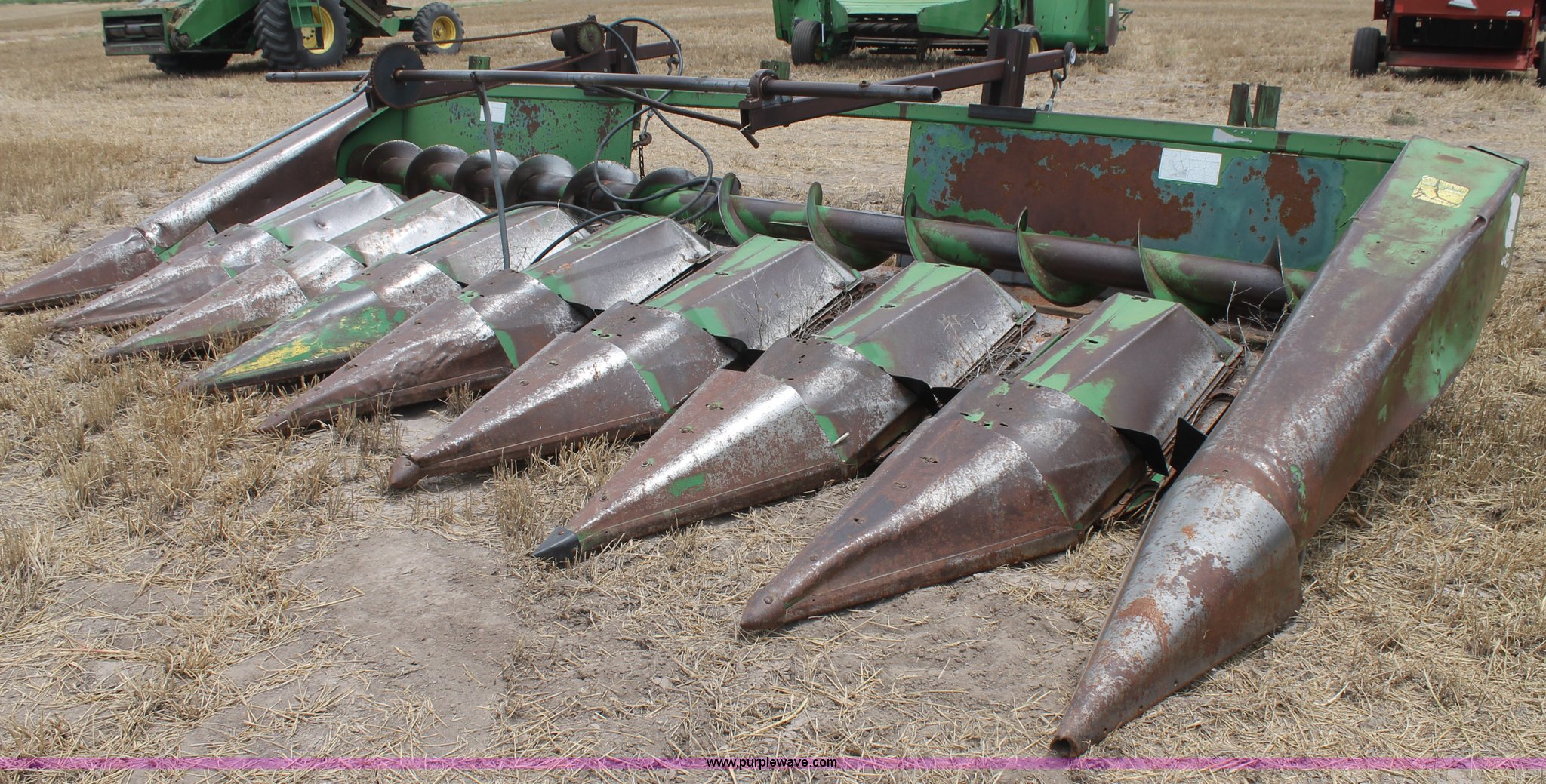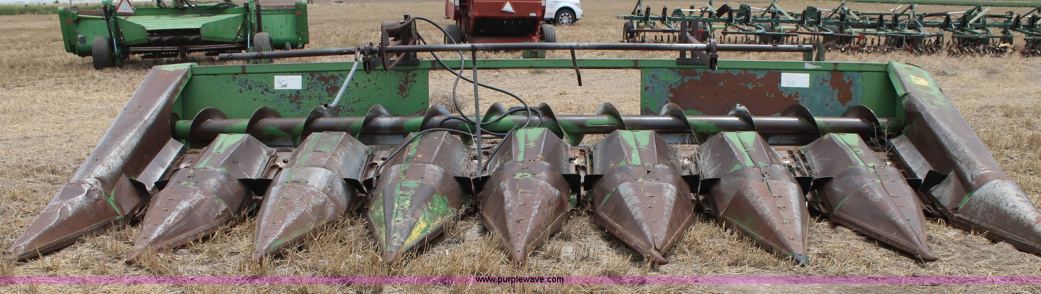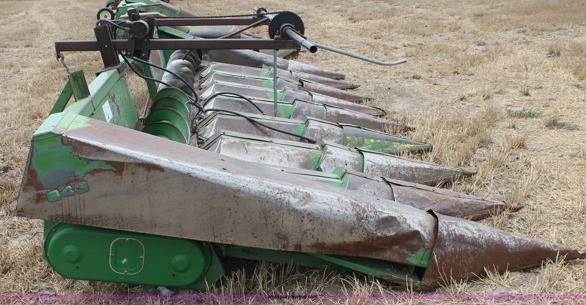 Purple Wave is selling a used Corn or Row Head in Texas. This item is a John Deere 843 corn head with the following: Eight row