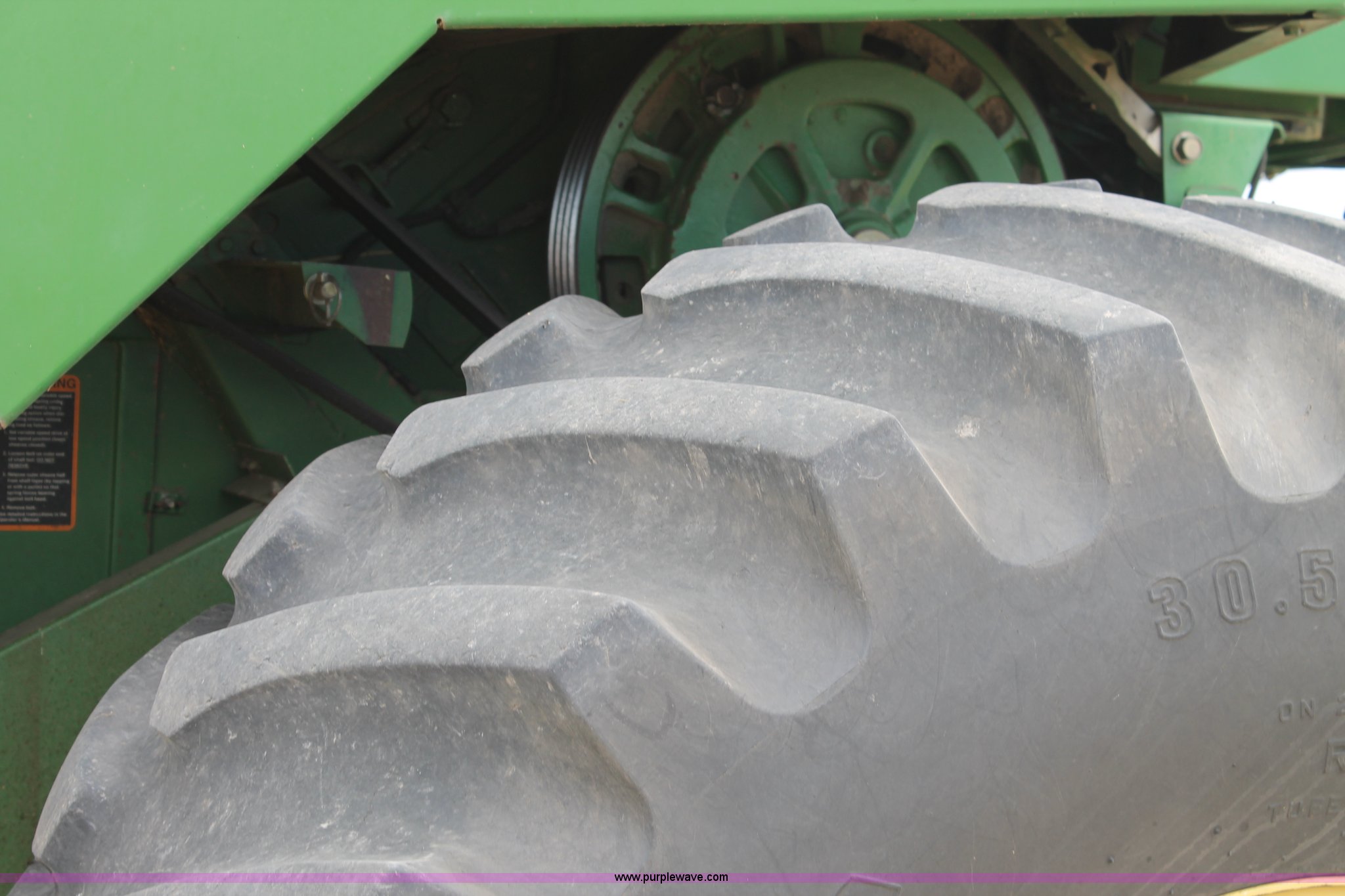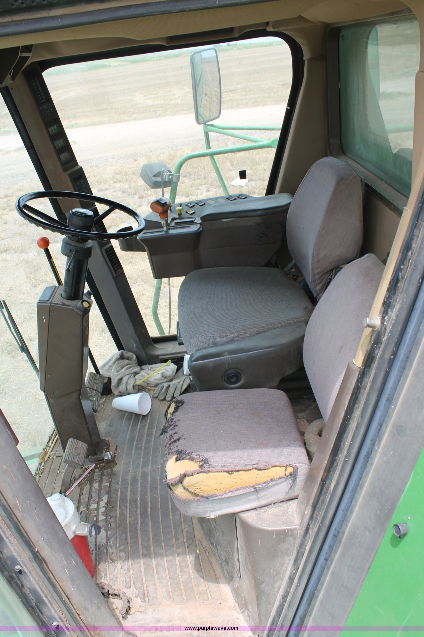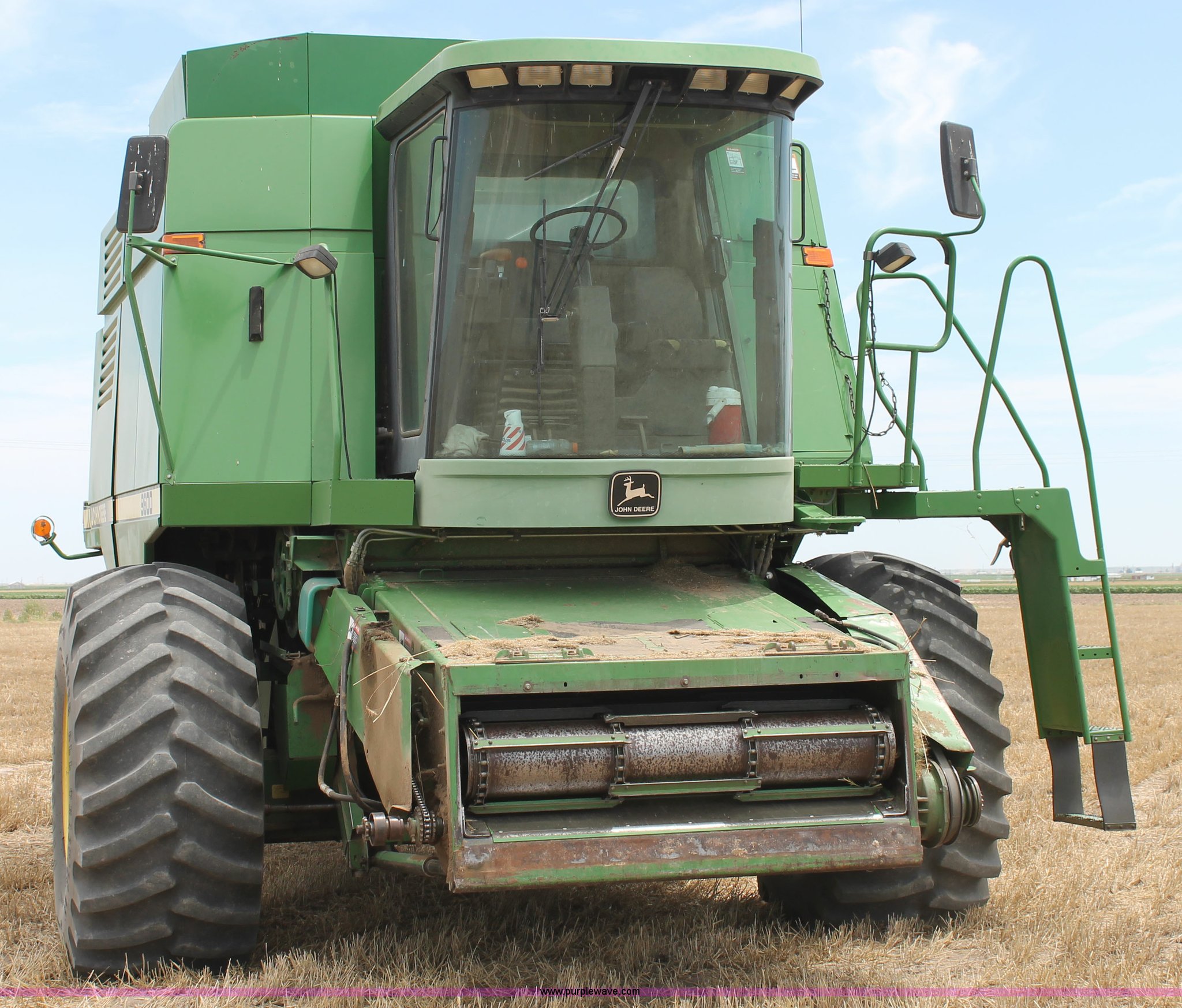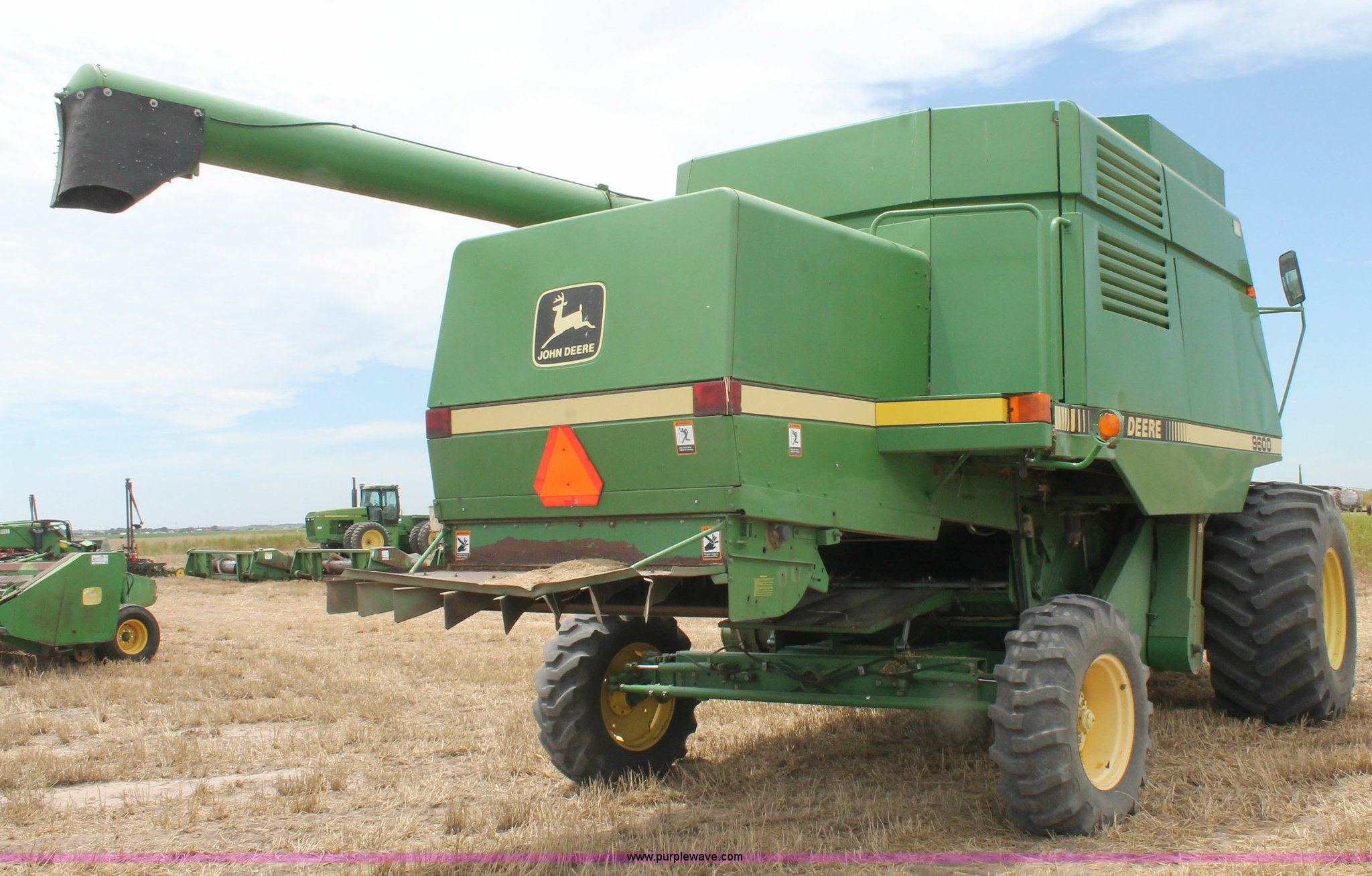 Purple Wave is selling a used Combine in Texas. This item is a 1995 John Deere 9600 combine with the following: John Deere six cylinder turbo diesel engine, 300 HP, Hydrostatic transmission, 3F-3R gears, AC and heat, AM/FM/cassette, Suspension seat, Instructor's seat, Chaff spreader, Straw chopper, 250 bu. grain bin, 21' unloading auger, 30.5-32 front tires, 14.9-24 rear tires, Serial H09600X661357