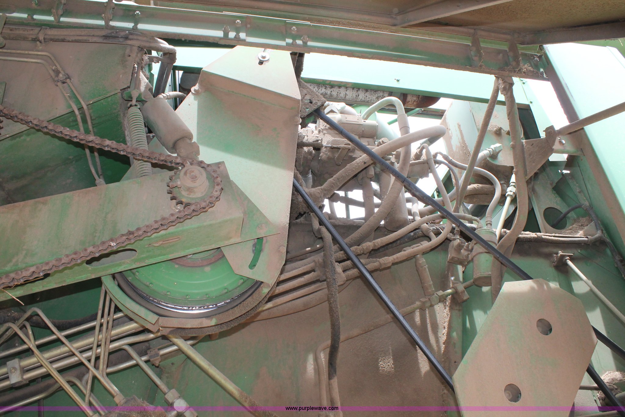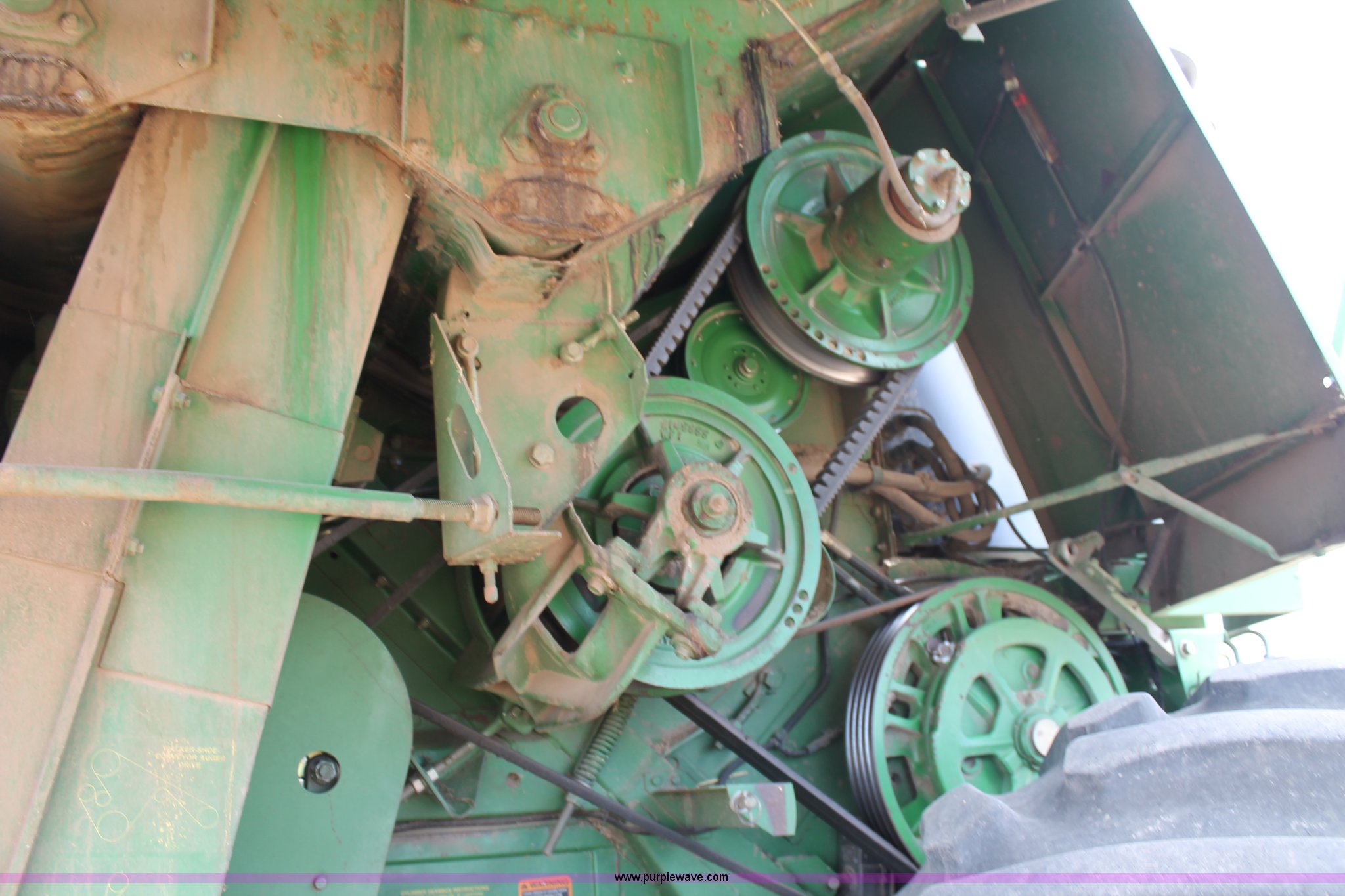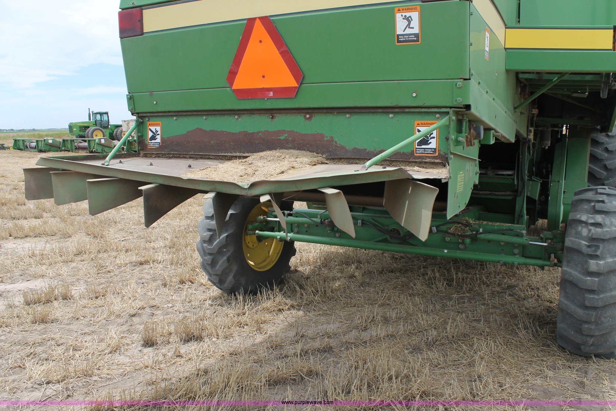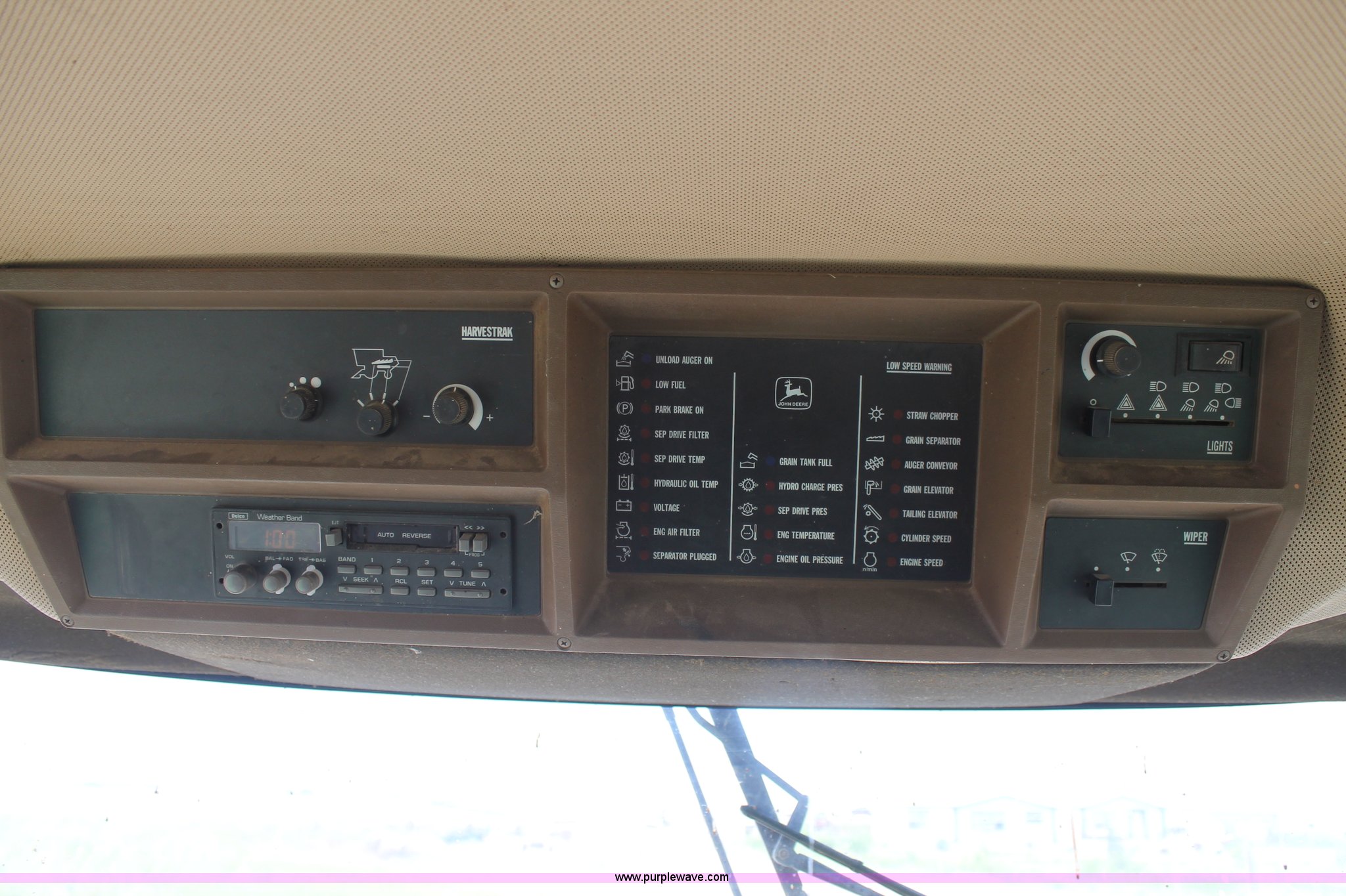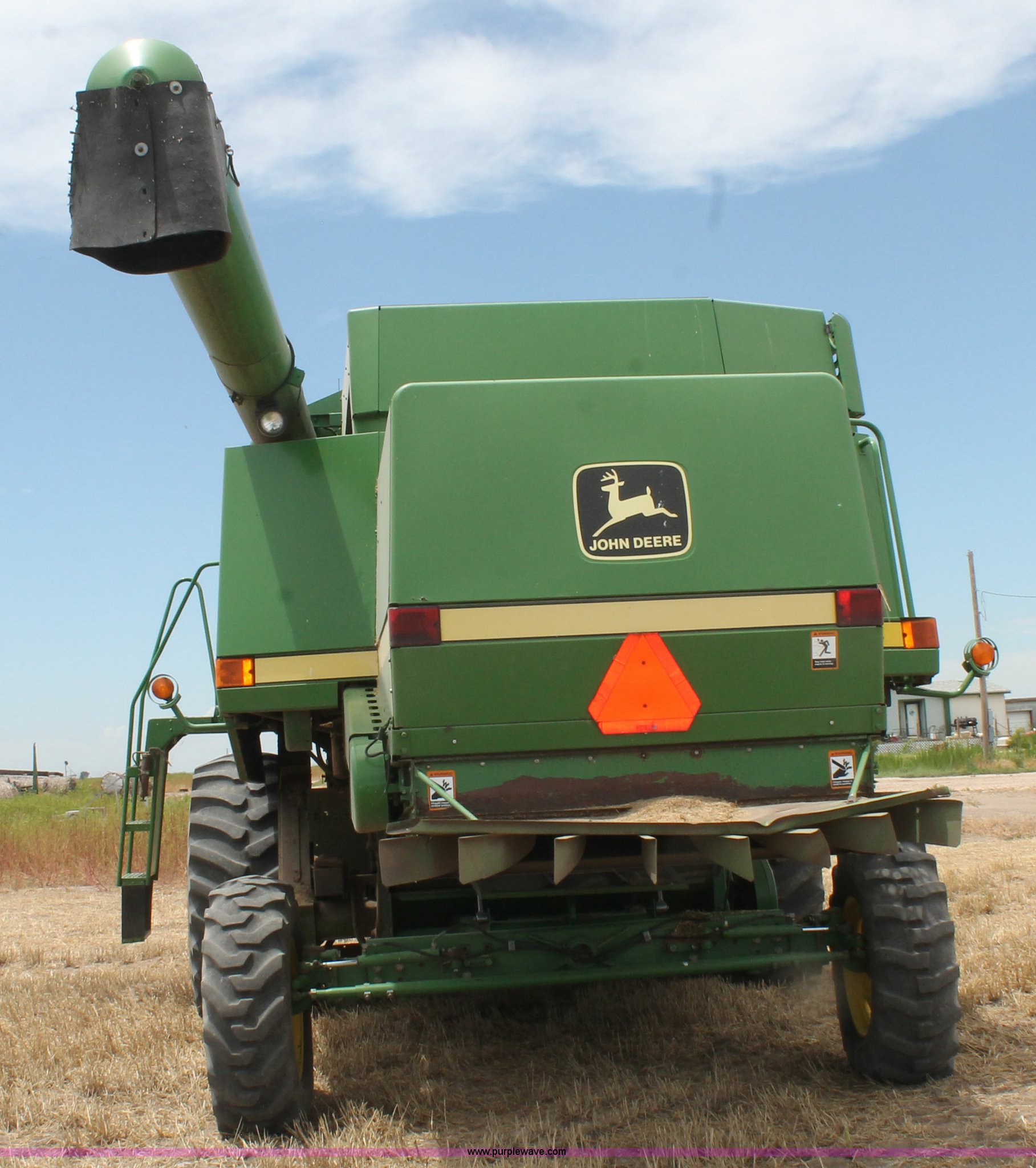 Purple Wave is selling a used Combine in Texas. This item is a 1995 John Deere 9600 combine with the following: John Deere six cylinder turbo diesel engine, 300 HP, Hydrostatic transmission, 3F-3R gears, AC and heat, AM/FM/cassette, Suspension seat, Instructor's seat, Chaff spreader, Straw chopper, 250 bu. grain bin, 21' unloading auger, 30.5-32 front tires, 14.9-24 rear tires, Serial H09600X661357