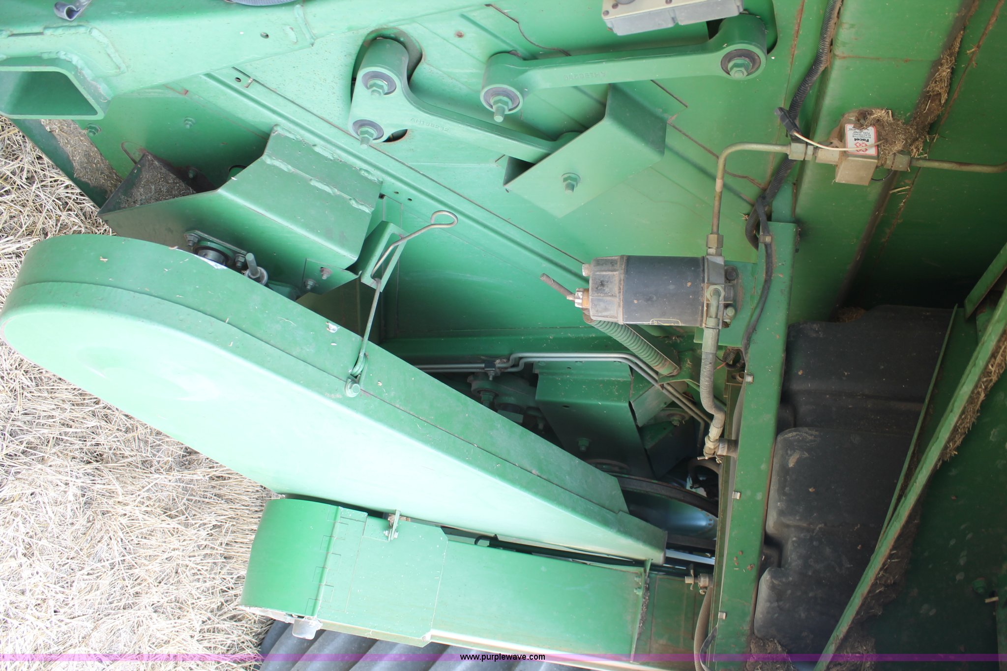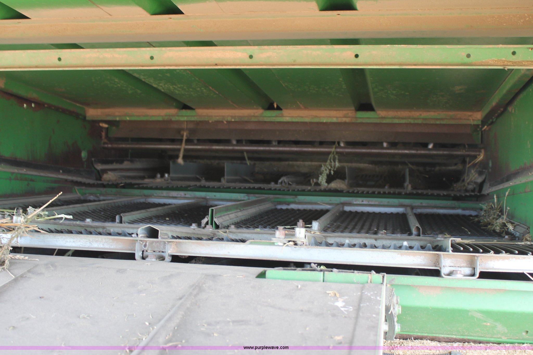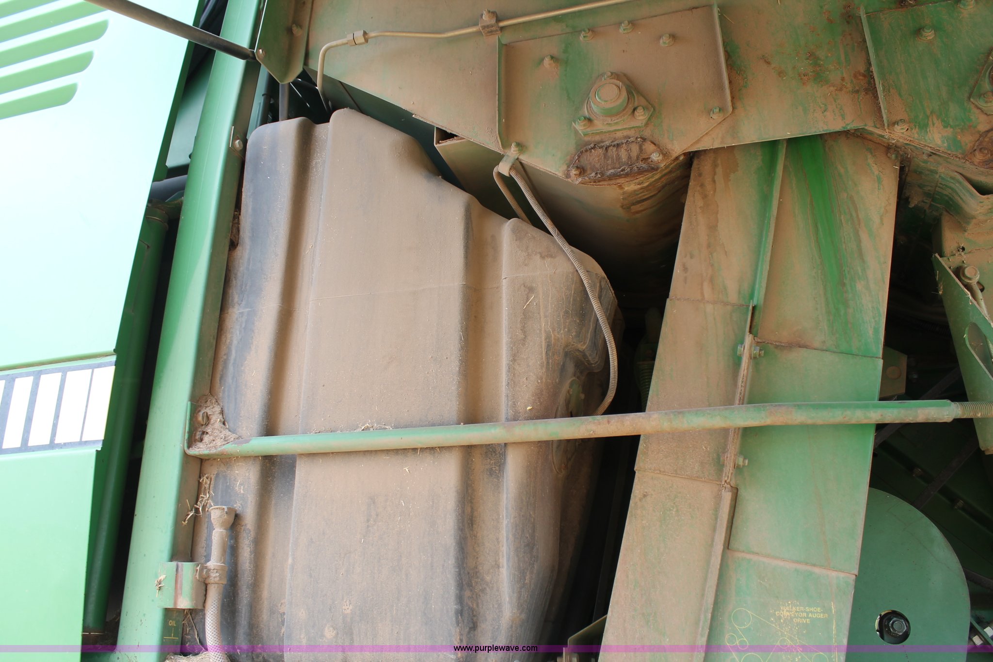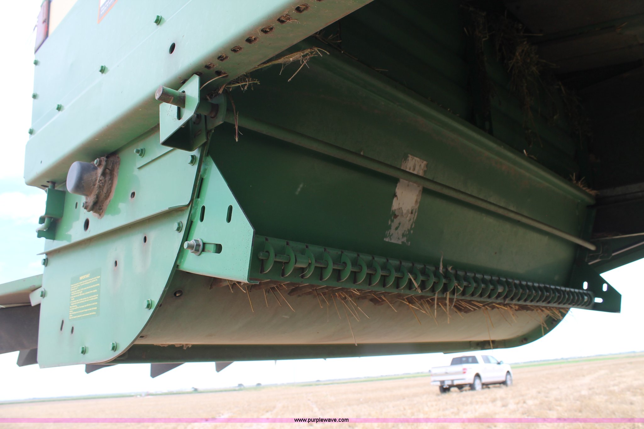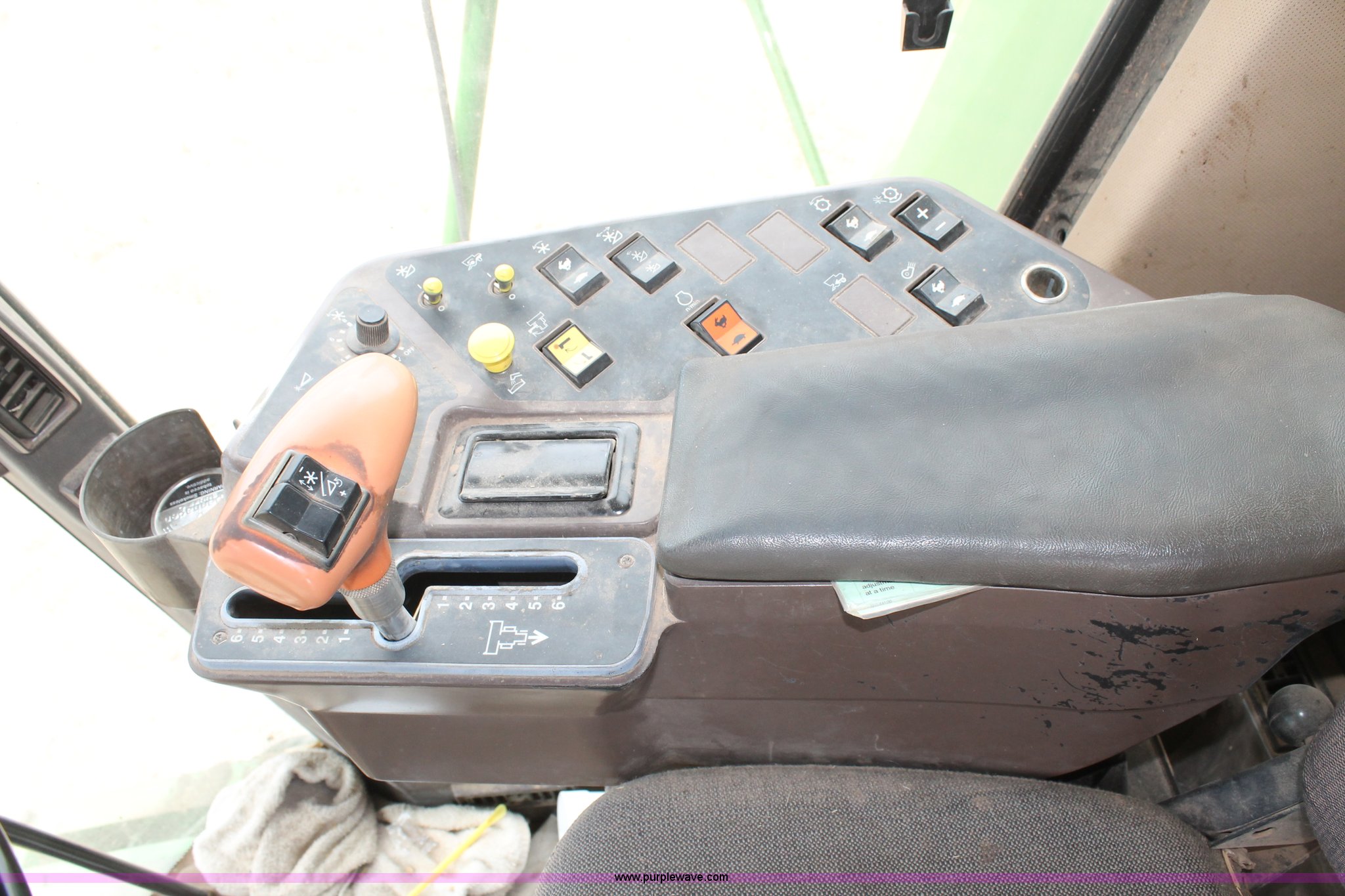 Purple Wave is selling a used Combine in Texas. This item is a 1995 John Deere 9600 combine with the following: John Deere six cylinder turbo diesel engine, 300 HP, Hydrostatic transmission, 3F-3R gears, AC and heat, AM/FM/cassette, Suspension seat, Instructor's seat, Chaff spreader, Straw chopper, 250 bu. grain bin, 21' unloading auger, 30.5-32 front tires, 14.9-24 rear tires, Serial H09600X661357