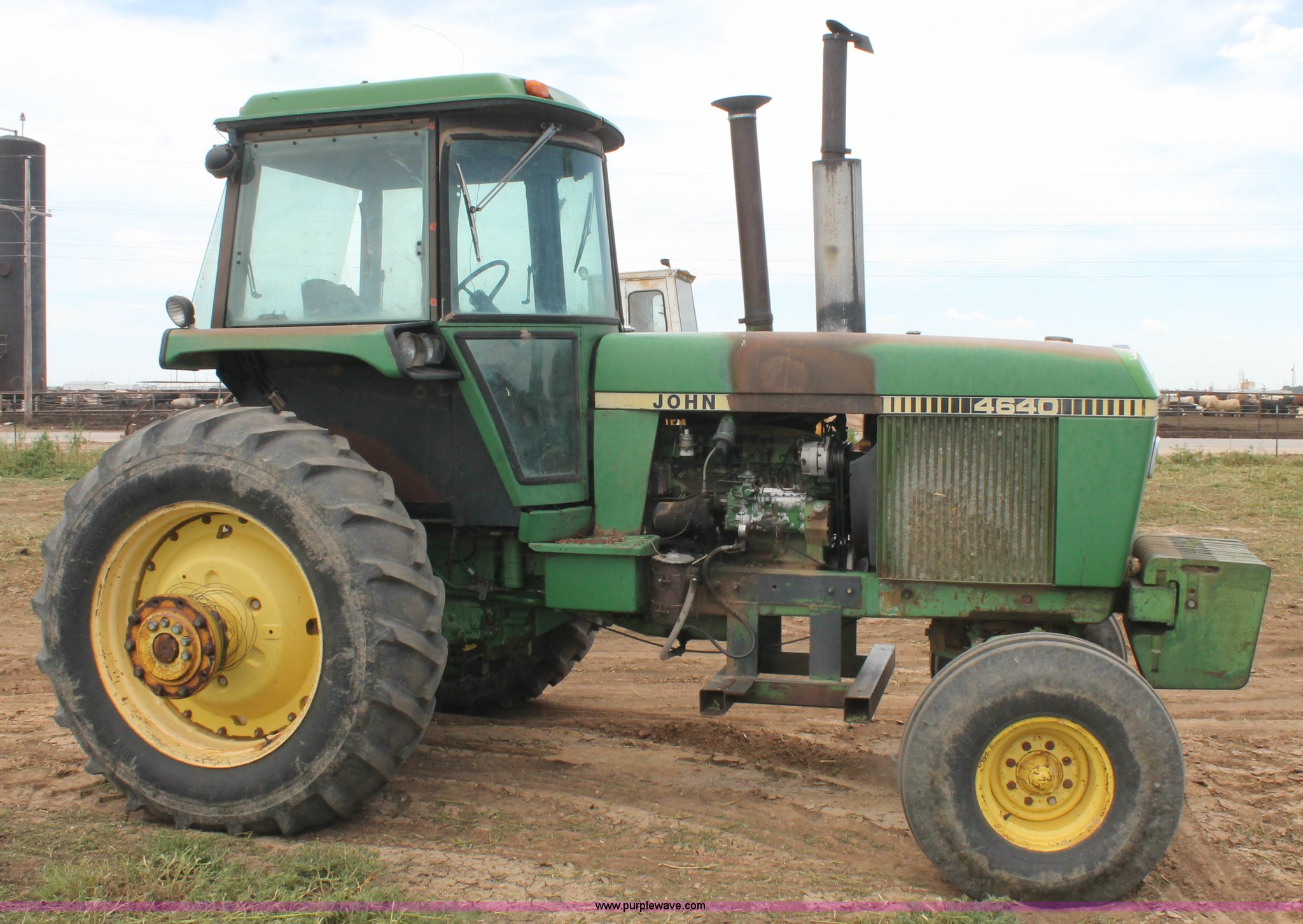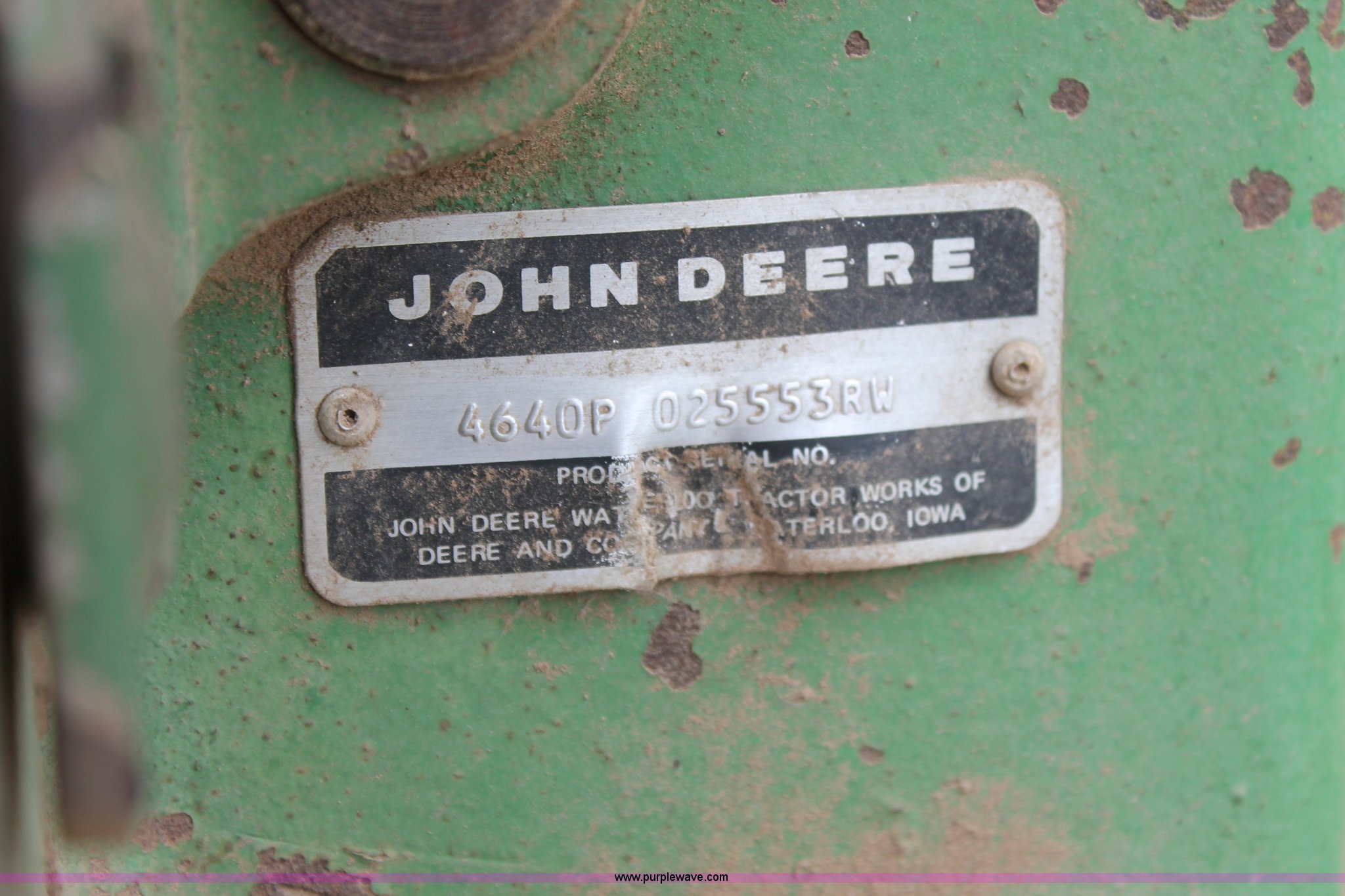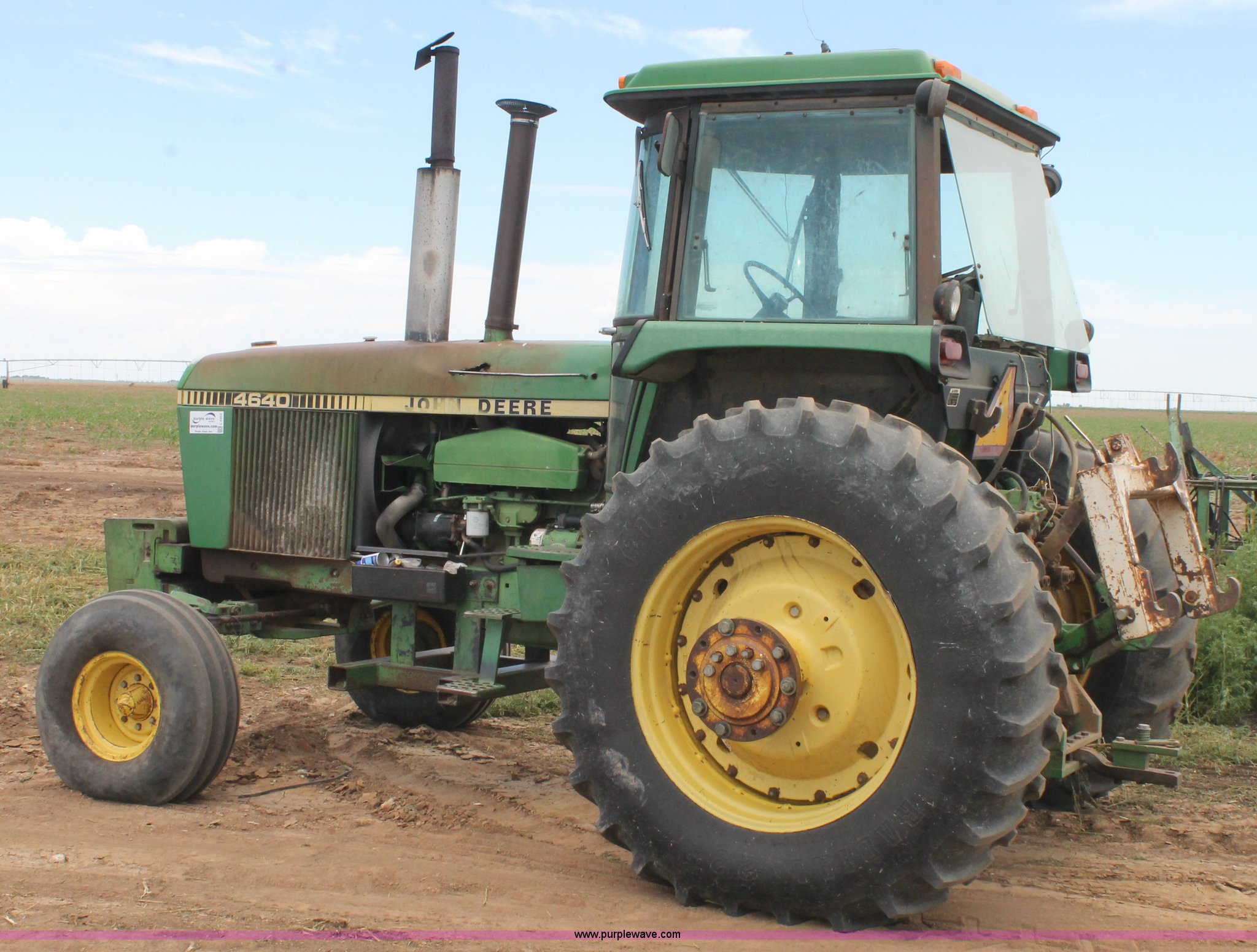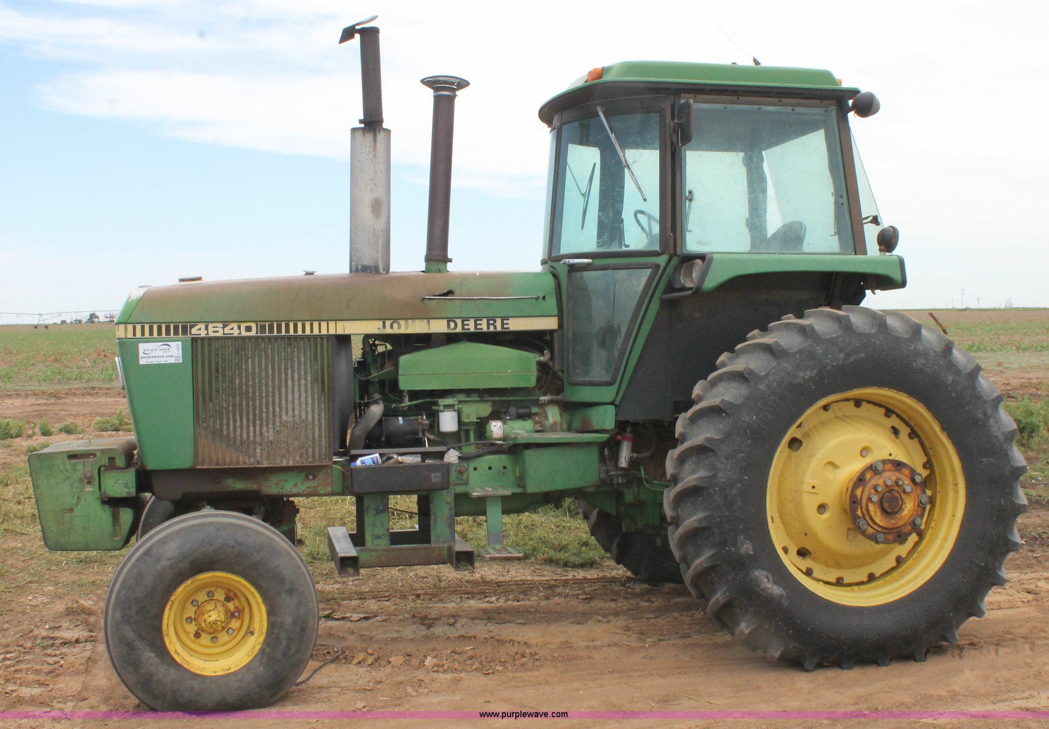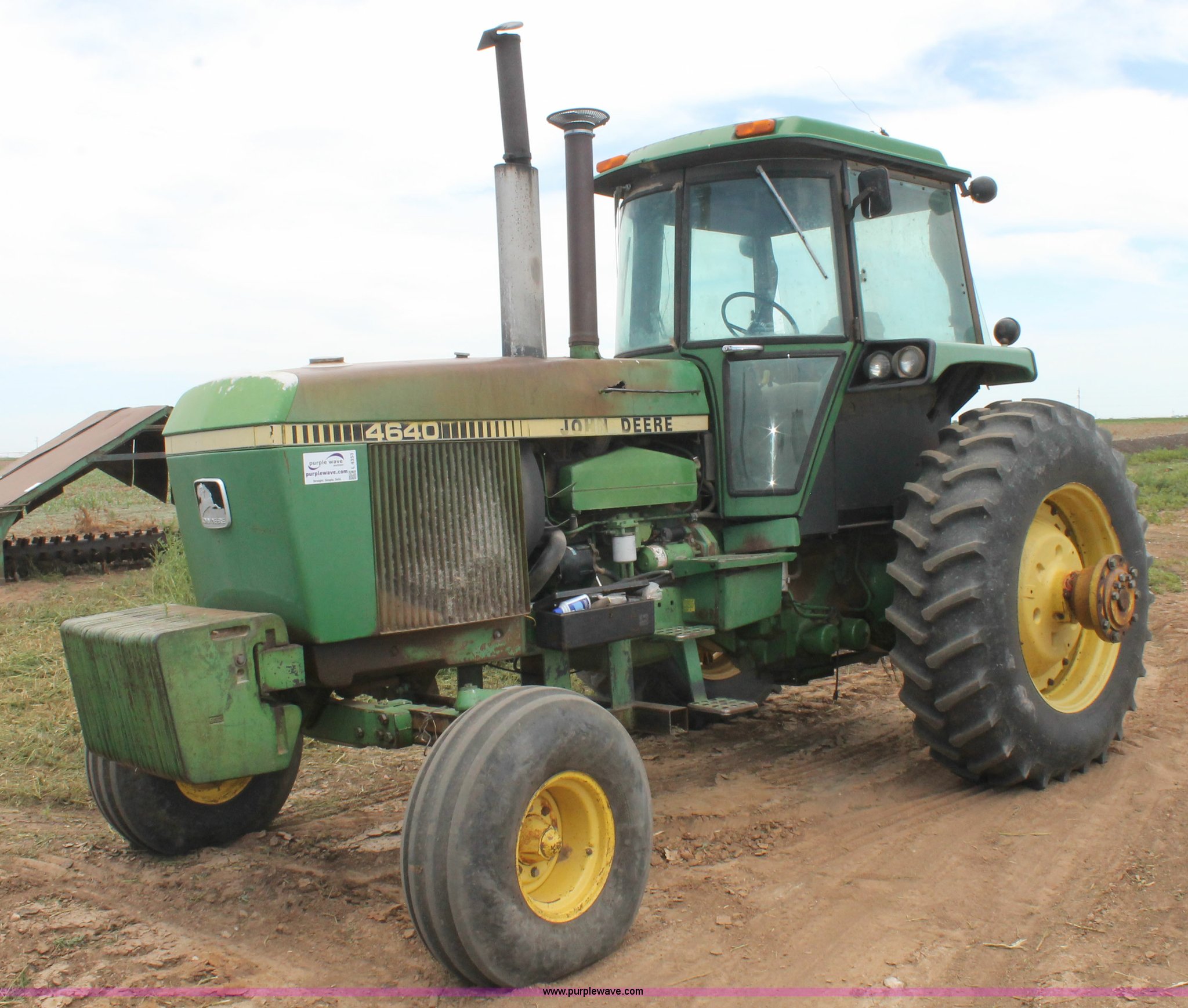 Purple Wave is selling a used Tractor in Texas. This item is a 1981 John Deere 4640 tractor with the following: 6,629 hours on meter, John Deere 7.6L six cylinder turbo diesel engine, 155 HP, Quad-Range transmission, 16F-6R gears, AC and heat, AM/FM, Suspension seat, Three point, Quick attach, 1000 PTO, (3) rear hydraulic remote sets, (20) suitcase weights, 11.00-16 front tires, 18.4R38 rear tires, Dual hubs, Serial 4640P025553RW