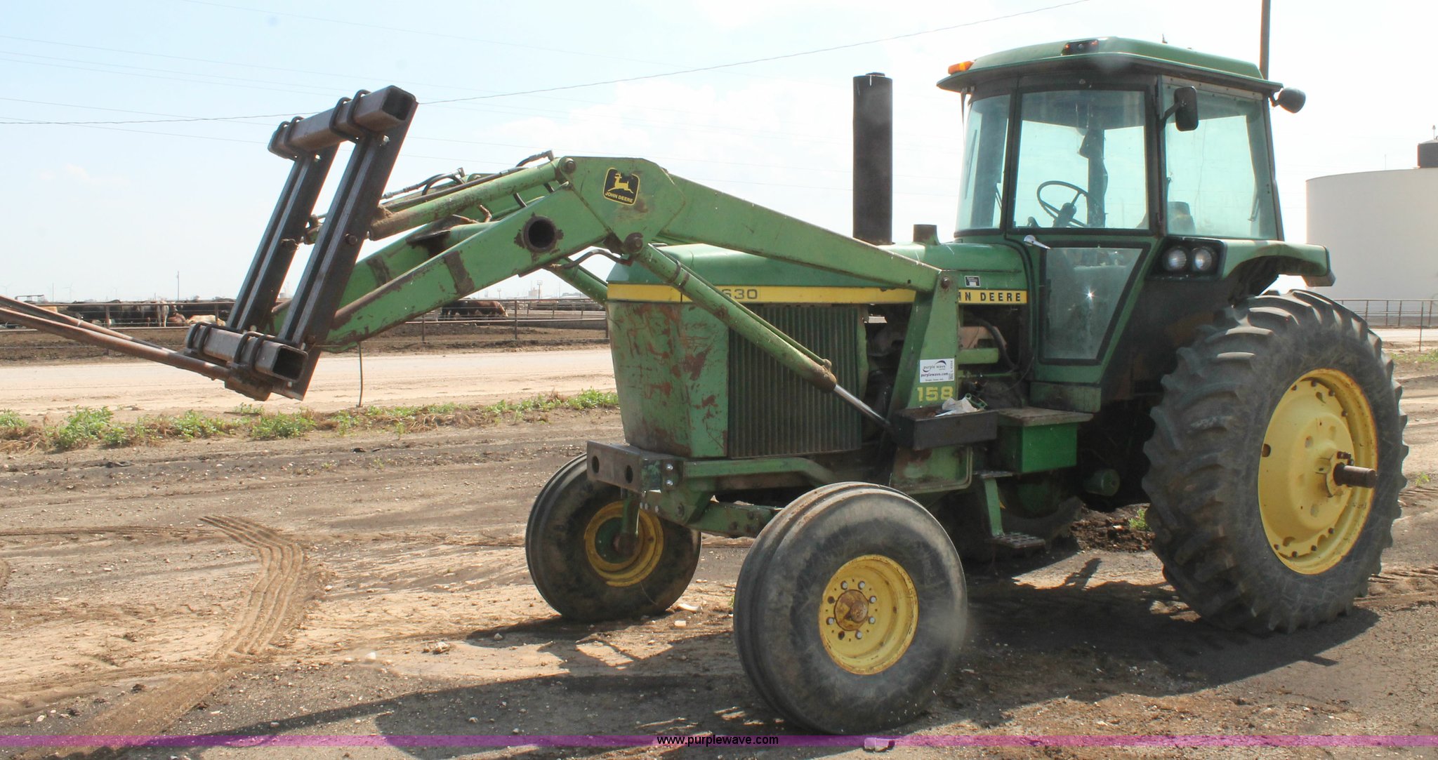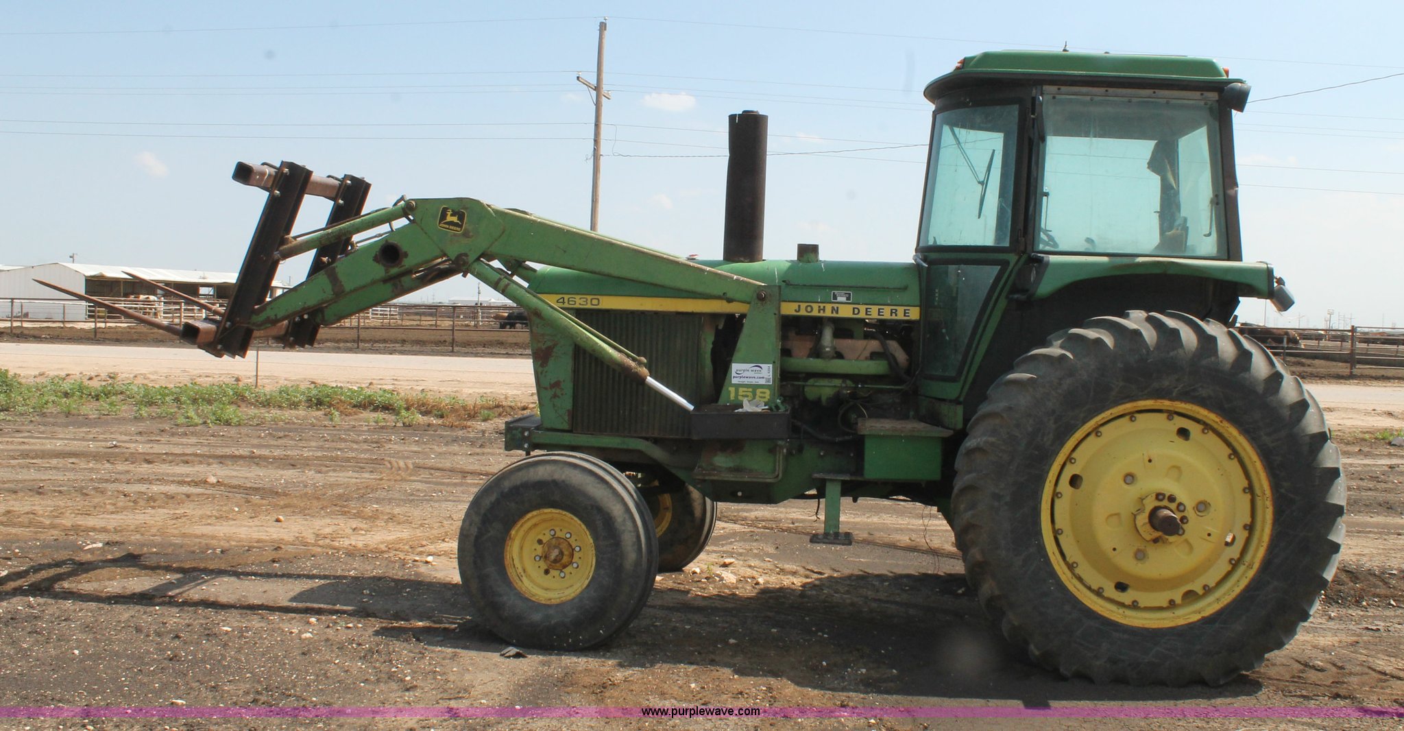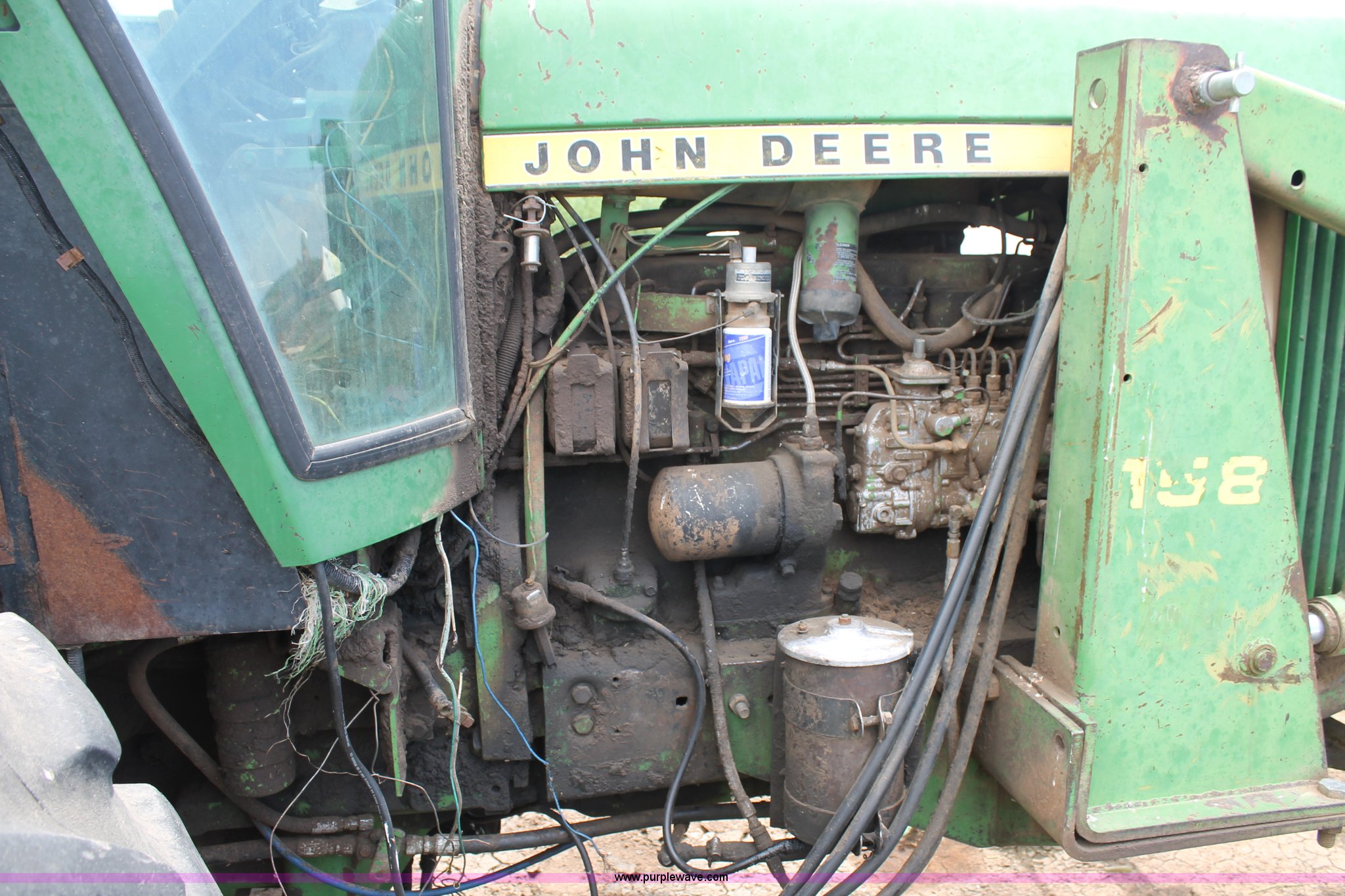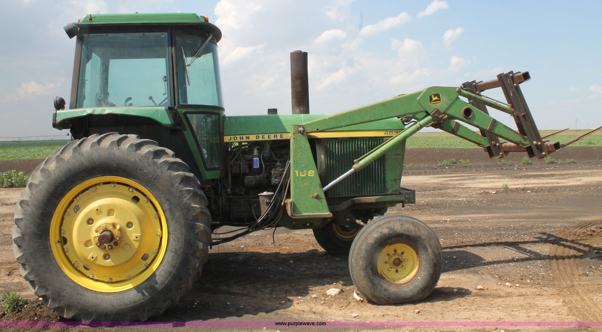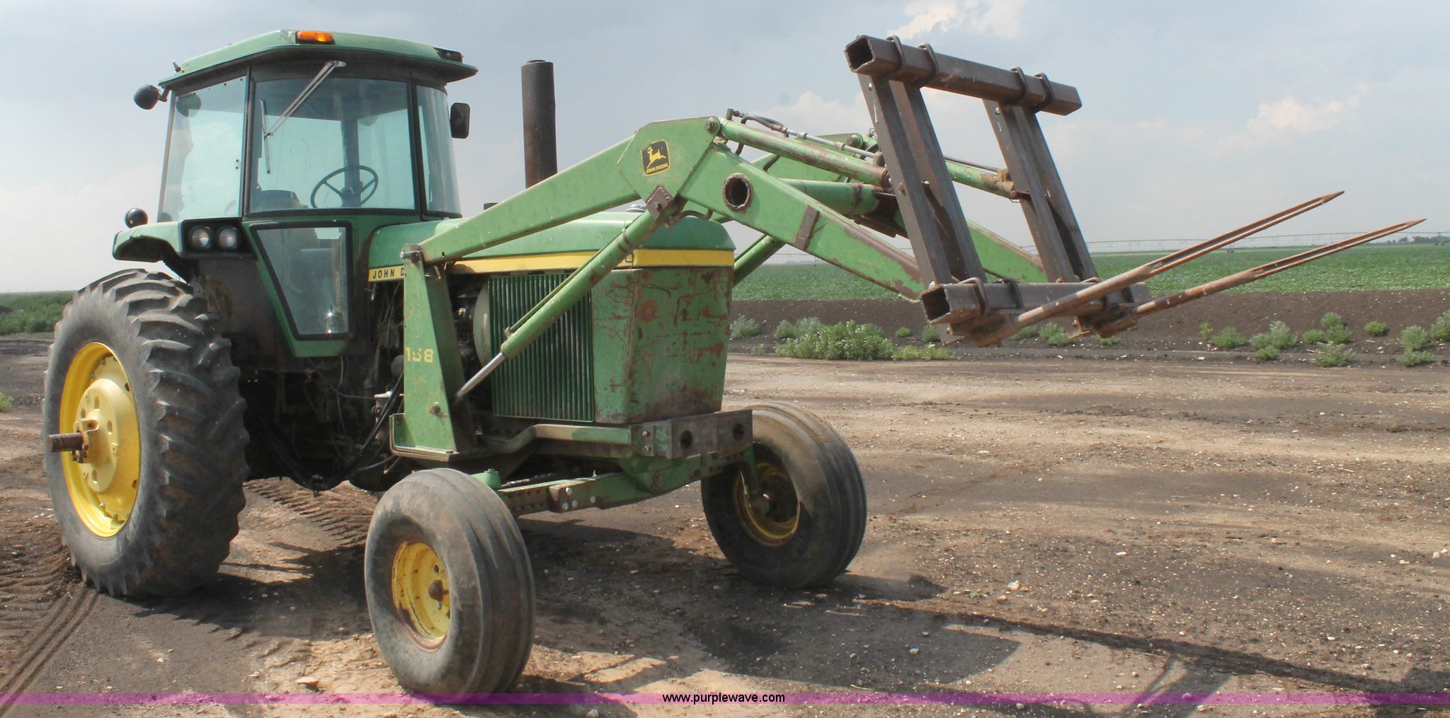 Purple Wave is selling a used Tractor in Texas. This item is a 1981 John Deere 4440 tractor with the following: 2,580 hours on meter, John Deere 7.6L six cylinder diesel engine, 130 HP, Quad-Range partial powershift transmission, 16F-6R gears, AC and heat, AM/FM, Suspension seat, John Deere 158 loader, Bale spear, Three point, No top link, 540/1000 PTO, (3) rear hydraulic remote sets, 11.00-16 front tires, 18.4-38 rear tires, Serial 4440H043202R