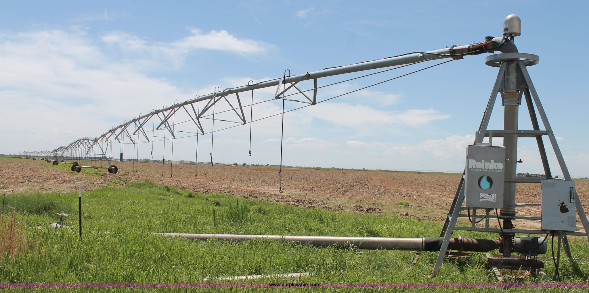 Purple Wave is selling a used Center Pivot in Texas. This item is a Reinke 65GLEPA quarter mile center pivot sprinkler with the following: 12,266 hours on meter, Drop hoses, Electric operation, Eight towers, Serial 0501-21104