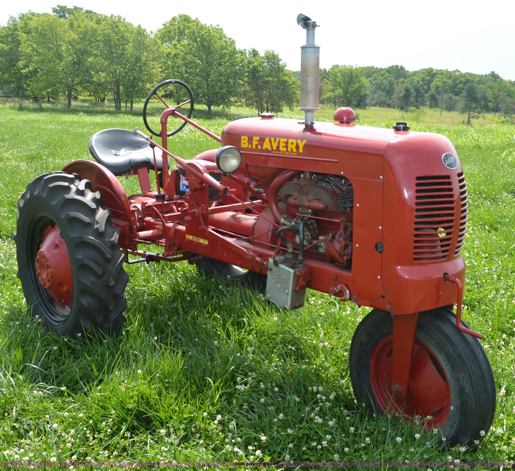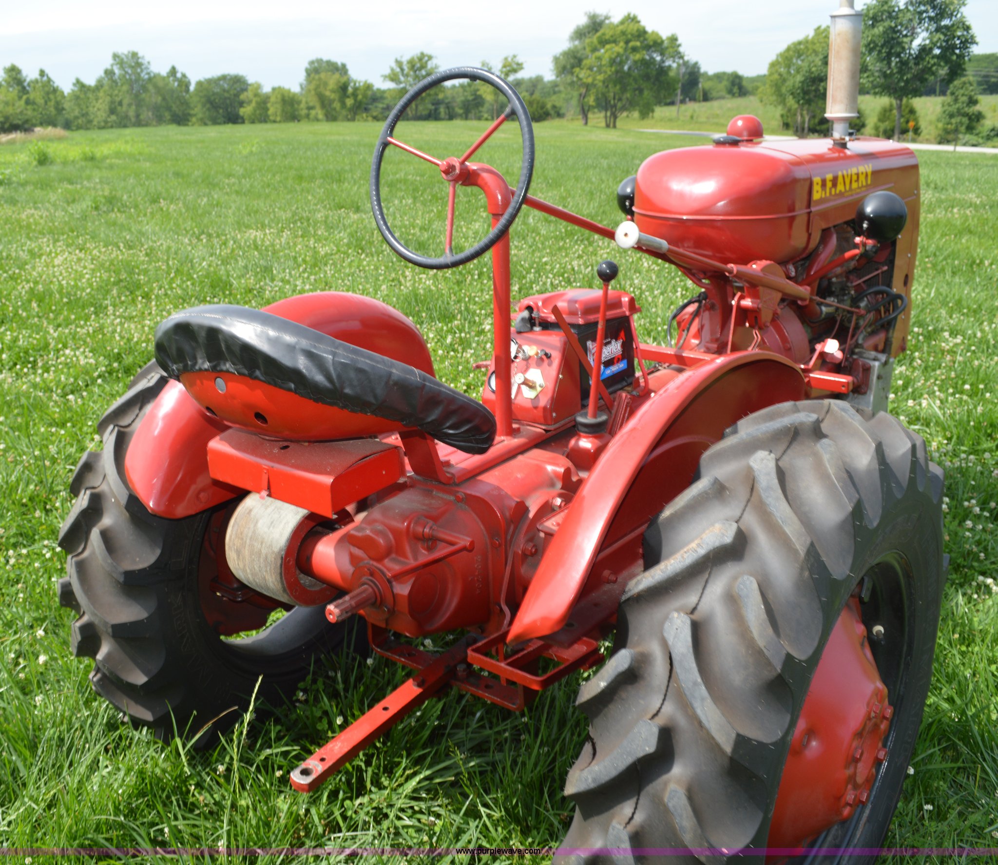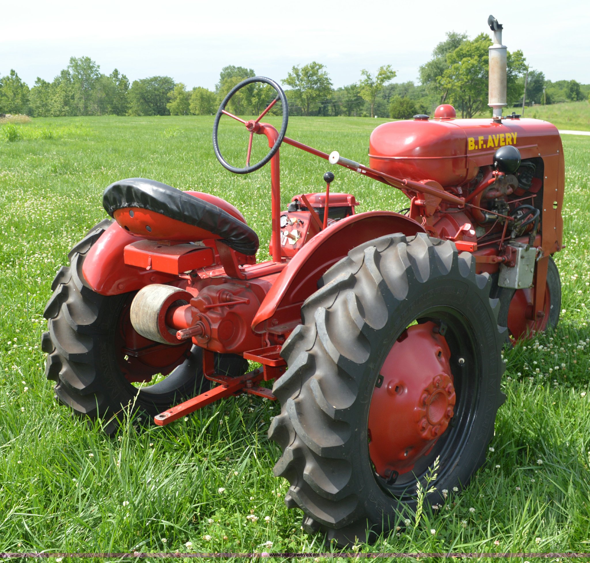 Purple Wave is selling a used Tractor in Missouri. This item is a B.F. Avery A tractor with the following: Four cylinder gas engine, Three speed manual transmission, 540 PTO, Rear draw bar, Work lights, 6.00-16 front tires, 11.2-24 rear tires, Serial 2423155