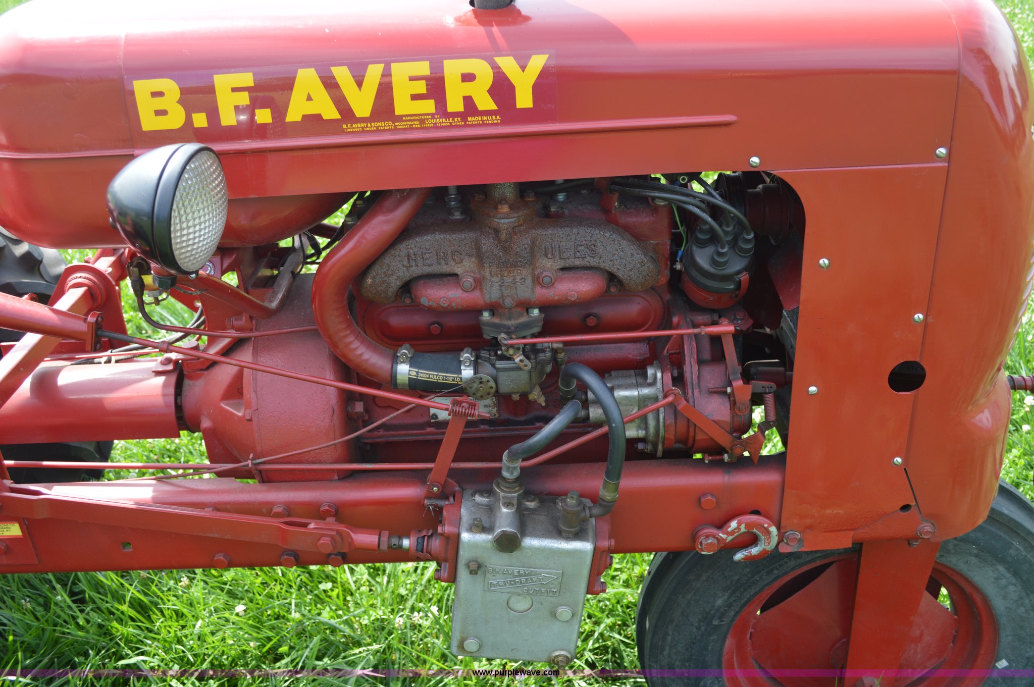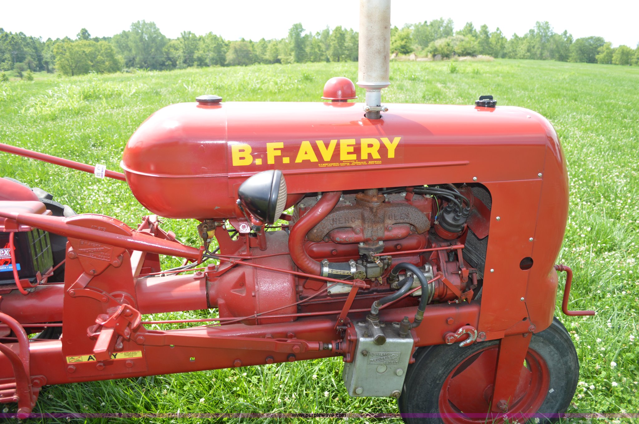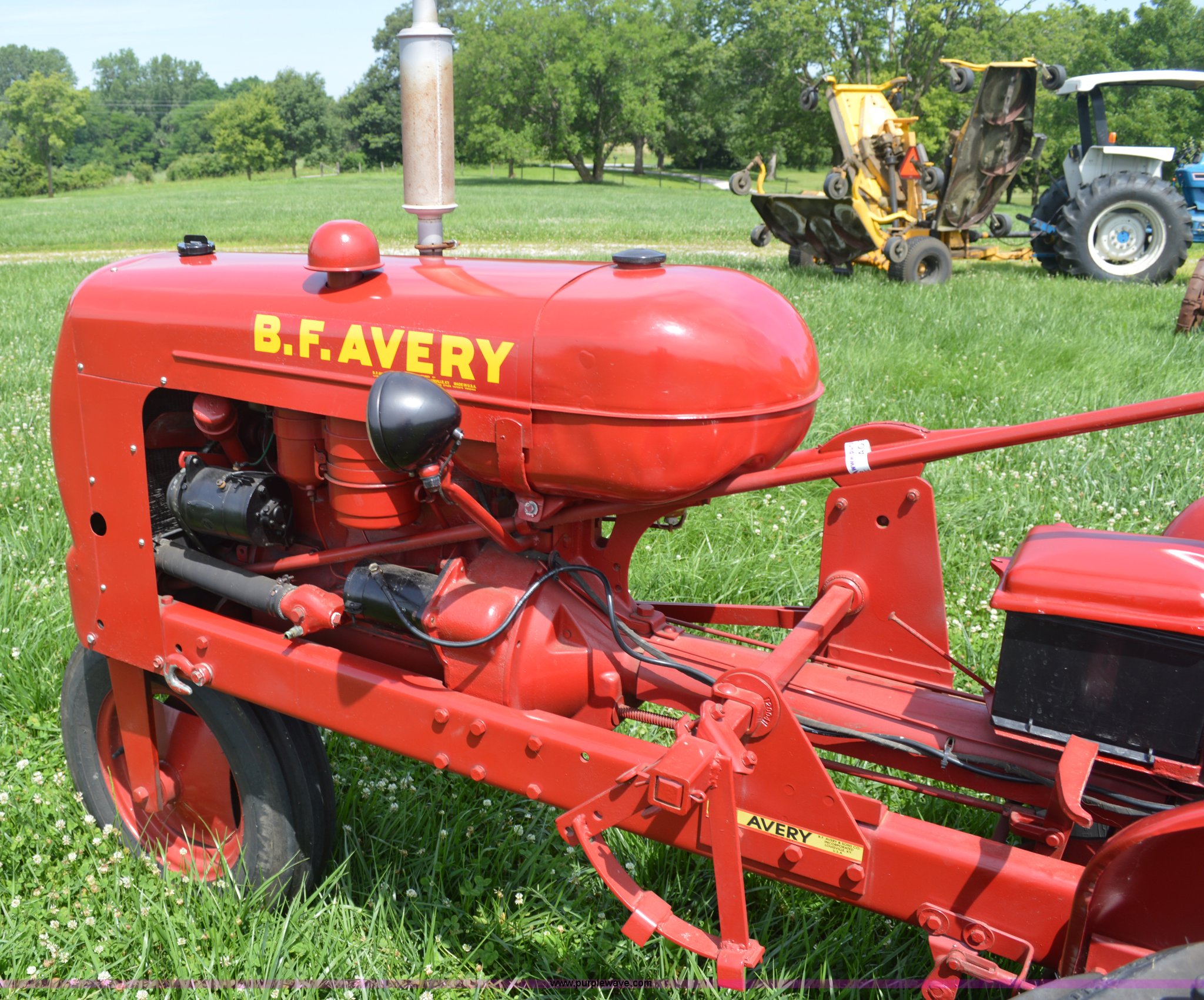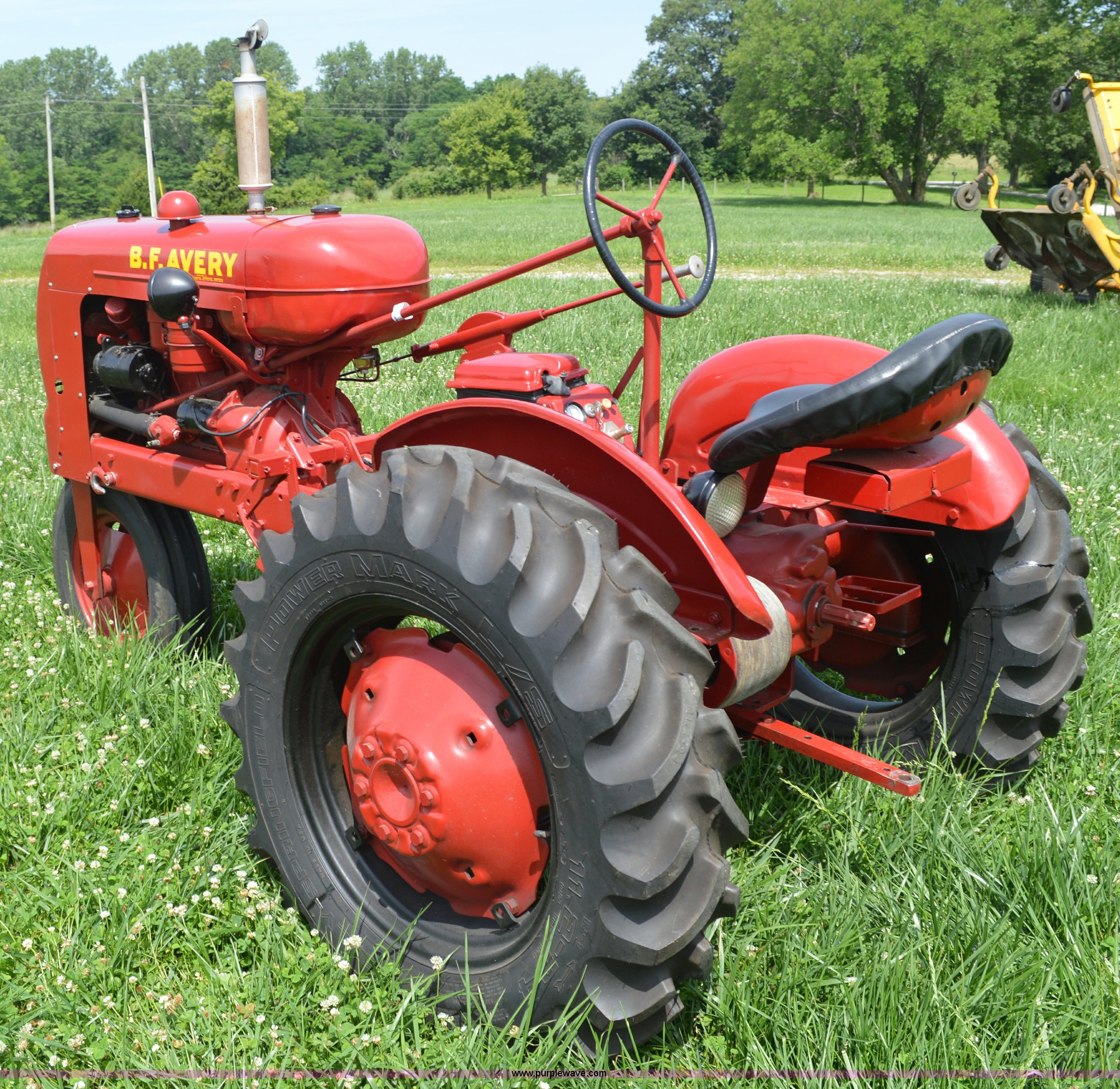 Purple Wave is selling a used Tractor in Missouri. This item is a B.F. Avery A tractor with the following: Four cylinder gas engine, Three speed manual transmission, 540 PTO, Rear draw bar, Work lights, 6.00-16 front tires, 11.2-24 rear tires, Serial 2423155
