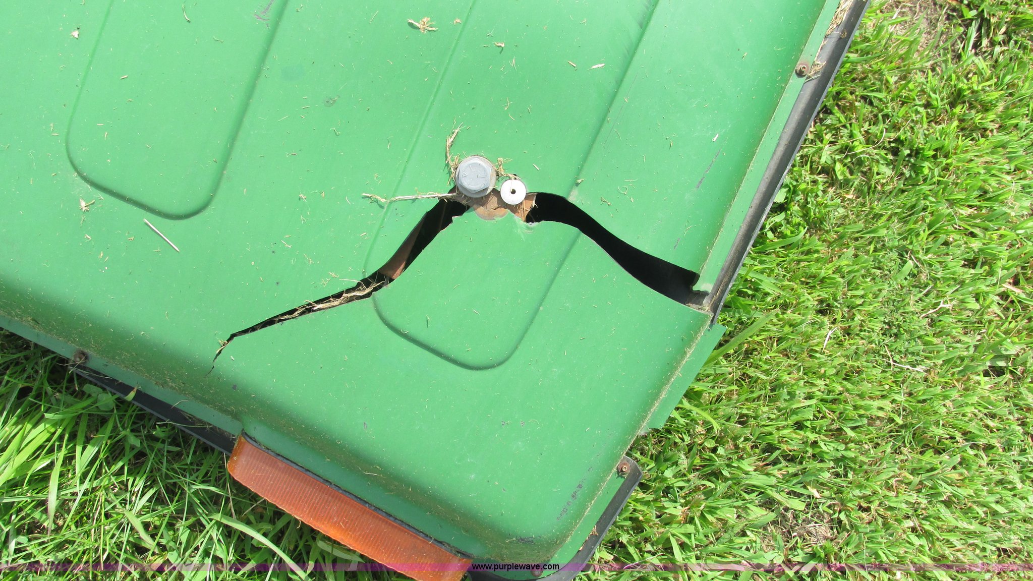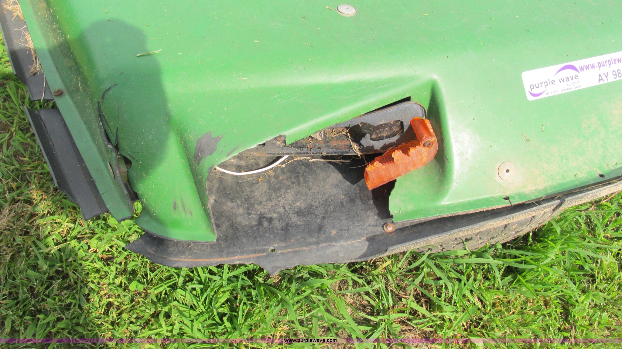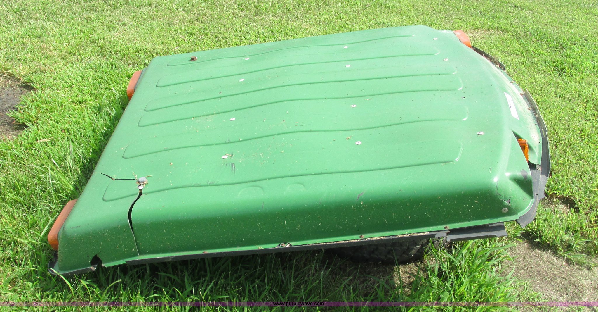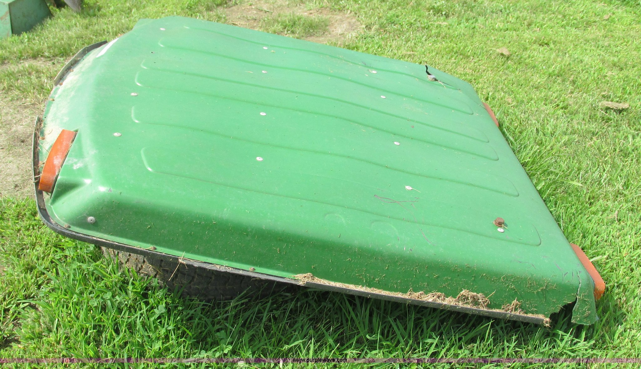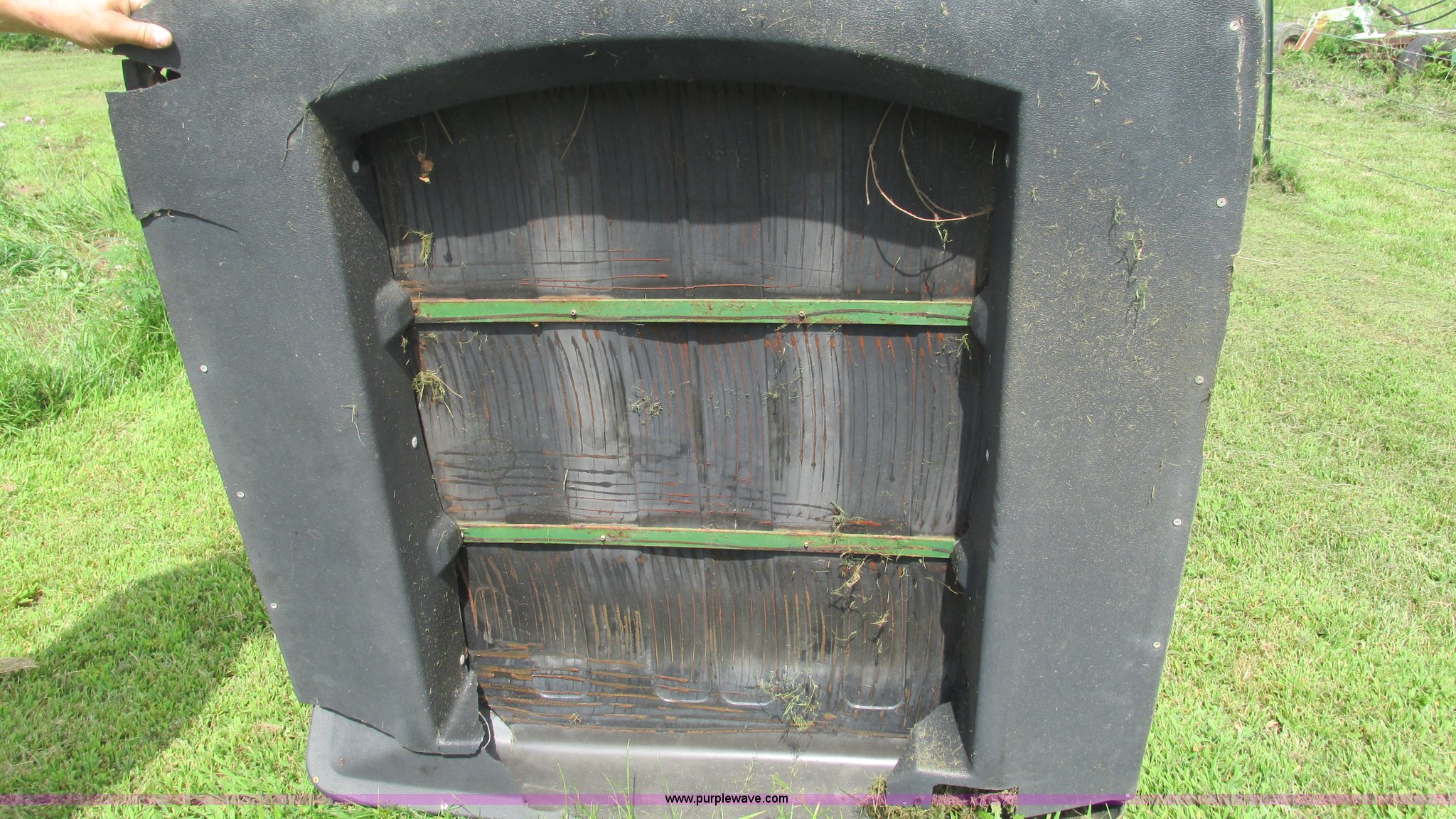 Purple Wave is selling a used Ag Tractor Loader or Attach. in Missouri. This item is a John Deere canopy with the following: 4' x 4.5', Damaged, Removed from John Deere 2840 tractor