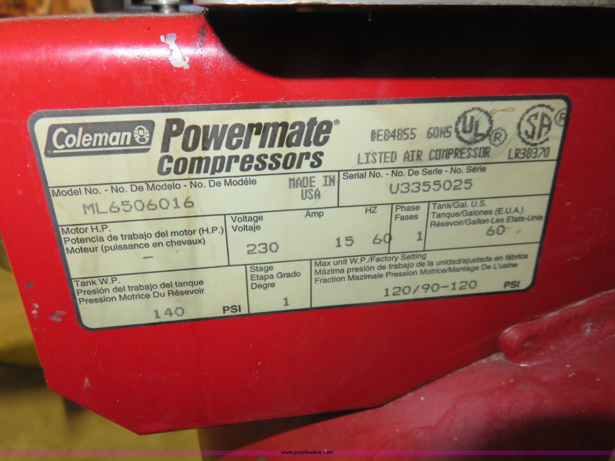 Purple Wave is selling a used Air Compressor in Kansas. This item is a Magna Force air compressor with the following: 6 1/2 HP, 230V, 60 gallon tank