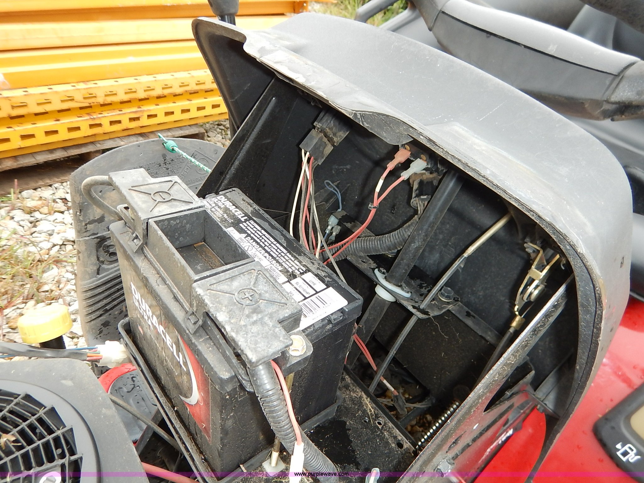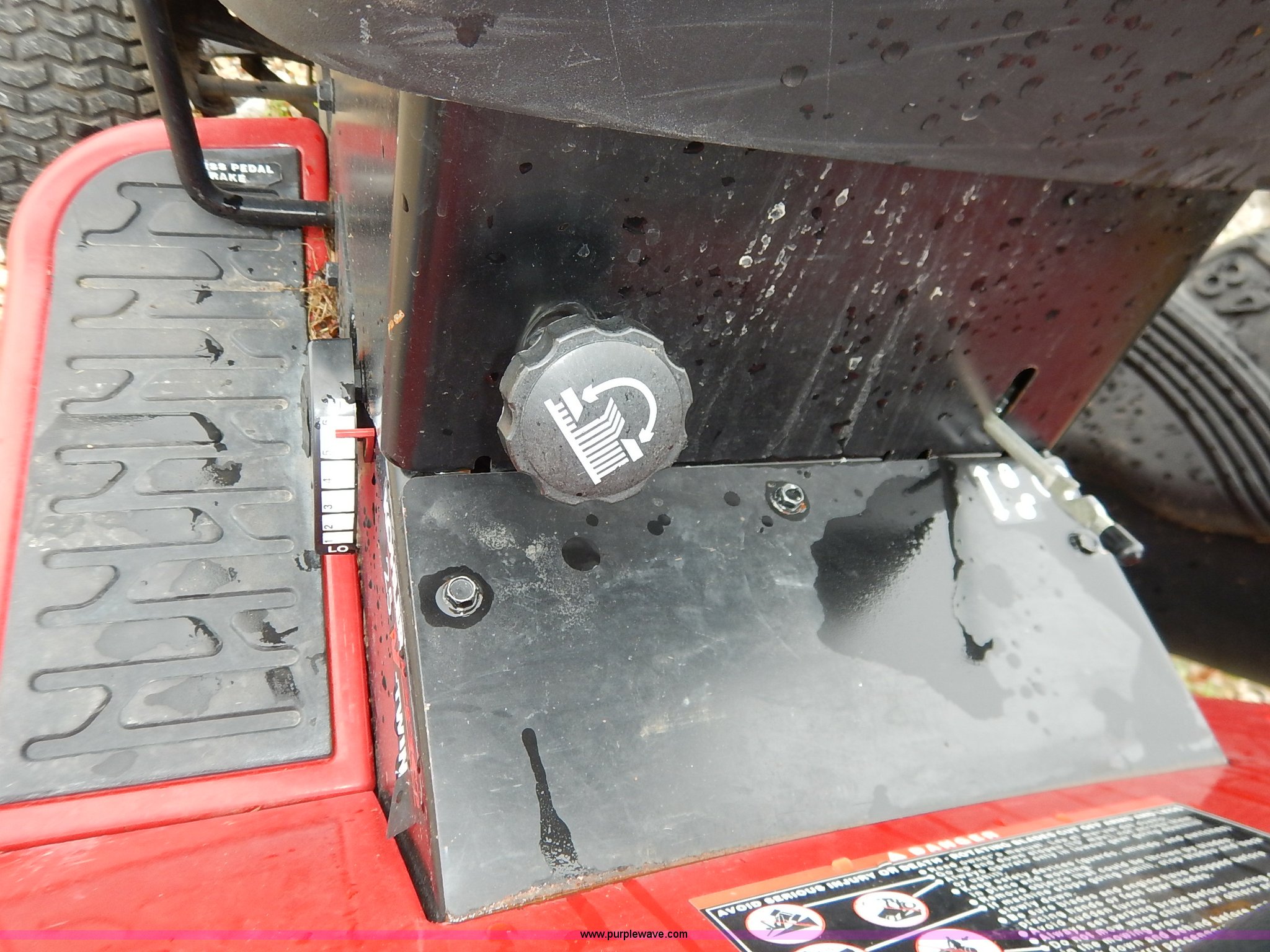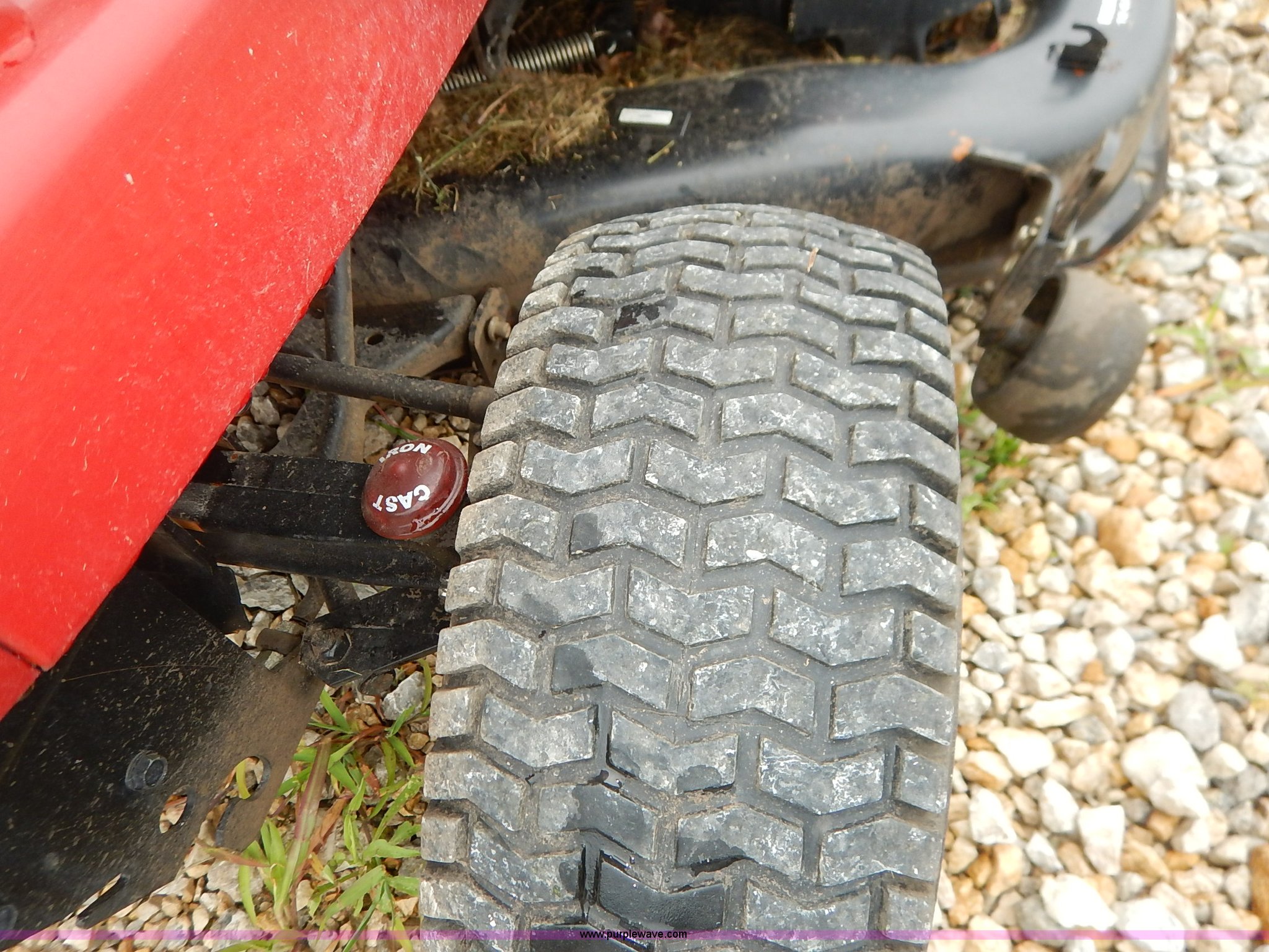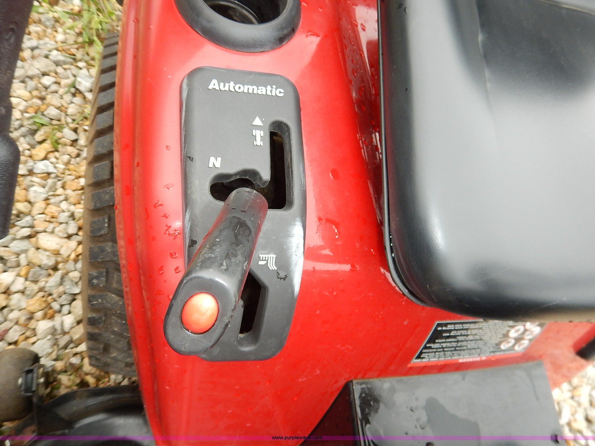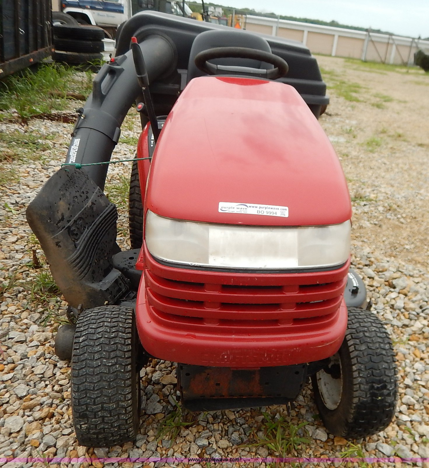 Purple Wave is selling a used Lawn Mower in Kansas. This item is a Craftsman GT5000 riding mower with bagger with the following: 48" cutting capacity, Kohler Pro 25 V-twin gas engine, Automatic transmission, Vinyl seat, Front lights, 16 x 6.50-8 front tires, 23 x 10.50-12 rear tires, Serial 022404B001808