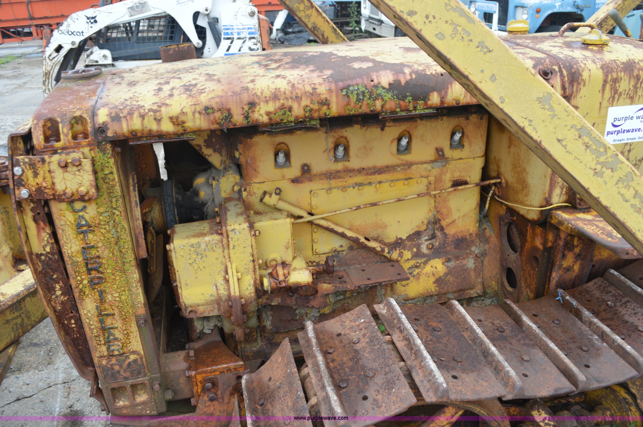 Purple Wave is selling a used Crawler Dozer in Missouri. This item is a Caterpillar R4 dozer with the following: Four cylinder gas engine, Five speed manual transmission, 9'W blade, Winch, Rear draw bar, Four bottom rollers, 13"W track pads, Unknown operating condition, Serial GG3511