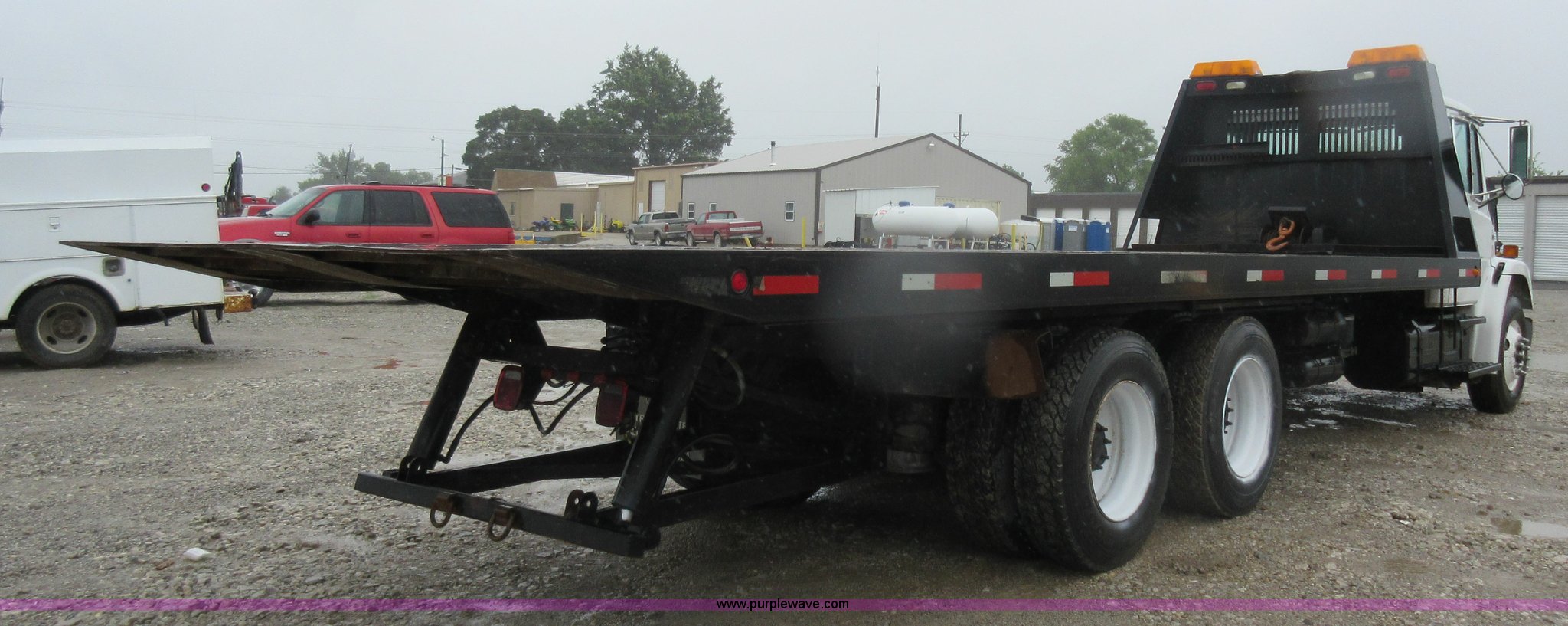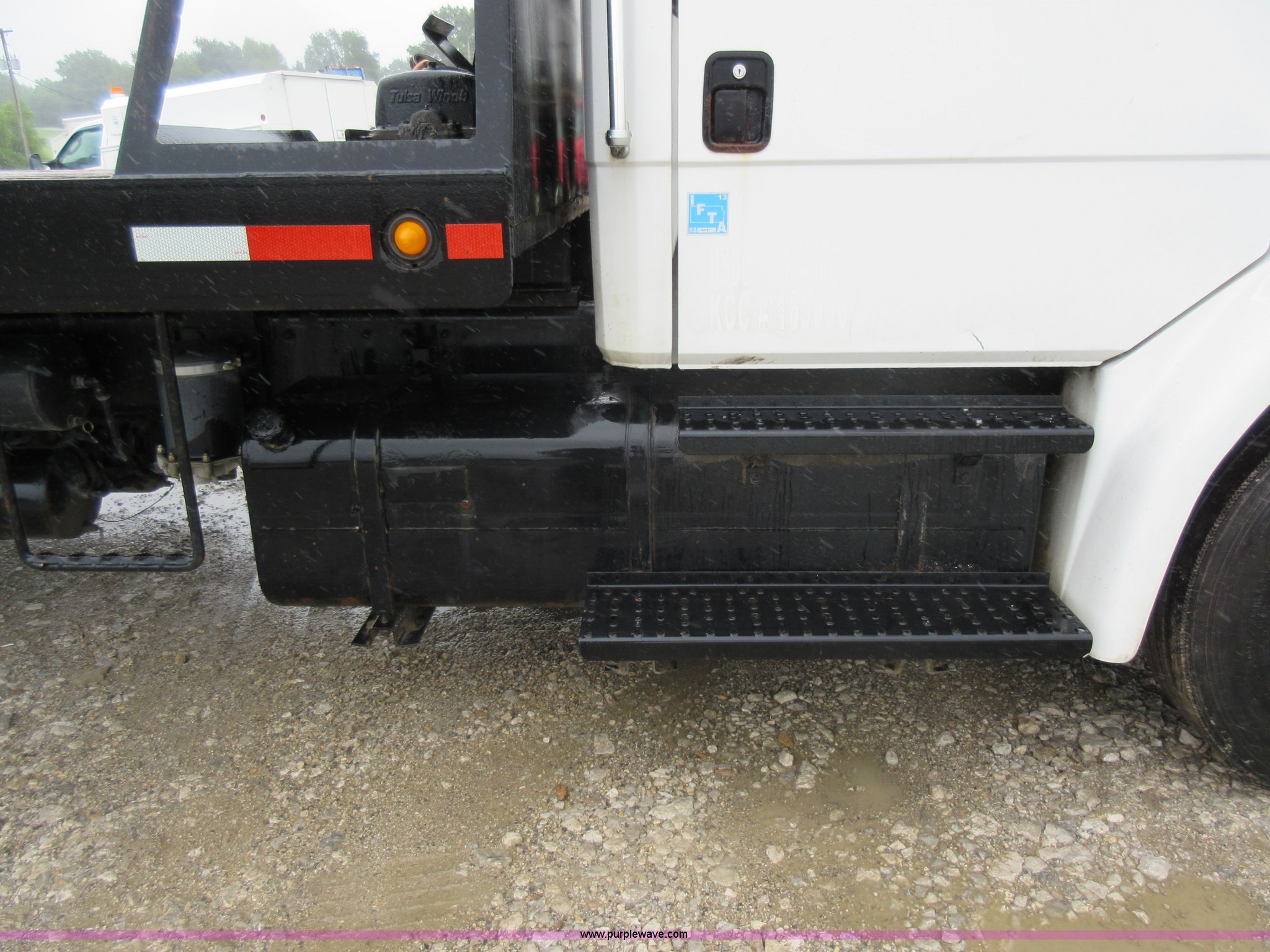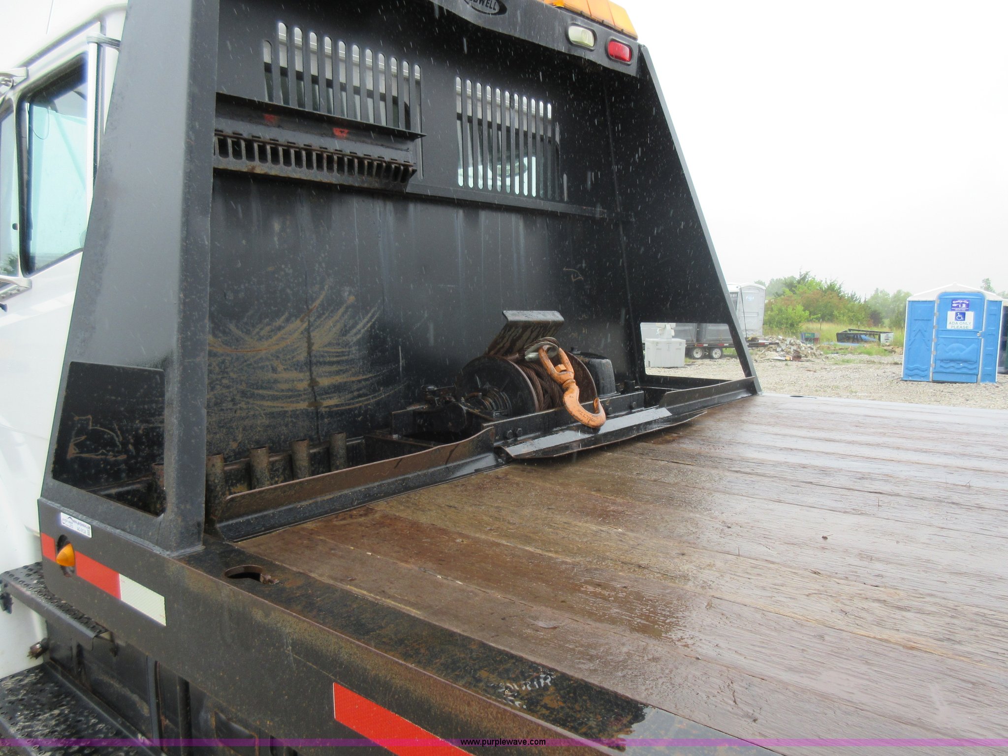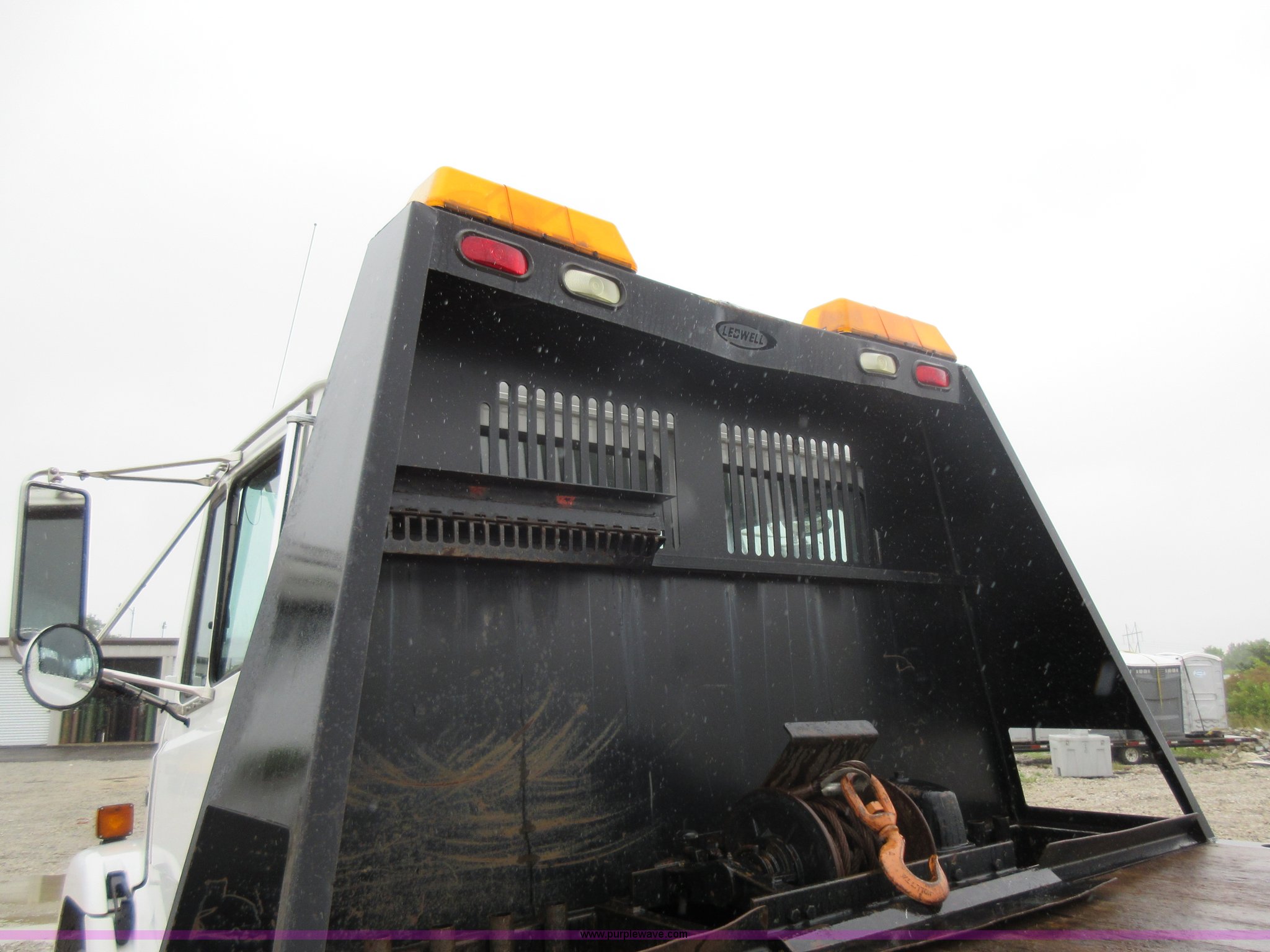 Purple Wave is selling a used Rollback or Tow Truck in Kansas. This item is a 2003 Freightliner FL80 roll back truck with the following: 290,741 miles on odometer, Caterpillar 3126 7.2L L6 diesel engine, Eaton Fuller nine speed manual transmission, AC and heat, Cruise, AM/FM/cassette, Power mirrors, Heated mirrors, PTO, 26'L x 102"W rollback bed, Winch, Dual fuel tanks, Air suspension, Air brakes, 295/75R22.5 tires, GVWR 53,880 lbs, FAWR 13,880 lbs, IAWR 20,000 lbs, RAWR 20,000 lbs