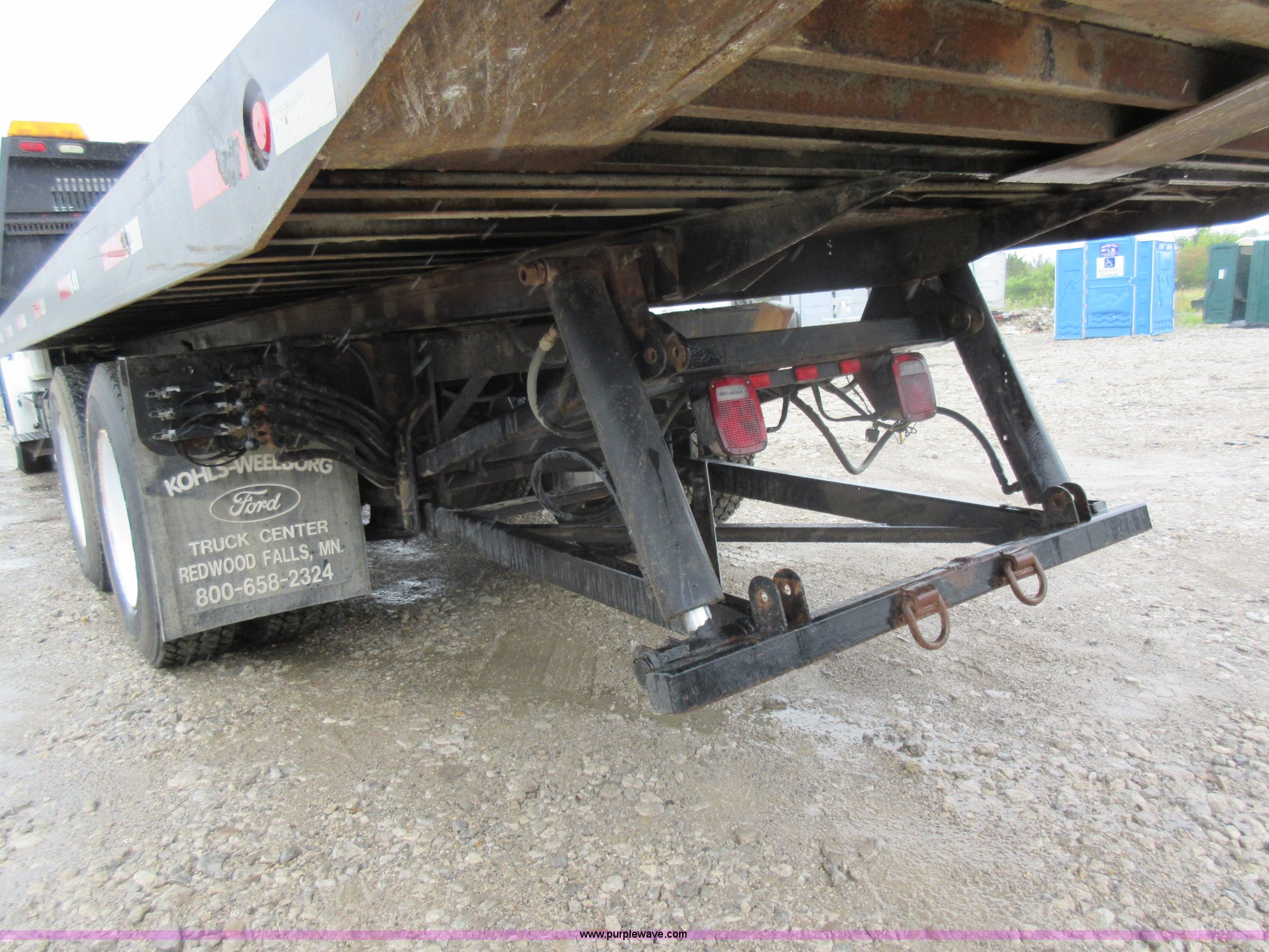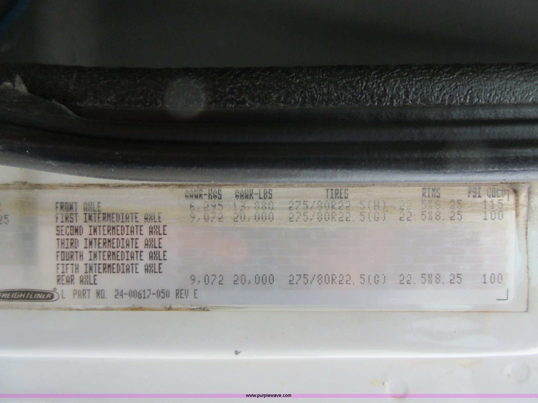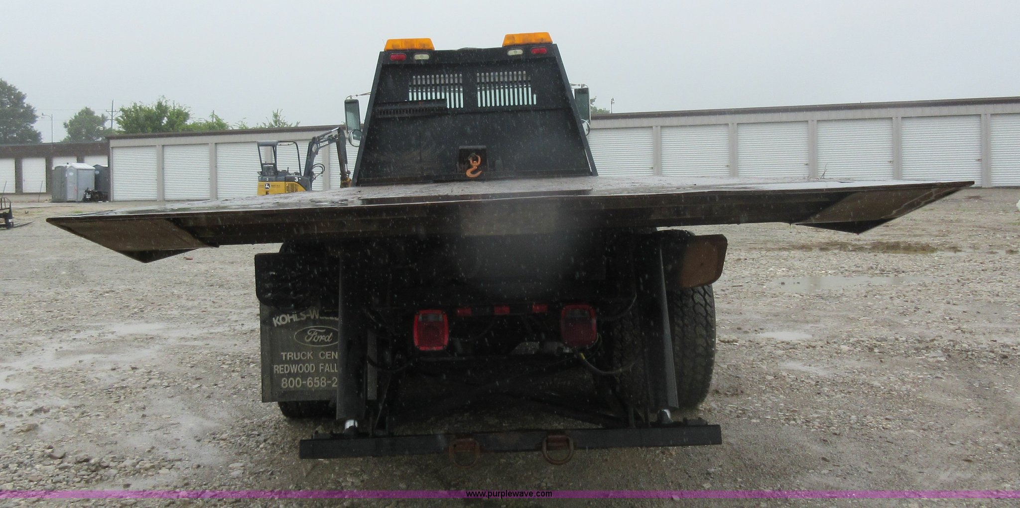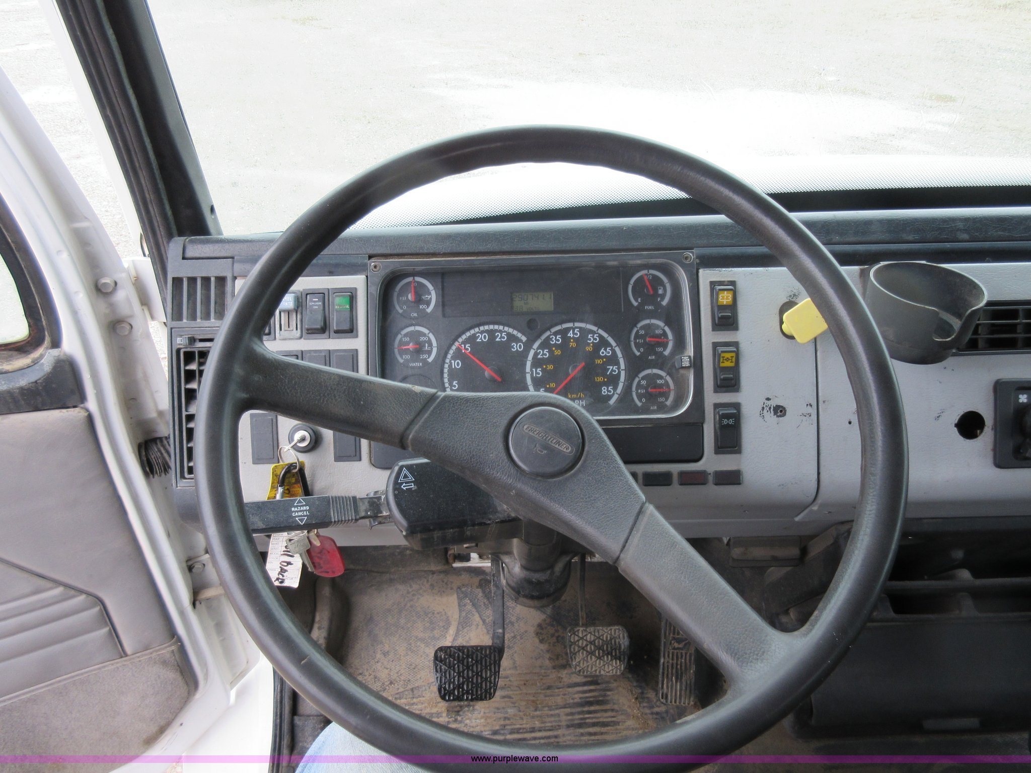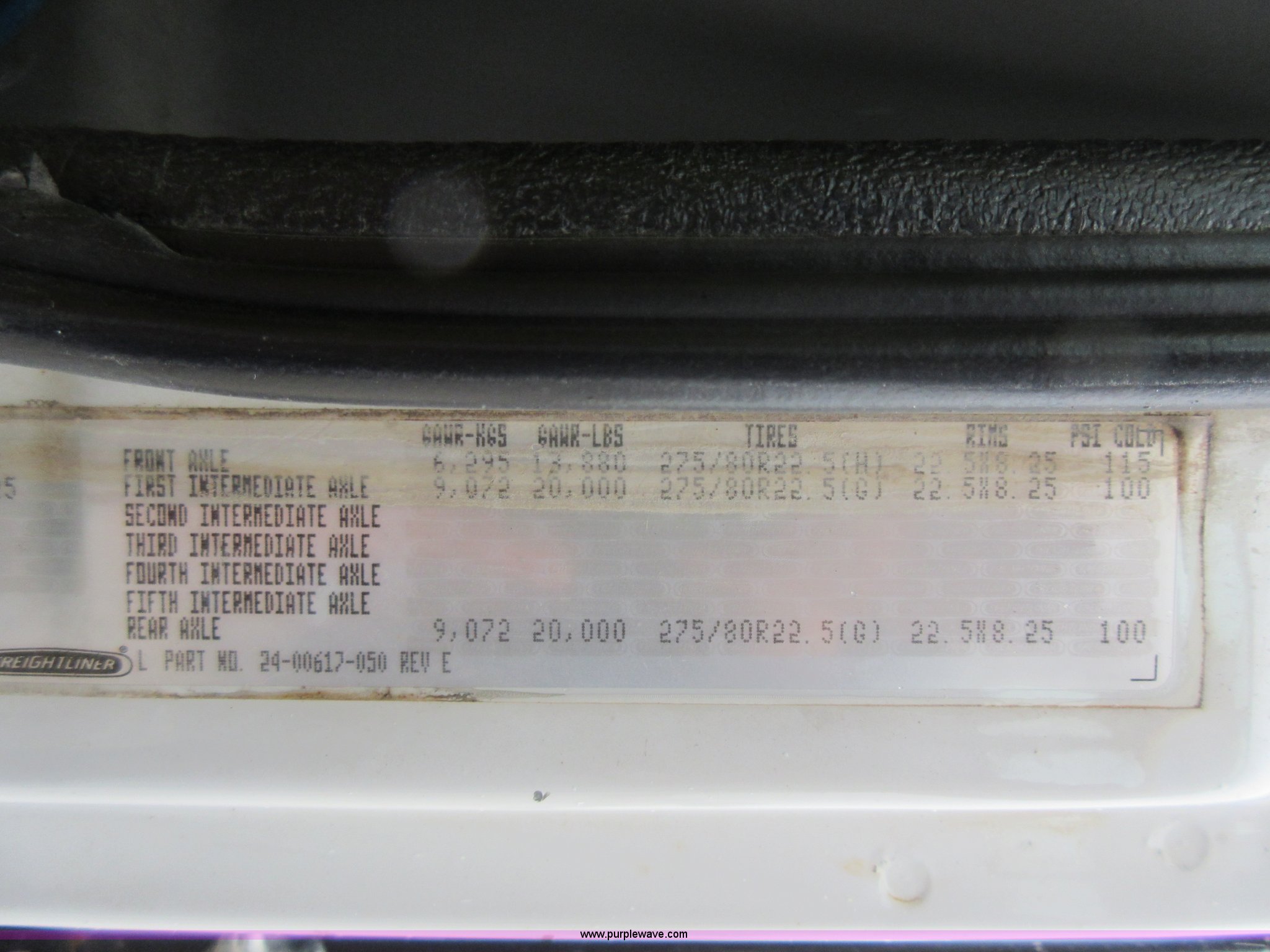 Purple Wave is selling a used Rollback or Tow Truck in Kansas. This item is a 2003 Freightliner FL80 roll back truck with the following: 290,741 miles on odometer, Caterpillar 3126 7.2L L6 diesel engine, Eaton Fuller nine speed manual transmission, AC and heat, Cruise, AM/FM/cassette, Power mirrors, Heated mirrors, PTO, 26'L x 102"W rollback bed, Winch, Dual fuel tanks, Air suspension, Air brakes, 295/75R22.5 tires, GVWR 53,880 lbs, FAWR 13,880 lbs, IAWR 20,000 lbs, RAWR 20,000 lbs