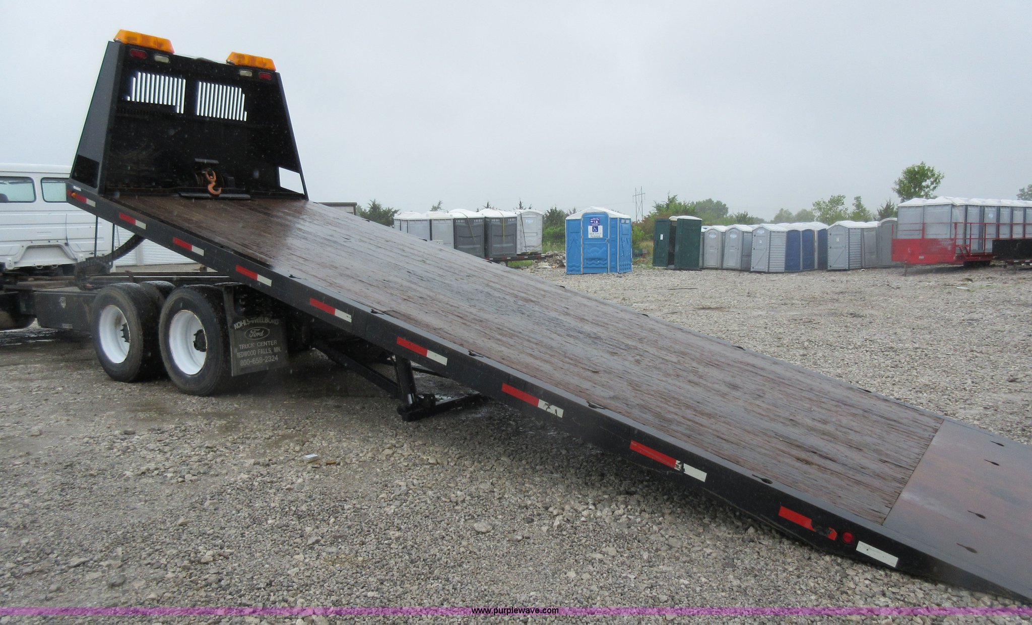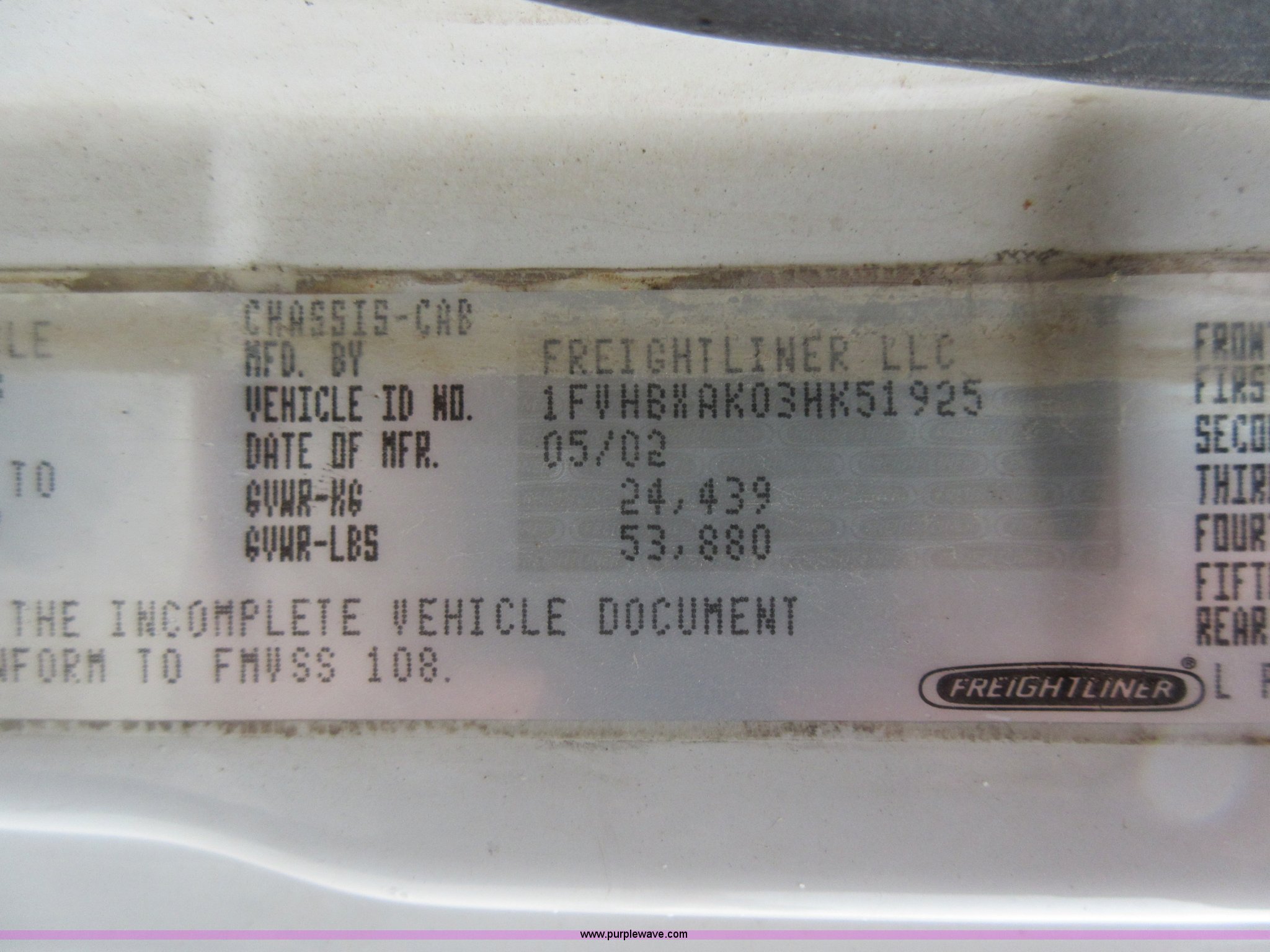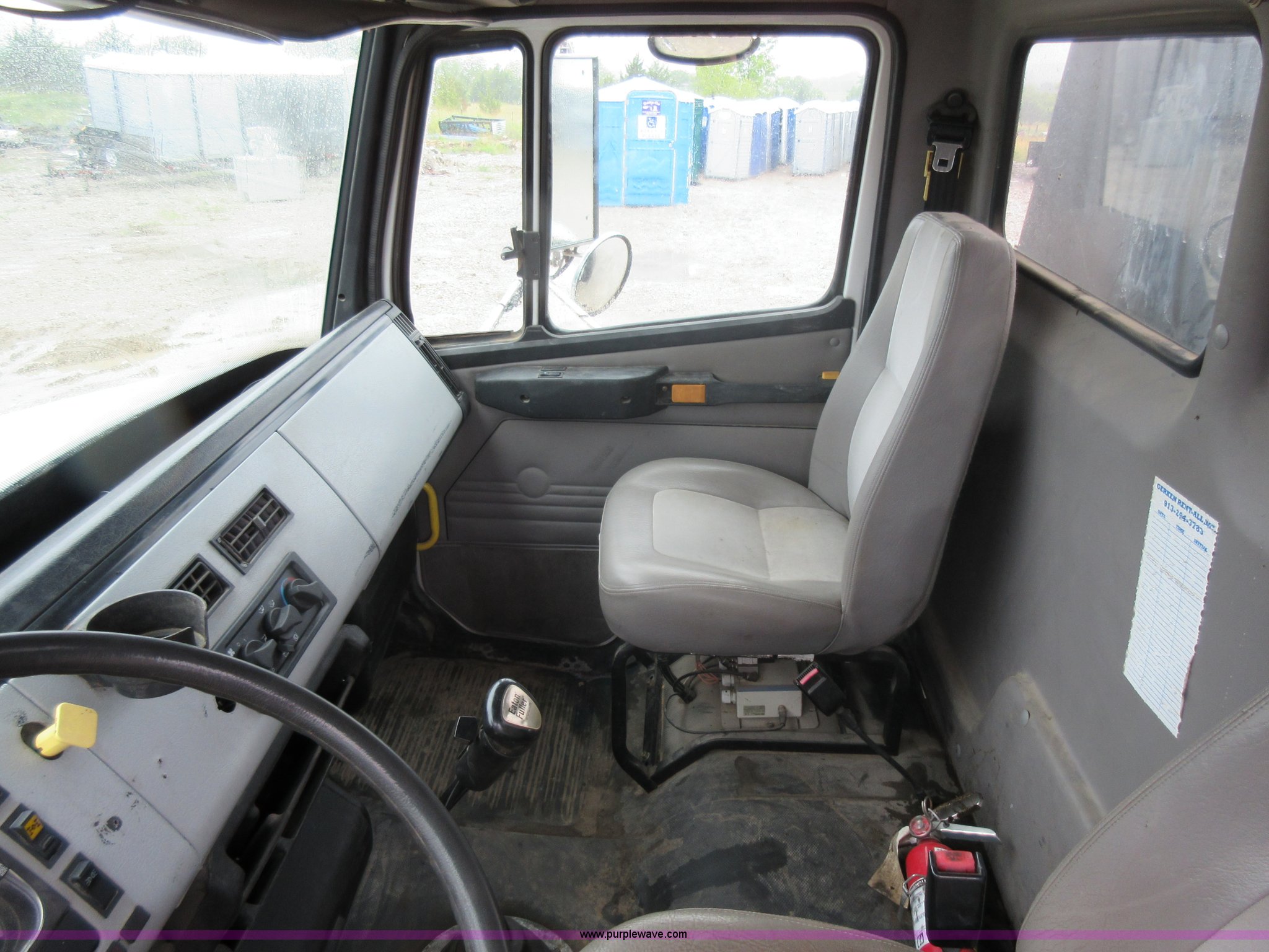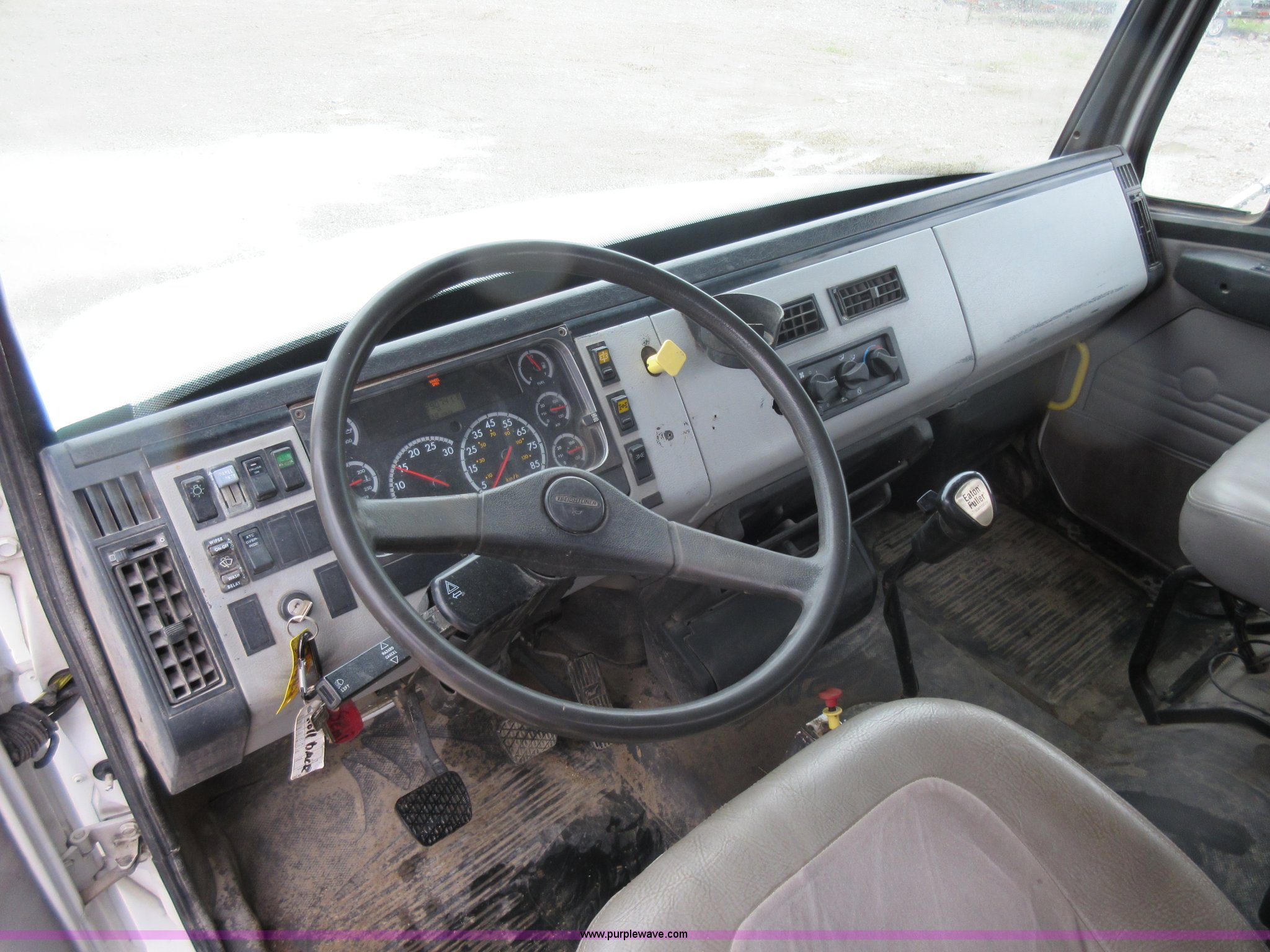 Purple Wave is selling a used Rollback or Tow Truck in Kansas. This item is a 2003 Freightliner FL80 roll back truck with the following: 290,741 miles on odometer, Caterpillar 3126 7.2L L6 diesel engine, Eaton Fuller nine speed manual transmission, AC and heat, Cruise, AM/FM/cassette, Power mirrors, Heated mirrors, PTO, 26'L x 102"W rollback bed, Winch, Dual fuel tanks, Air suspension, Air brakes, 295/75R22.5 tires, GVWR 53,880 lbs, FAWR 13,880 lbs, IAWR 20,000 lbs, RAWR 20,000 lbs