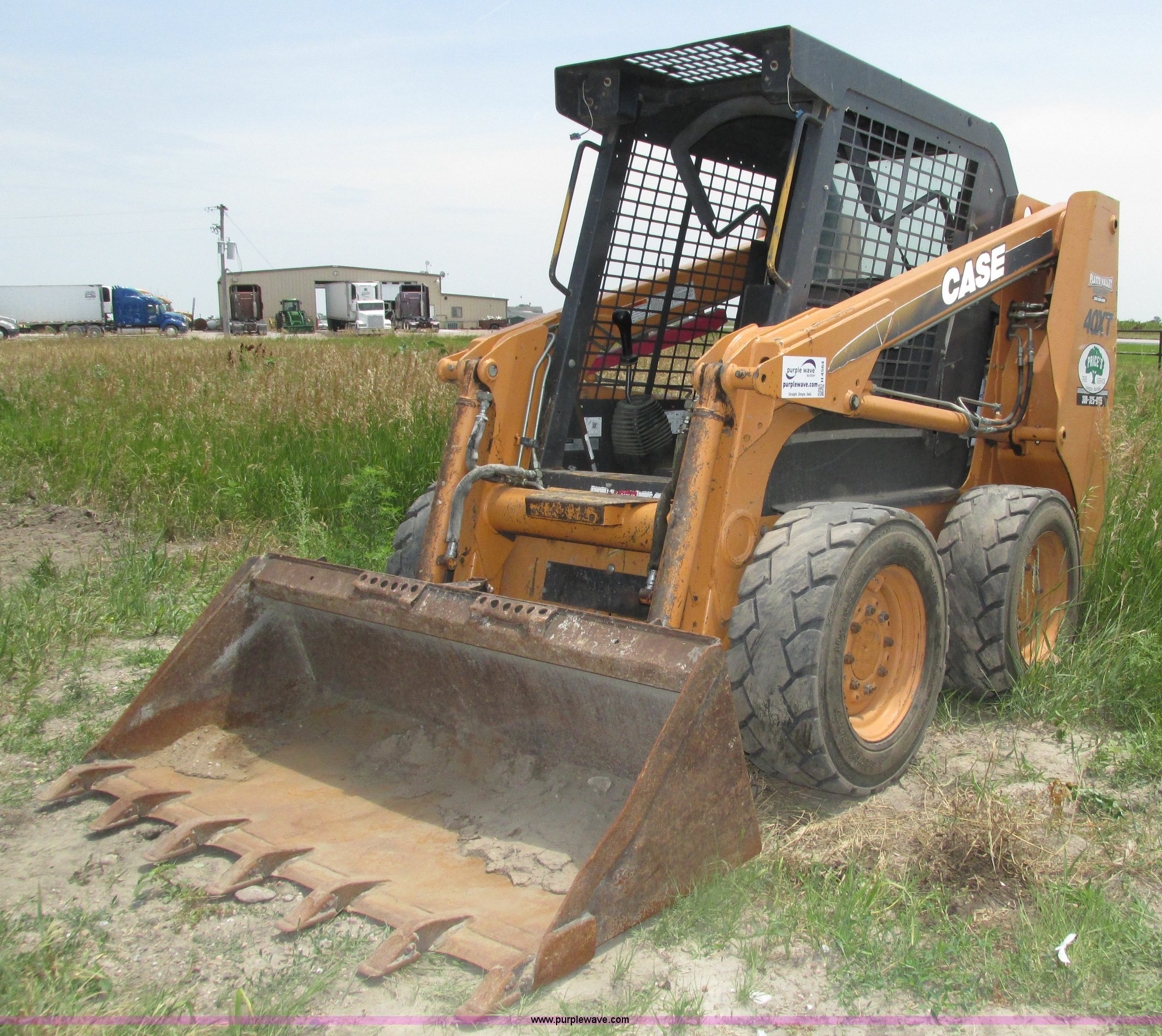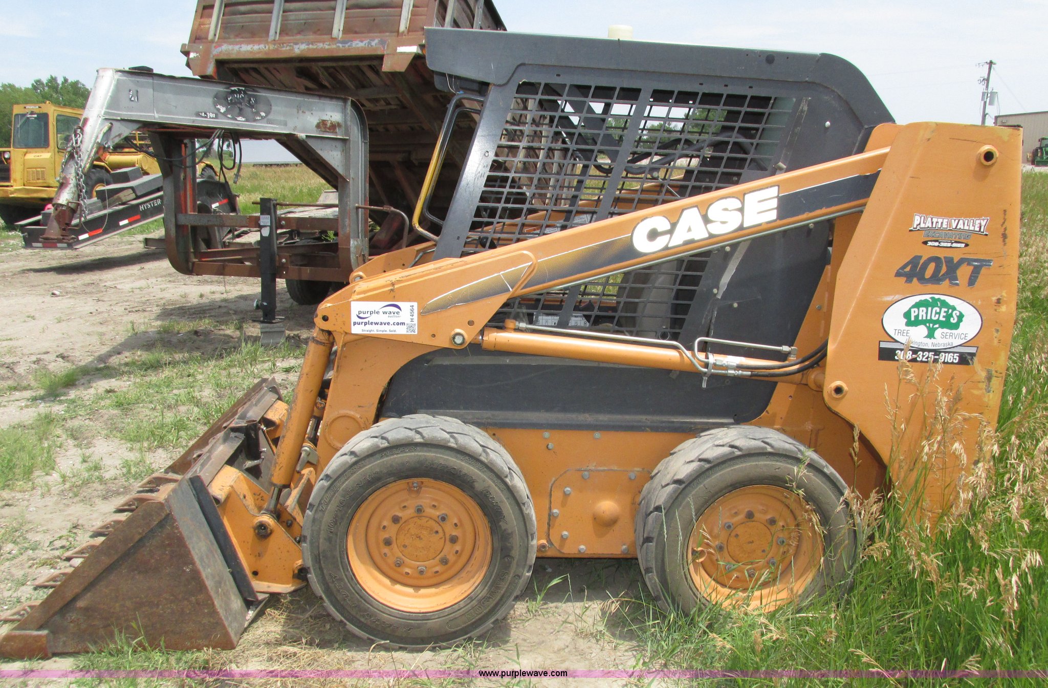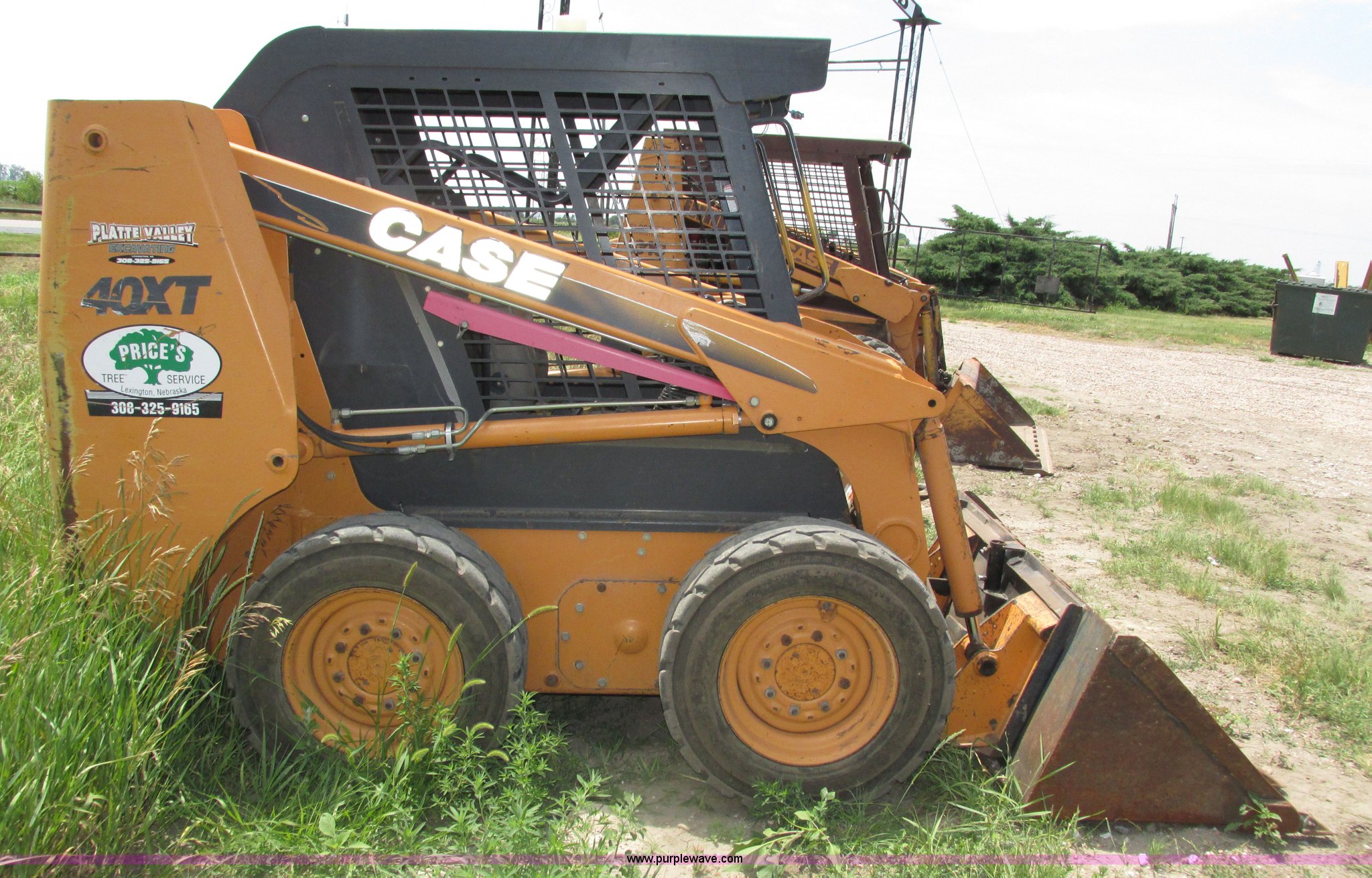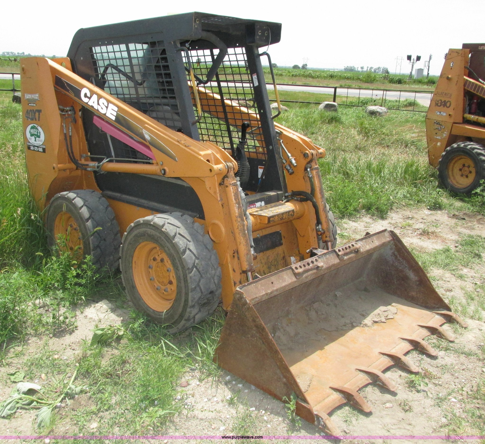 Purple Wave is selling a used Skid Steer Loader in Nebraska. This item is a 2003 Case 40XT skid steer with the following: 3,915 hours on meter, Case four cylinder diesel engine, Hydrostatic transmission, OROPS, Serial JAF0358548, Joystick bucket controls, 61"W low profile bucket, Weld-on cutting edge, Weld-on teeth, Manual quick coupler, Auxiliary hydraulics, Front and rear work lights, Front light missing, Samson 10-16.5 tires, Engine cover will not stay up, Seat torn, Serial JAF0346967