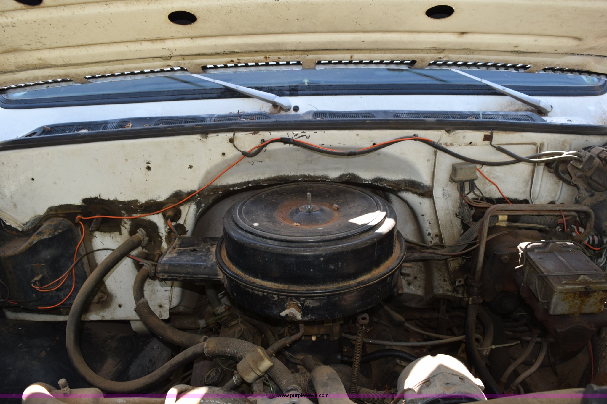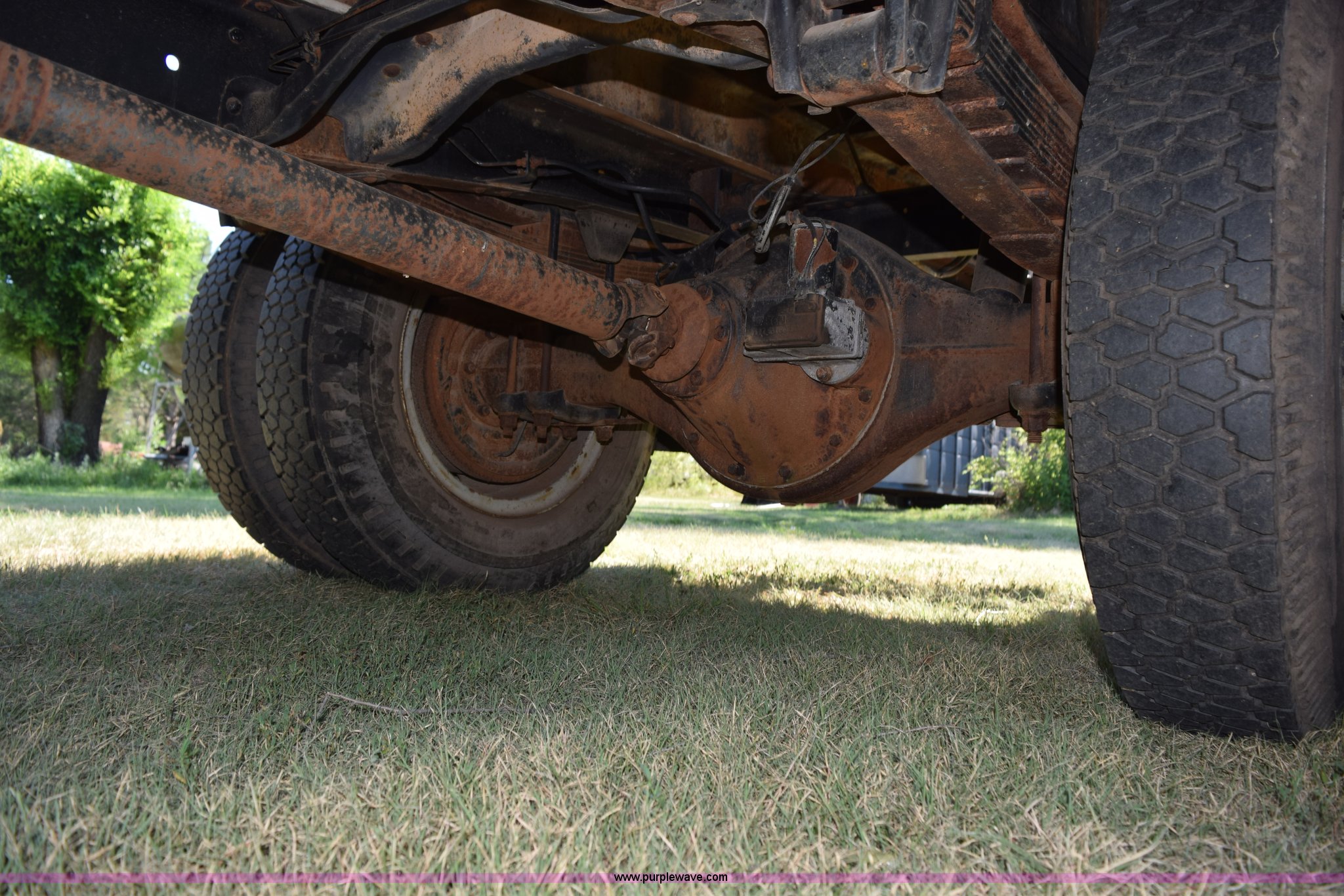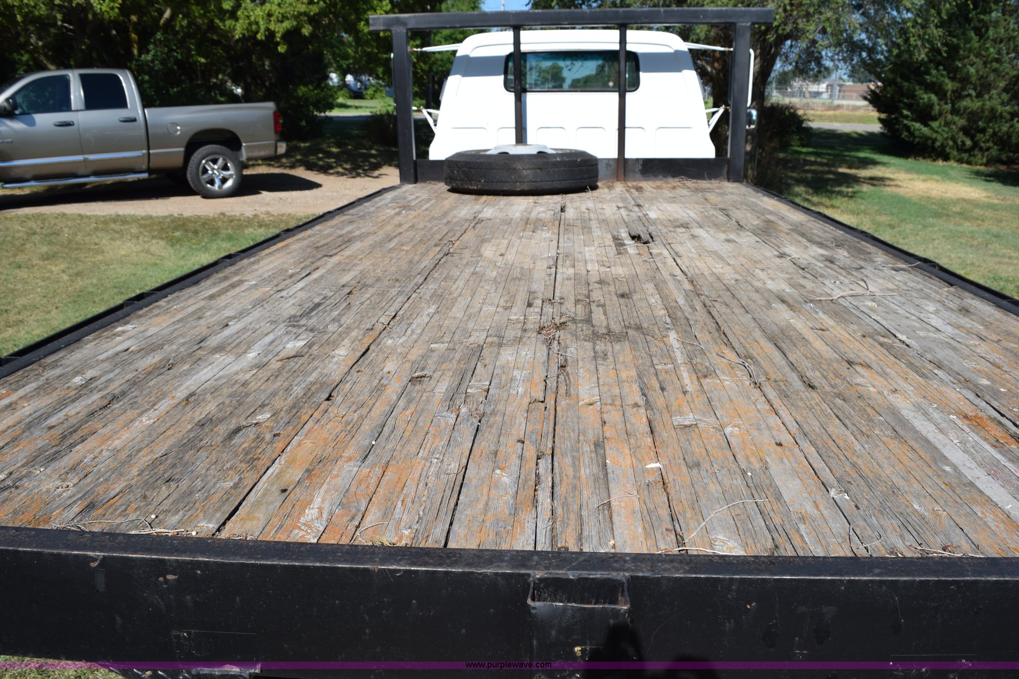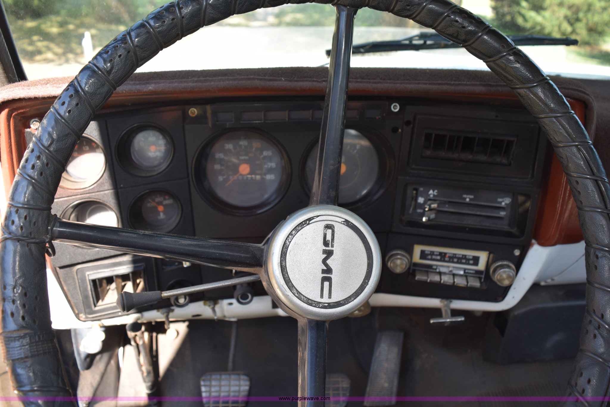 Purple Wave is selling a used Flat Bed Truck in Kansas. This item is a 1987 GMC 6000 flatbed truck with the following: 280,324 miles on odometer, Actual miles unknown, GMC eight cylinder gas engine, 4 speed manual transmission, 2 speed rear end, Single axle, AC and heat, AC disconnected, AM/FM, Spring suspension seat, 15"L x 8"W flatbed, Receiver hitch, Dual fuel tanks, Spring suspension, Hydraulic brakes, 8.25-20 front tires