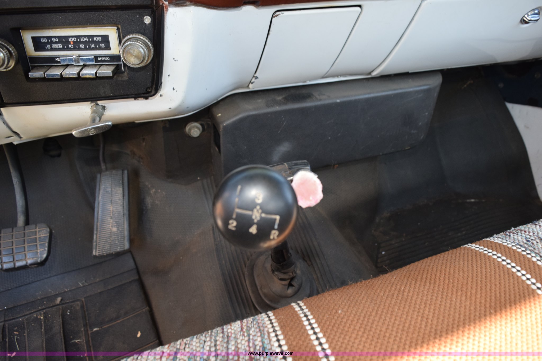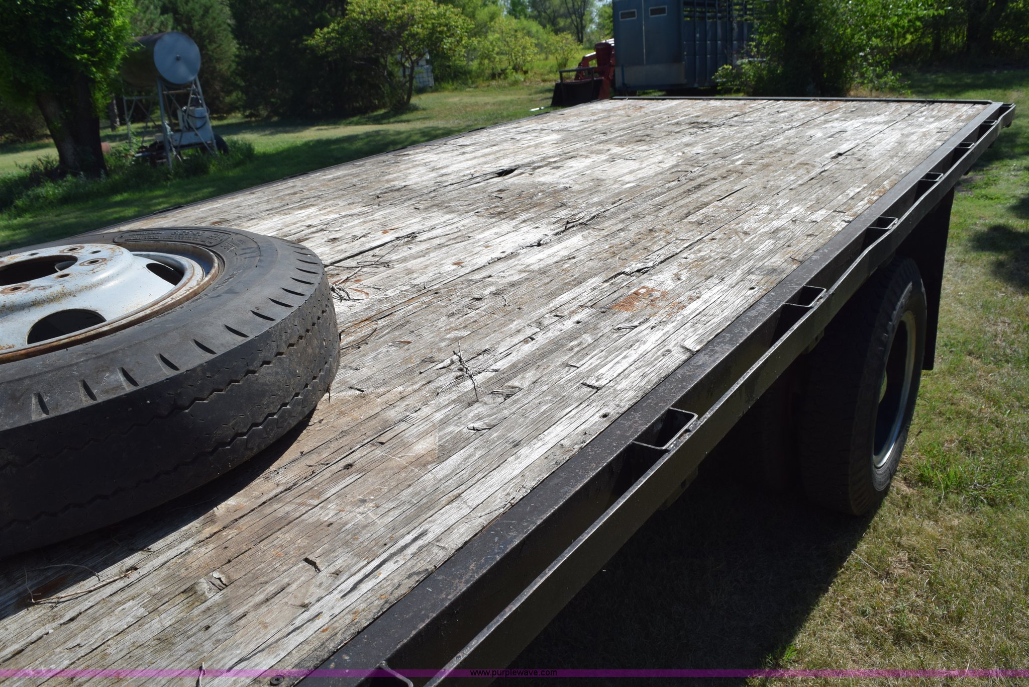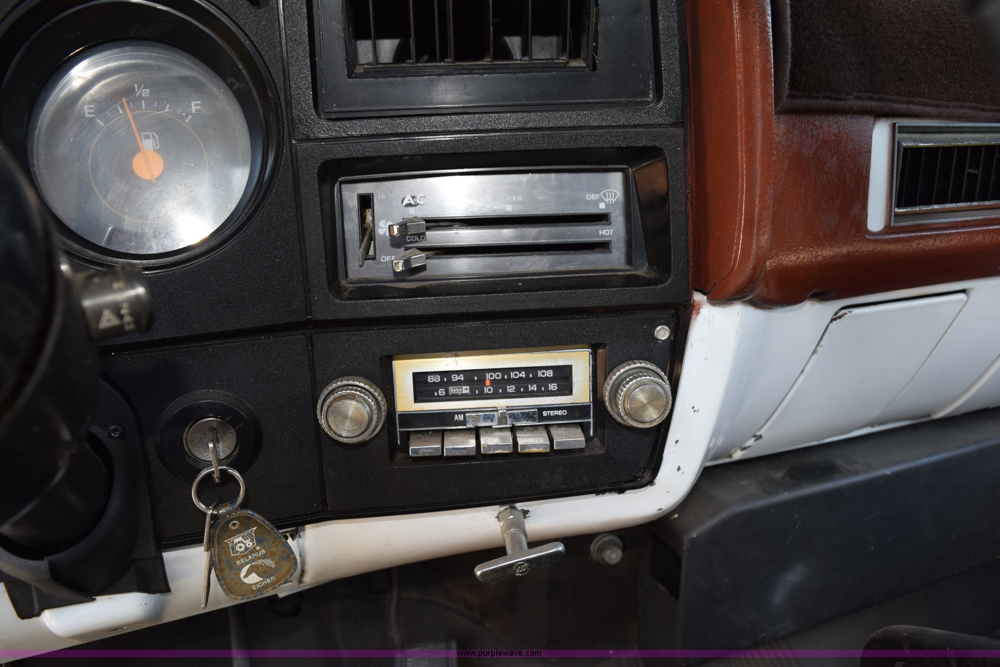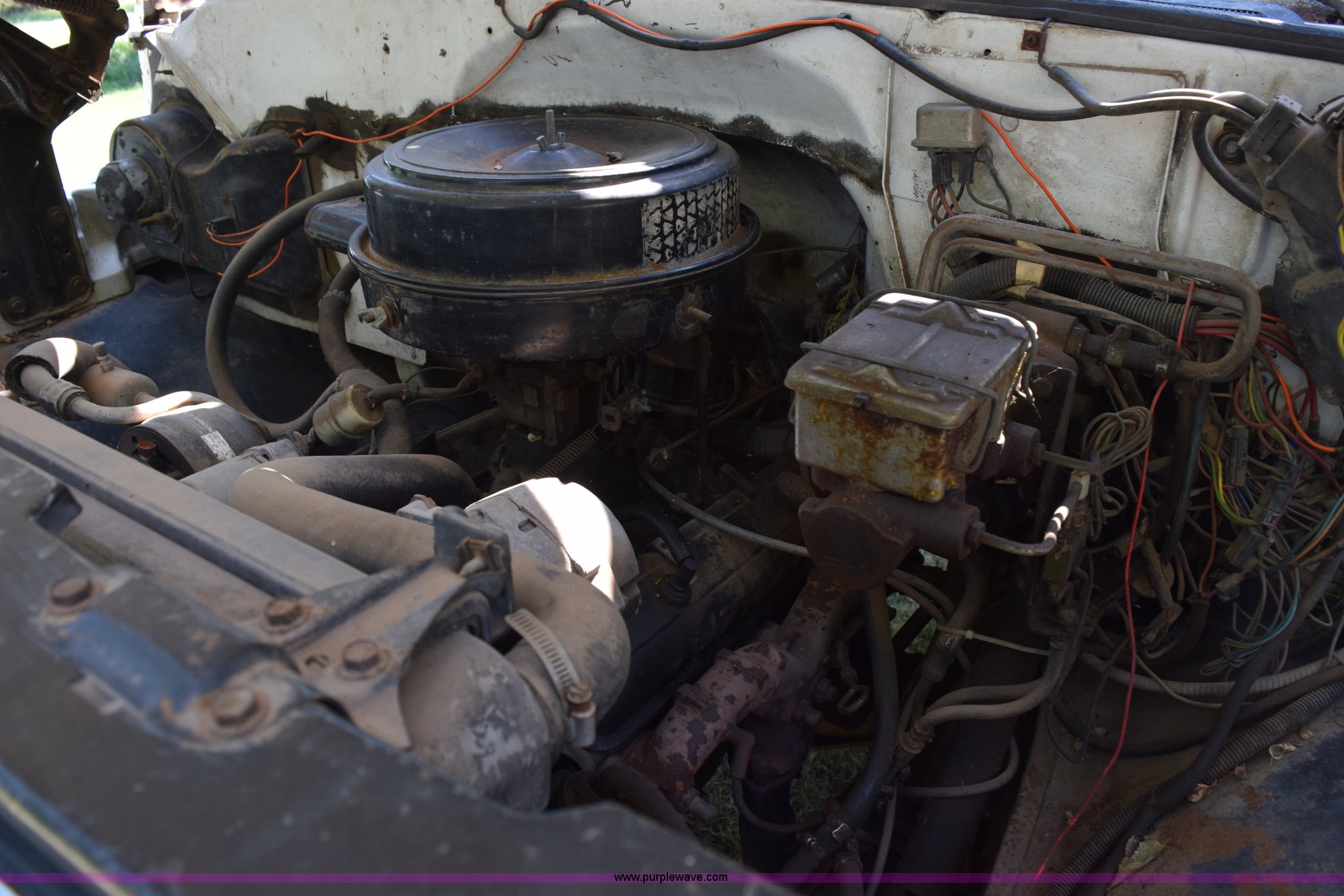 Purple Wave is selling a used Flat Bed Truck in Kansas. This item is a 1987 GMC 6000 flatbed truck with the following: 280,324 miles on odometer, Actual miles unknown, GMC eight cylinder gas engine, 4 speed manual transmission, 2 speed rear end, Single axle, AC and heat, AC disconnected, AM/FM, Spring suspension seat, 15"L x 8"W flatbed, Receiver hitch, Dual fuel tanks, Spring suspension, Hydraulic brakes, 8.25-20 front tires