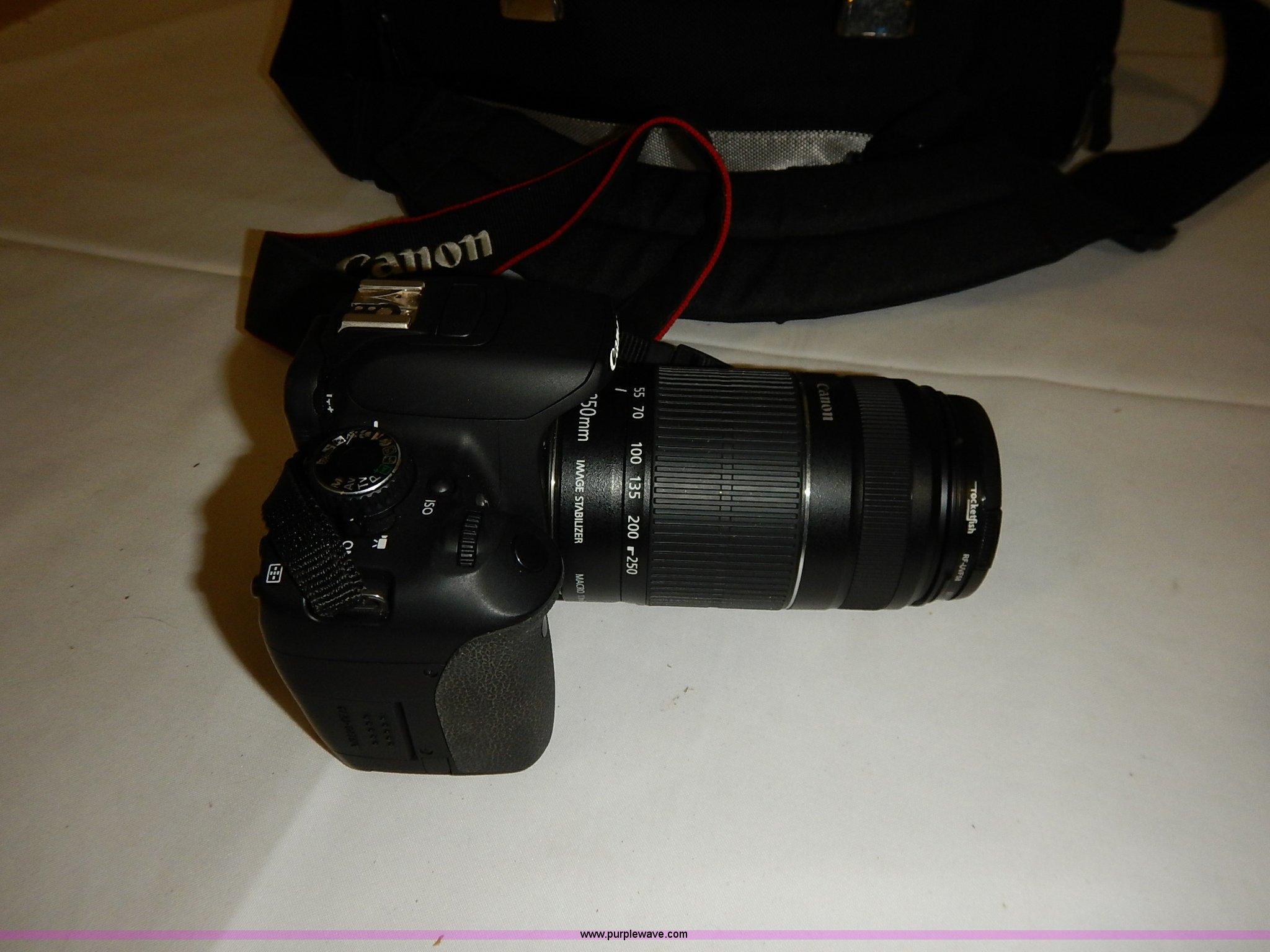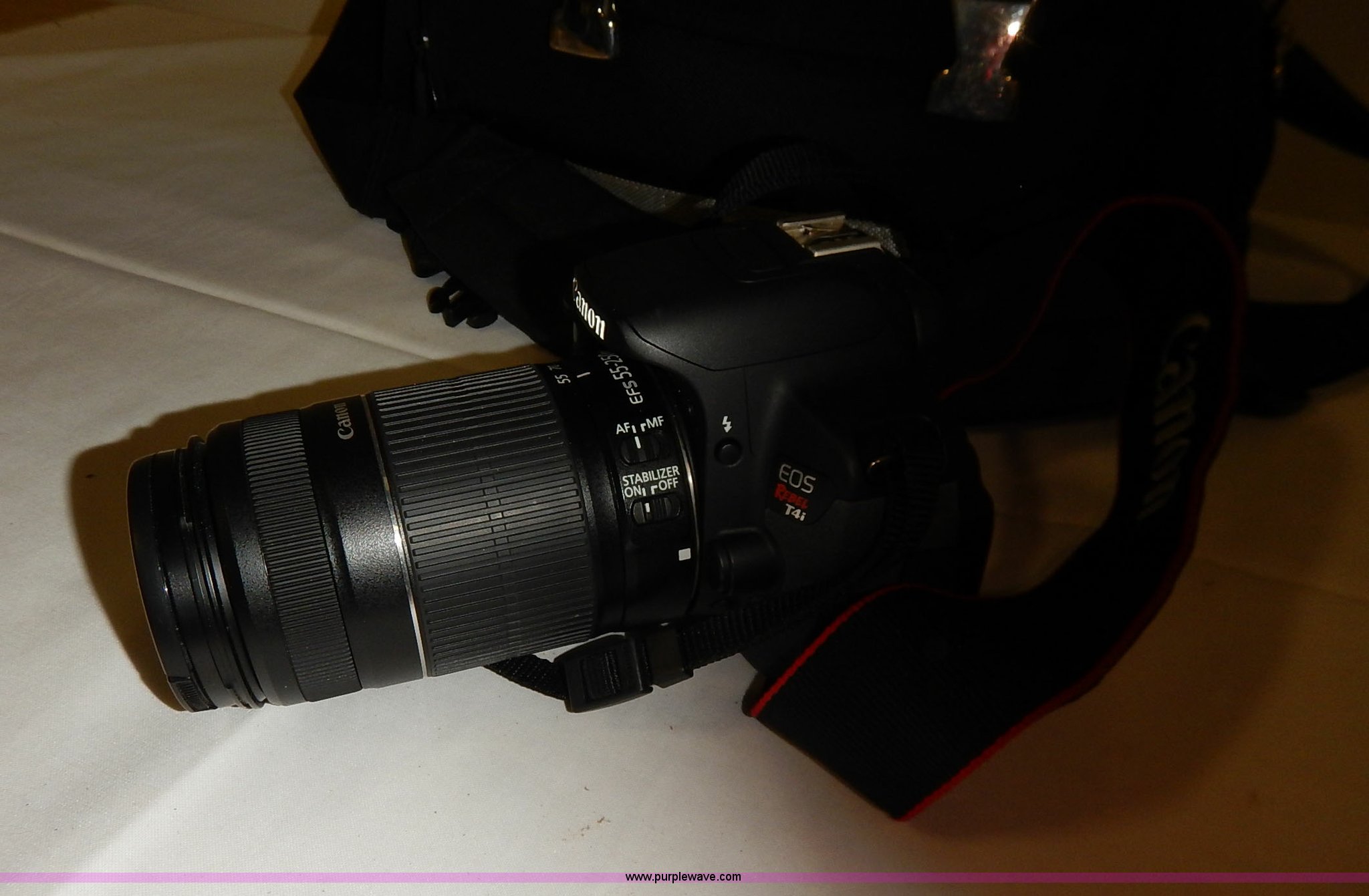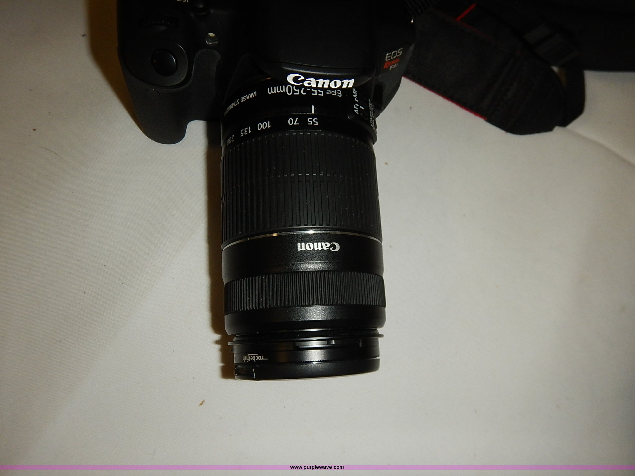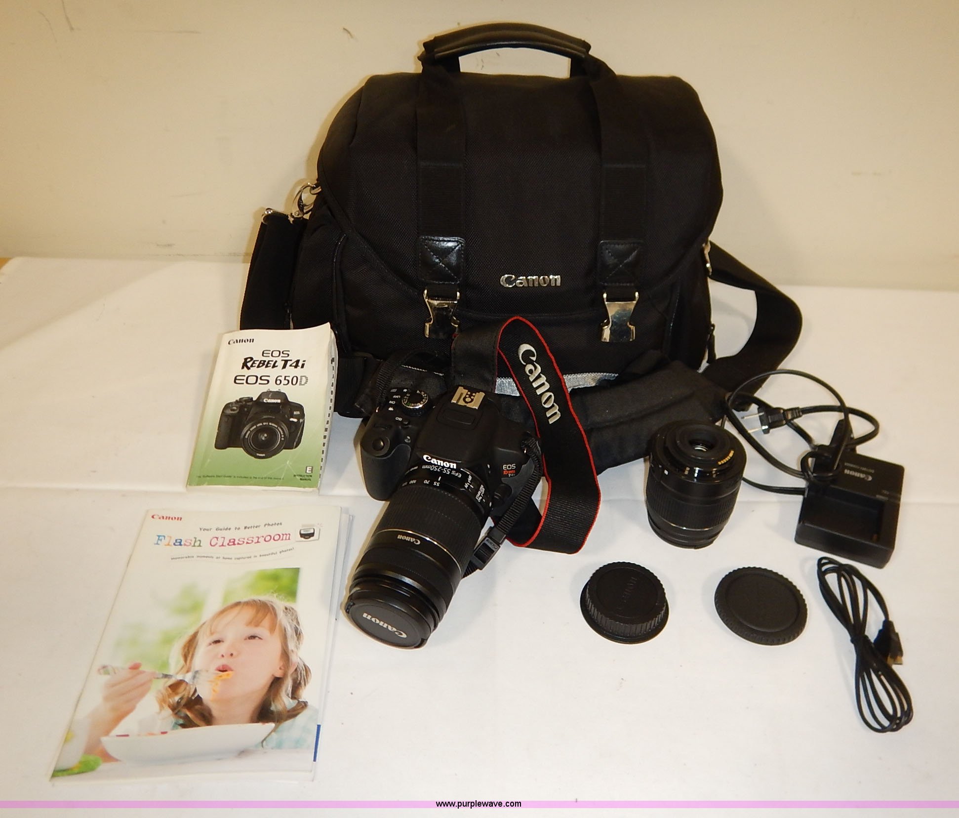 Purple Wave is selling a used Electronics in Kansas. This item is a Canon EOS Rebel T4i camera with the following: (2) lenses, 15 to 55mm, 55 to 250mm, Case, Charger, Caps, Guides