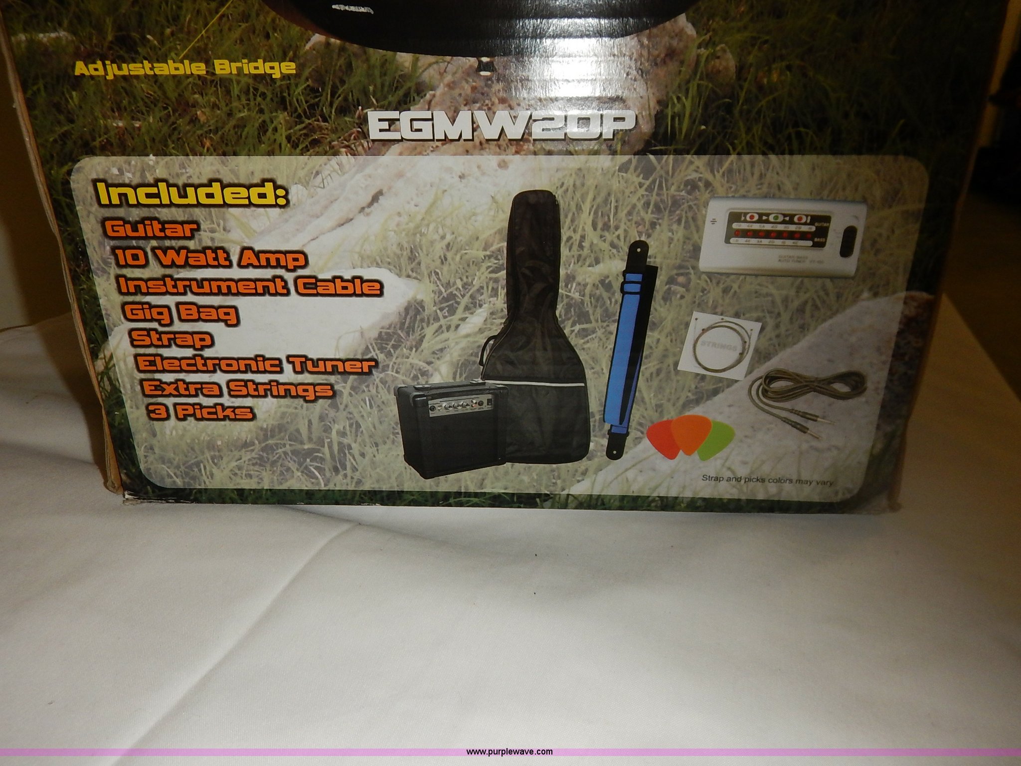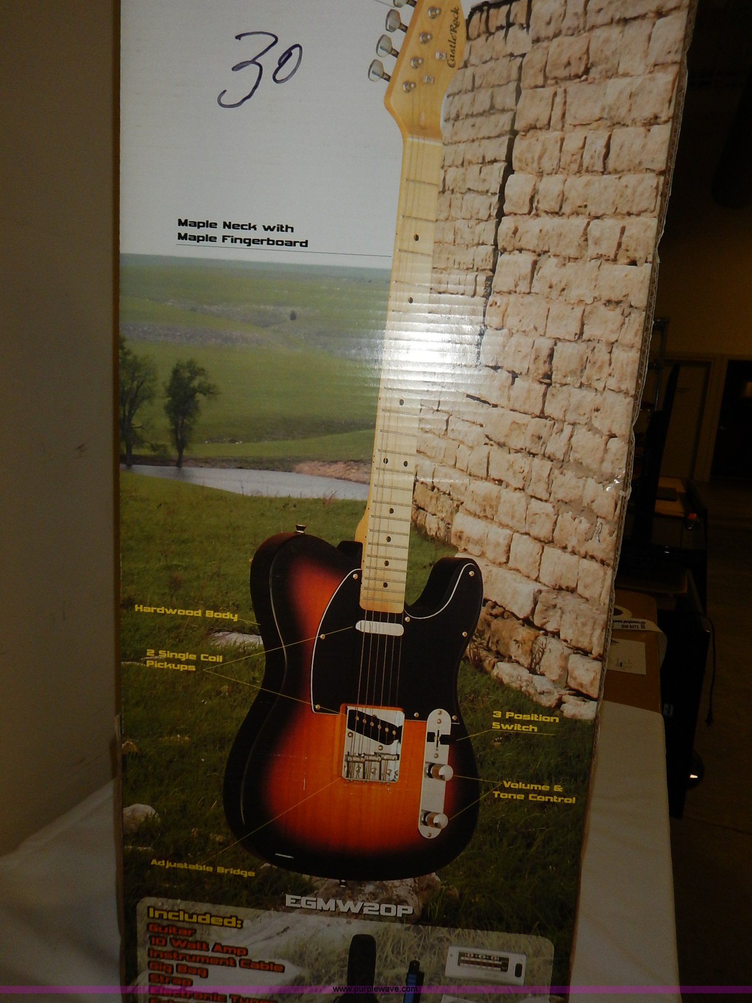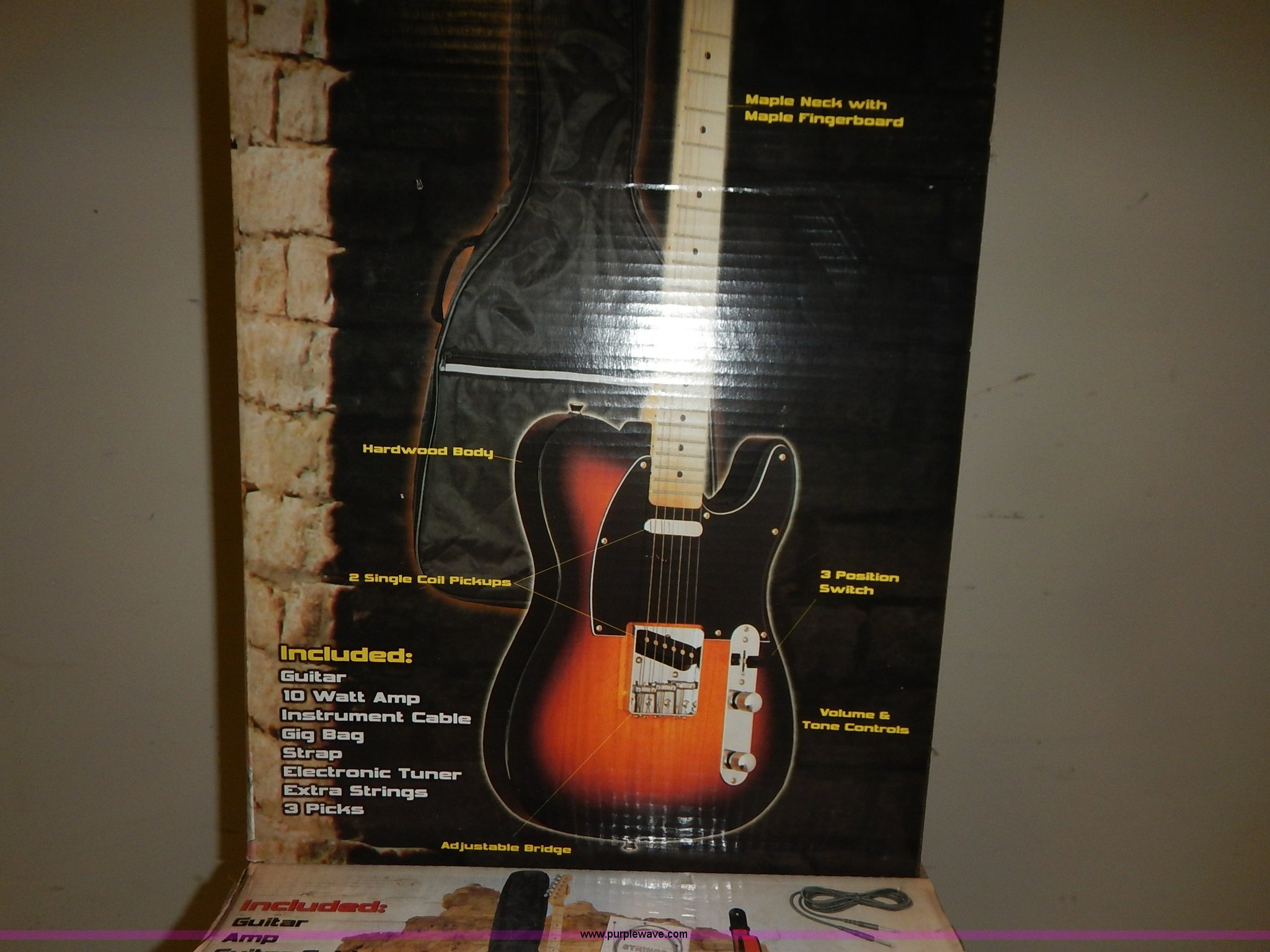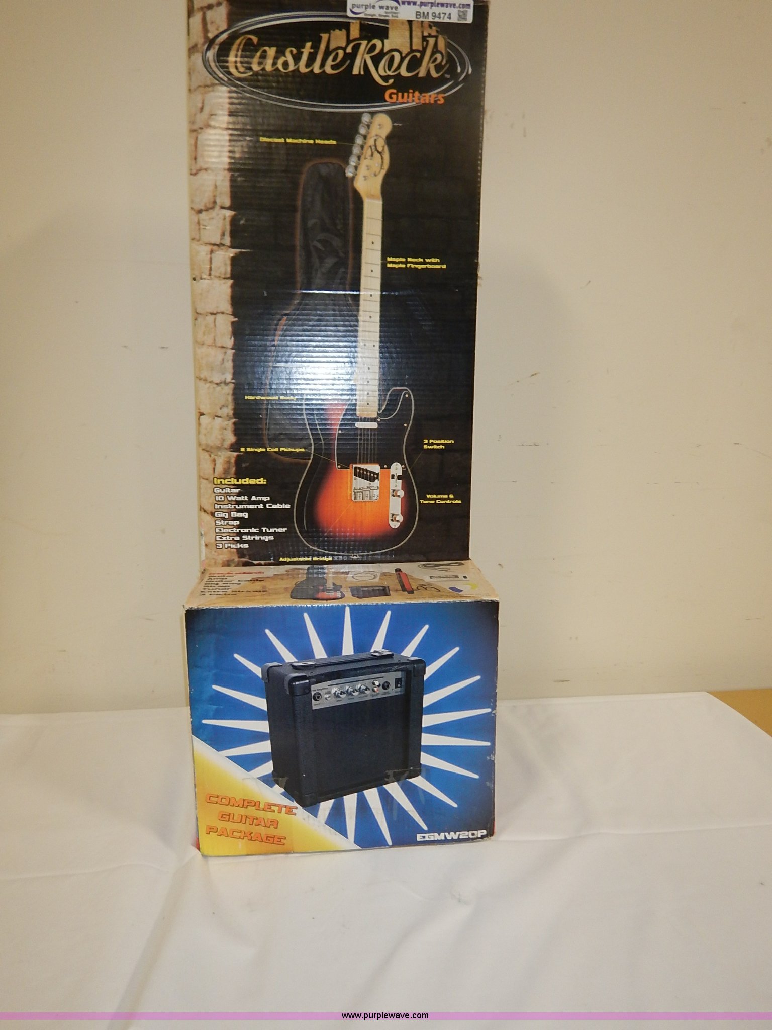Purple Wave is selling a used Music Equip. in Kansas. This item is a Castle Rock guitar package with the following: Guitar, 10 watt amp, Instrument cable, Gig bag, Strap, Tuner, Strings, Picks