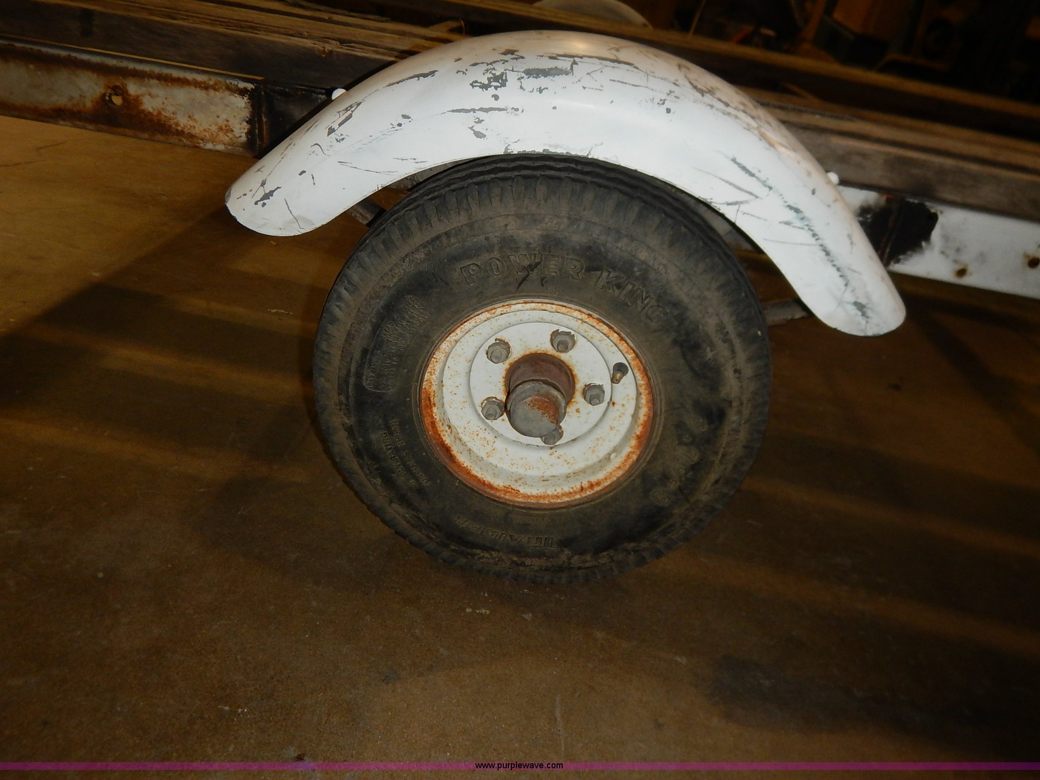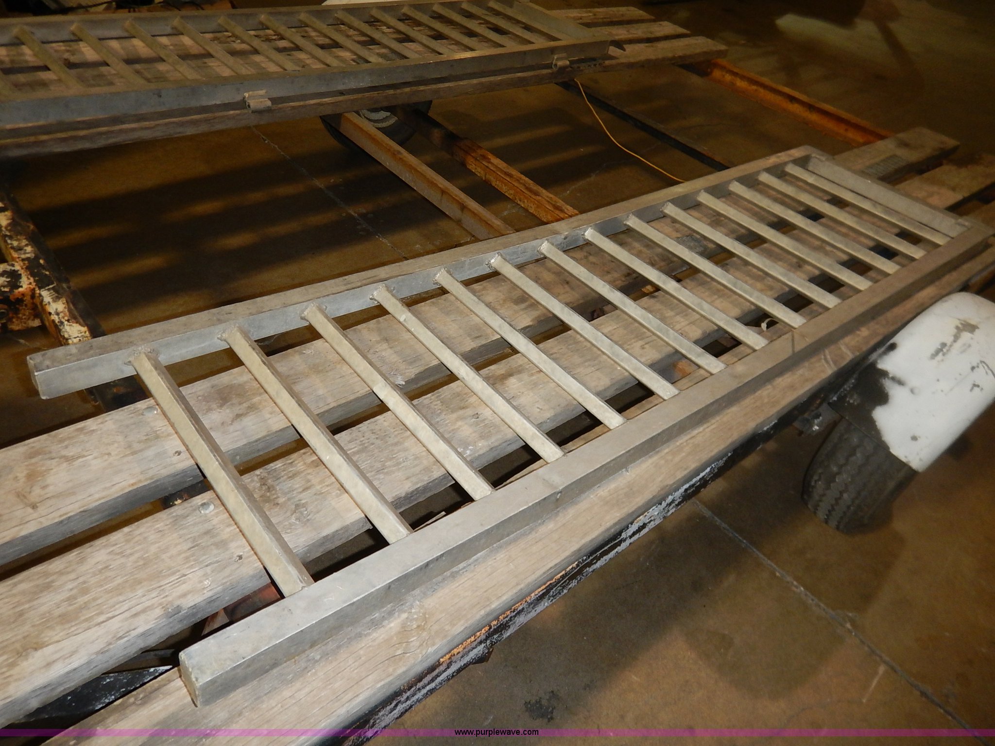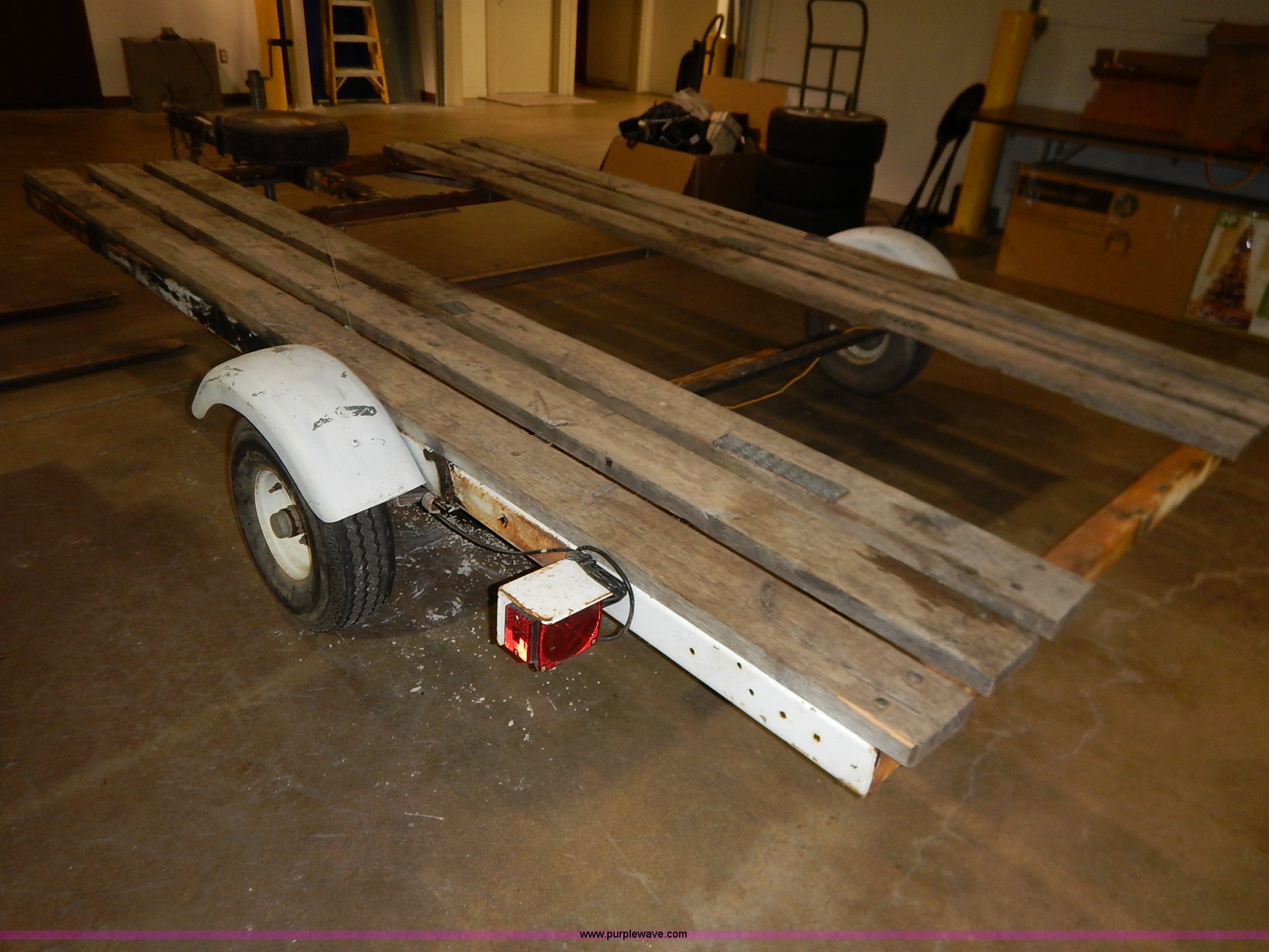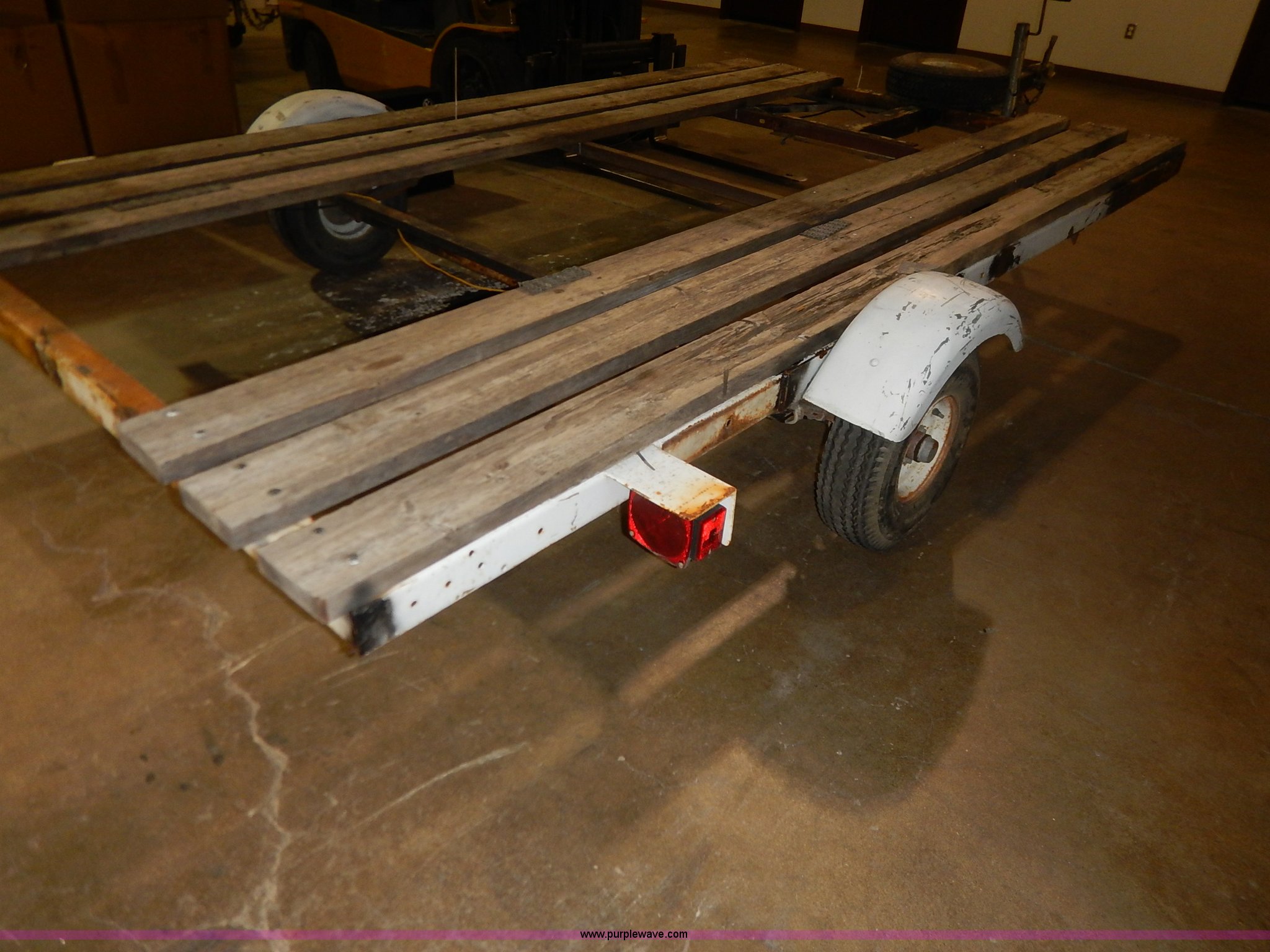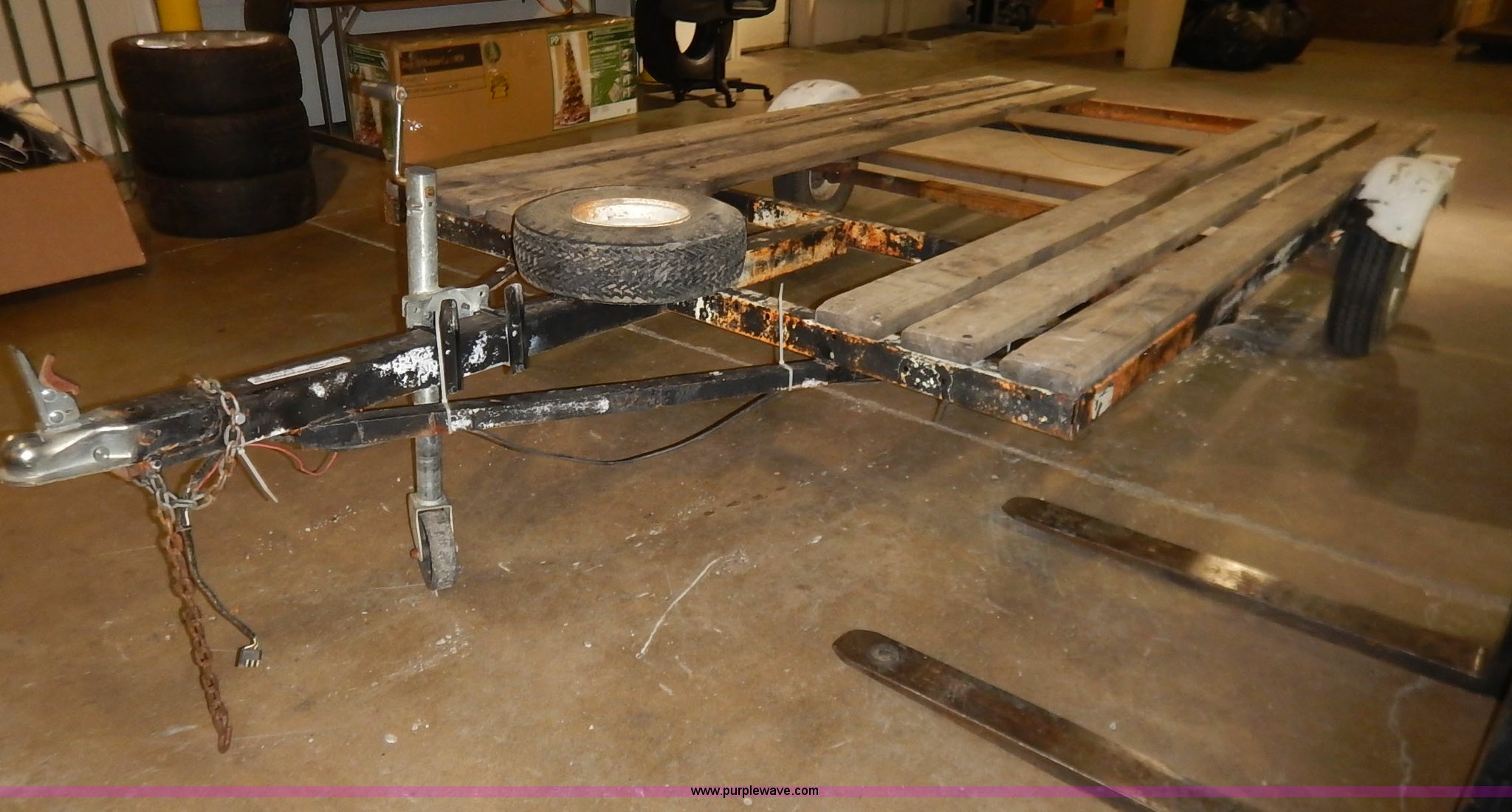 Purple Wave is selling a used Car or Utility Trailer in Kansas. This item is a ATV trailer with the following: 10.5'L x 6'W, 6' x 20" aluminum ramps, 2x6 construction, Ball hitch, Safety chains, Lights, Jack, 5.70-8 tires